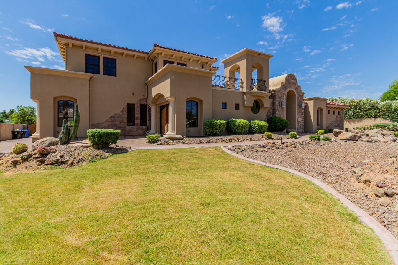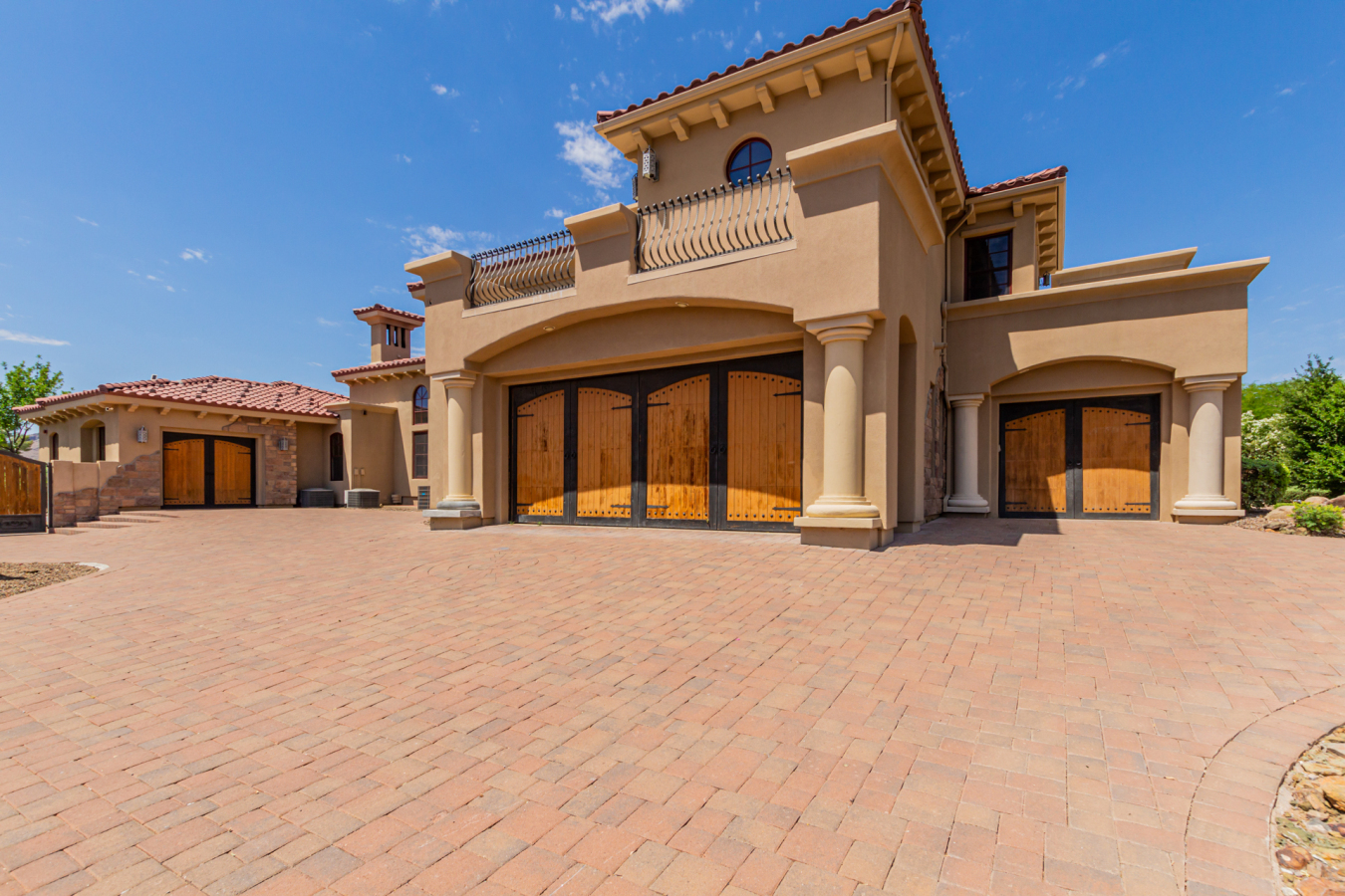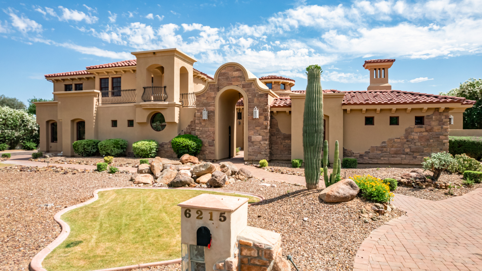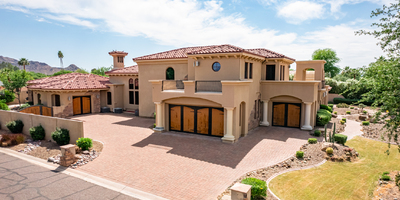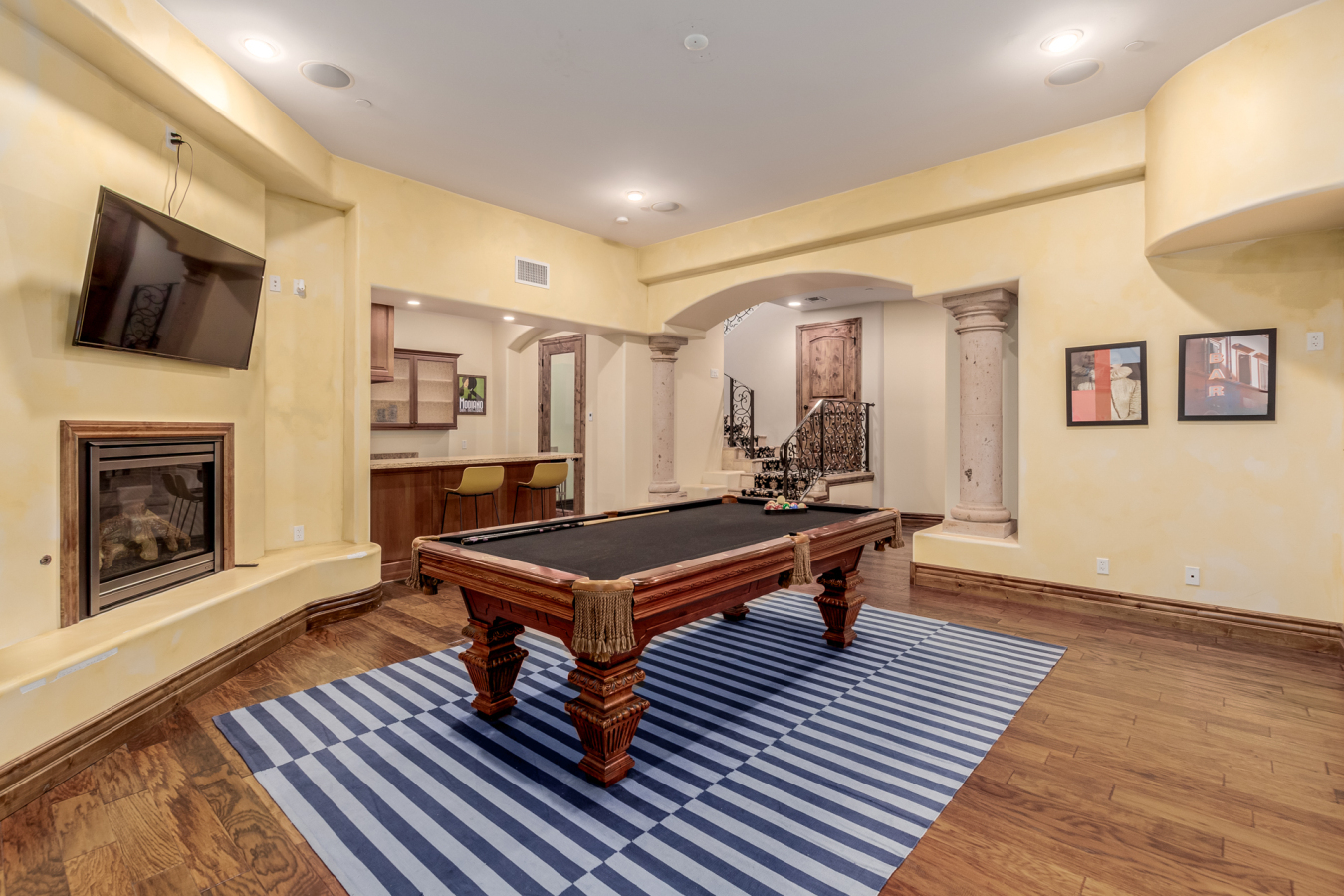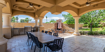 Nestled within the prestigious enclave of Paradise Valley, this home is luxury living at its finest. Grand courtyard entrance w/outdoor gas fireplace. Gourmet kitchen outfitted with Wolff gas stove, Miele Espresso machine, Sub-Zero Refrigerator, granite countertops with built in beverage ice tubs, pantry. Office w/private entrance, & ensuite. Lavish private primary retreat featuring jet tub, double entrance steam shower, his and hers walk-in closets. Basement (1,745 sqft) equipped w/media room, climate-controlled 900 bottle wine cellar, billiard room with bar, bathroom and bedroom. Outdoor living w/putting green, sports court, grotto slide pool, spa, gazebo w/kitchen. Detached casita w/fitness room, infrared sauna, hair salon, 2 baths,1 bdrm, kitchen. Also, for lease $19,000. The chef's kitchen is comprised of wood cabinetry w/crown moulding, travertine stone flooring, a butler's pantry, granite counters, heavy duty stainless steel appliances, and a large prep island w/a breakfast bar.