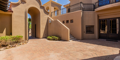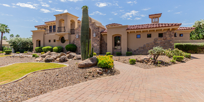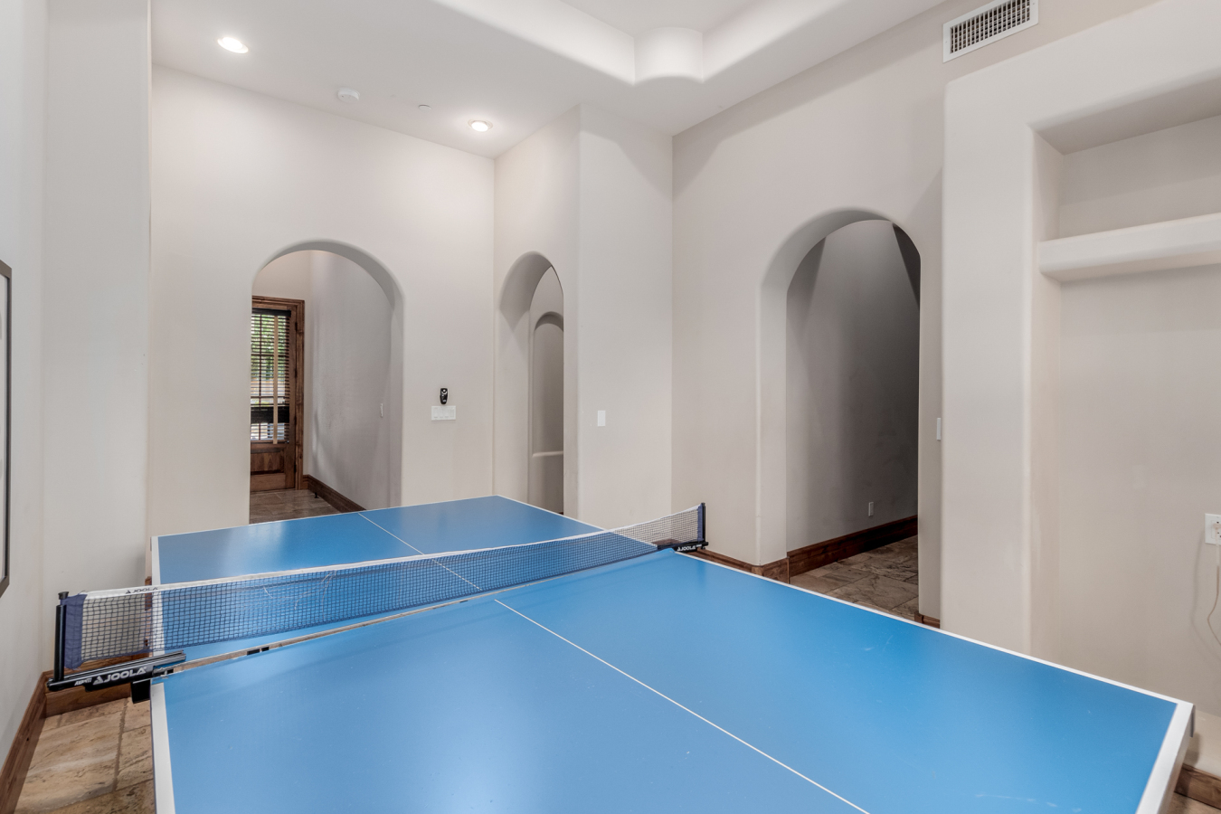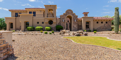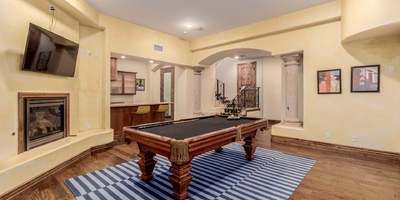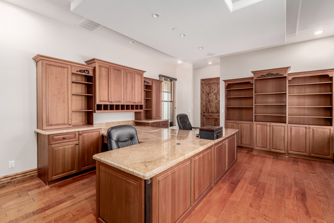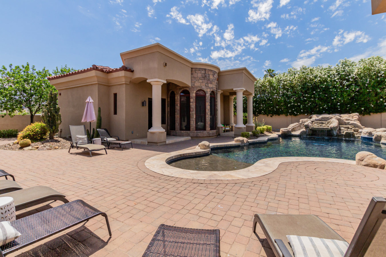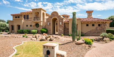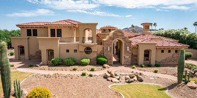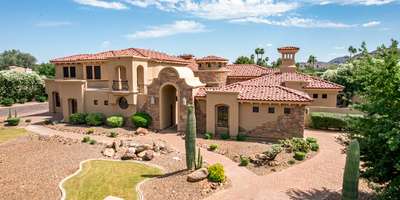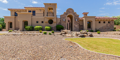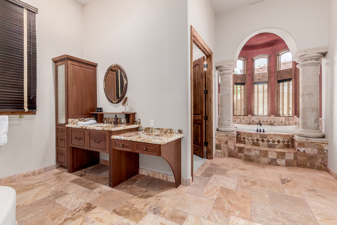 Nestled within the prestigious enclave of Paradise Valley, this home is luxury living at its finest. Grand courtyard entrance w/outdoor gas fireplace. Gourmet kitchen outfitted with Wolff gas stove, Miele Espresso machine, Sub-Zero Refrigerator, granite countertops with built in beverage ice tubs, pantry. Office w/private entrance, & ensuite. Lavish private primary retreat featuring jet tub, double entrance steam shower, his and hers walk-in closets. Basement (1,745 sqft) equipped w/media room, climate-controlled 900 bottle wine cellar, billiard room with bar, bathroom and bedroom. Outdoor living w/putting green, sports court, grotto slide pool, spa, gazebo w/kitchen. Detached casita w/fitness room, infrared sauna, hair salon, 2 baths,1 bdrm, kitchen. Also, for lease $19,000. The chef's kitchen is comprised of wood cabinetry w/crown moulding, travertine stone flooring, a butler's pantry, granite counters, heavy duty stainless steel appliances, and a large prep island w/a breakfast bar.