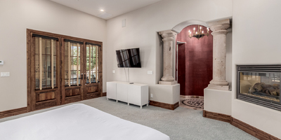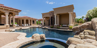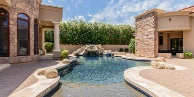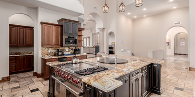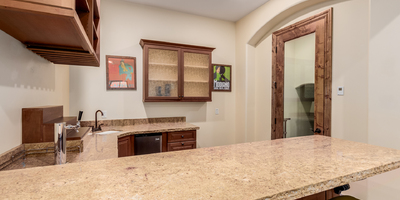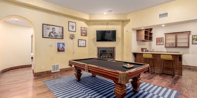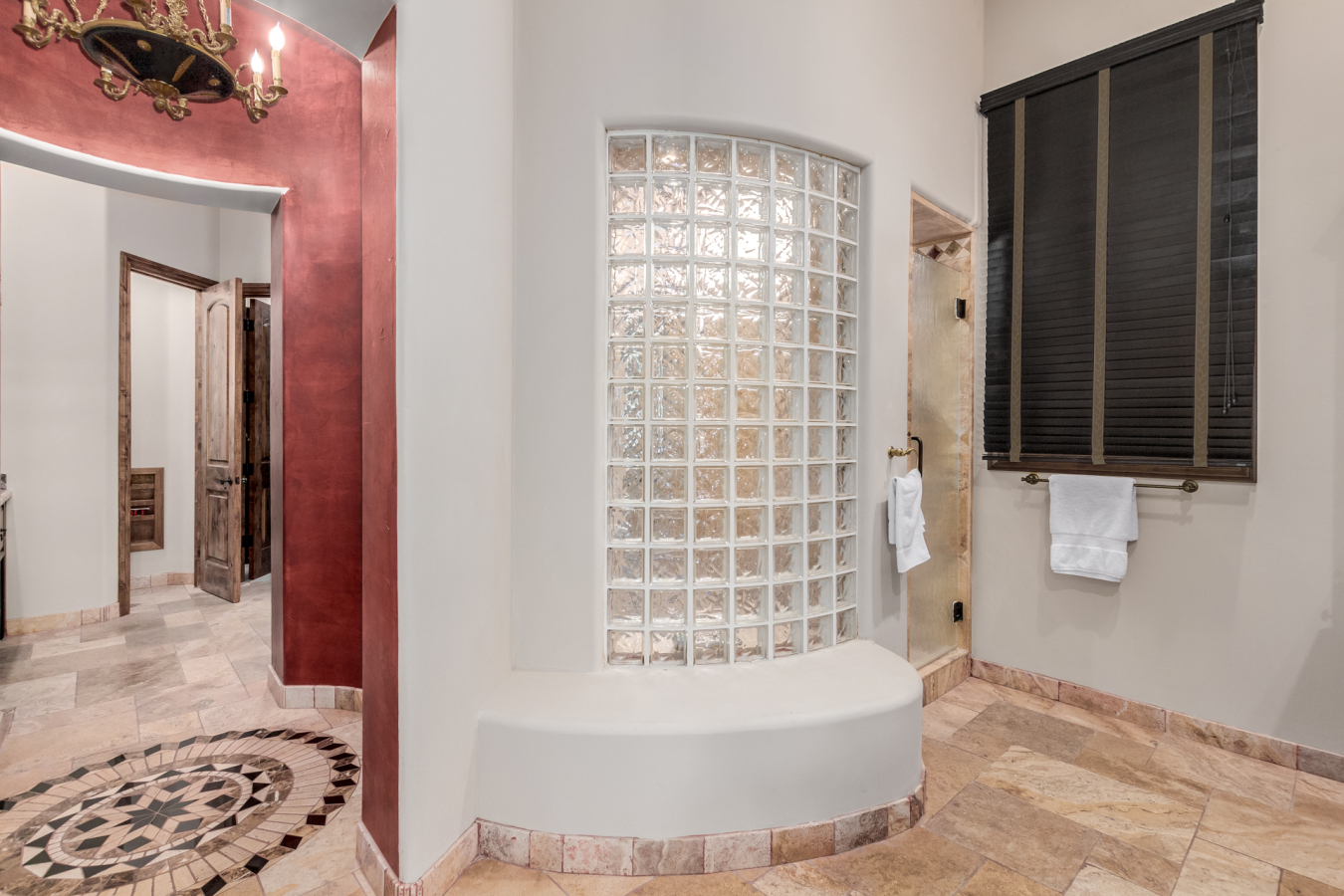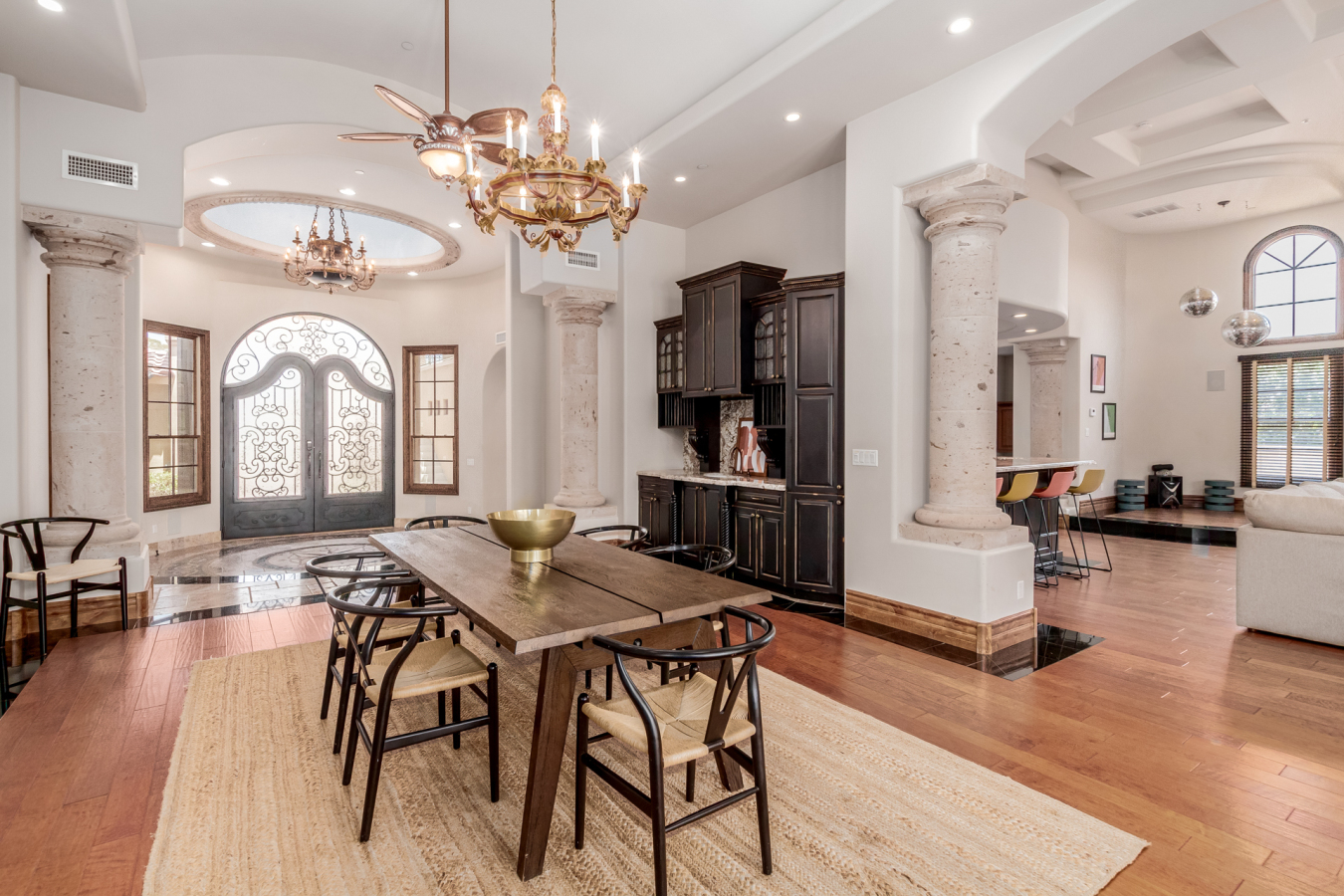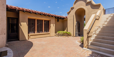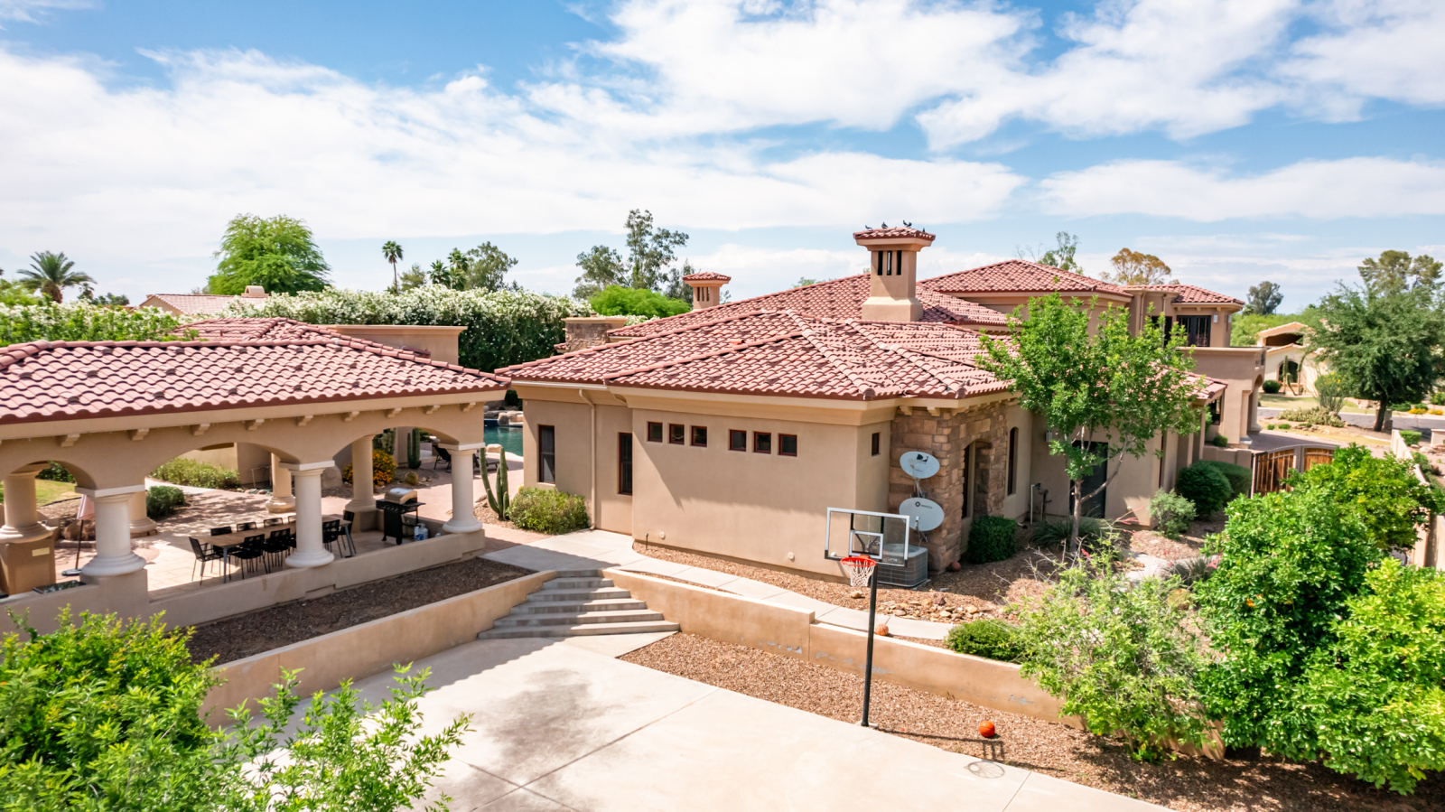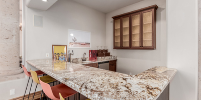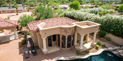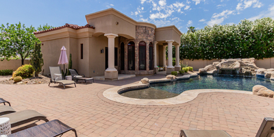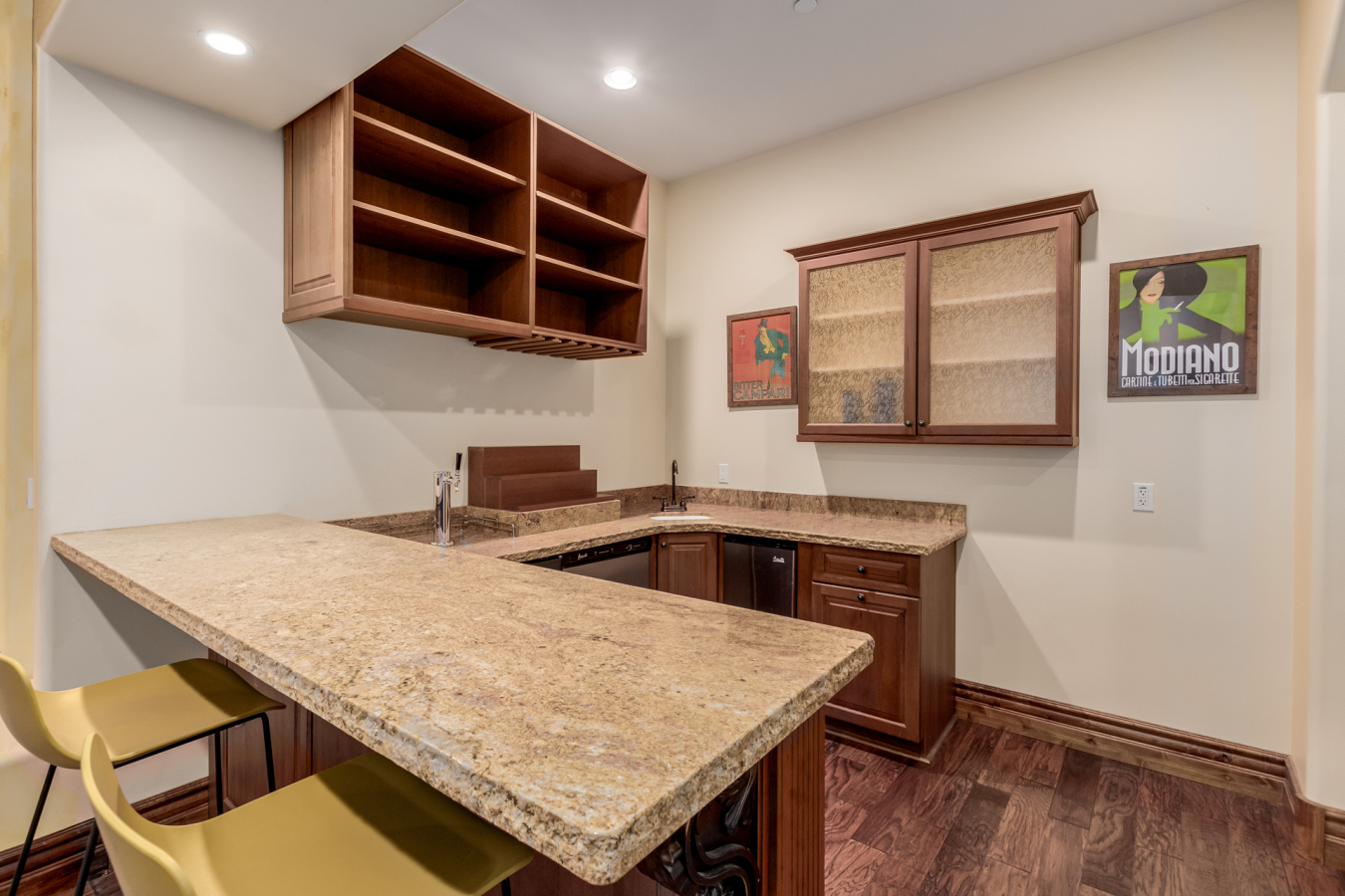 Nestled within the prestigious enclave of Paradise Valley, this home is luxury living at its finest. Grand courtyard entrance w/outdoor gas fireplace. Gourmet kitchen outfitted with Wolff gas stove, Miele Espresso machine, Sub-Zero Refrigerator, granite countertops with built in beverage ice tubs, pantry. Office w/private entrance, & ensuite. Lavish private primary retreat featuring jet tub, double entrance steam shower, his and hers walk-in closets. Basement (1,745 sqft) equipped w/media room, climate-controlled 900 bottle wine cellar, billiard room with bar, bathroom and bedroom. Outdoor living w/putting green, sports court, grotto slide pool, spa, gazebo w/kitchen. Detached casita w/fitness room, infrared sauna, hair salon, 2 baths,1 bdrm, kitchen. Also, for lease $19,000. The chef's kitchen is comprised of wood cabinetry w/crown moulding, travertine stone flooring, a butler's pantry, granite counters, heavy duty stainless steel appliances, and a large prep island w/a breakfast bar.