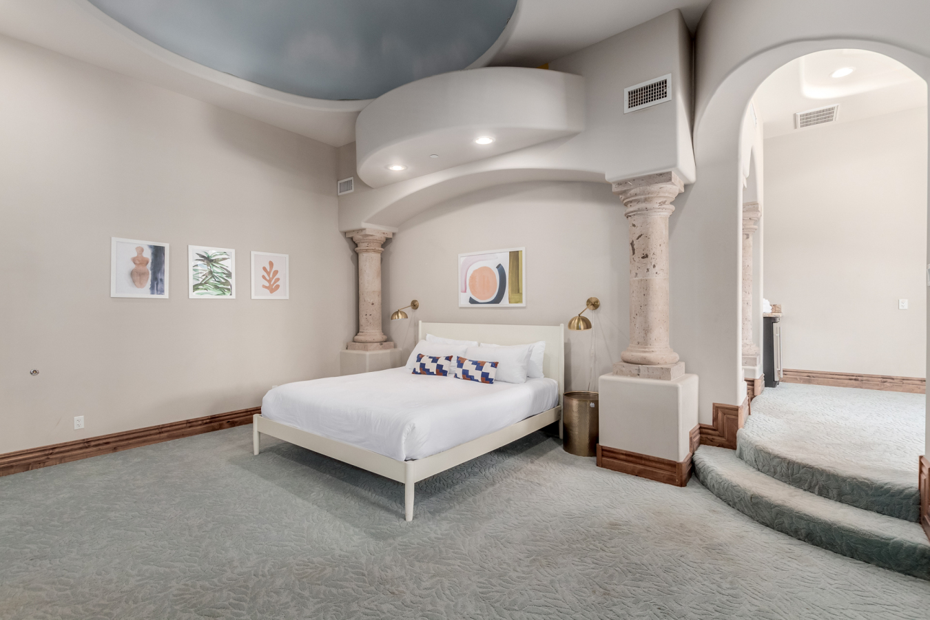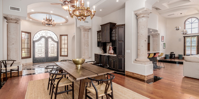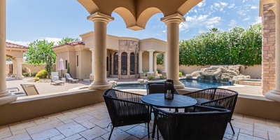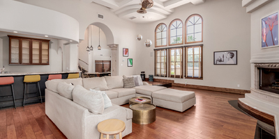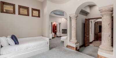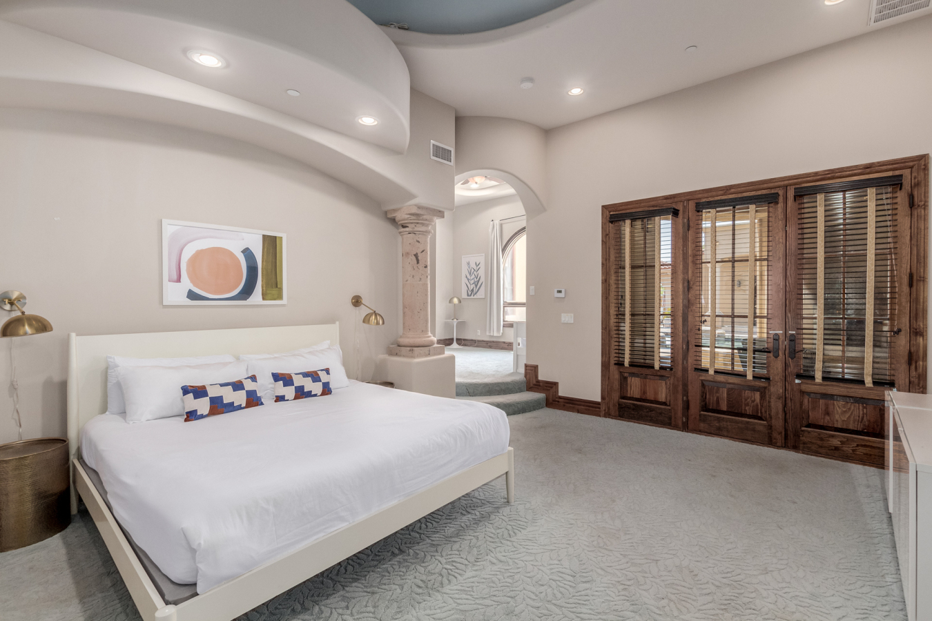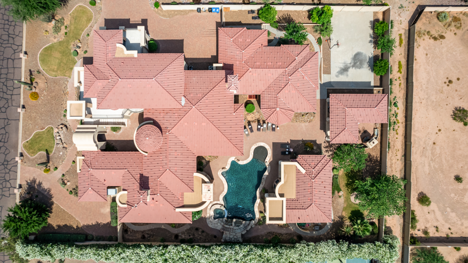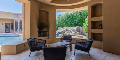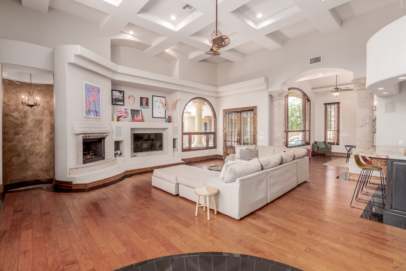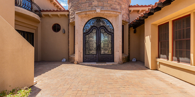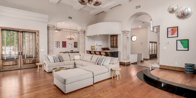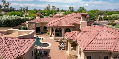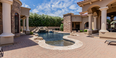 Nestled within the prestigious enclave of Paradise Valley, this home is luxury living at its finest. Grand courtyard entrance w/outdoor gas fireplace. Gourmet kitchen outfitted with Wolff gas stove, Miele Espresso machine, Sub-Zero Refrigerator, granite countertops with built in beverage ice tubs, pantry. Office w/private entrance, & ensuite. Lavish private primary retreat featuring jet tub, double entrance steam shower, his and hers walk-in closets. Basement (1,745 sqft) equipped w/media room, climate-controlled 900 bottle wine cellar, billiard room with bar, bathroom and bedroom. Outdoor living w/putting green, sports court, grotto slide pool, spa, gazebo w/kitchen. Detached casita w/fitness room, infrared sauna, hair salon, 2 baths,1 bdrm, kitchen. Also, for lease $19,000. The chef's kitchen is comprised of wood cabinetry w/crown moulding, travertine stone flooring, a butler's pantry, granite counters, heavy duty stainless steel appliances, and a large prep island w/a breakfast bar.