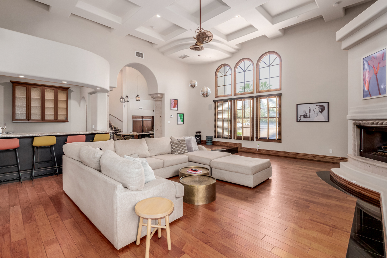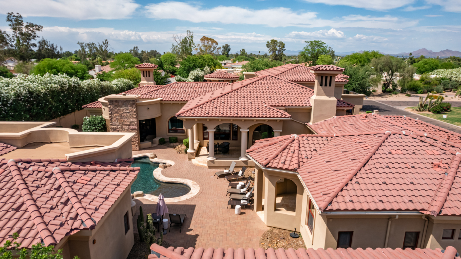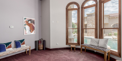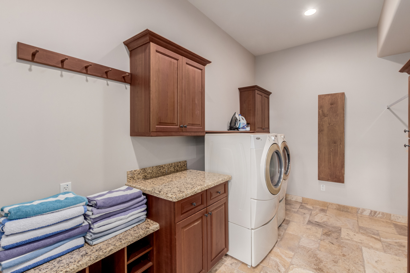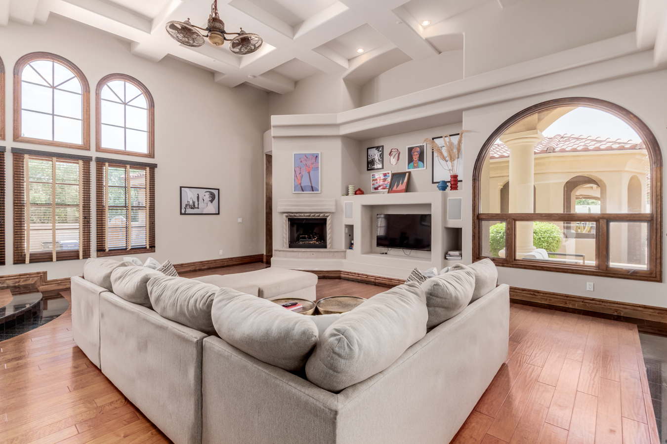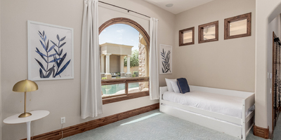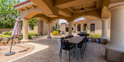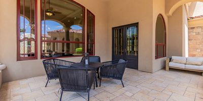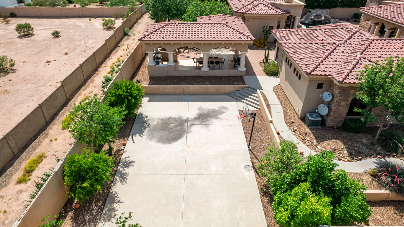 Nestled within the prestigious enclave of Paradise Valley, this home is luxury living at its finest. Grand courtyard entrance w/outdoor gas fireplace. Gourmet kitchen outfitted with Wolff gas stove, Miele Espresso machine, Sub-Zero Refrigerator, granite countertops with built in beverage ice tubs, pantry. Office w/private entrance, & ensuite. Lavish private primary retreat featuring jet tub, double entrance steam shower, his and hers walk-in closets. Basement (1,745 sqft) equipped w/media room, climate-controlled 900 bottle wine cellar, billiard room with bar, bathroom and bedroom. Outdoor living w/putting green, sports court, grotto slide pool, spa, gazebo w/kitchen. Detached casita w/fitness room, infrared sauna, hair salon, 2 baths,1 bdrm, kitchen. Also, for lease $19,000. The chef's kitchen is comprised of wood cabinetry w/crown moulding, travertine stone flooring, a butler's pantry, granite counters, heavy duty stainless steel appliances, and a large prep island w/a breakfast bar.