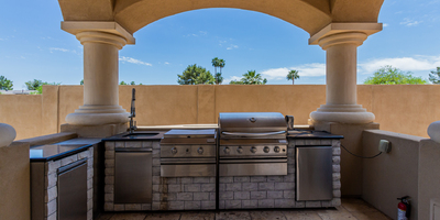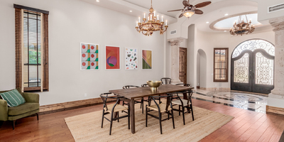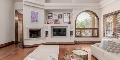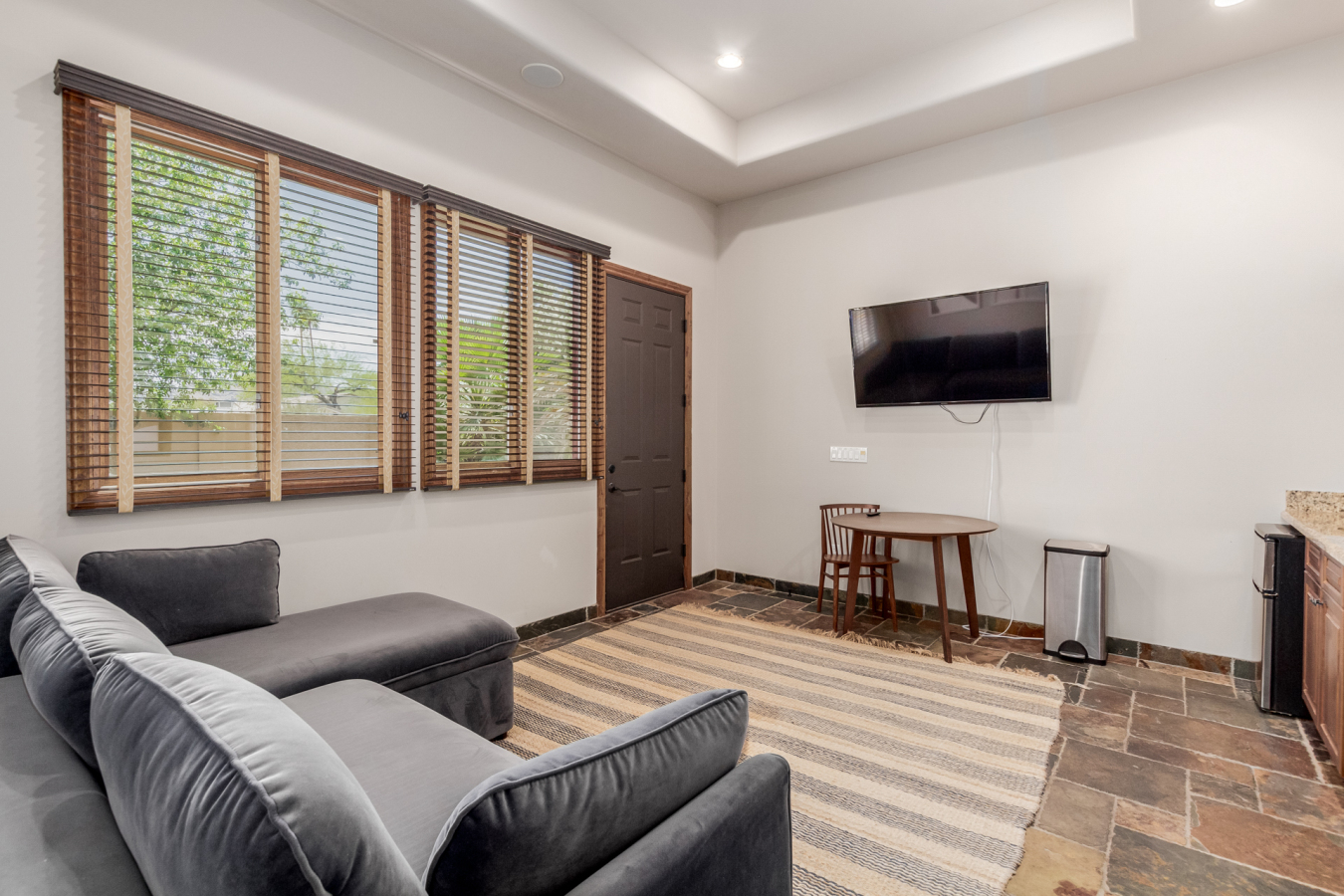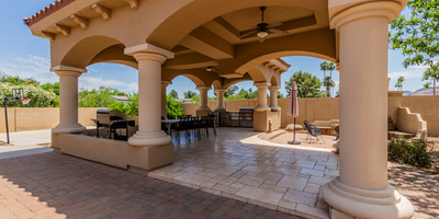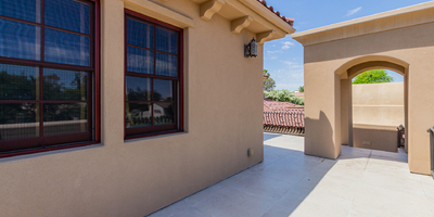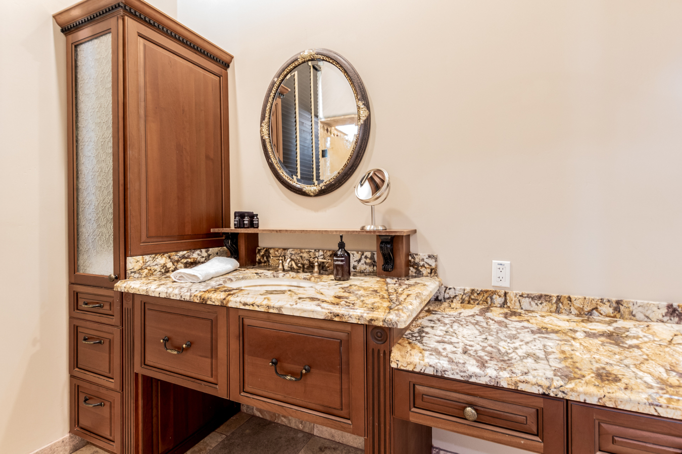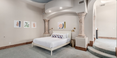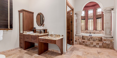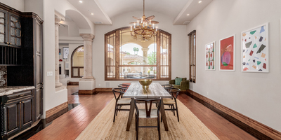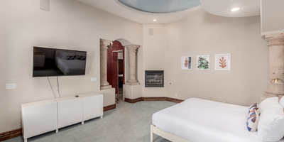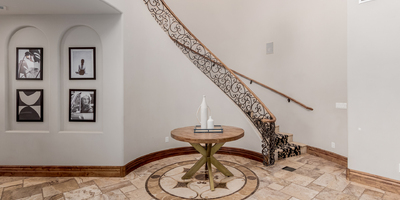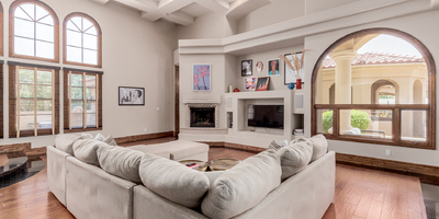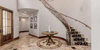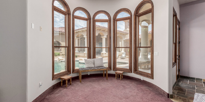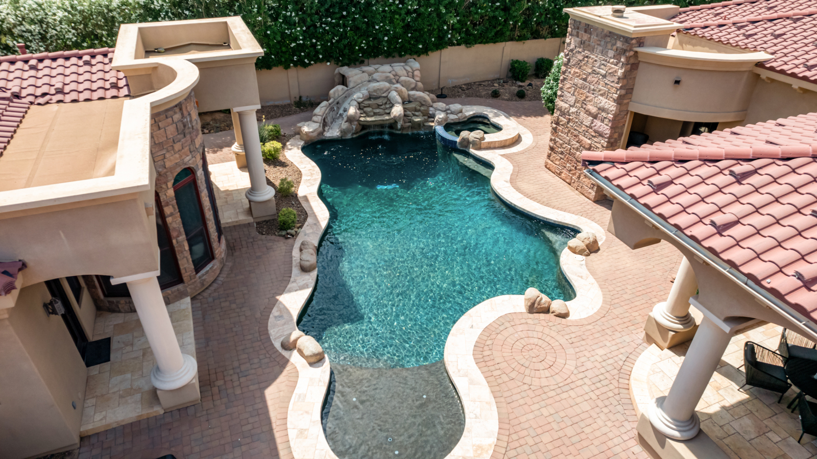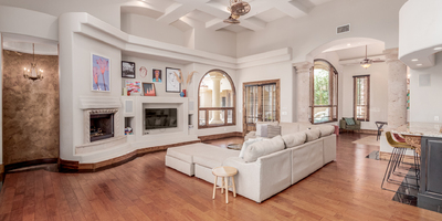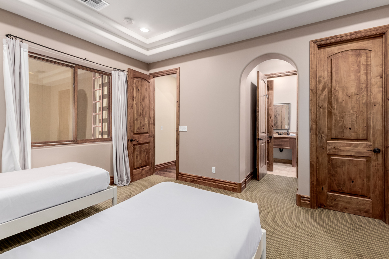 Nestled within the prestigious enclave of Paradise Valley, this home is luxury living at its finest. Grand courtyard entrance w/outdoor gas fireplace. Gourmet kitchen outfitted with Wolff gas stove, Miele Espresso machine, Sub-Zero Refrigerator, granite countertops with built in beverage ice tubs, pantry. Office w/private entrance, & ensuite. Lavish private primary retreat featuring jet tub, double entrance steam shower, his and hers walk-in closets. Basement (1,745 sqft) equipped w/media room, climate-controlled 900 bottle wine cellar, billiard room with bar, bathroom and bedroom. Outdoor living w/putting green, sports court, grotto slide pool, spa, gazebo w/kitchen. Detached casita w/fitness room, infrared sauna, hair salon, 2 baths,1 bdrm, kitchen. Also, for lease $19,000. The chef's kitchen is comprised of wood cabinetry w/crown moulding, travertine stone flooring, a butler's pantry, granite counters, heavy duty stainless steel appliances, and a large prep island w/a breakfast bar.