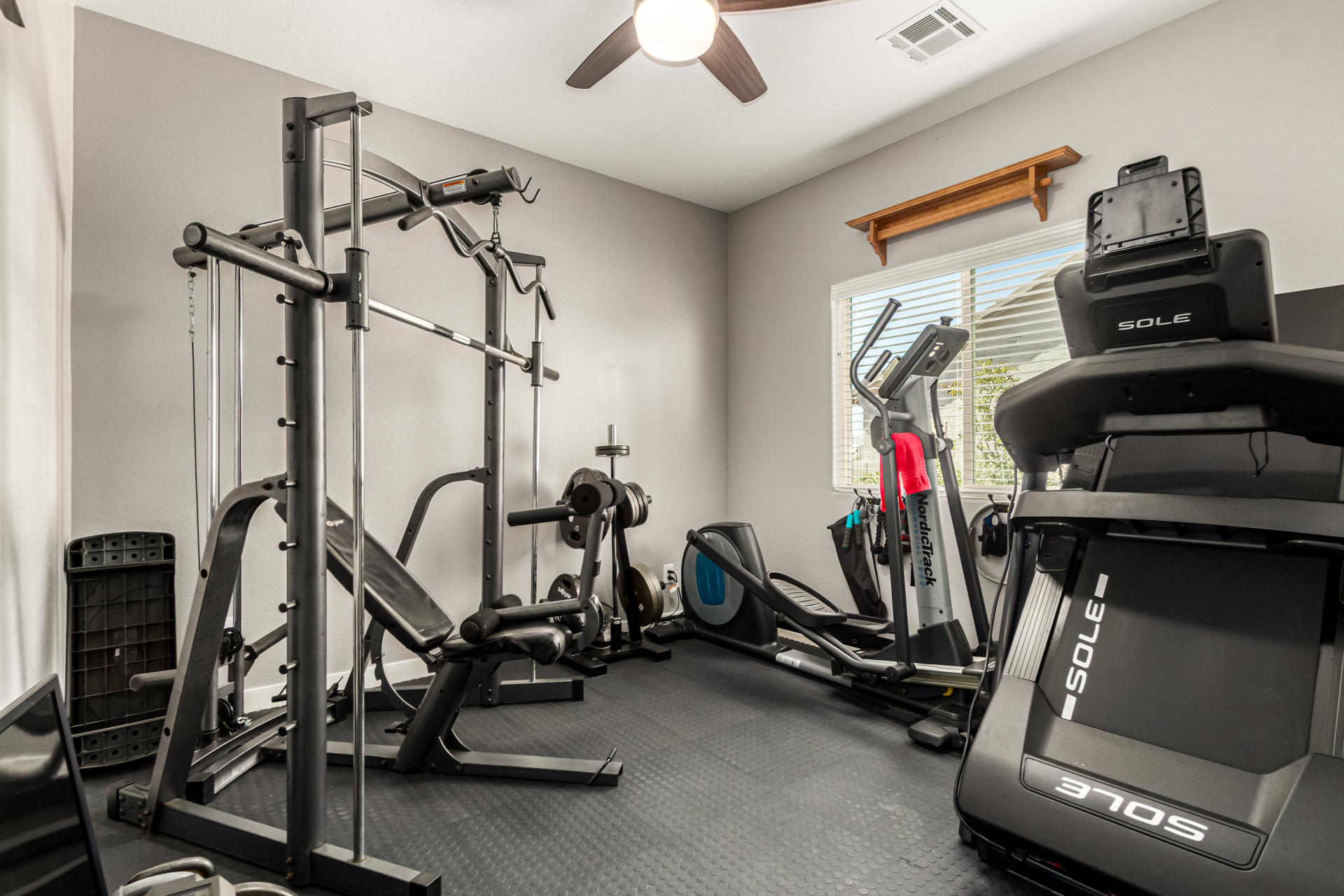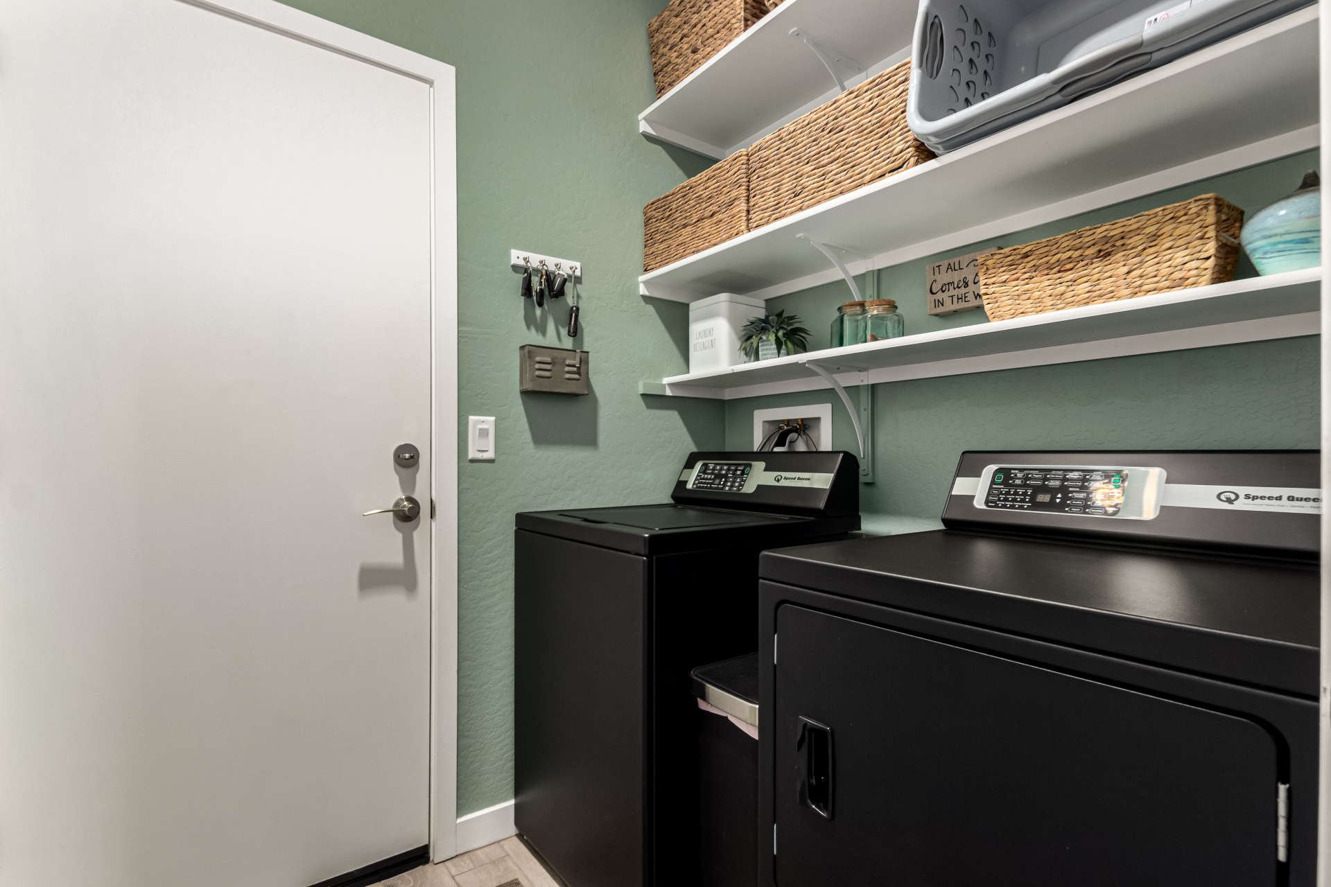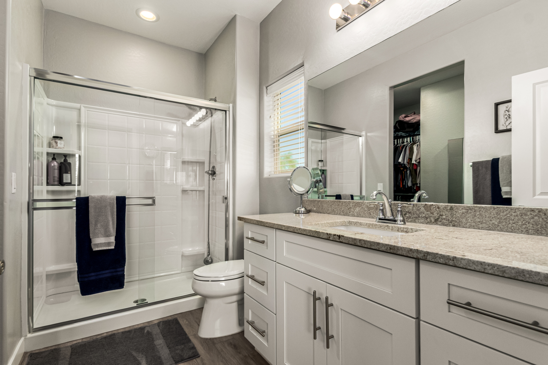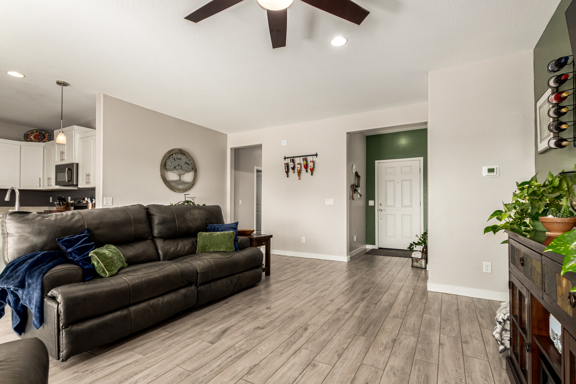 Move-in ready 2021-built home featuring 3 bedrooms and 2 baths with modern elegance throughout. Enjoy custom paint, wooden blinds, ceiling fans in every room, and tile flooring across the entire house. The kitchen shines with stainless steel appliances, slow close cabinets granite countertops. The finished garage offers custom built-in shelving for added storage and organization. Relax on extended front and back patios with a beautiful, custom steel security door. RV-ready with lighting, electricity, a concrete slab, and a custom steel gate. The beautifully landscaped yard includes mature orange and pomegranate trees on a full watering system within a private, walled backyard. One of the nicest homes and yard in the area. Don't miss out on this fantastic home!