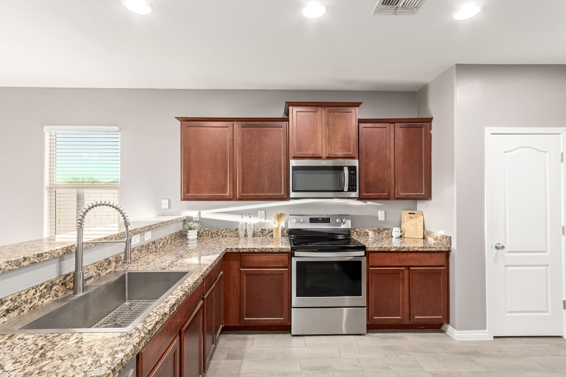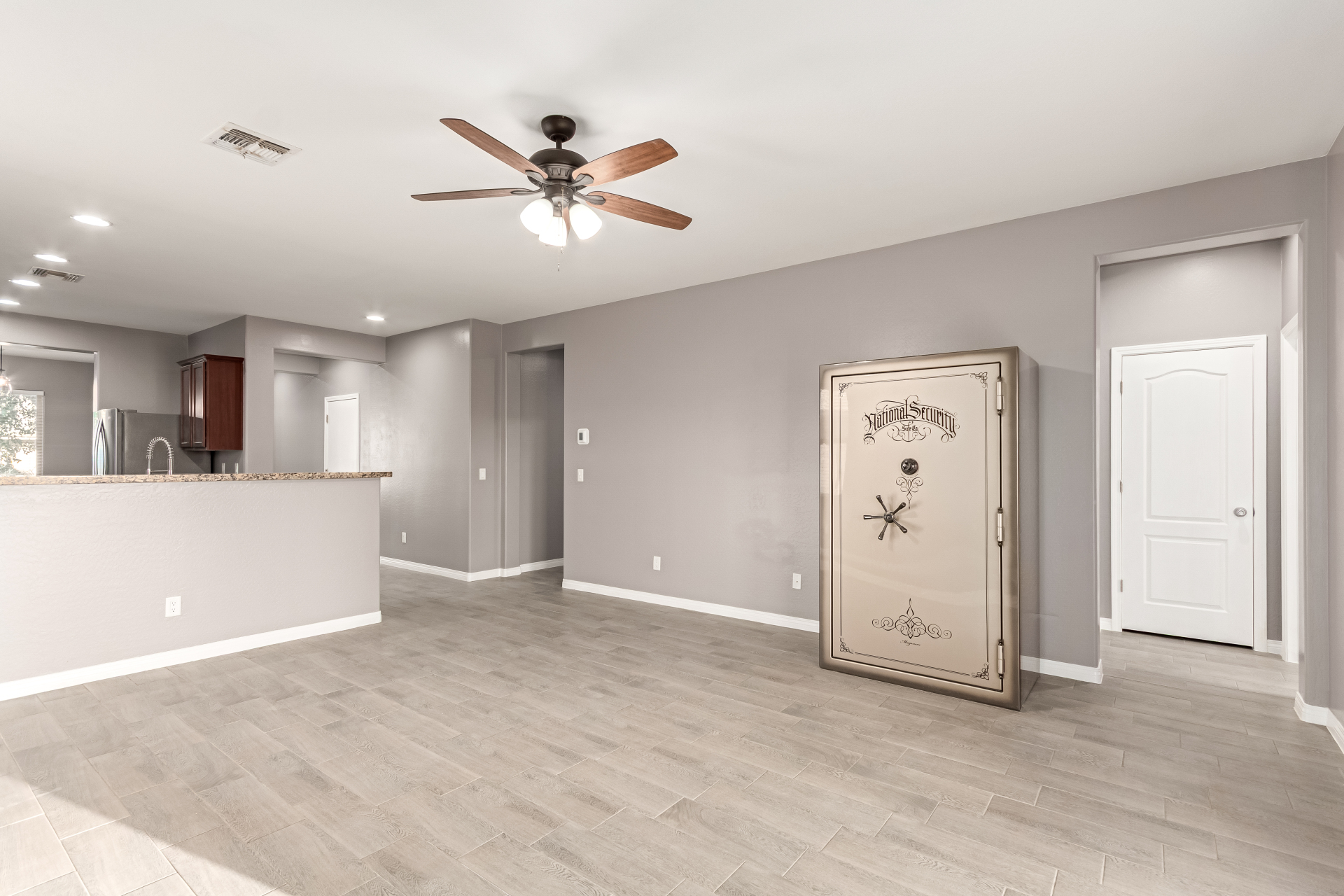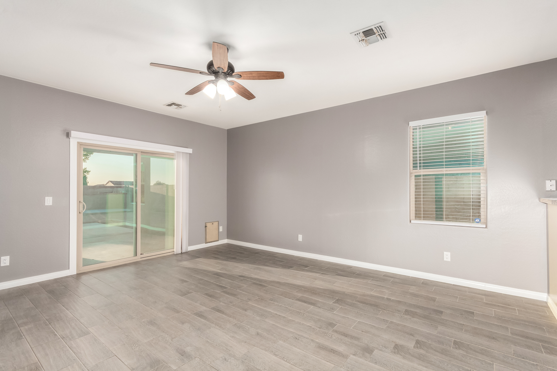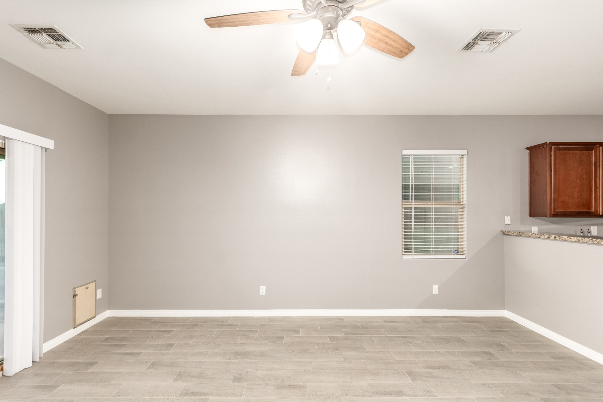 The search is over! Move-in ready home featuring a 2-car garage, RV gate. Explore the spacious living room with recessed lighting, thick baseboards, & wood-style tile floors. Enjoy gatherings in the formal dining room! Chef's kitchen has beautiful cabinetry with crown molding, granite counters, a breakfast bar, SS appliances, & a pantry for added storage. Discover a main bedroom complete with a walk-in closet & a stylish ensuite featuring updated flooring, a soaking tub, & a grab bar in the shower. The huge backyard is a blank canvas ready for your creativity, offering covered patio & a paved area ideal for adding a Ramada, BBQ, or firepit. With no neighbors behind, you'll enjoy extra privacy! This home is ready for you to make it your own!