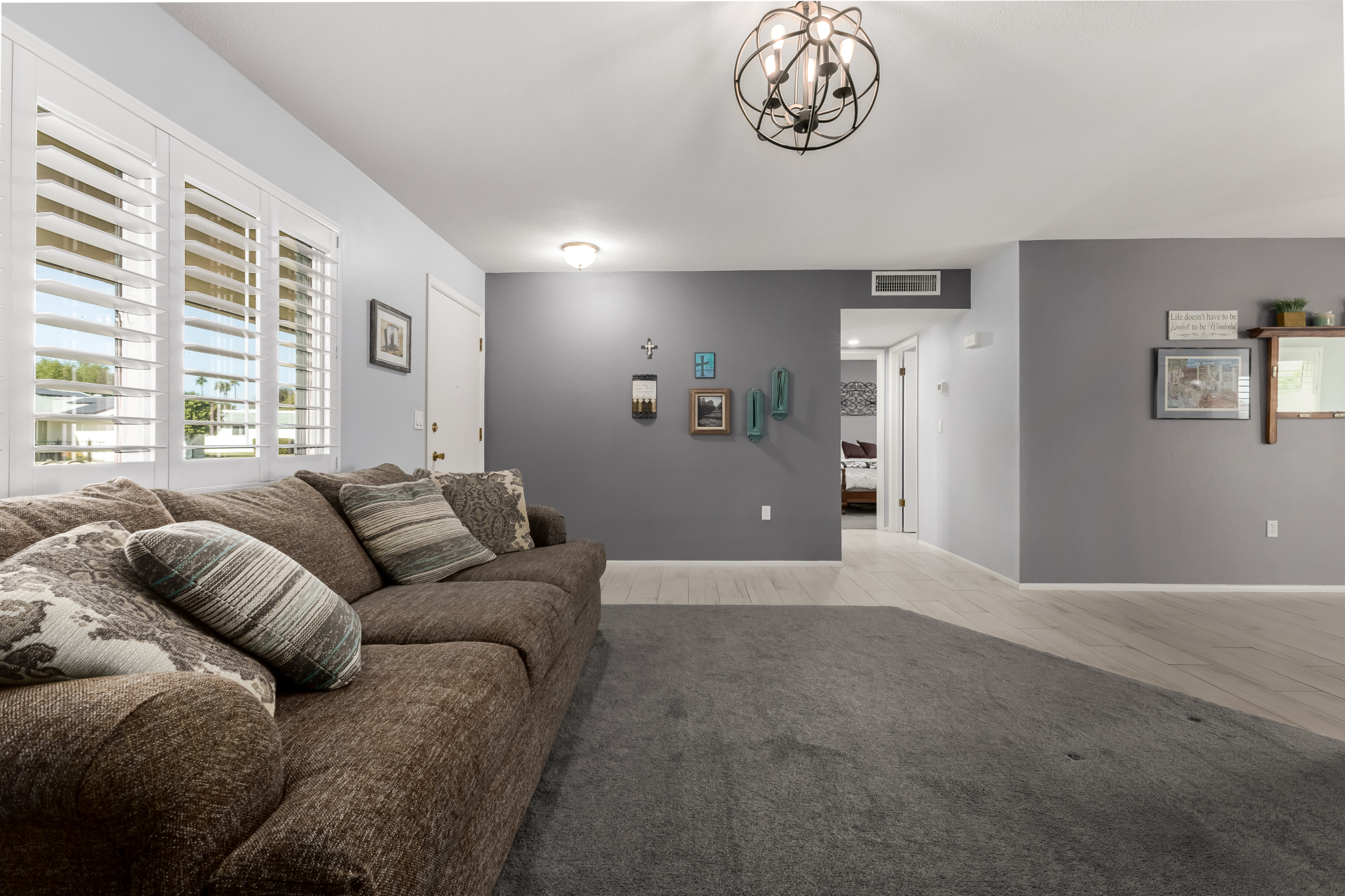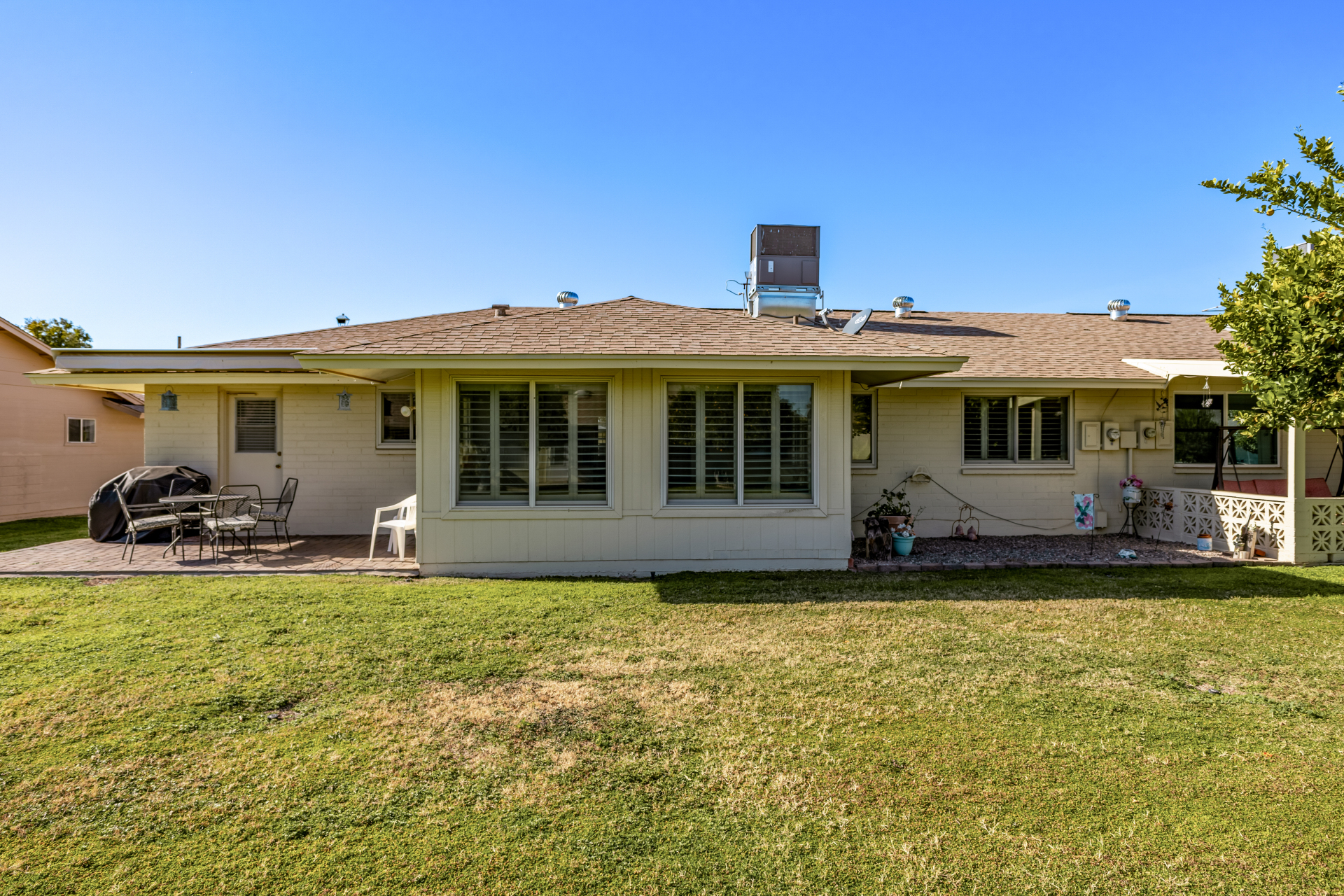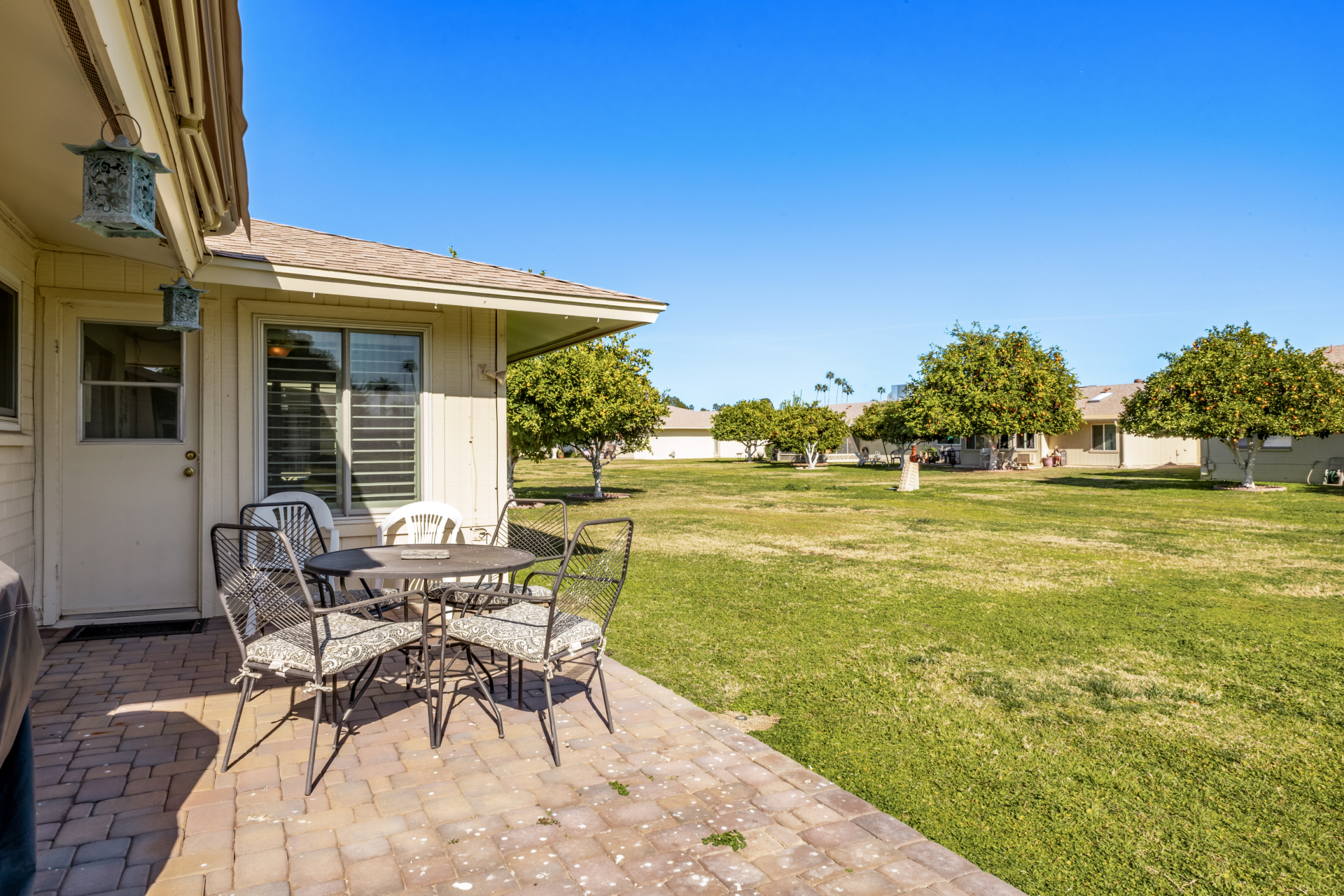 Beautifully Remodeled Sun City Gemini/Twin Home. This move-in ready 2-bedroom, 2-bath home blends modern upgrades with the easy, low-maintenance lifestyle Sun City is famous for. Enjoy Anderson windows, plantation shutters, fresh custom paint, smooth ceilings (no popcorn), and updated flooring throughout. The stunning kitchen features quartz countertops, a farmhouse sink, updated appliances, and convenient pull-out pantry shelving. Both bathrooms have been tastefully remodeled with elegant custom vanities. Major system upgrades include a new HVAC, tankless water heater, and electrical improvements, giving peace of mind along with style. A rare opportunity to own a highly upgraded home in one of Arizona's most sought-after active adult communities.