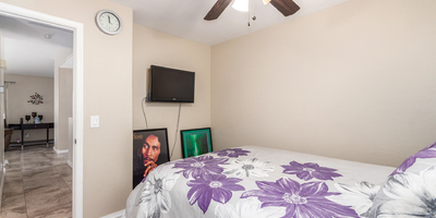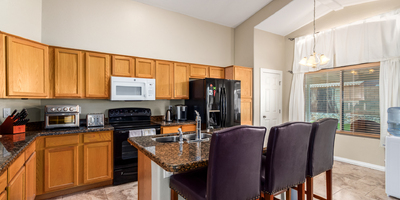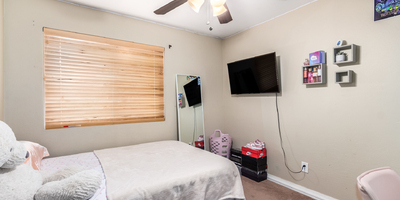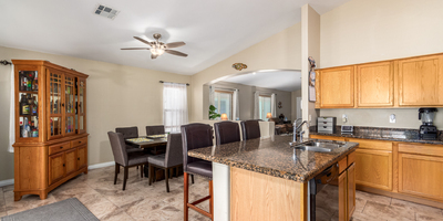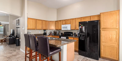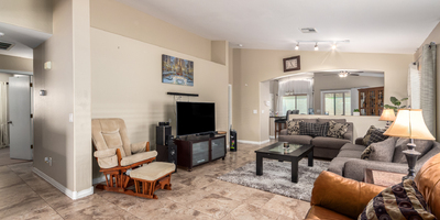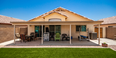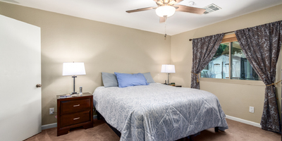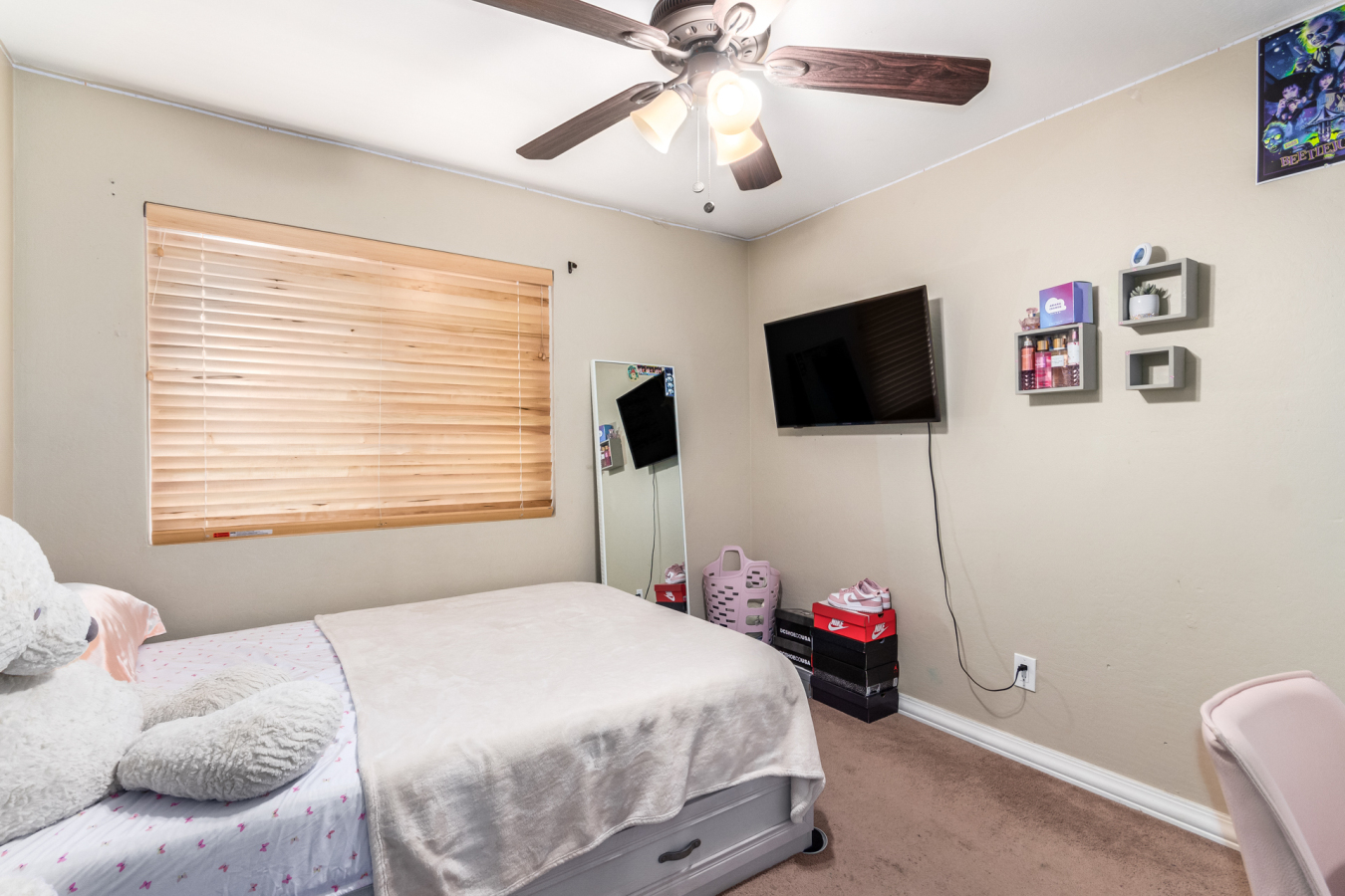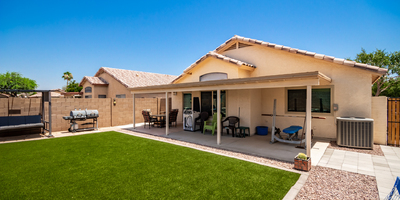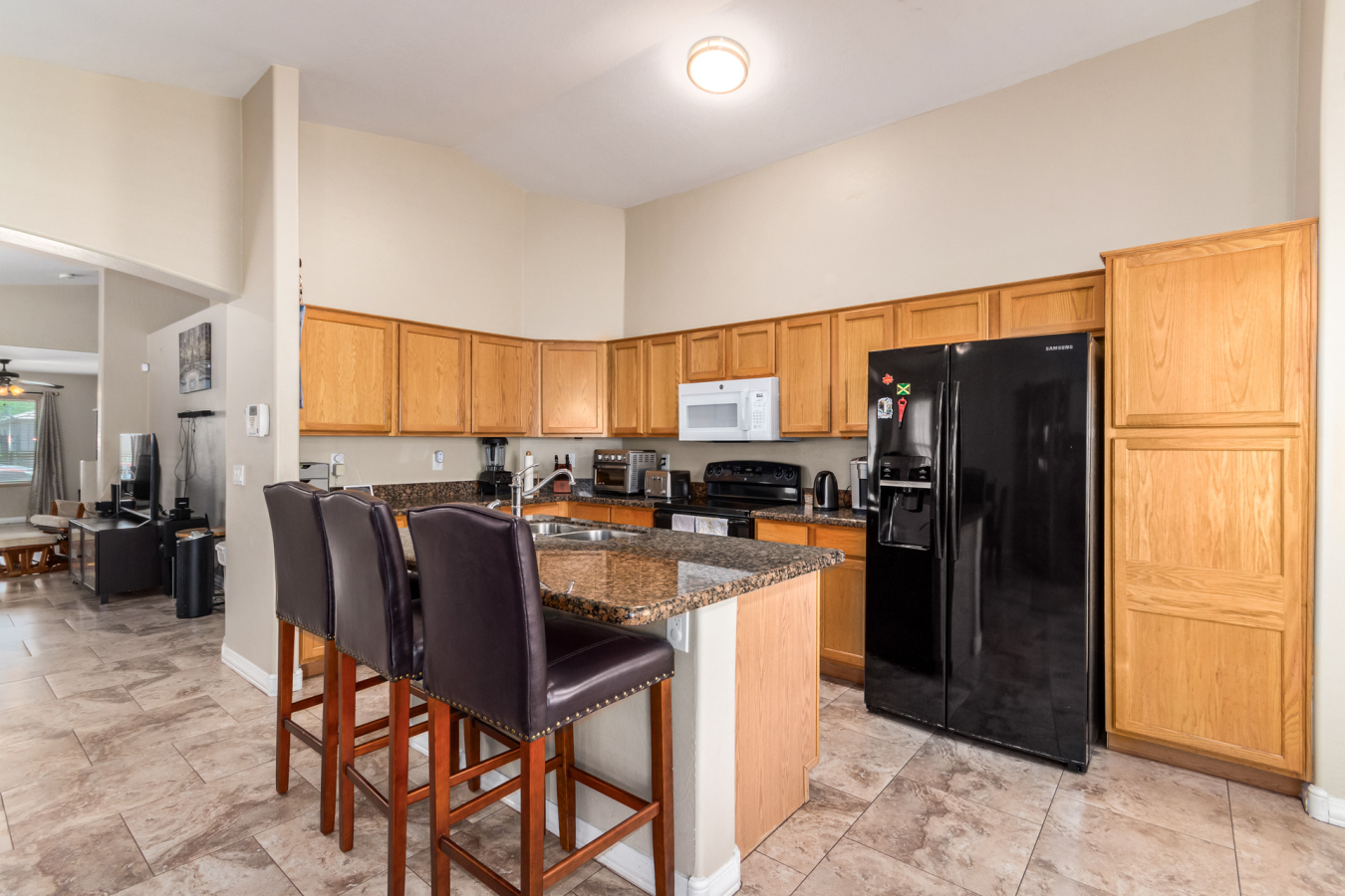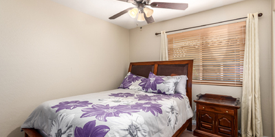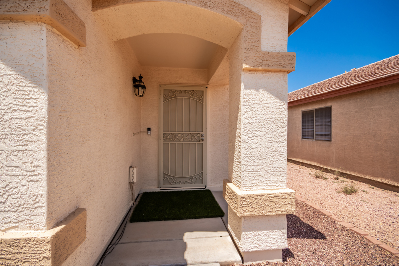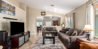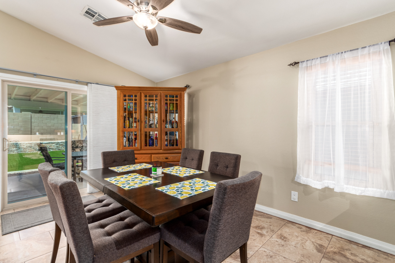Welcome to this charming single-level home in the desirable Ashton Ranch! Featuring 3 beds, 2 baths, a 2-car garage, & an easy-care landscape. Come inside to find a large living room and an inviting family room that opens to the kitchen! Vaulted ceilings add to the airy feel, complemented by neutral paint and tile flooring w/soft carpet in bedrooms. The kitchen features built-in appliances, granite counters, a pantry, ample wood cabinetry, and an island w/breakfast bar. The den is a versatile space, ideal for an office or reading nook. Primary bedroom boasts a walk-in closet and a full bathroom for added comfort. Discover the perfectly sized backyard, excellent for relaxing or enjoying BBQ! A covered patio, storage shed, & artificial turf complete the picture. 3 community pools to enjoy.-