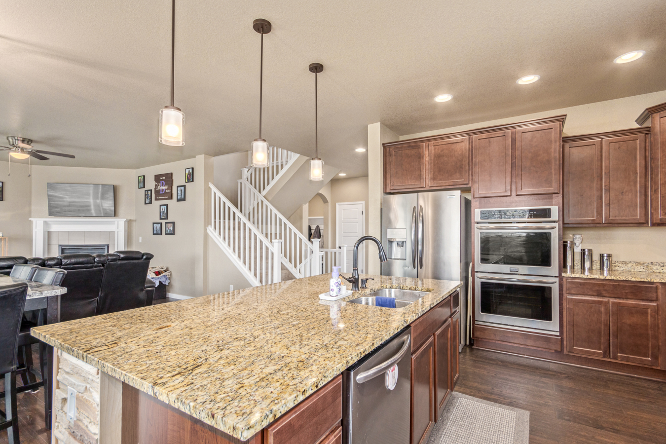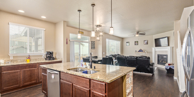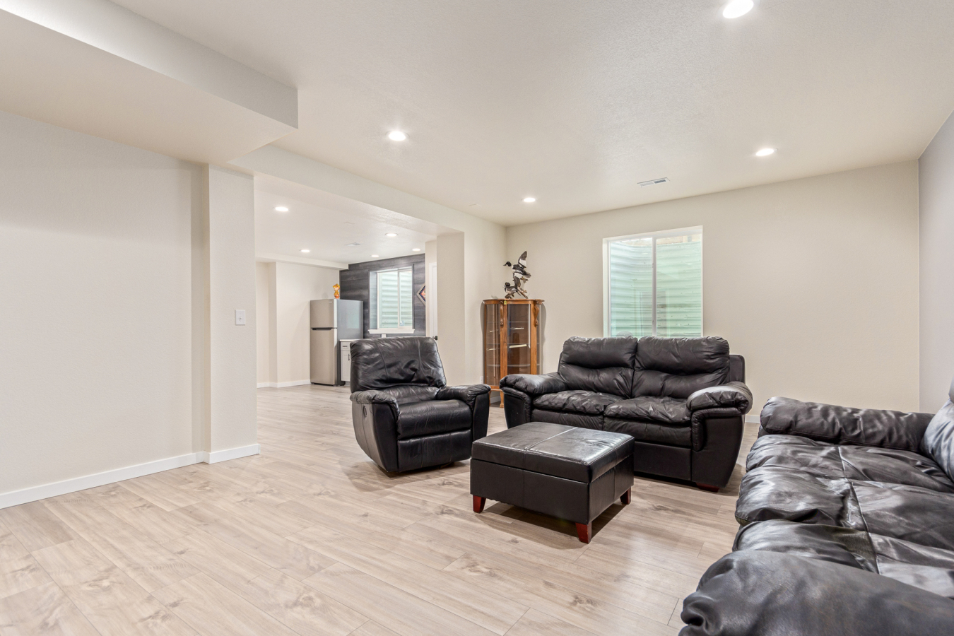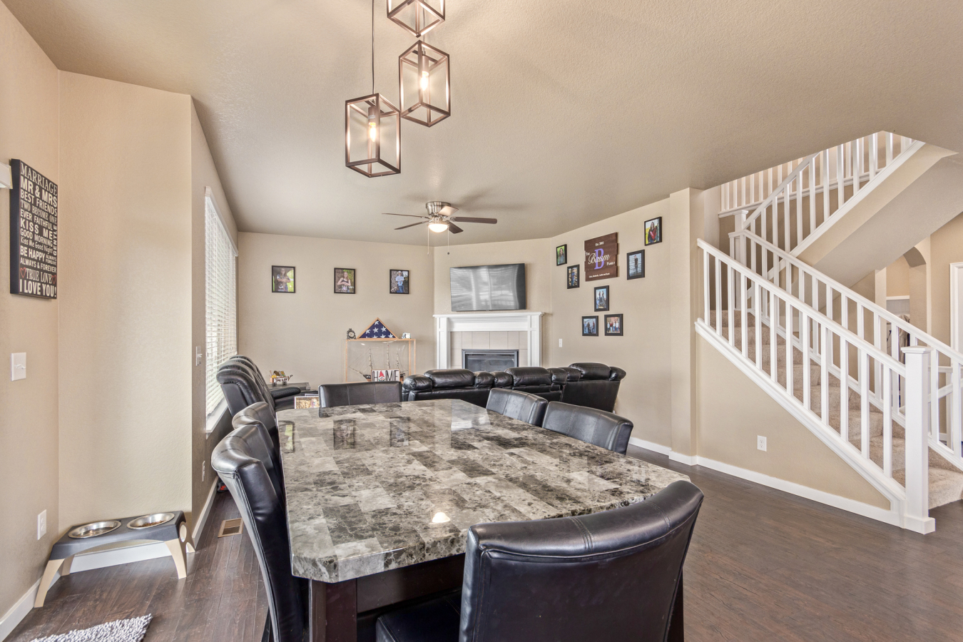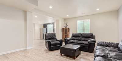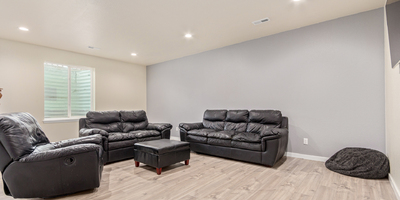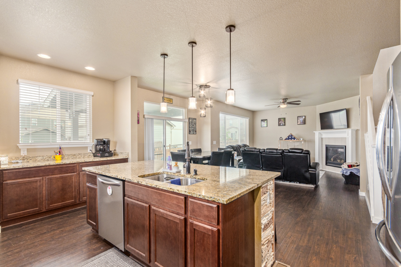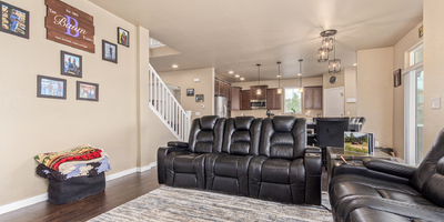 Indulge in sprawling luxury on this corner lot! This expansive 6-bedroom home offers an abundance of space and functionality, perfect for large families or entertaining enthusiasts. New vinyl plank flooring graces the main level, which features an office, a formal dining room, an open-concept kitchen with breakfast bar and room for a table with seating, flowing into a living room warmed by a gas fireplace, and a conveniently located bedroom with a 3/4 bath. Upstairs, tranquility awaits in the massive primary bedroom with a sitting area and luxurious 5-piece bath. Two additional bedrooms share a jack and jill bath, while a large loft provides a versatile space for play, entertainment, or additional living. The finished basement boasts two bedrooms, a 3/4 bath, a family room, a functional kitchenette, a laundry room, and a dedicated storage space, making it the perfect retreat or entertainment zone. Unwind under the stars on the covered back patio in your spacious, well-maintained yard.