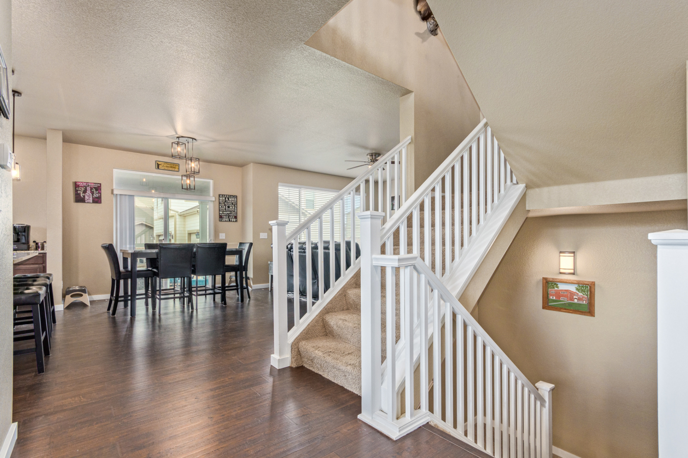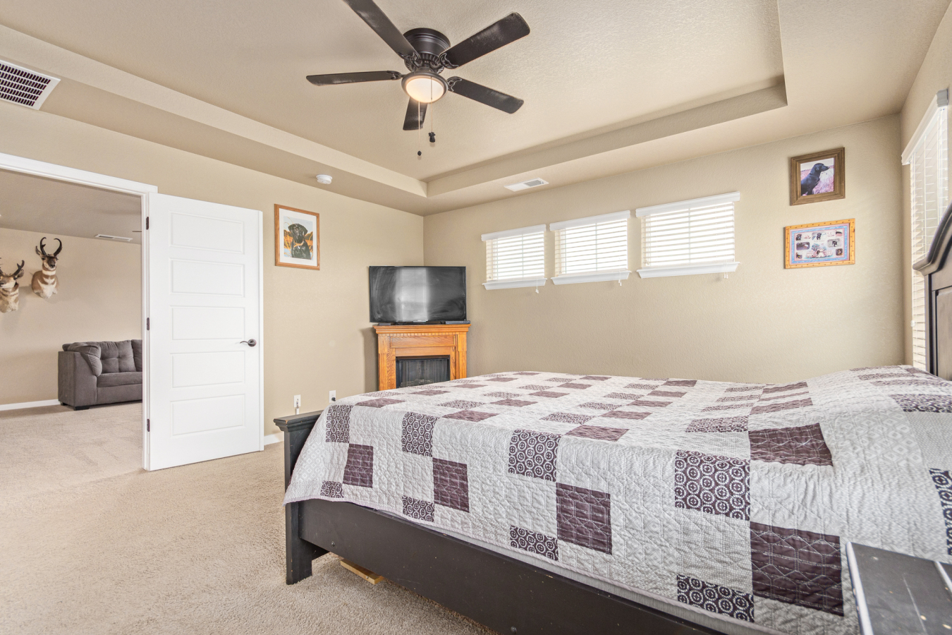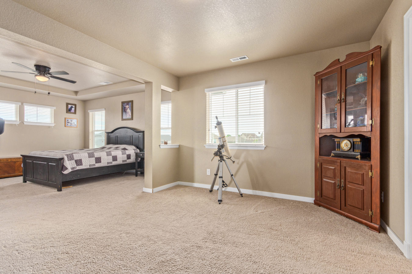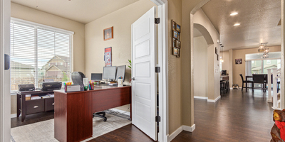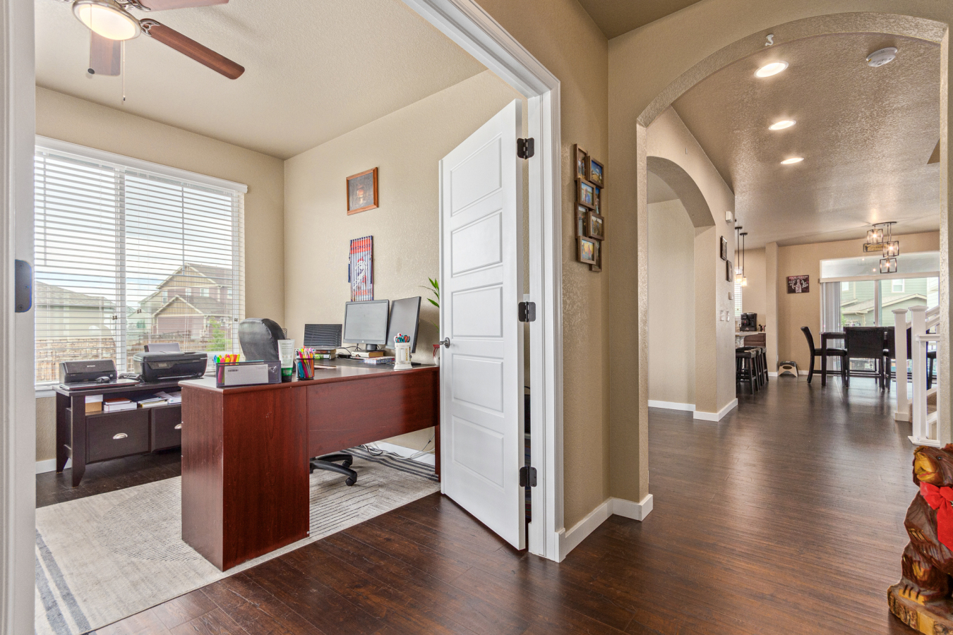 Indulge in sprawling luxury on this corner lot! This expansive 6-bedroom home offers an abundance of space and functionality, perfect for large families or entertaining enthusiasts. New vinyl plank flooring graces the main level, which features an office, a formal dining room, an open-concept kitchen with breakfast bar and room for a table with seating, flowing into a living room warmed by a gas fireplace, and a conveniently located bedroom with a 3/4 bath. Upstairs, tranquility awaits in the massive primary bedroom with a sitting area and luxurious 5-piece bath. Two additional bedrooms share a jack and jill bath, while a large loft provides a versatile space for play, entertainment, or additional living. The finished basement boasts two bedrooms, a 3/4 bath, a family room, a functional kitchenette, a laundry room, and a dedicated storage space, making it the perfect retreat or entertainment zone. Unwind under the stars on the covered back patio in your spacious, well-maintained yard.