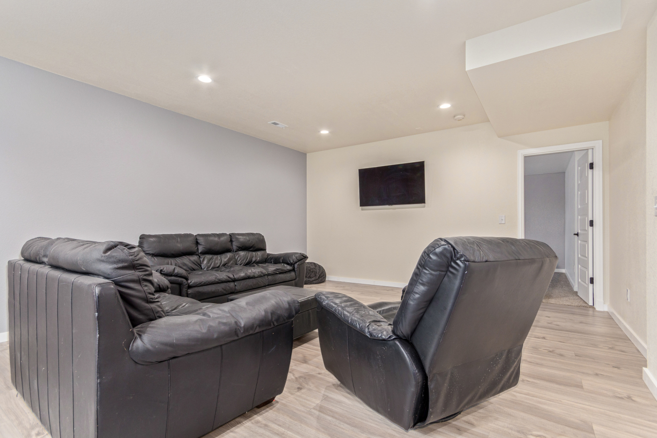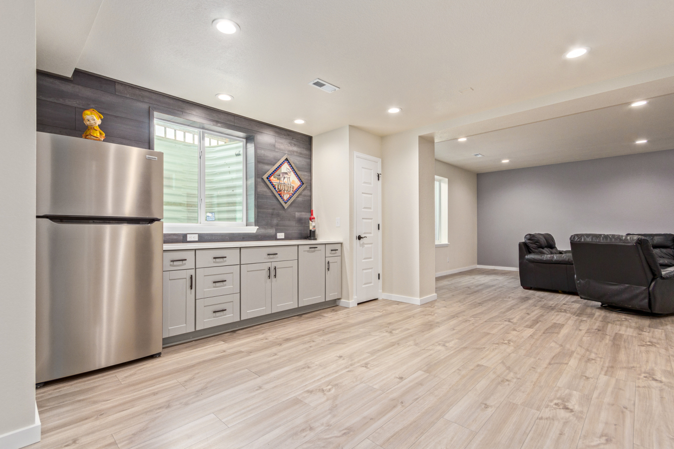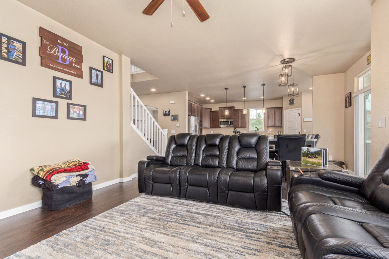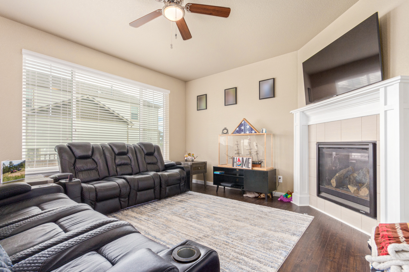 Indulge in sprawling luxury on this corner lot! This expansive 6-bedroom home offers an abundance of space and functionality, perfect for large families or entertaining enthusiasts. New vinyl plank flooring graces the main level, which features an office, a formal dining room, an open-concept kitchen with breakfast bar and room for a table with seating, flowing into a living room warmed by a gas fireplace, and a conveniently located bedroom with a 3/4 bath. Upstairs, tranquility awaits in the massive primary bedroom with a sitting area and luxurious 5-piece bath. Two additional bedrooms share a jack and jill bath, while a large loft provides a versatile space for play, entertainment, or additional living. The finished basement boasts two bedrooms, a 3/4 bath, a family room, a functional kitchenette, a laundry room, and a dedicated storage space, making it the perfect retreat or entertainment zone. Unwind under the stars on the covered back patio in your spacious, well-maintained yard.
