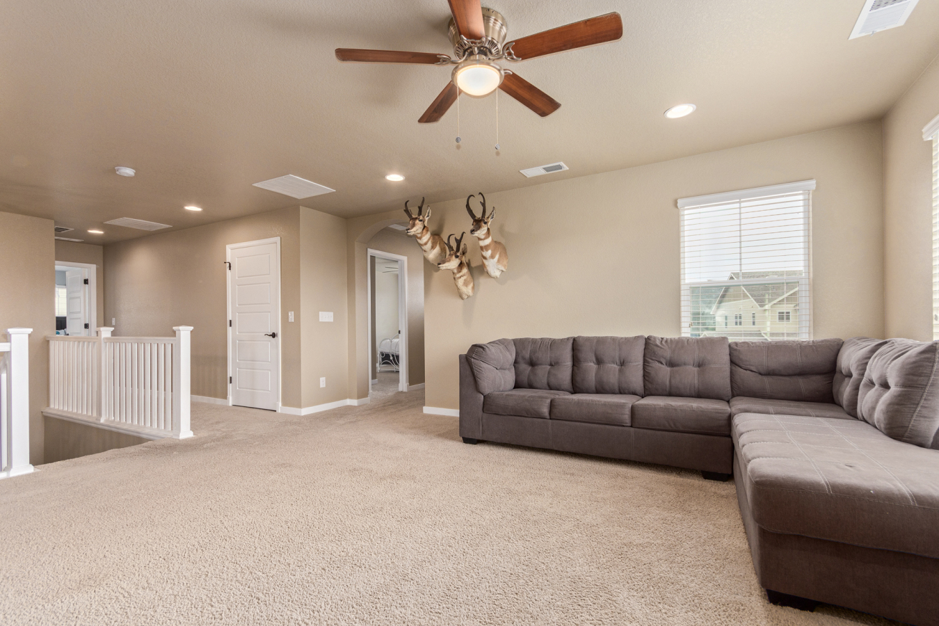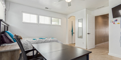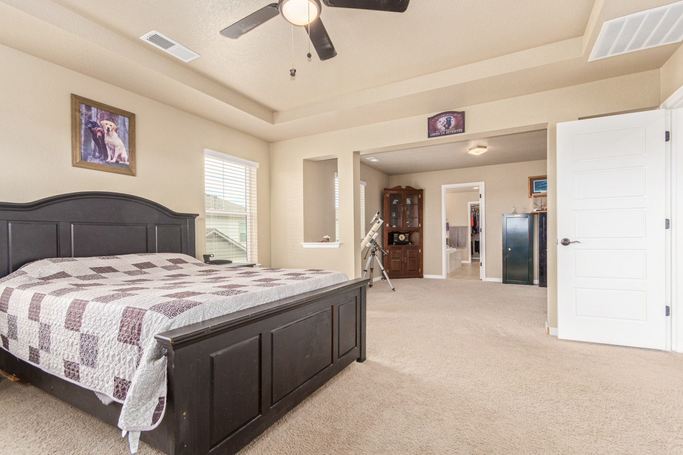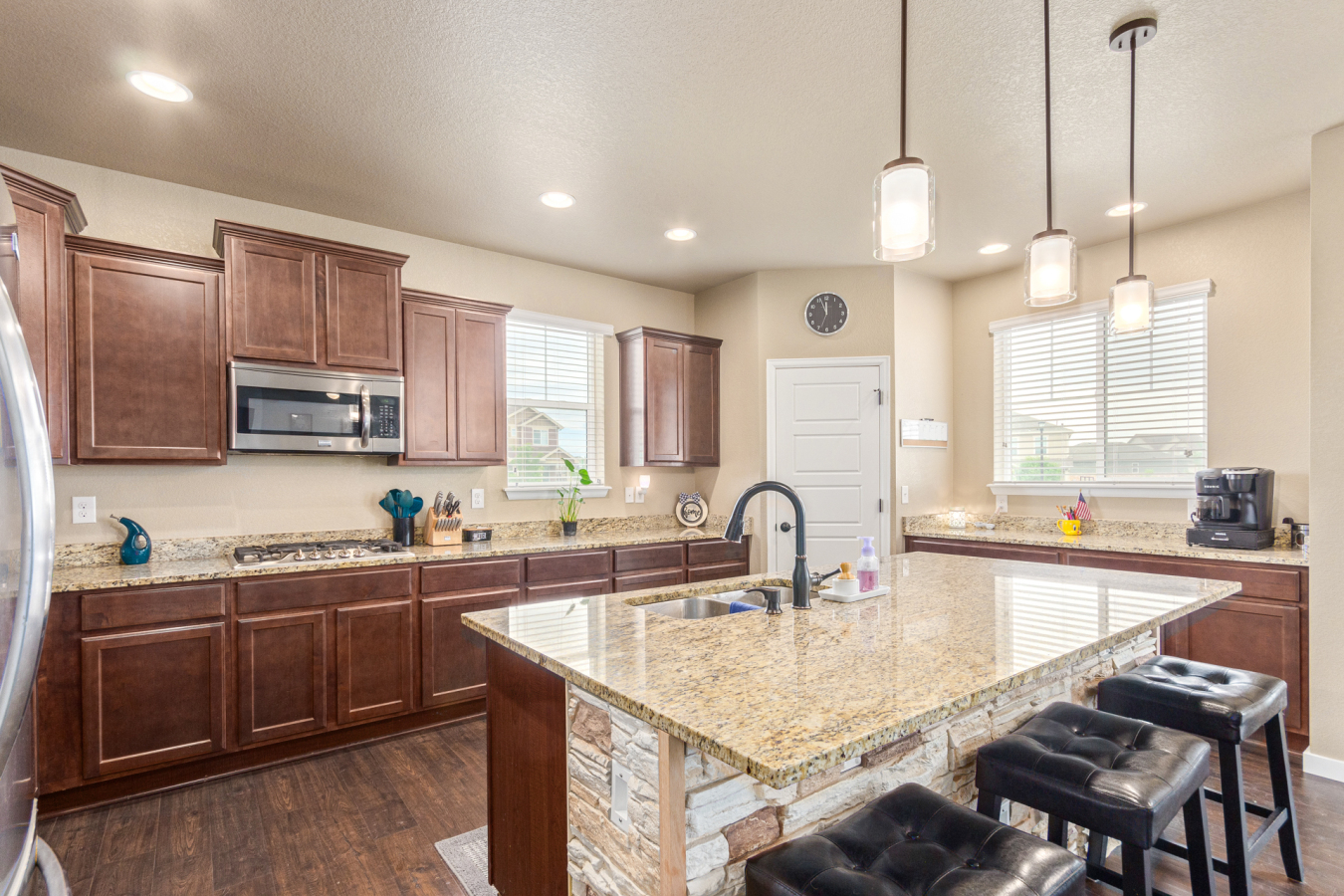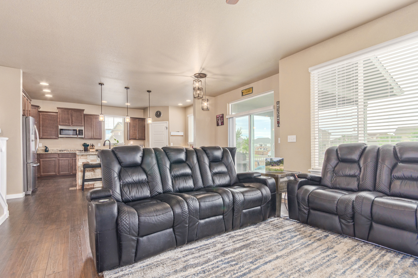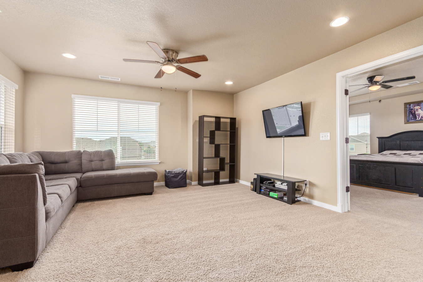 Indulge in sprawling luxury on this corner lot! This expansive 6-bedroom home offers an abundance of space and functionality, perfect for large families or entertaining enthusiasts. New vinyl plank flooring graces the main level, which features an office, a formal dining room, an open-concept kitchen with breakfast bar and room for a table with seating, flowing into a living room warmed by a gas fireplace, and a conveniently located bedroom with a 3/4 bath. Upstairs, tranquility awaits in the massive primary bedroom with a sitting area and luxurious 5-piece bath. Two additional bedrooms share a jack and jill bath, while a large loft provides a versatile space for play, entertainment, or additional living. The finished basement boasts two bedrooms, a 3/4 bath, a family room, a functional kitchenette, a laundry room, and a dedicated storage space, making it the perfect retreat or entertainment zone. Unwind under the stars on the covered back patio in your spacious, well-maintained yard.