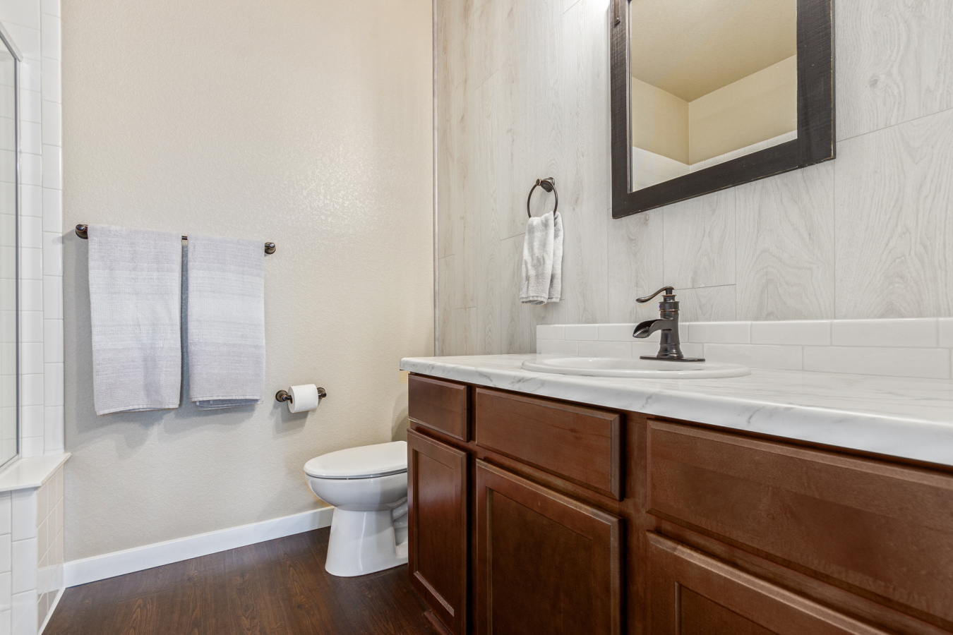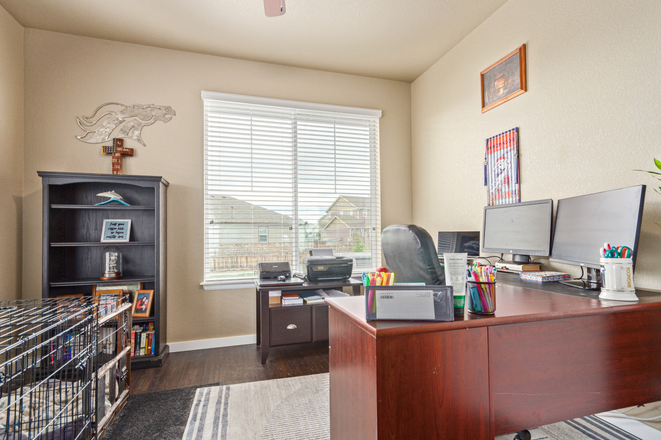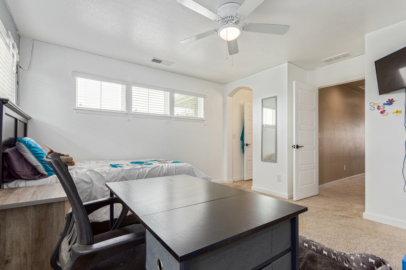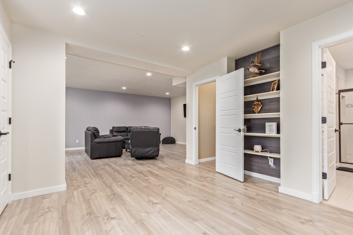 Indulge in sprawling luxury on this corner lot! This expansive 6-bedroom home offers an abundance of space and functionality, perfect for large families or entertaining enthusiasts. New vinyl plank flooring graces the main level, which features an office, a formal dining room, an open-concept kitchen with breakfast bar and room for a table with seating, flowing into a living room warmed by a gas fireplace, and a conveniently located bedroom with a 3/4 bath. Upstairs, tranquility awaits in the massive primary bedroom with a sitting area and luxurious 5-piece bath. Two additional bedrooms share a jack and jill bath, while a large loft provides a versatile space for play, entertainment, or additional living. The finished basement boasts two bedrooms, a 3/4 bath, a family room, a functional kitchenette, a laundry room, and a dedicated storage space, making it the perfect retreat or entertainment zone. Unwind under the stars on the covered back patio in your spacious, well-maintained yard.