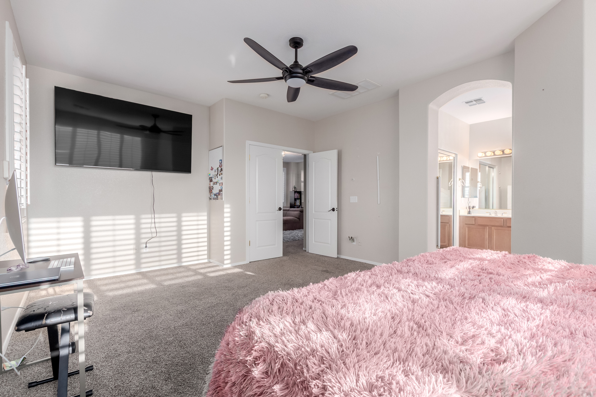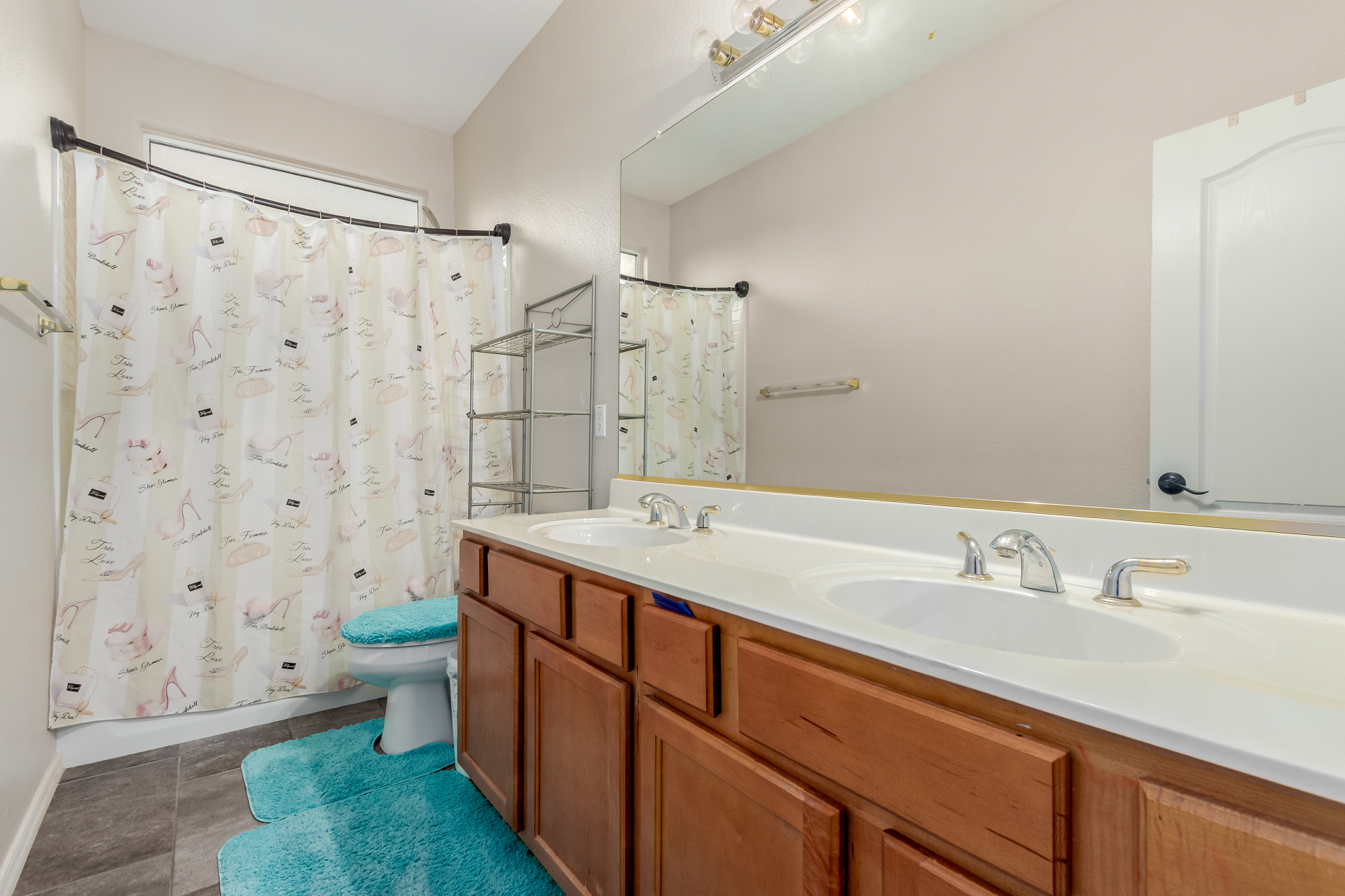Get ready to fall in love with this beautiful 4-bedroom, 2.5-bathroom home with a 3-car garage and an RV gate- perfect for all your vehicles and toys. The backyard feels like your own private retreat, featuring a sparkling pool with a tranquil water feature and artificial turf that stays green year-round! Inside, the home offers a spacious, open floor plan filled with natural light. Enjoy having two cozy fireplaces - one in the family room, perfect for gathering with loved ones, and another in the loft, creating a warm and inviting space for a media room, game area, or home office. All four bedrooms and two full bathrooms are located upstairs, offering privacy and separation from the main living areas. The kitchen is designed for both cooking and entertaining, with plenty of counter space and storage. Located in a great neighborhood close to parks, schools, and shopping!