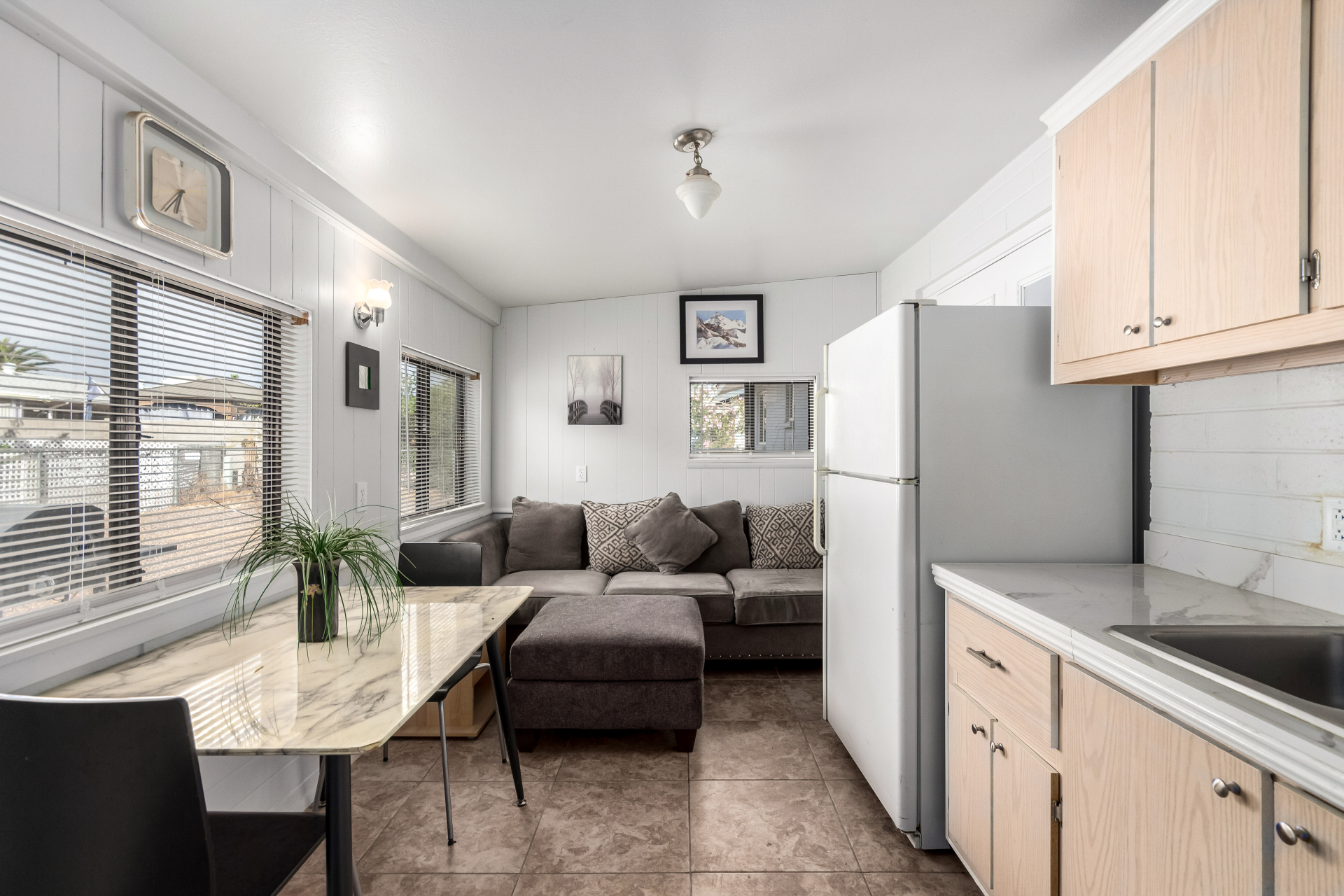 Discover modern yet classic charm in this beautifully updated home, nestled in a sought-after 55+ community. Walk in and you're greeted with a light-filled room and stunning kitchen. Journey further in and you'll find an Arizona Room that has been transformed into a private studio apartment, a generously sized workshop, and a 12x12 shed in the backyard equipped with plumbing and air-conditioning. This home offers more than a place to liveāit provides style and practicality.