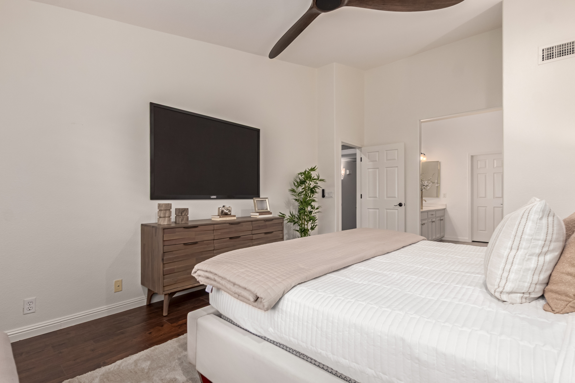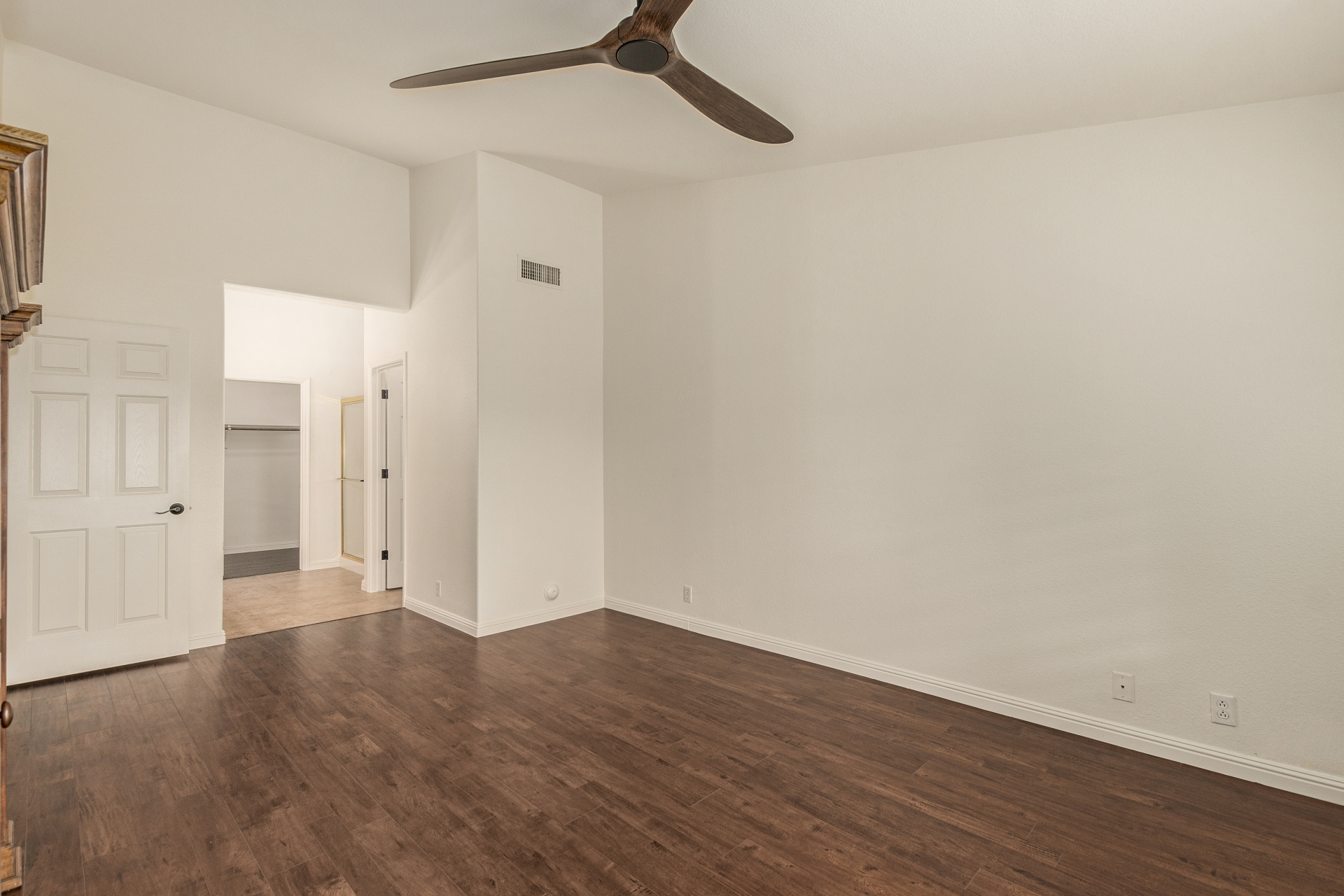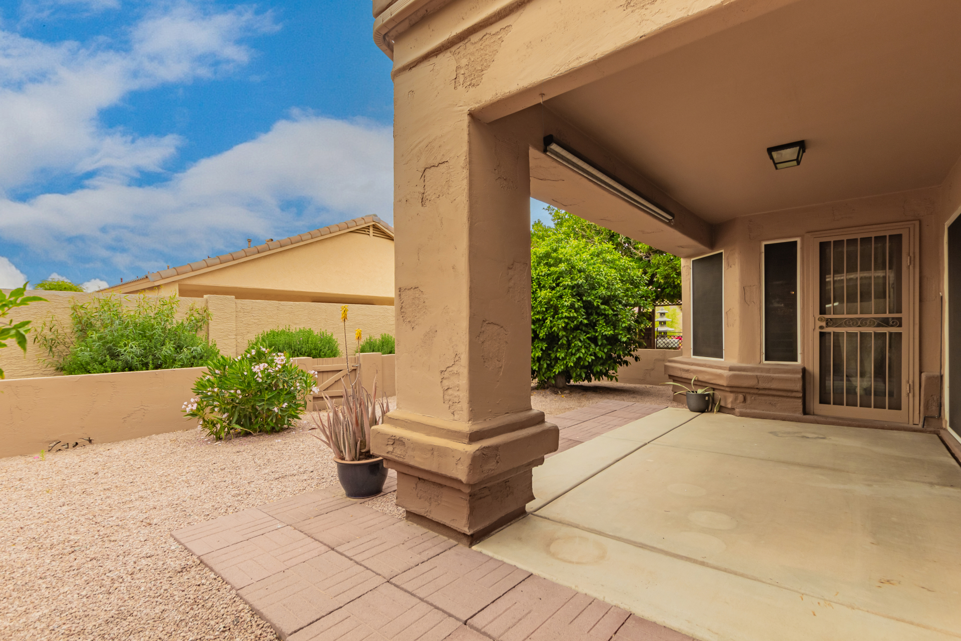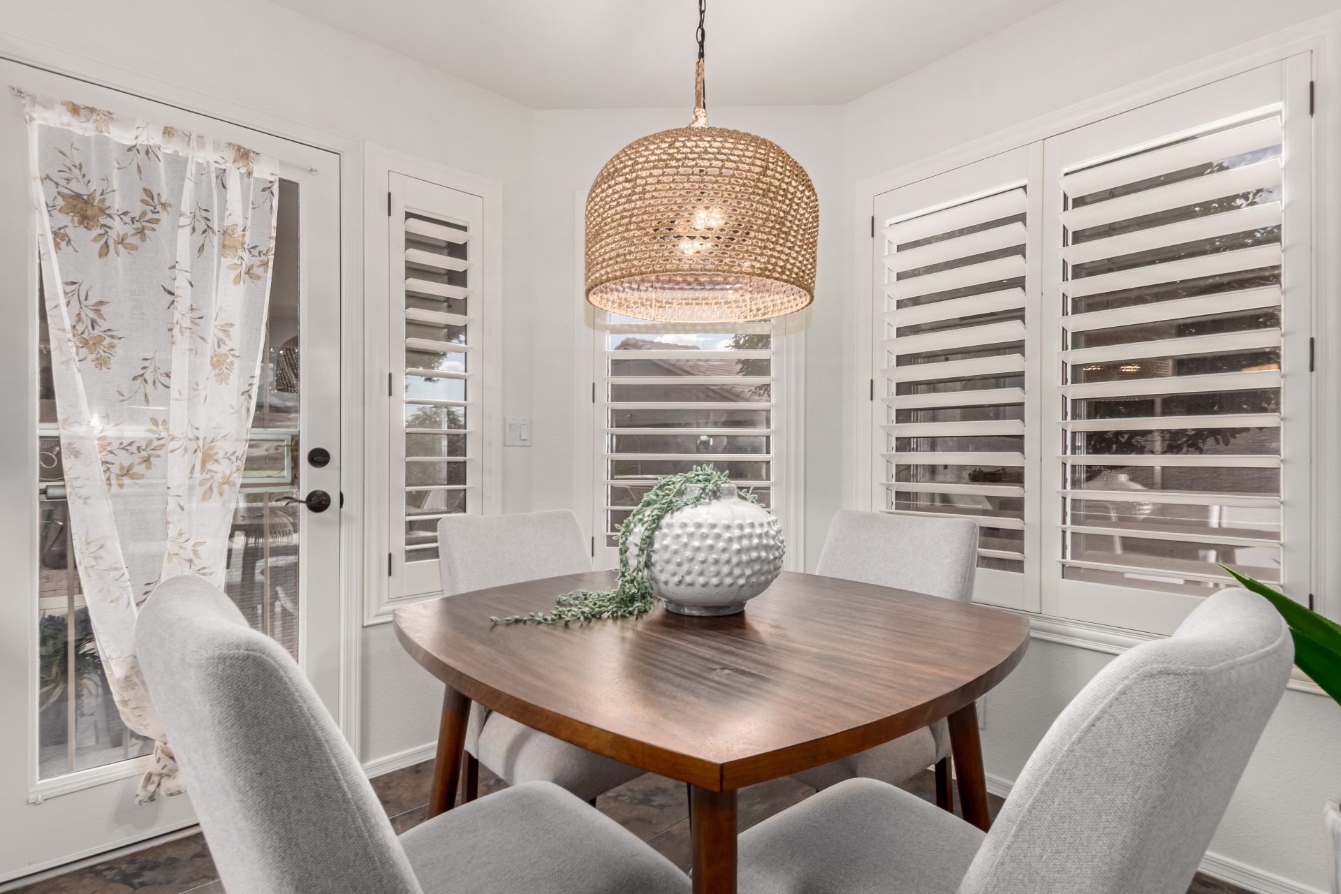 Be the proud owner of this well maintained & charming 2-bed, 2-bath, 2-car garage! The interior welcomes you into spacious living areas featuring wood-look floors, soaring vaulted ceilings, sliding doors for easy access to the patio, and new interior paint. Cook delicious & nutritious meals in the pristine kitchen displaying white cabinetry for abundant storage, custom tile backsplash, granite counters, and SS appliances. You'll love the breakfast nook boasting sunny bay window and backyard access! The serene main retreat offers a private bathroom with double sinks for convenience and a sizable walk-in closet. Enjoy your favorite drink or a good book under the very private & relaxing covered patio. This home is conveniently located across from the community pool and all WBV Amenities.