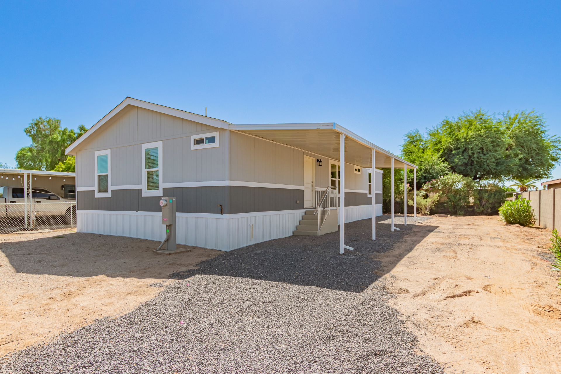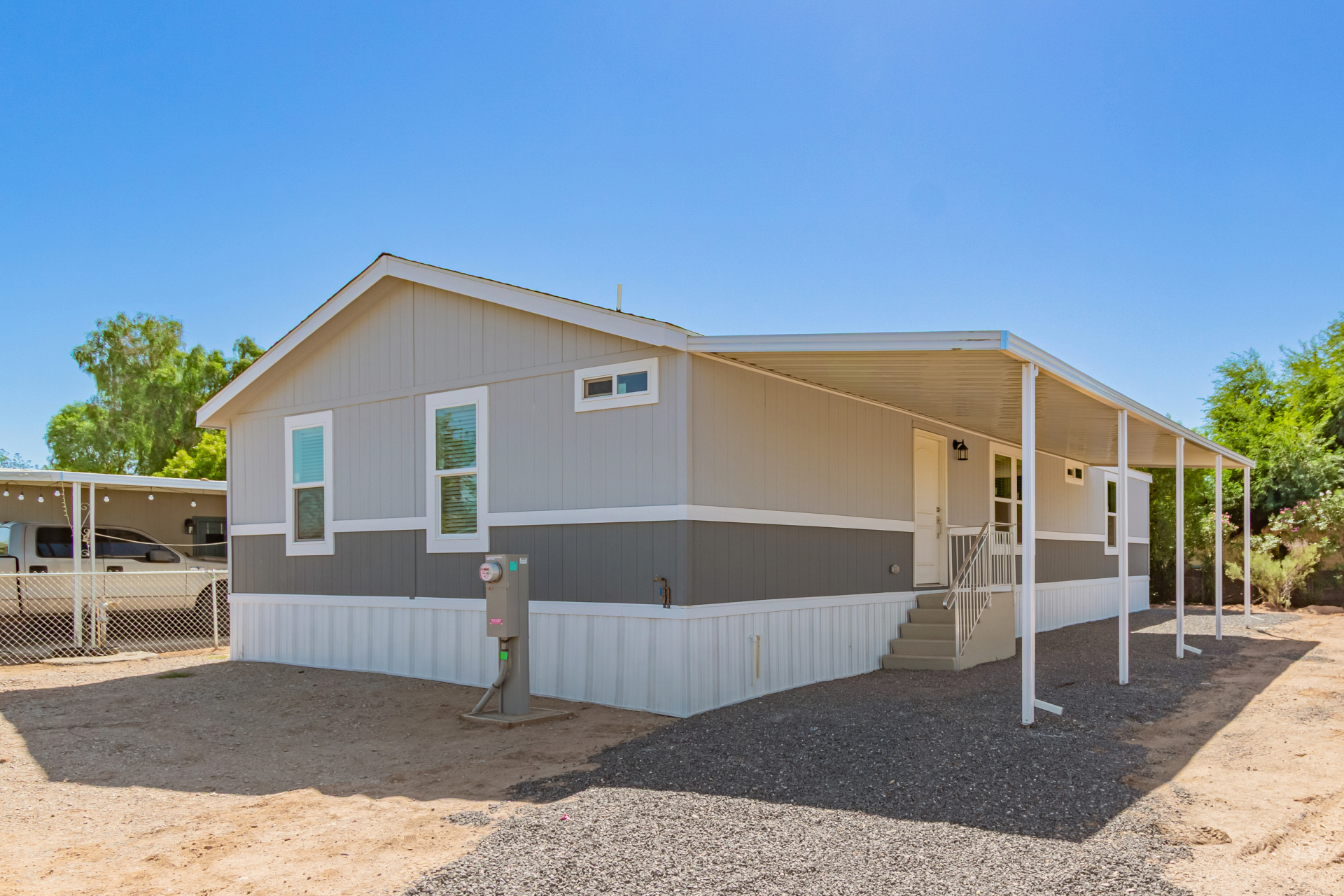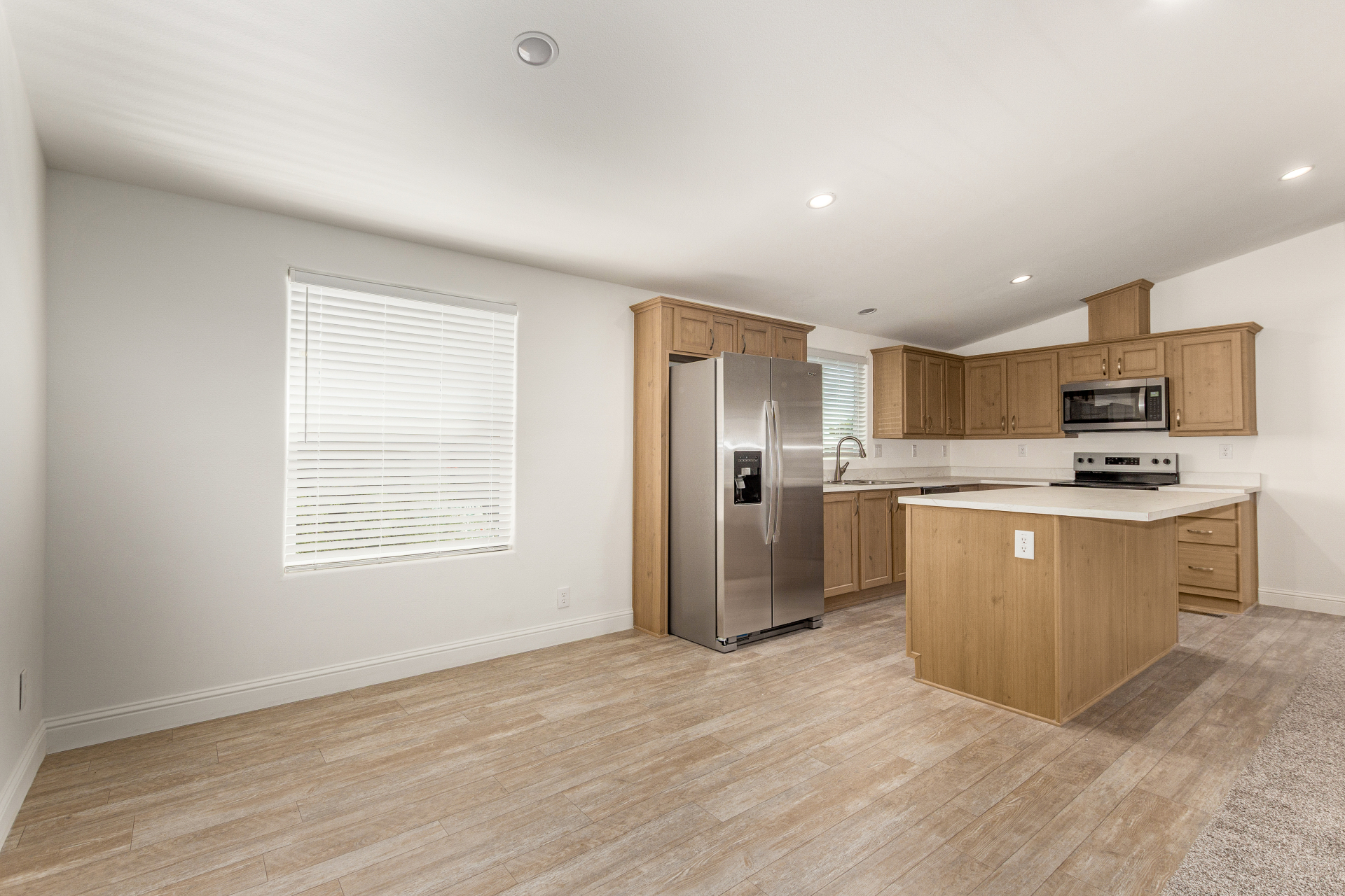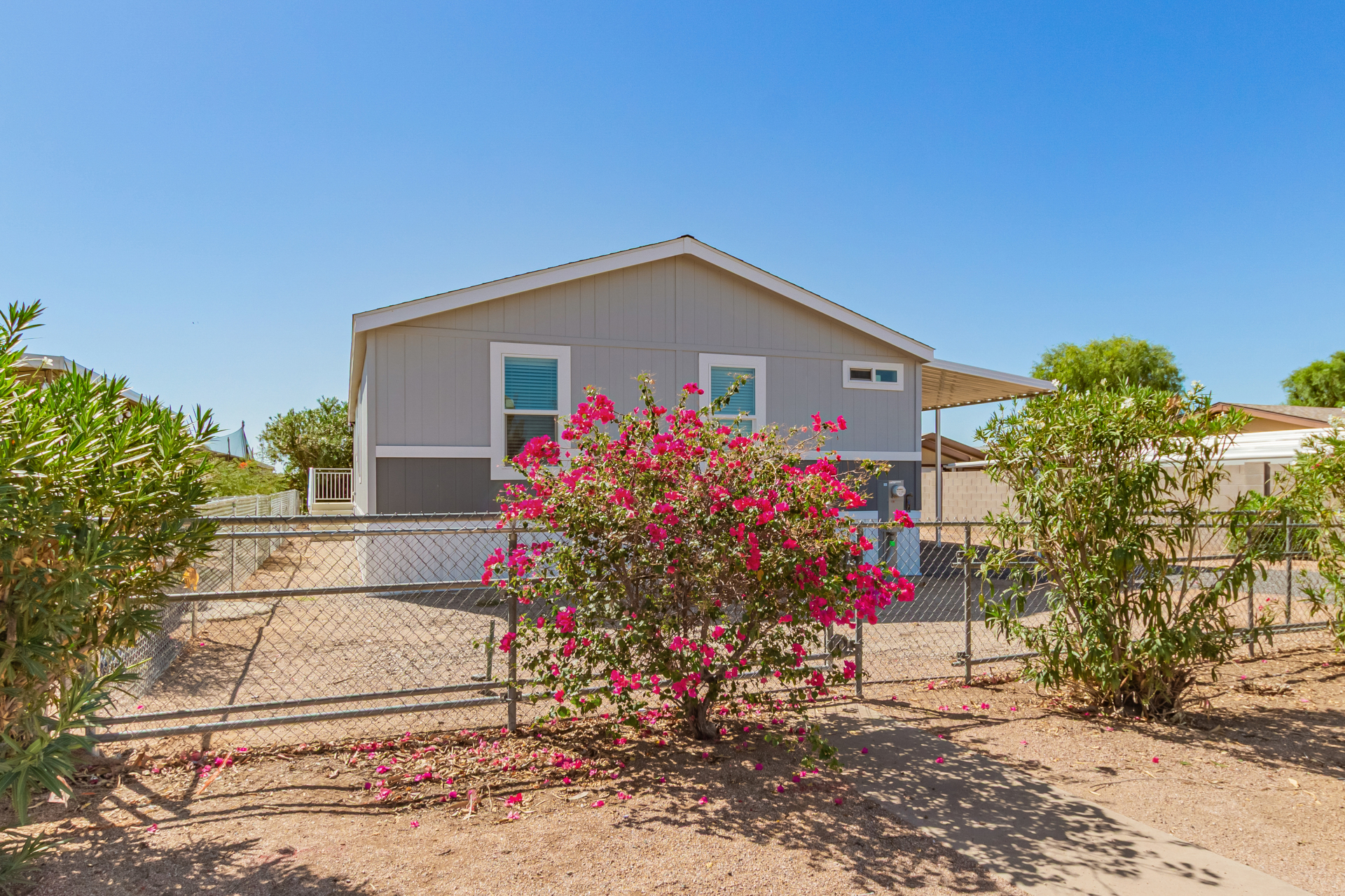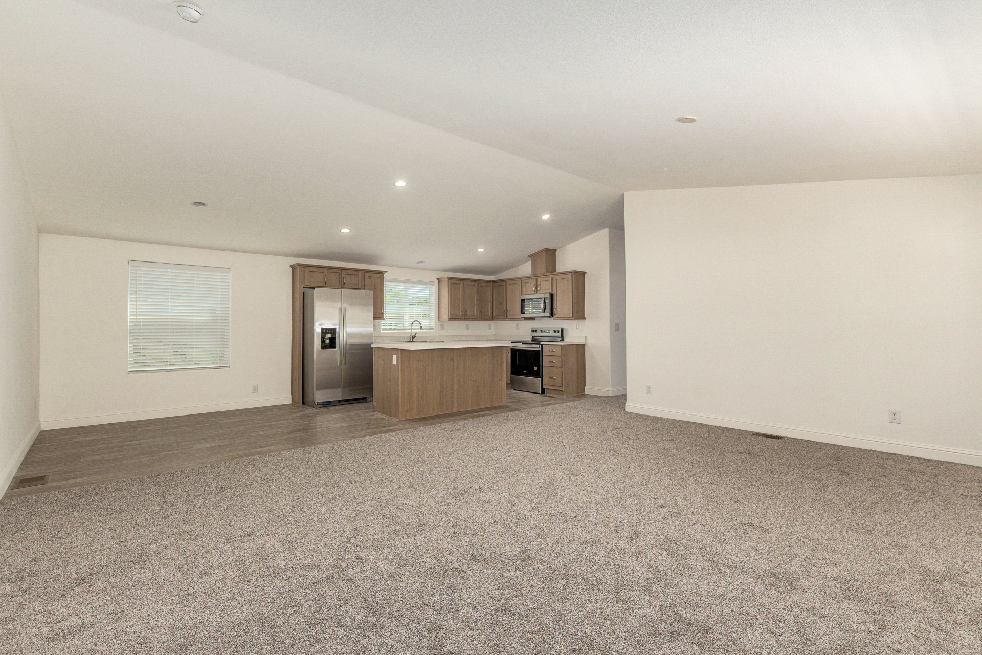 Welcome to FREEDOM and FLEXIBILITY with this NO-HOA, NO-AGE RESTRICTIONS, NO-LAND LEASE, brand-new eBuilt home! The bright & open layout, designed for modern living, features wood-look flooring, carpet in all the right places, vaulted ceilings, and a neutral palette. The pristine kitchen is equipped with spacious cabinetry, ample counter space, built-in appliances, and an island perfect for quick meals. The main retreat hosts a closet & a bathroom with dual sinks for added convenience. The completely fenced property provides privacy and space for outdoor enjoyment, perfect for pets, kids, or entertaining. Perfect for first-time buyers, investors, or if you're looking to downsize—don't miss the opportunity to own this low-maintenance, energy-efficient home in a central location under 400k!