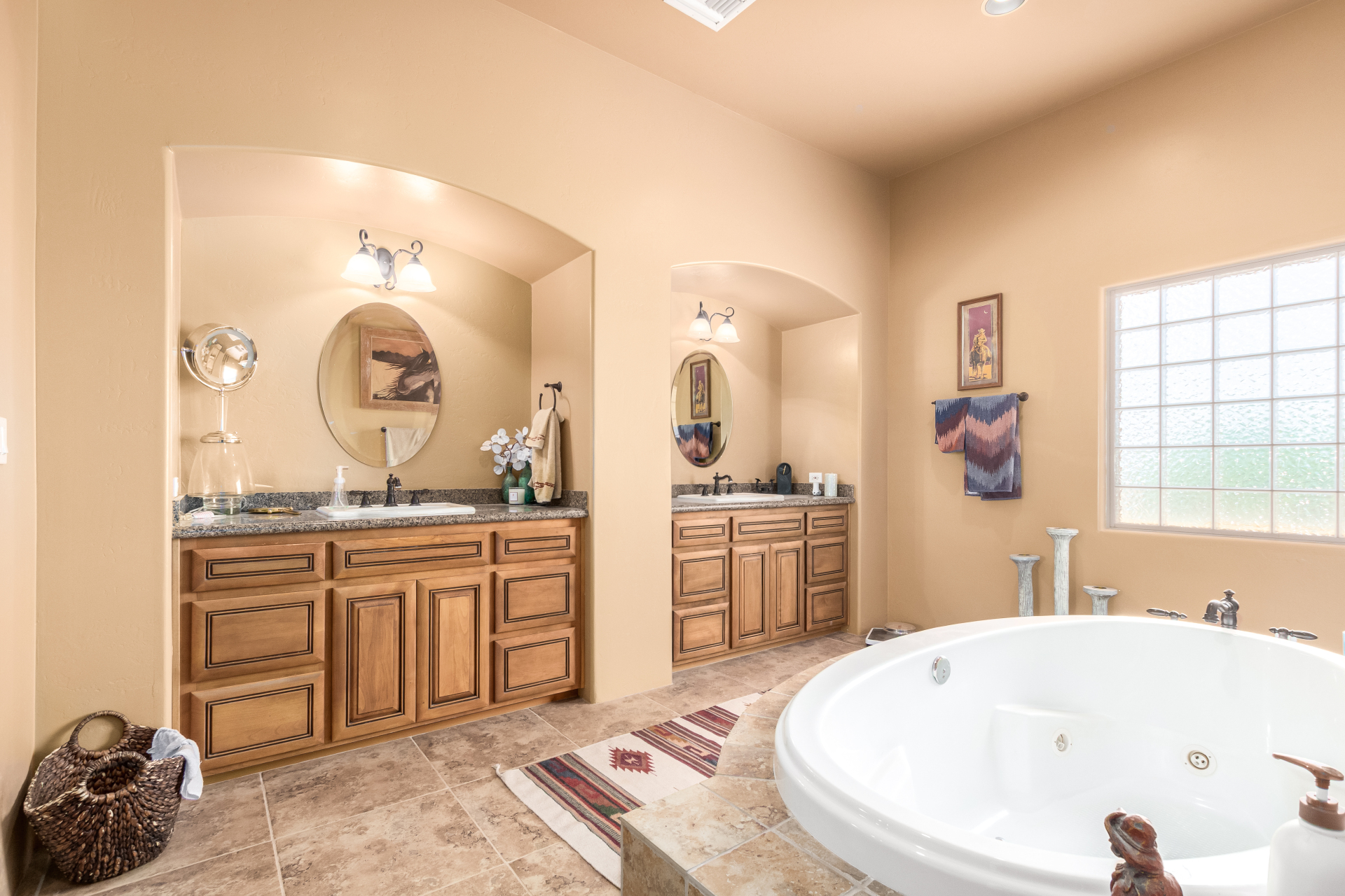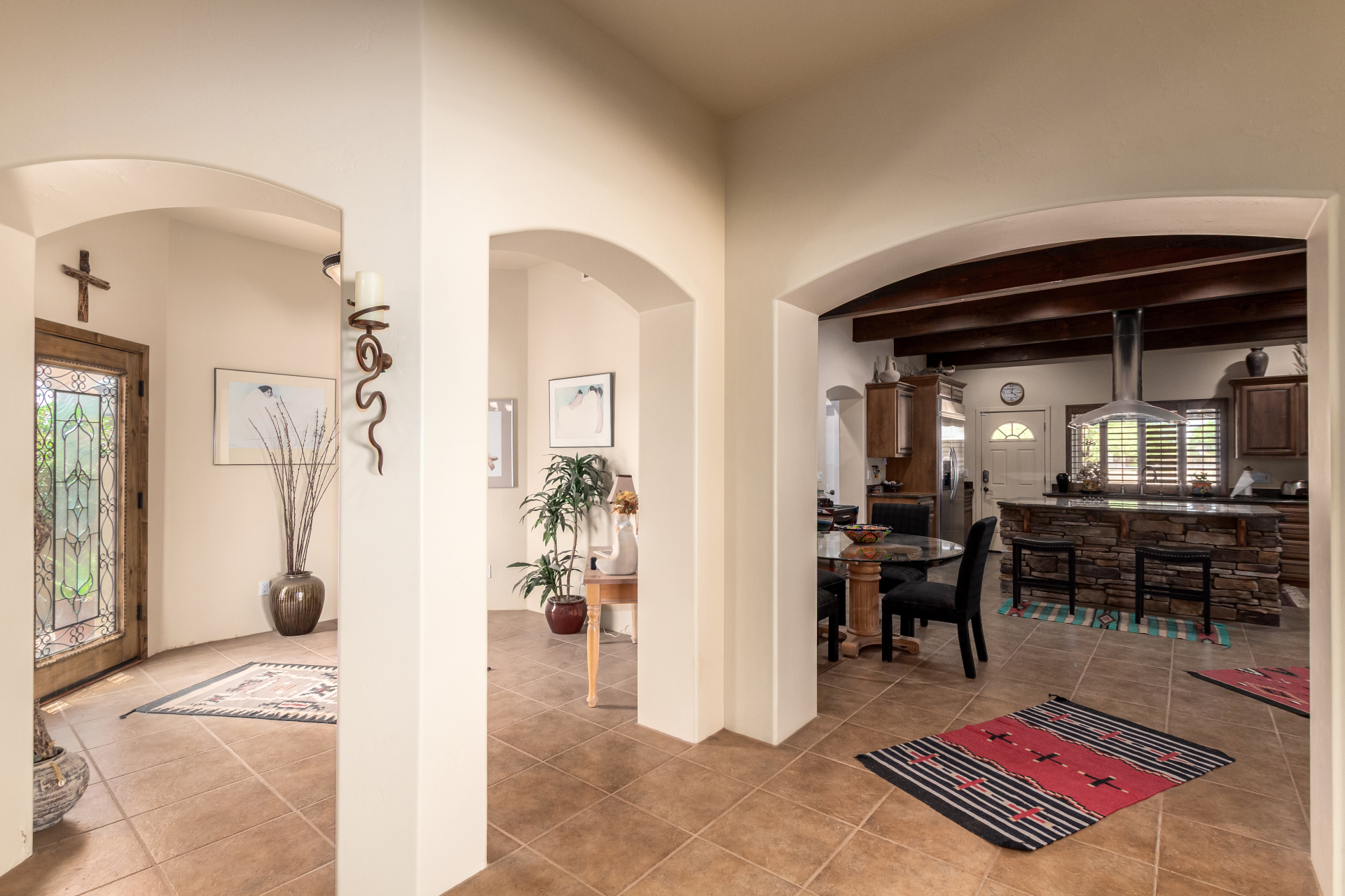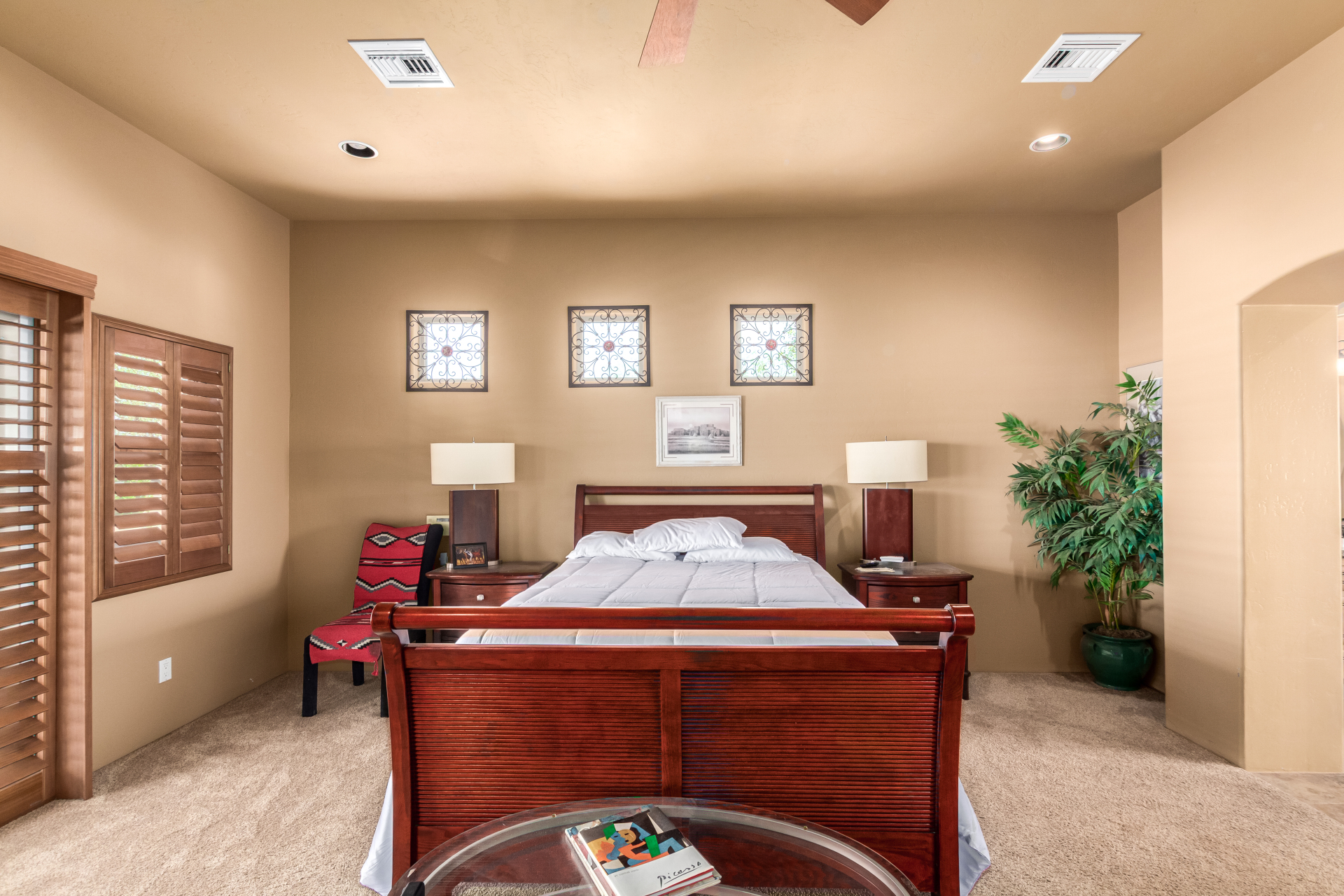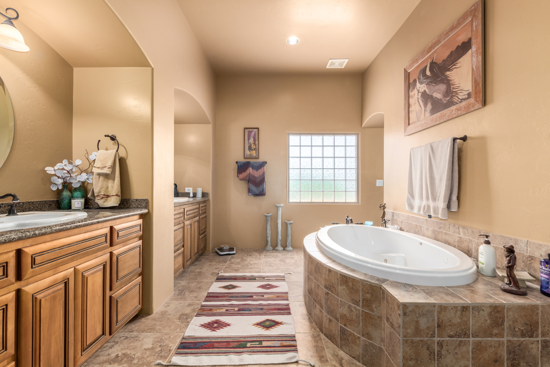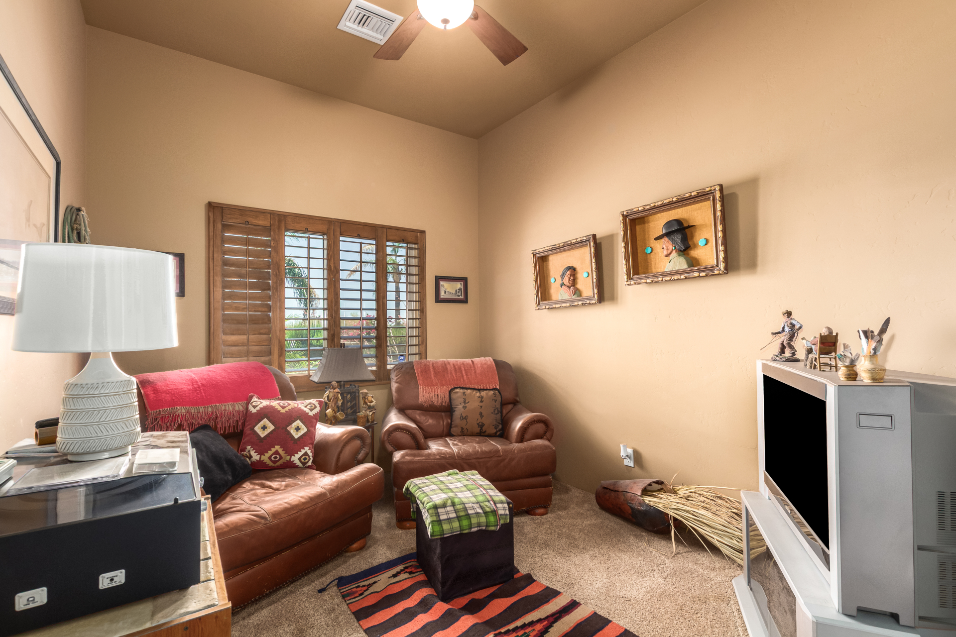 A rare find! Remarkable 4-bed, 2.5-bath masterpiece, situated on 5 acres of PRIME land, is an equestrian enthusiast's dream come true! Captivating interior boasts a bright living room w/a stone fireplace & a family room ideal for gatherings. Timeless details like an inviting foyer, tile flooring, exposed ceiling beams, graceful archways, & plantation shutters elevate the elegance throughout. Gourmet eat-in kitchen is a cook's delight, fully equipped w/recessed lighting, ample cabinetry topped w/crown molding, granite counters, a center island w/a breakfast bar, & high-end SS appliances such as a wall oven, cooktop electric, & range hood. Retreat to the grand owner's suite featuring plush carpet, outdoor access, a walk-in closet, & a spa-like ensuite w/dual vanities & a jetted tub.