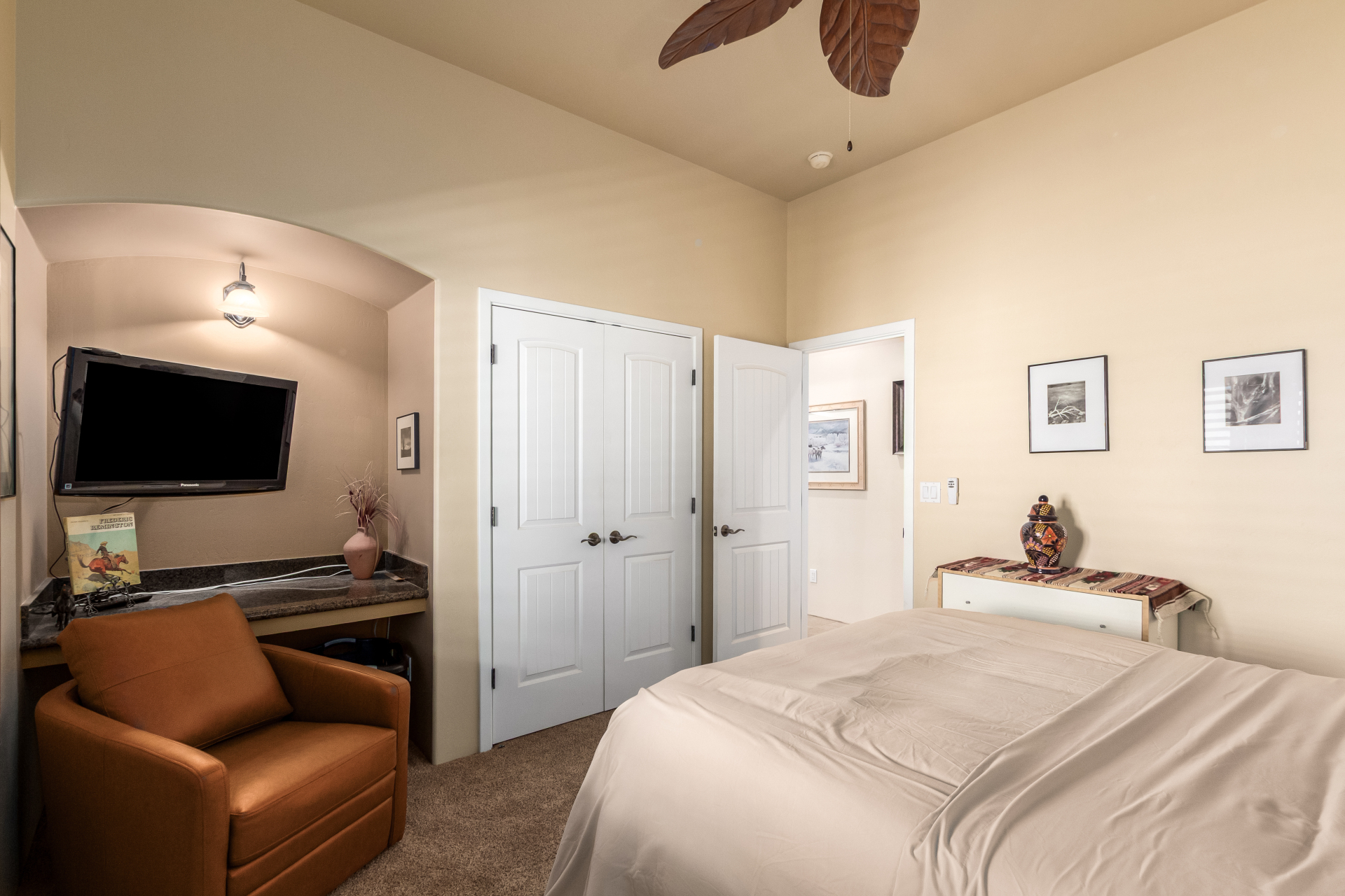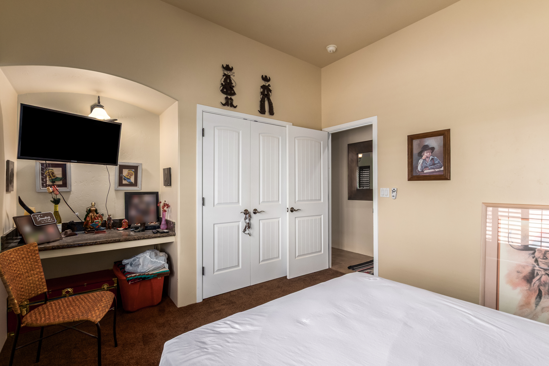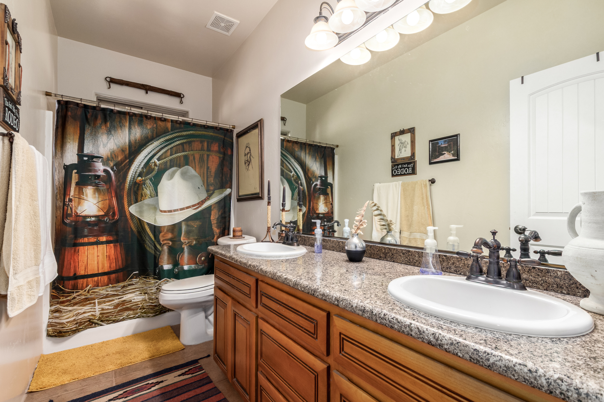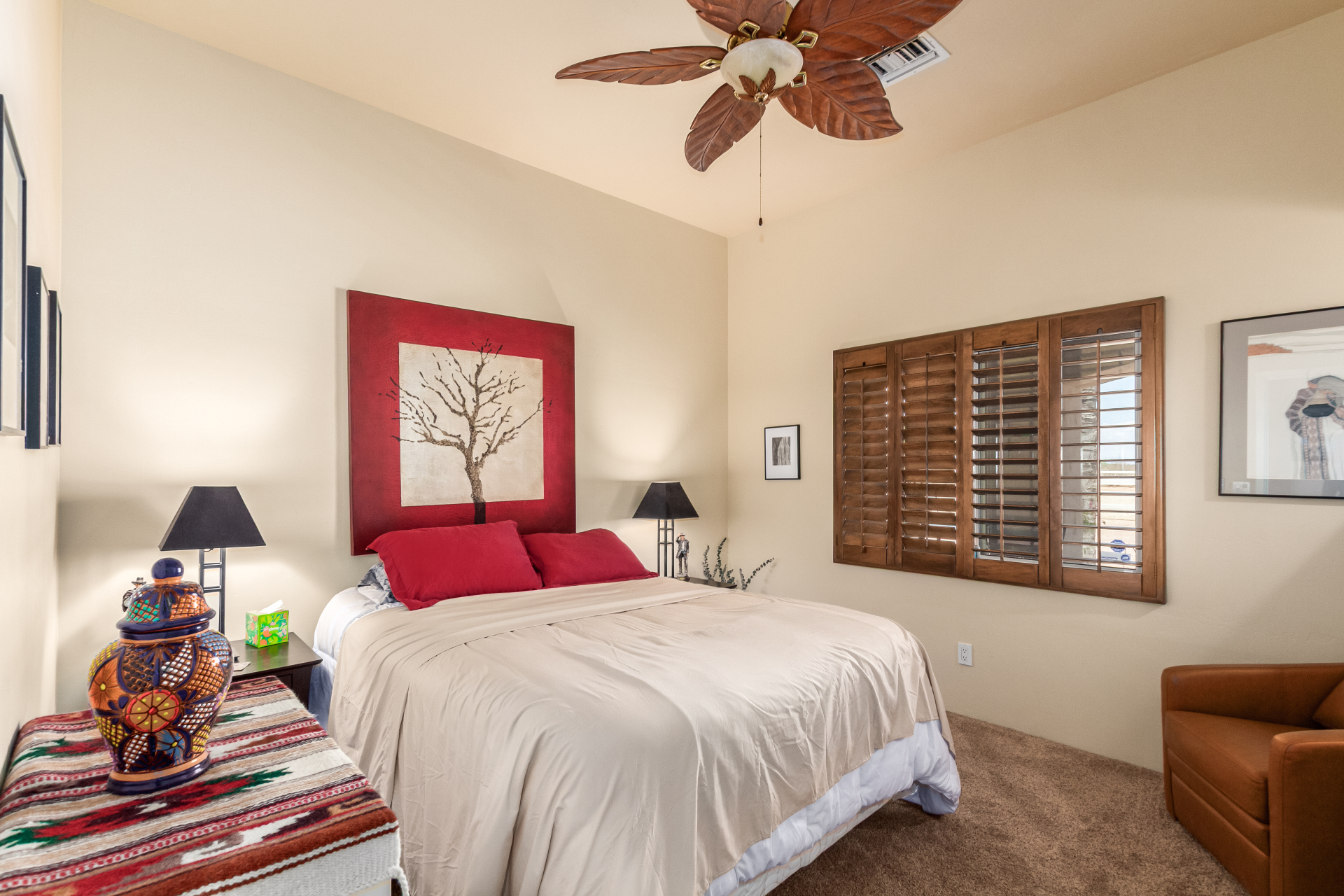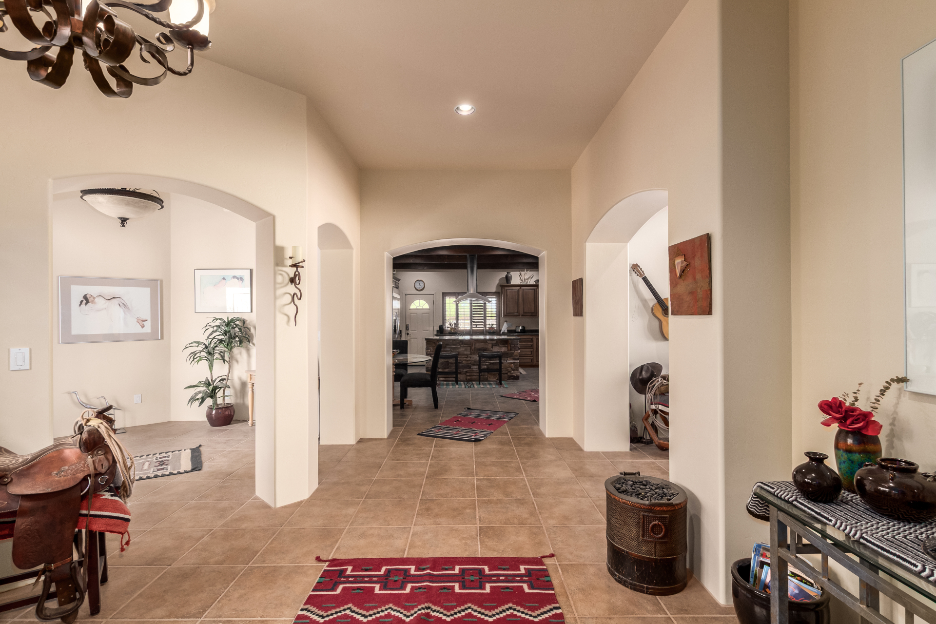 A rare find! Remarkable 4-bed, 2.5-bath masterpiece, situated on 5 acres of PRIME land, is an equestrian enthusiast's dream come true! Captivating interior boasts a bright living room w/a stone fireplace & a family room ideal for gatherings. Timeless details like an inviting foyer, tile flooring, exposed ceiling beams, graceful archways, & plantation shutters elevate the elegance throughout. Gourmet eat-in kitchen is a cook's delight, fully equipped w/recessed lighting, ample cabinetry topped w/crown molding, granite counters, a center island w/a breakfast bar, & high-end SS appliances such as a wall oven, cooktop electric, & range hood. Retreat to the grand owner's suite featuring plush carpet, outdoor access, a walk-in closet, & a spa-like ensuite w/dual vanities & a jetted tub.
