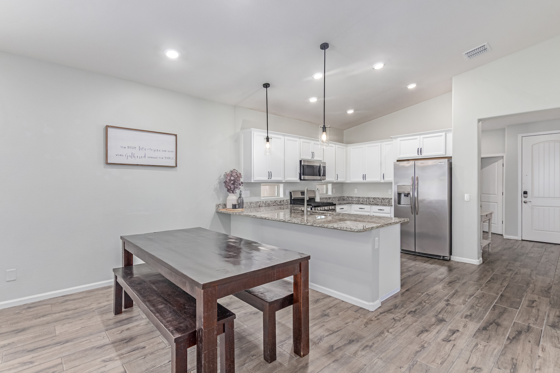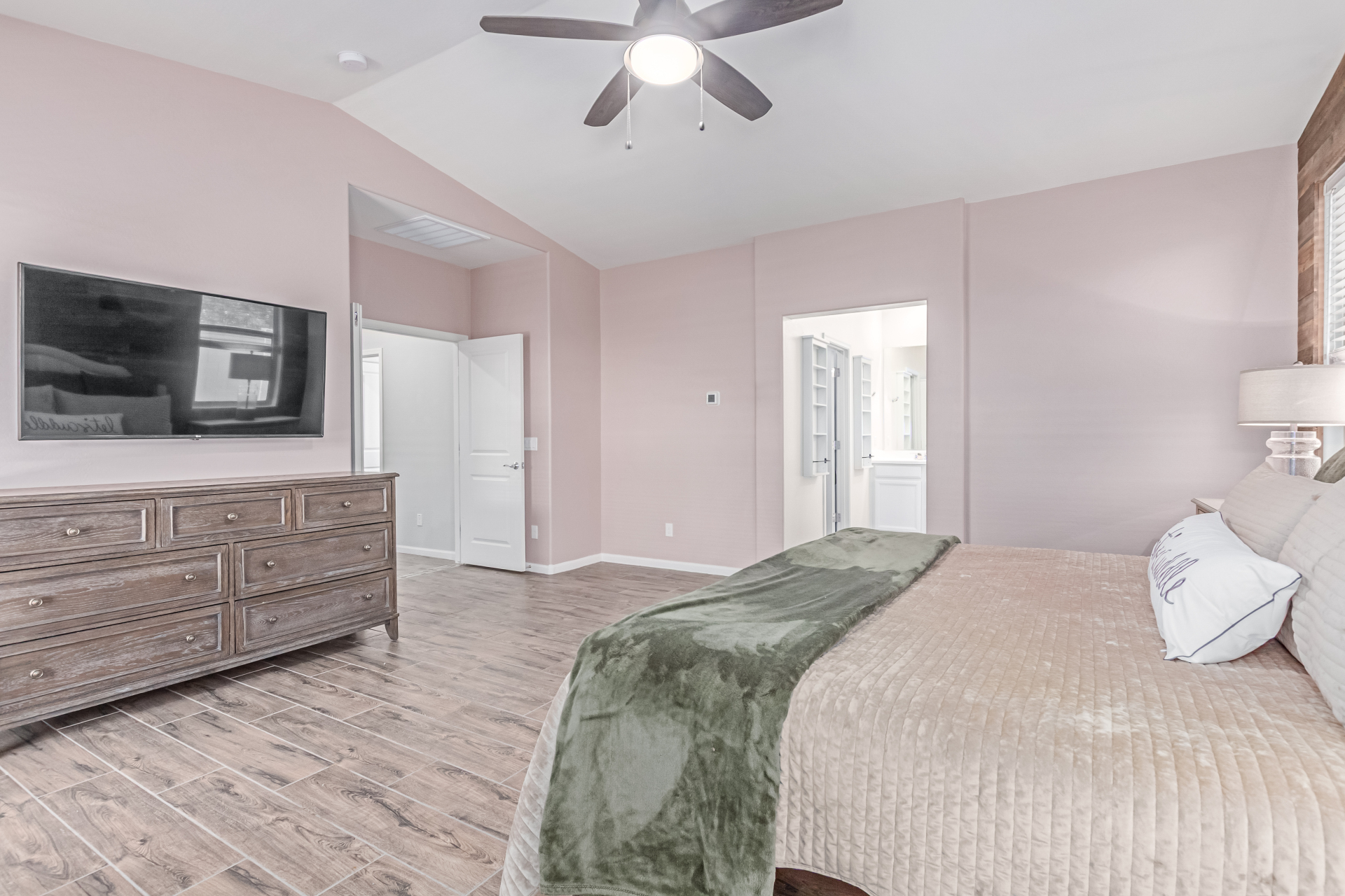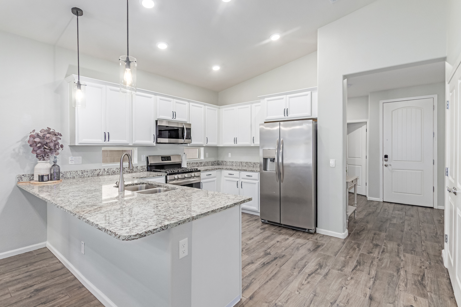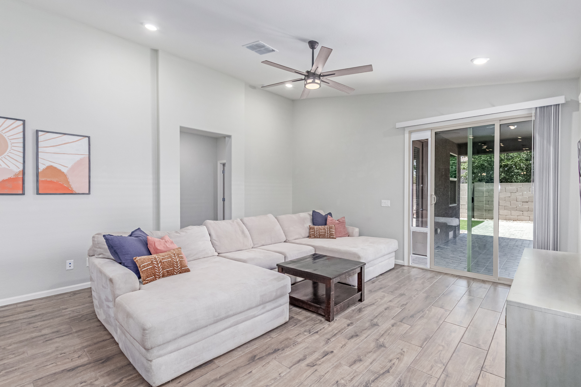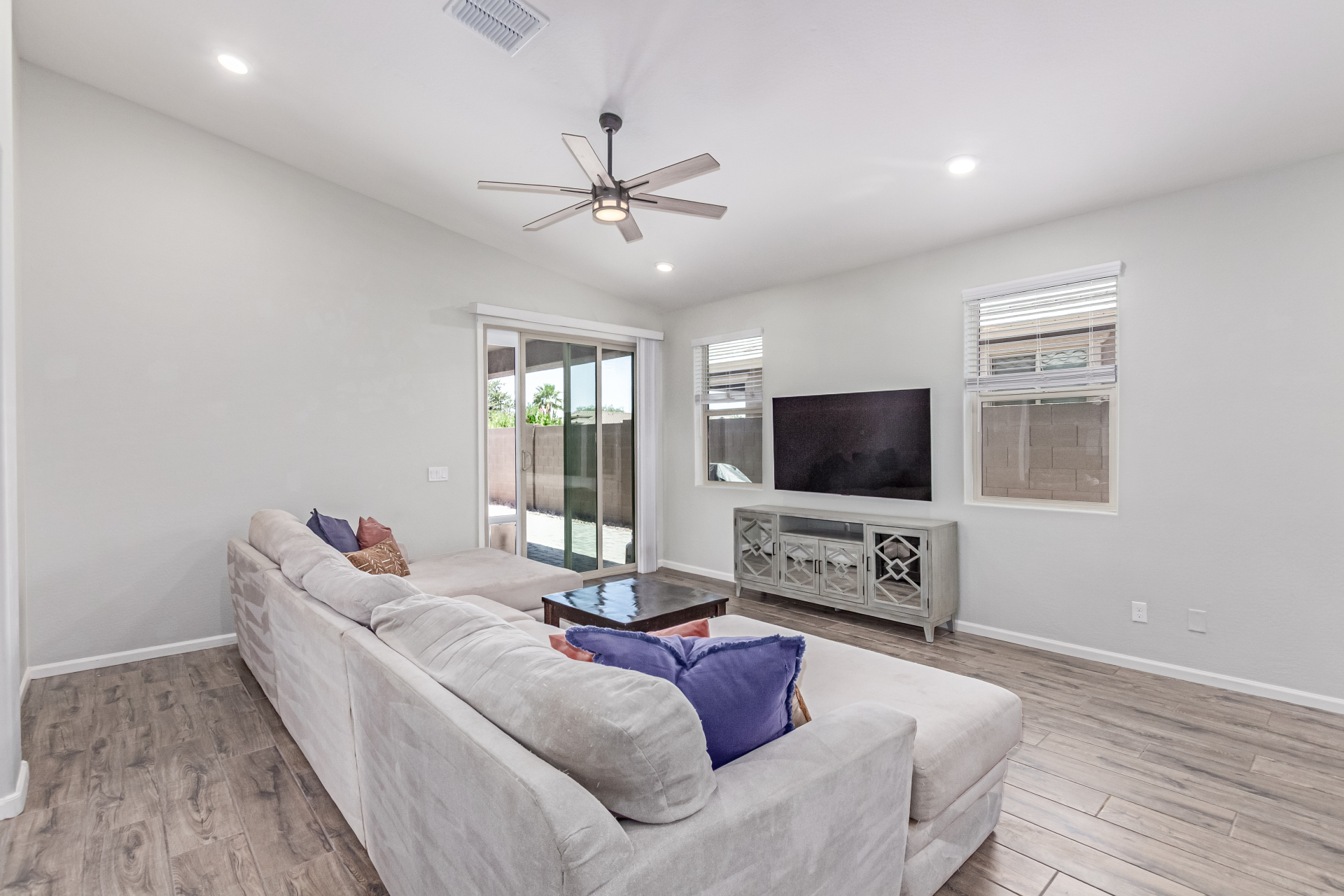 Be the proud owner of this gorgeous 5-bedroom home in the gated Southern Vistas community! Featuring a great curb appeal, a mature landscape, and a 2-car garage! Inside, you'll find tile flooring, vaulted ceilings, sliding doors to the patio, abundant natural light, and fresh paint. The impeccable culinary space is equipped with pendant lamps, white cabinetry for ample storage, granite counters, a pantry, and stainless steel appliances. The serene main bedroom offers a closet and an ensuite with double sinks. The backyard boasts pavers and a covered patio, perfect for enjoying morning coffee. What's not to love? Make it yours!