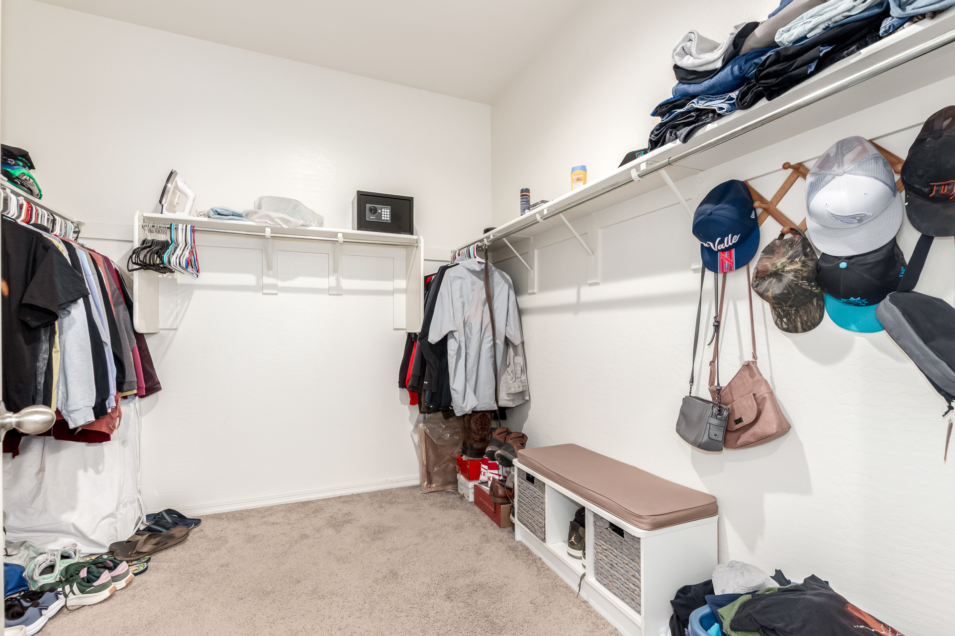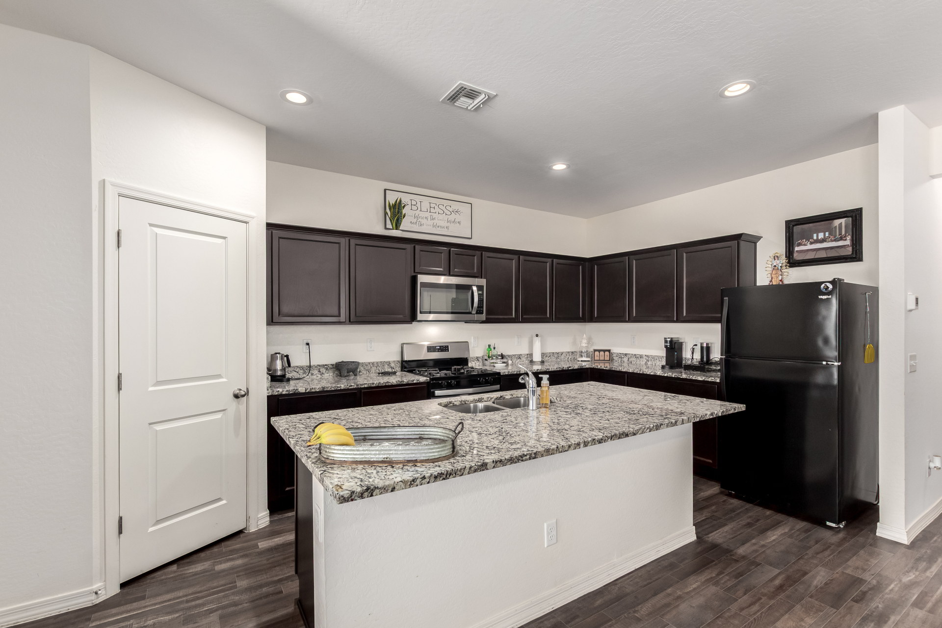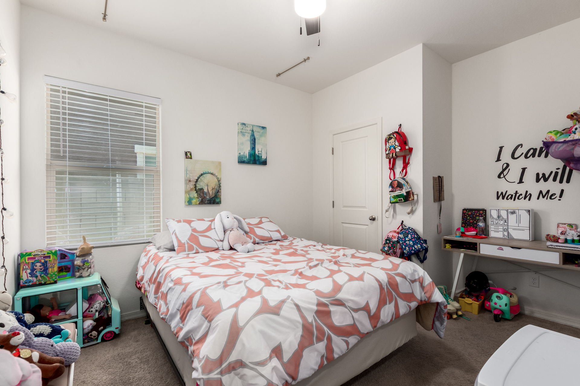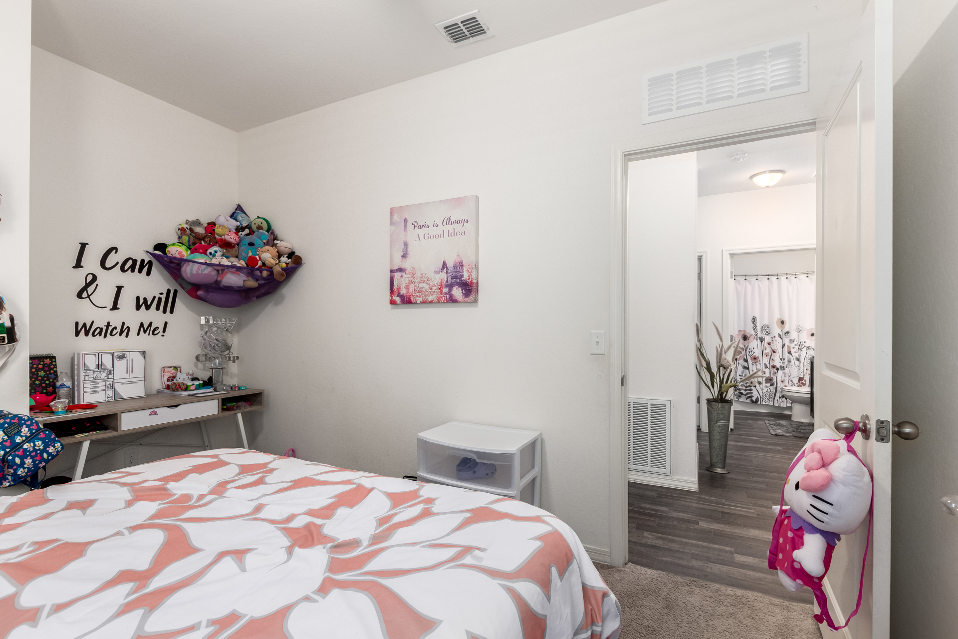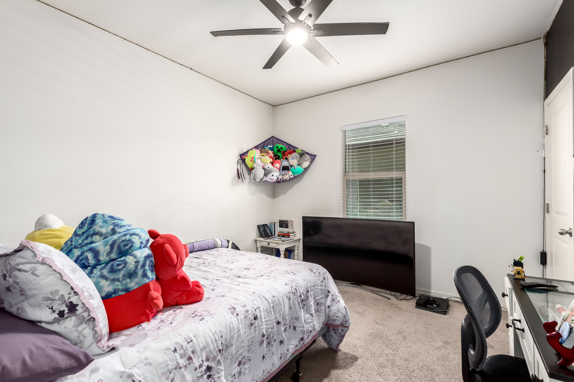 Become the proud owner of this charming 4-bedroom residence in Blue Horizons! You're welcomed by a captivating open layout with high ceilings, a soothing palette, blinds, and a harmonious blend of soft carpeting and wood-look flooring. The gourmet kitchen comes with granite counters, abundant wood cabinetry with crown moulding, recessed lighting, SS appliances, a pantry, and an island with a breakfast bar. The cozy primary bedroom includes a private bathroom and a practical walk-in closet for an organized wardrobe. Spend enchanting evenings in the backyard, complete with a covered patio for dining al fresco and breathtaking mountain views that provide a picturesque backdrop. Make this gem yours!