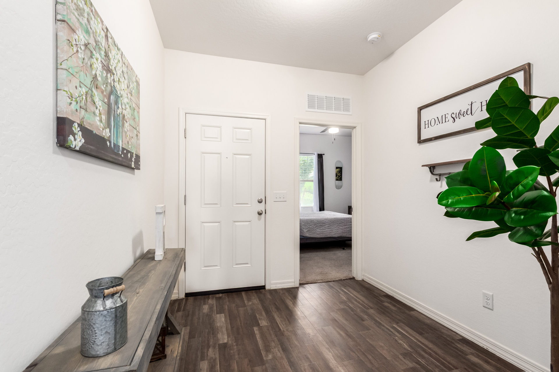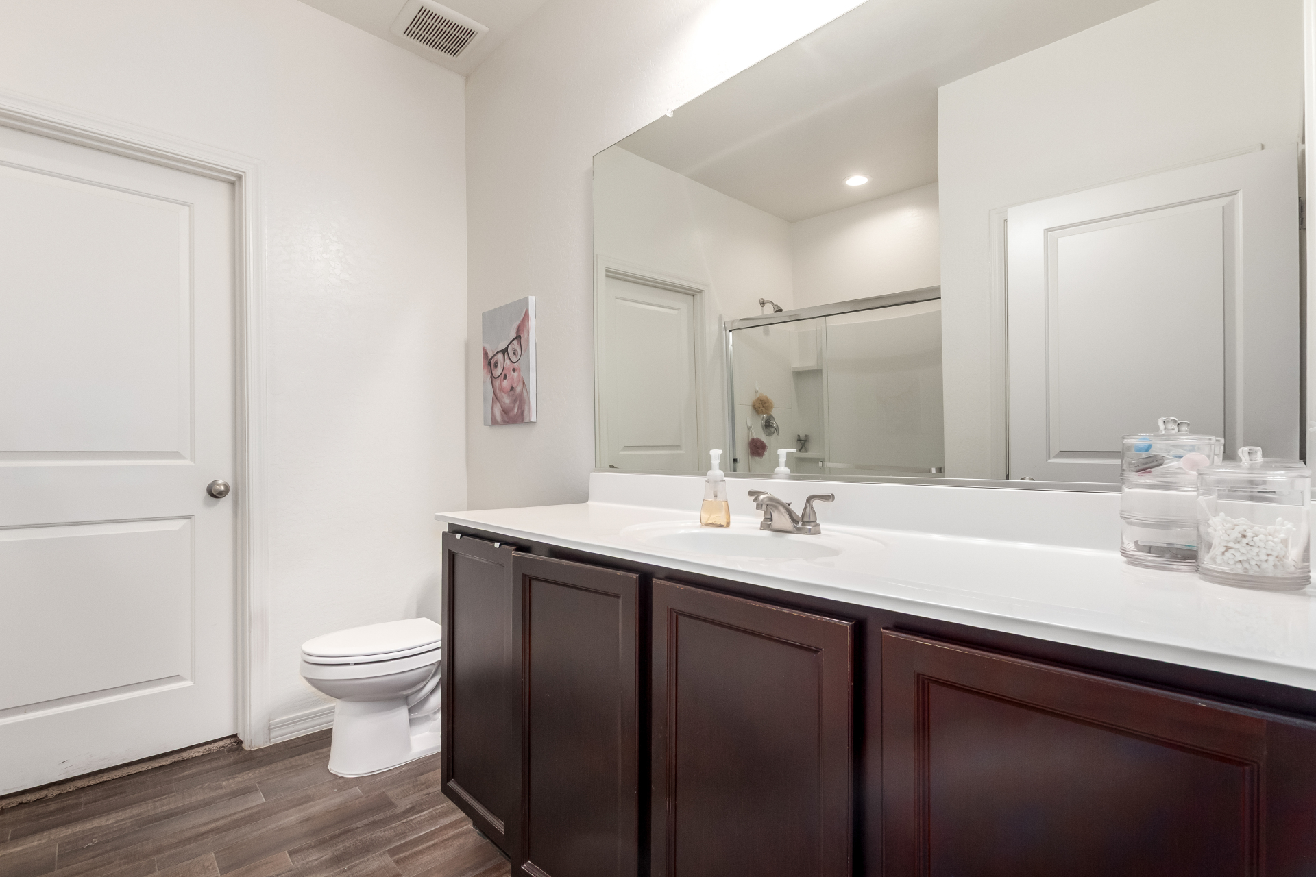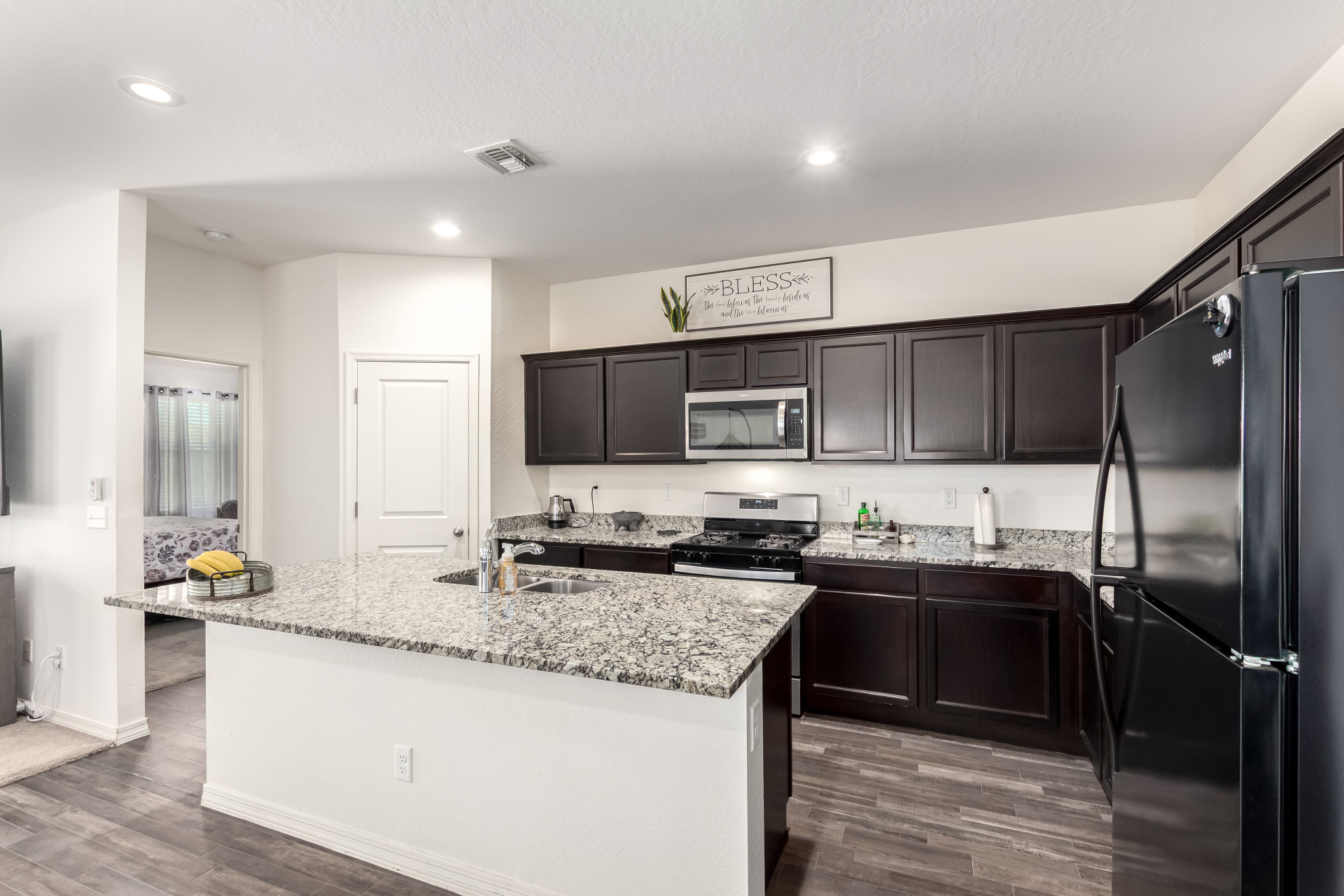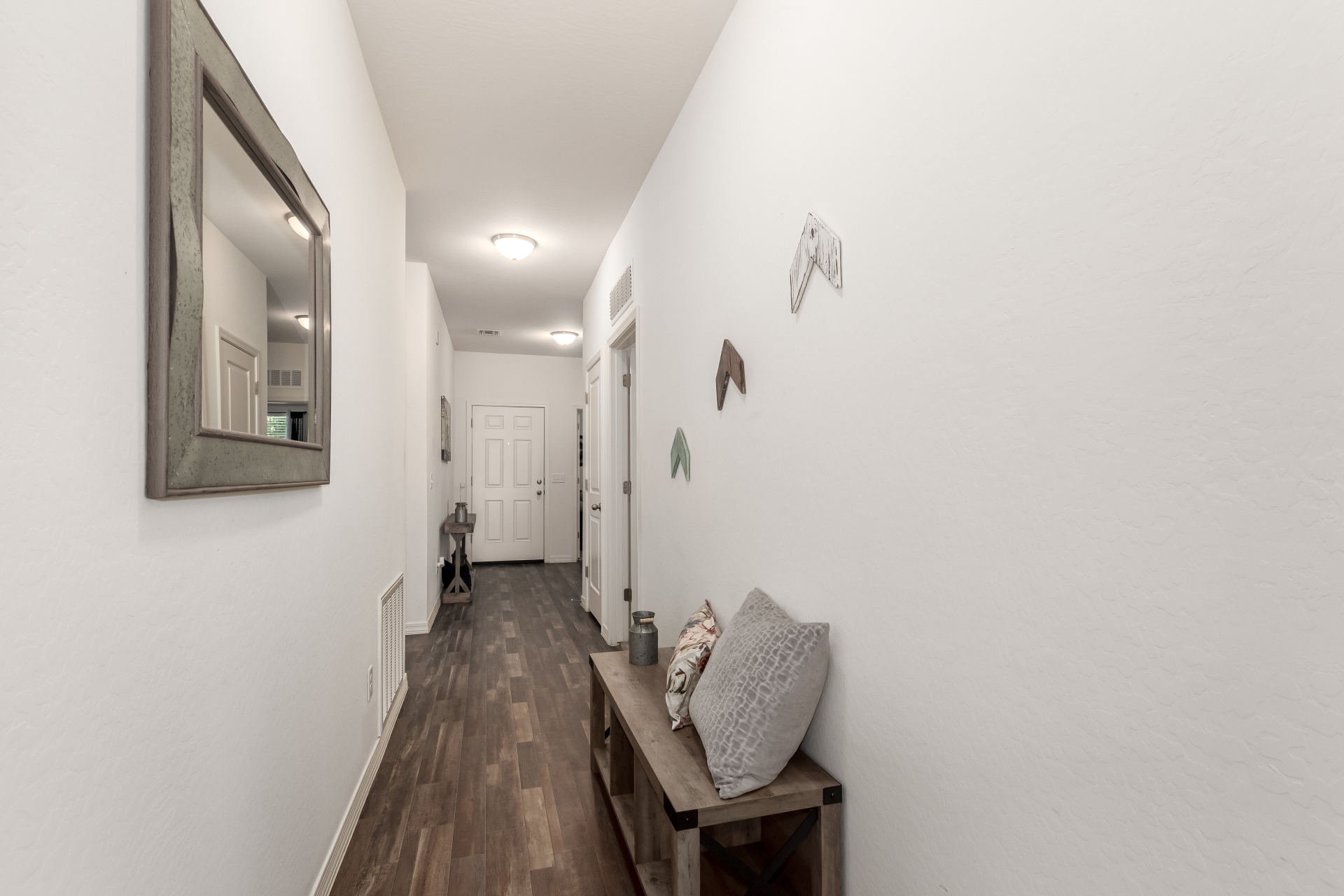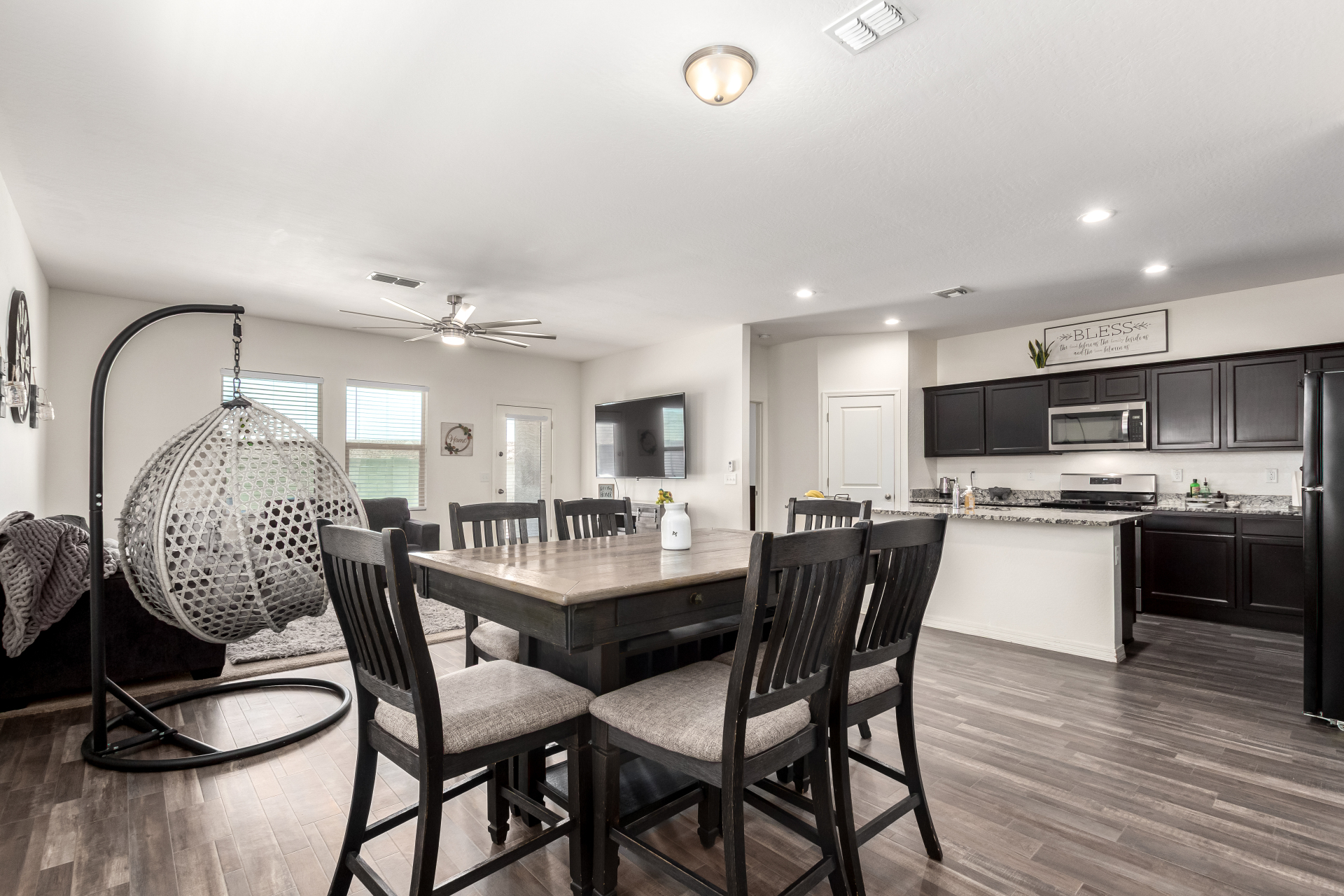 Become the proud owner of this charming 4-bedroom residence in Blue Horizons! You're welcomed by a captivating open layout with high ceilings, a soothing palette, blinds, and a harmonious blend of soft carpeting and wood-look flooring. The gourmet kitchen comes with granite counters, abundant wood cabinetry with crown moulding, recessed lighting, SS appliances, a pantry, and an island with a breakfast bar. The cozy primary bedroom includes a private bathroom and a practical walk-in closet for an organized wardrobe. Spend enchanting evenings in the backyard, complete with a covered patio for dining al fresco and breathtaking mountain views that provide a picturesque backdrop. Make this gem yours!