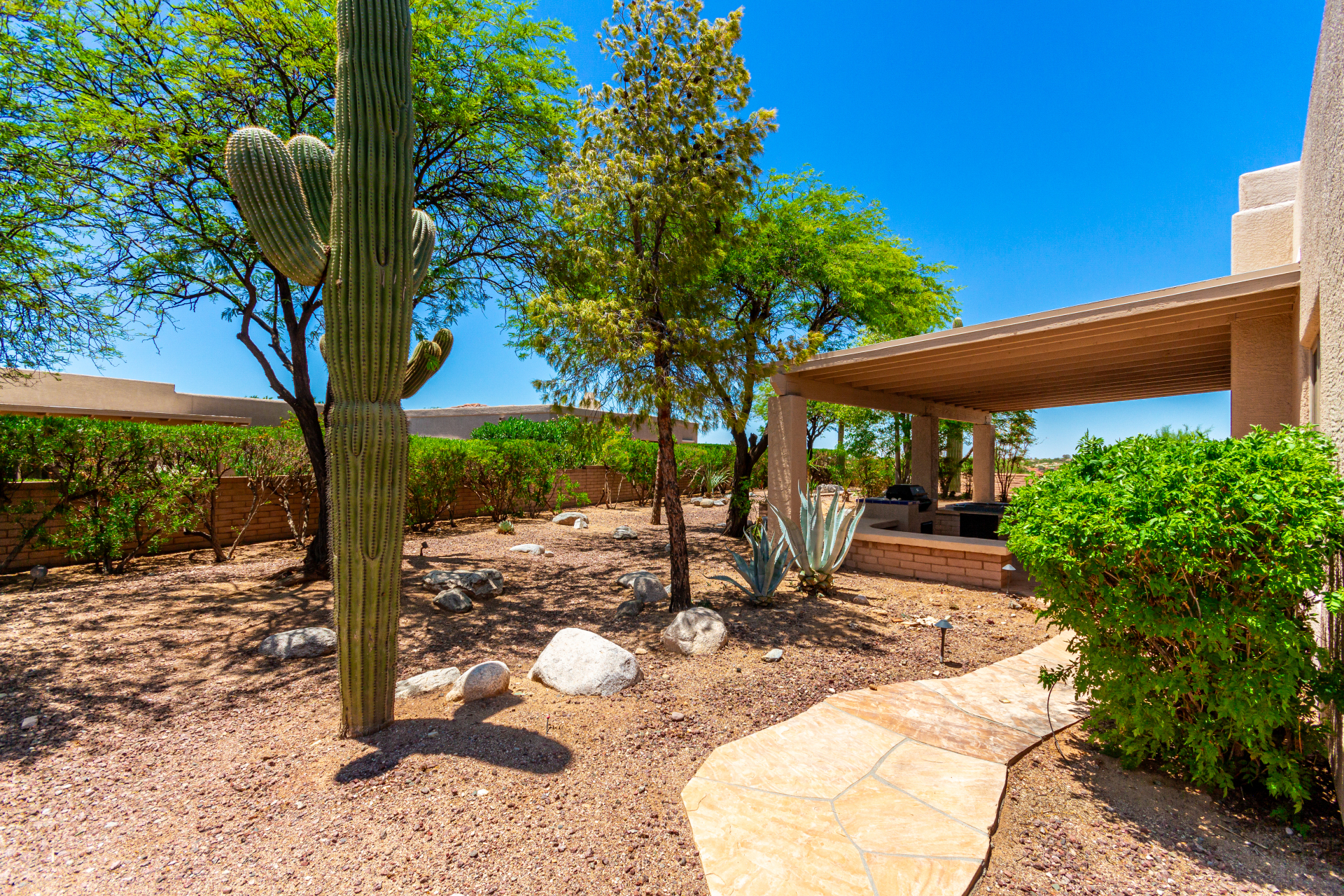 PRICE IMPROVEMENT! Exceptional value in gated HIGHGATE near Omni Tucson National +SELLER OFFERING 1 YEAR PREPAID HOA DUES! This stunning 2-bedroom plus bonus room home situated on an oversized 11,809 sq ft lot. Tucked away on a cul-de-sac with a desert view lot next door, this home offers privacy & serenity in the exclusive gated community of HIGHGATE. It sits across from Omni Tucson National Golf Course with breathtaking views of Sombrero Peak. Inside, you'll love the split floor plan, high vaulted ceilings, a bright kitchen with granite countertops, and a versatile bonus room perfect for an office, gym, or guest retreat and larger garage! Outside, unwind in your entertainer's backyard with a spa, built-in BBQ, and plenty of room to relax under the Arizona skies. And here's the exciting part just minutes away, the former Foothills Mall site is being reimagined as Uptown, Tucson's first high-density urban village.