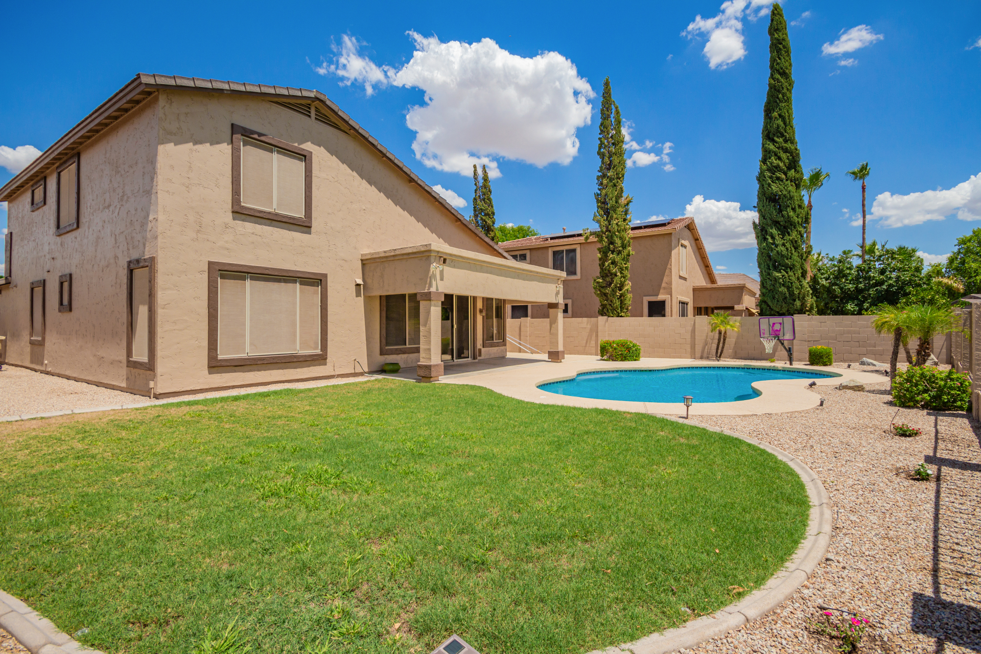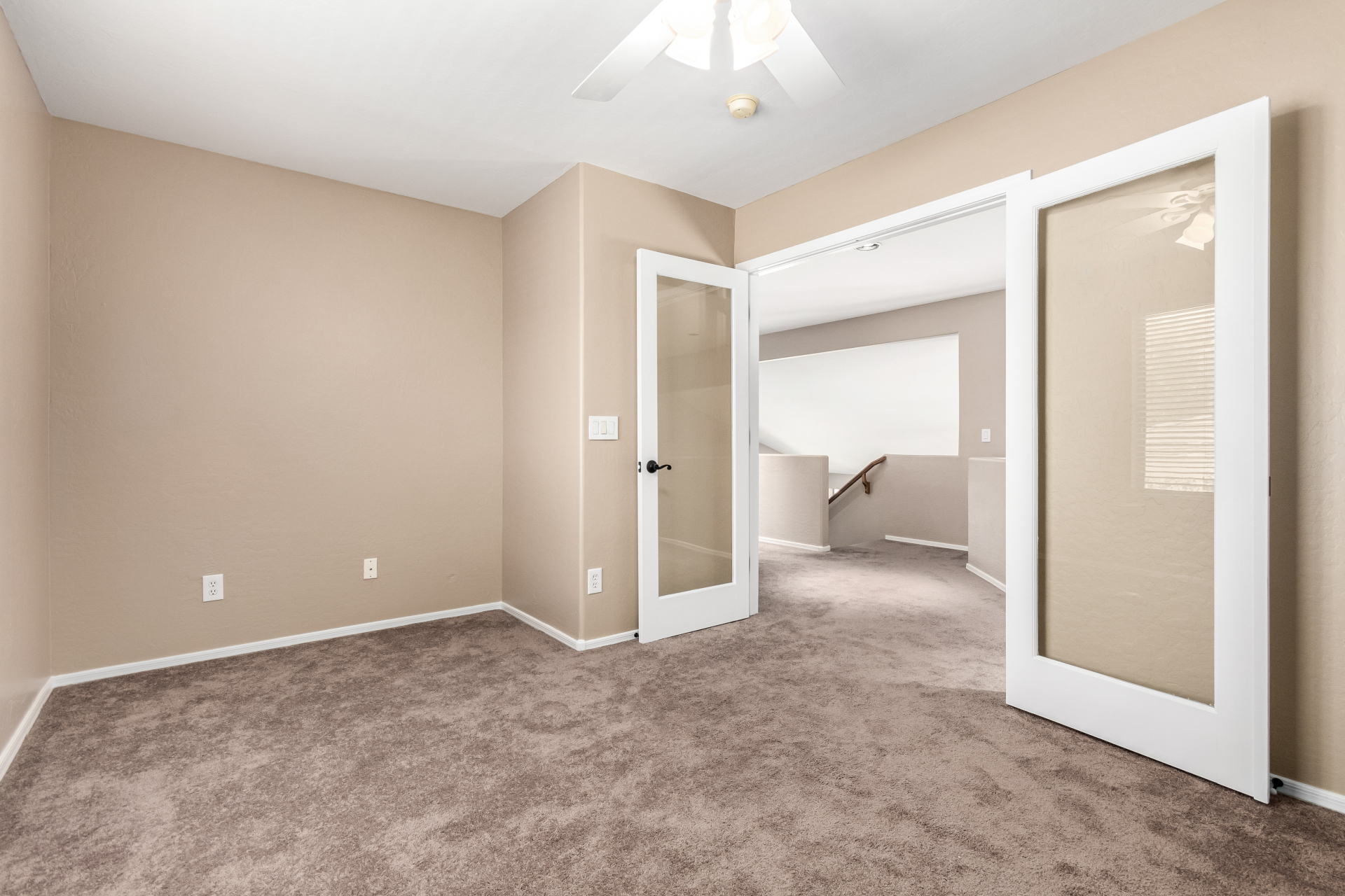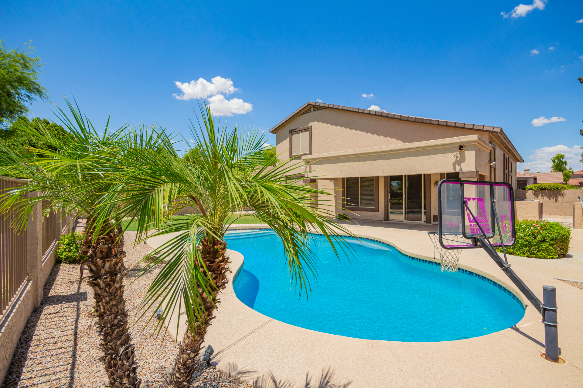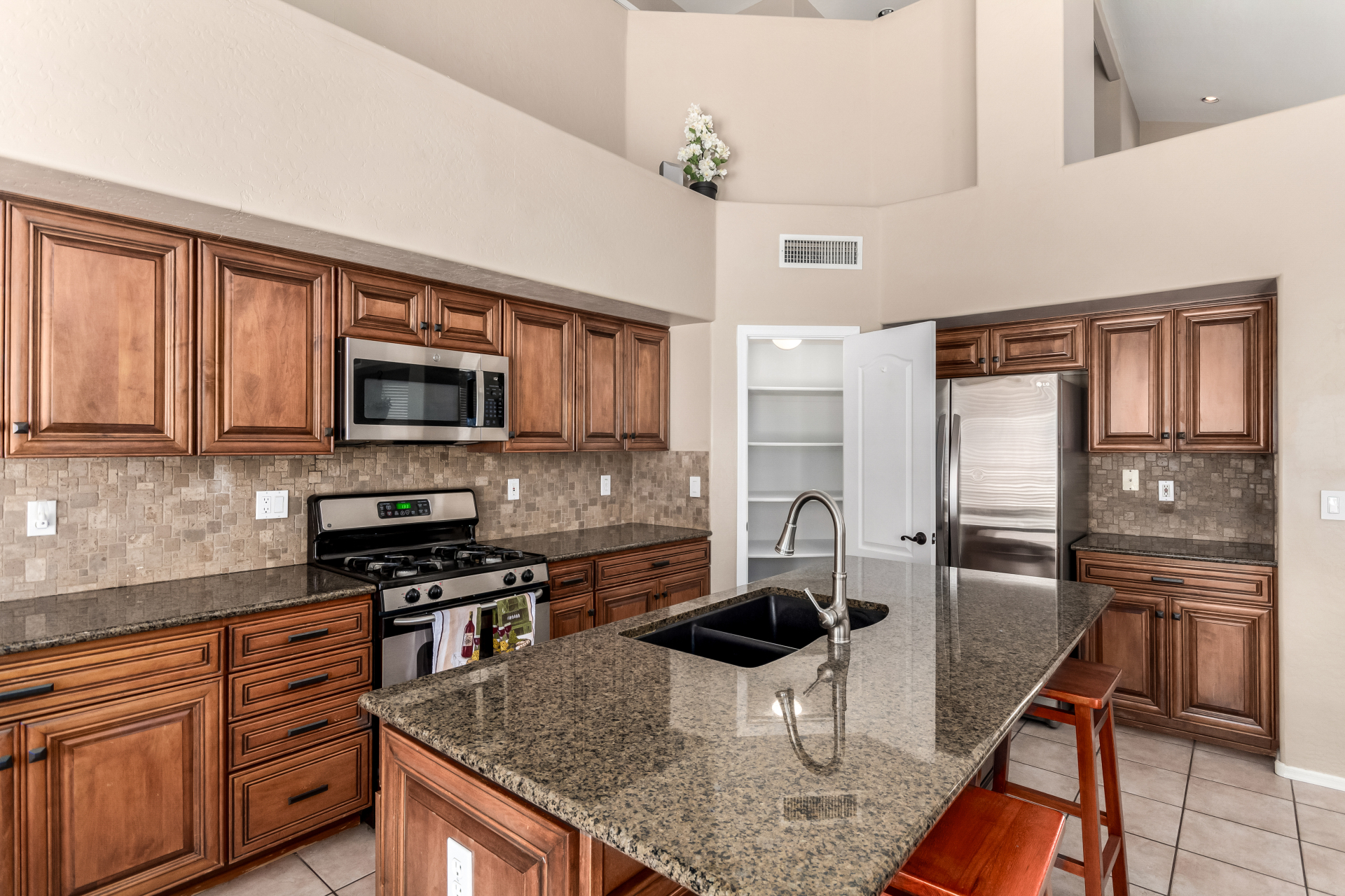 This stunning 2-level home with POOL awaits you nestled in a quiet cul-de-sac in the sought-after Highland Point! All the space you need, with 3 bedrooms plus den, 2.5 bathrooms, and a 2-car garage with attached cabinetry. The impressive interior showcases soft carpeting underfoot, tile flooring in high-traffic areas, soaring vaulted ceilings, plenty of natural light, and a neutral palette. The impeccable kitchen displays ample cabinets, custom backsplash, granite counters, a pantry, stainless steel appliances, and an island for those casual chats over quick meals. The airy primary bedroom has a walk-in closet and an ensuite with double sinks and a separate shower & tub. Double doors open to a spacious den perfect for an office or study room. The backyard will be your retreat, featuring a