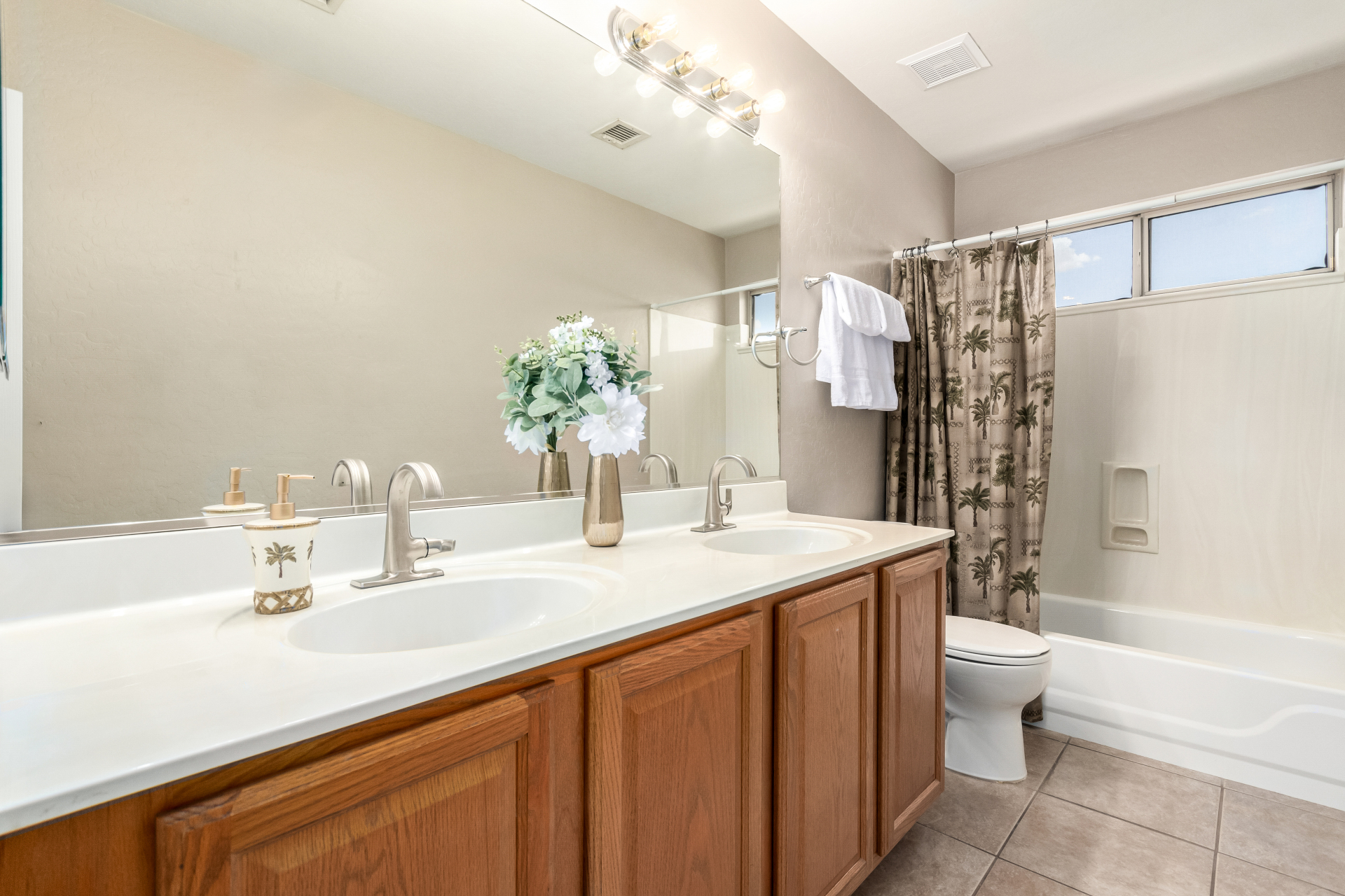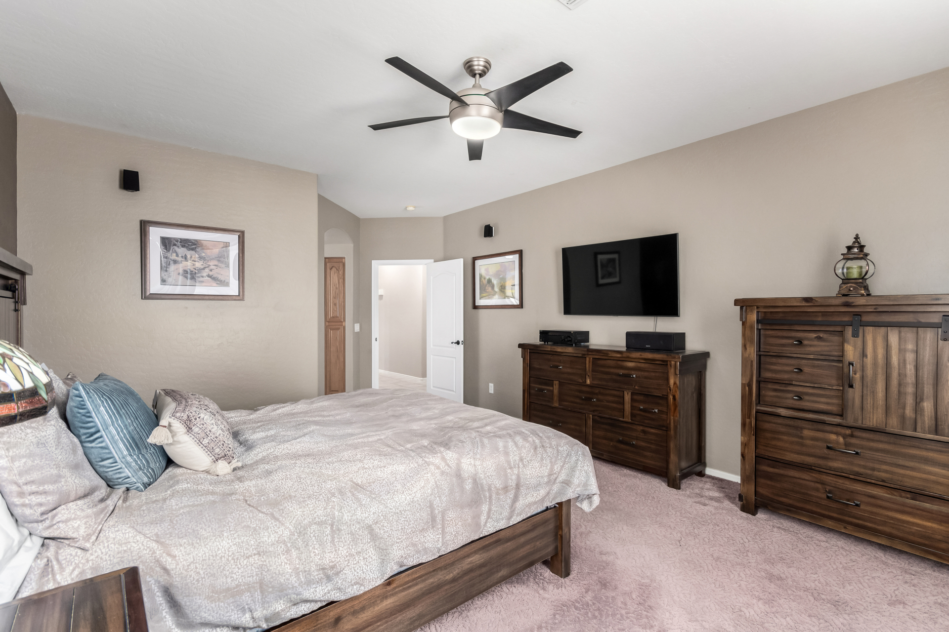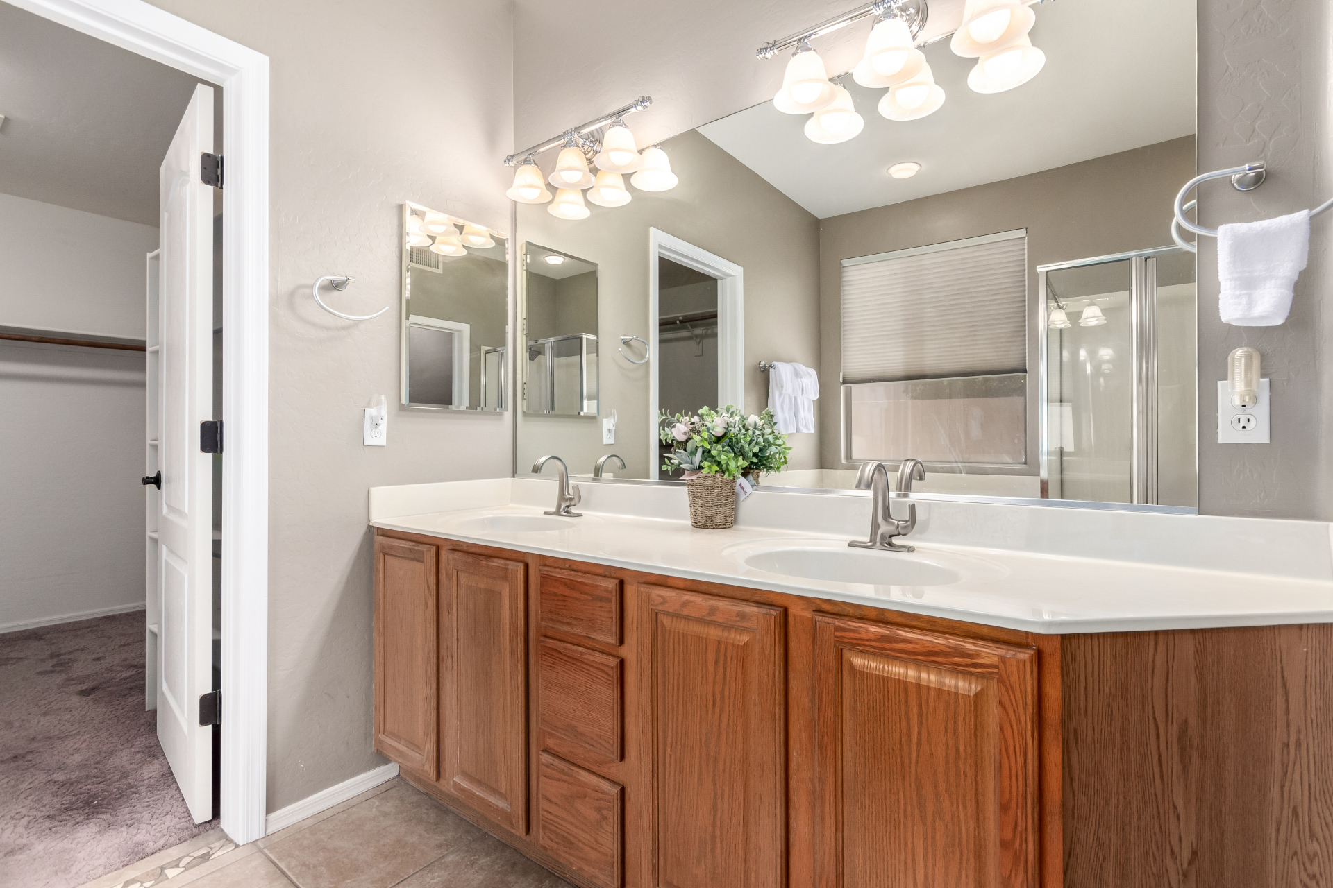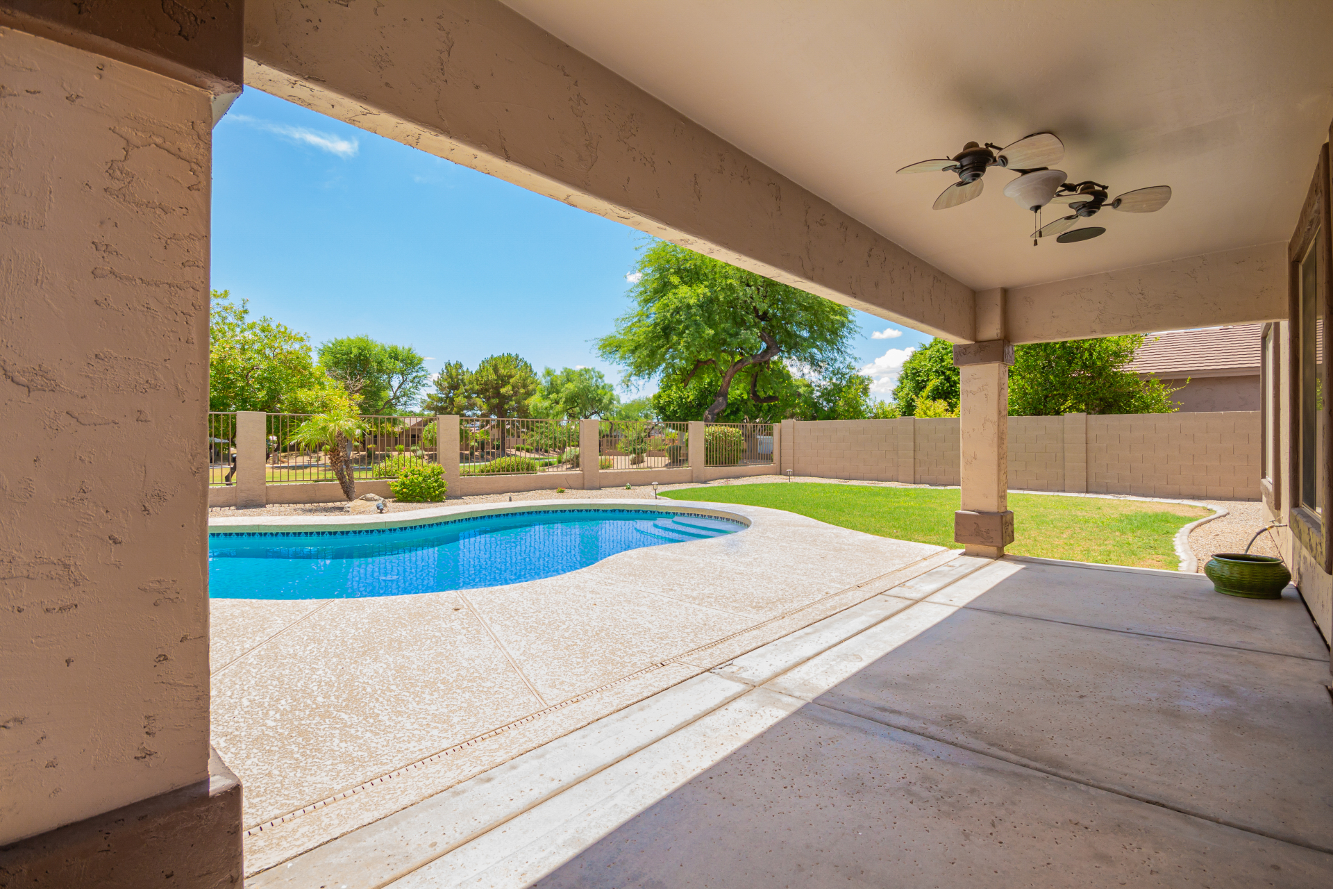 This stunning 2-level home with POOL awaits you nestled in a quiet cul-de-sac in the sought-after Highland Point! All the space you need, with 3 bedrooms plus den, 2.5 bathrooms, and a 2-car garage with attached cabinetry. The impressive interior showcases soft carpeting underfoot, tile flooring in high-traffic areas, soaring vaulted ceilings, plenty of natural light, and a neutral palette. The impeccable kitchen displays ample cabinets, custom backsplash, granite counters, a pantry, stainless steel appliances, and an island for those casual chats over quick meals. The airy primary bedroom has a walk-in closet and an ensuite with double sinks and a separate shower & tub. Double doors open to a spacious den perfect for an office or study room. The backyard will be your retreat, featuring a