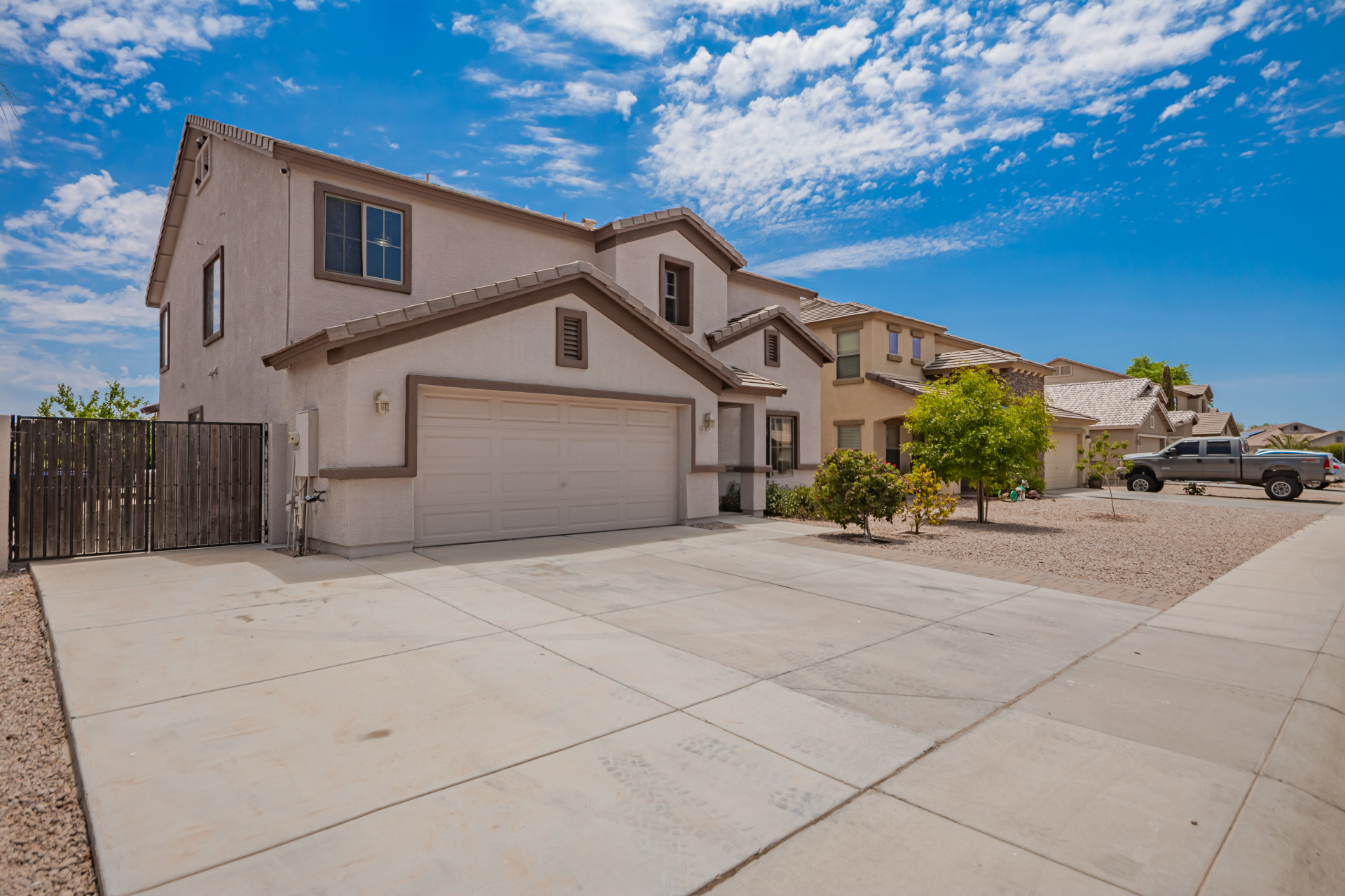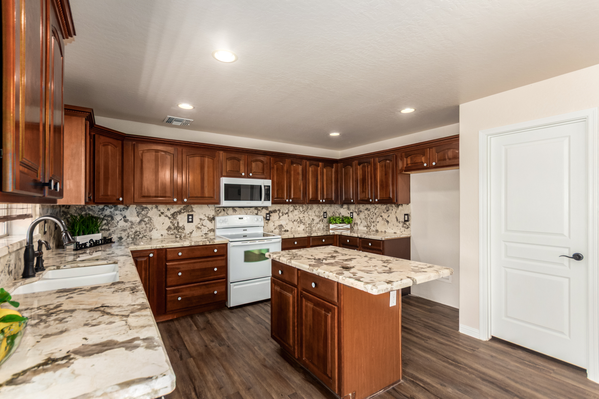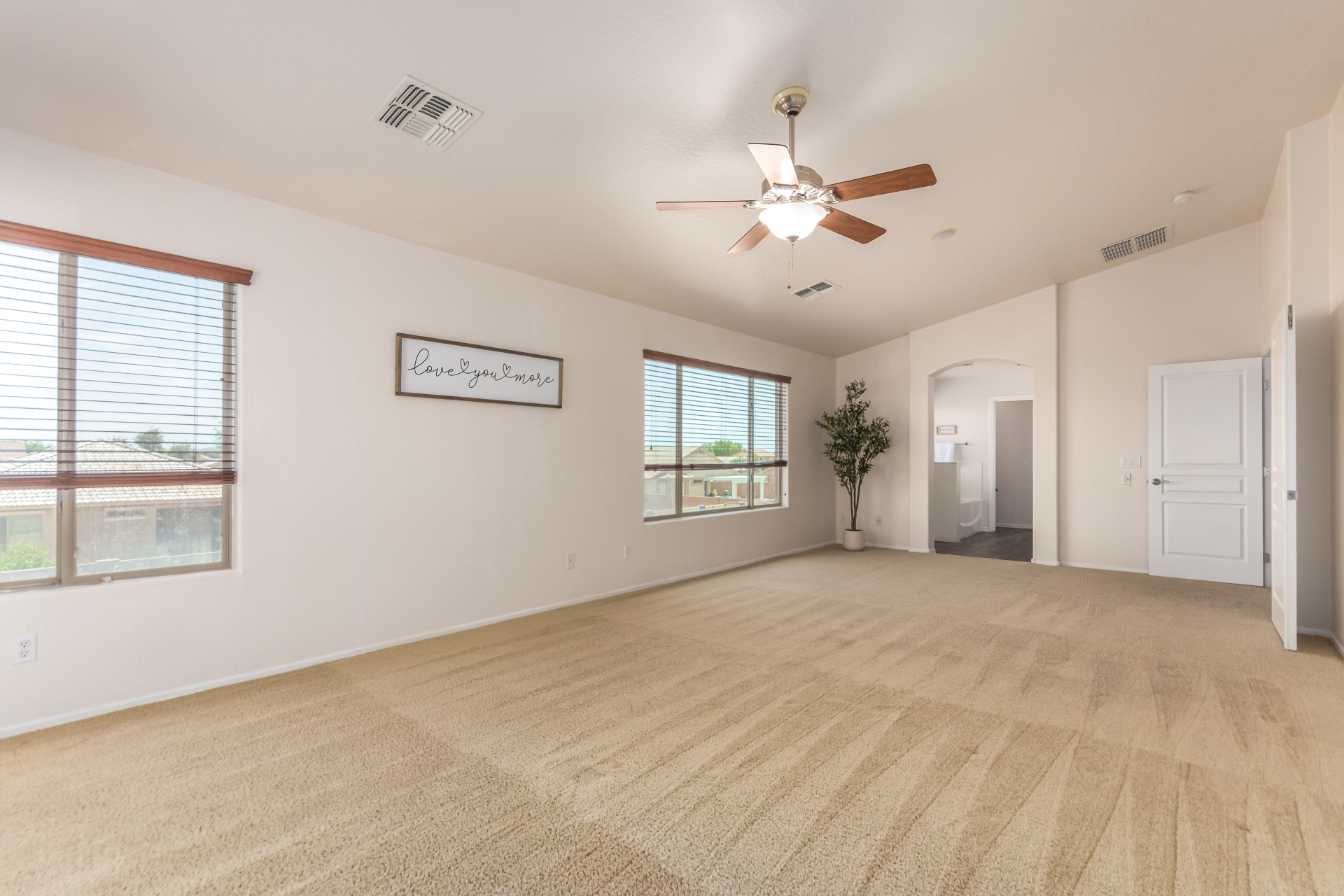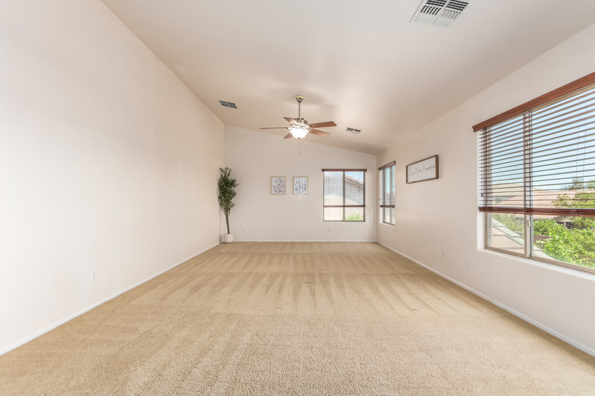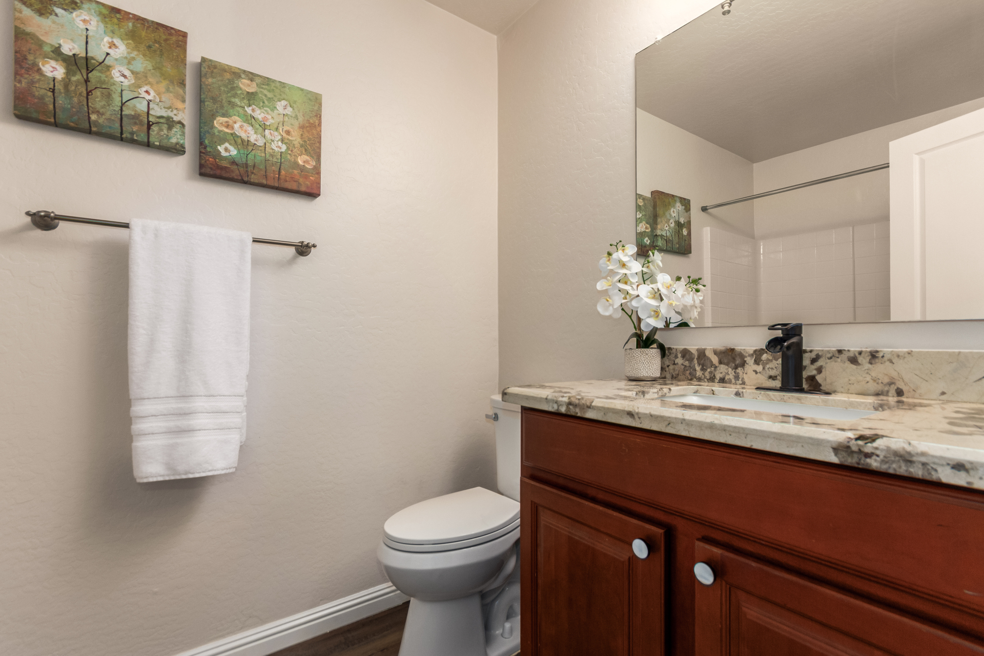 Gorgeous move-in ready residence at Rancho Bella Vista! This amazing home showcases a great curb appeal, a low-maintenance landscape, and a 2 car garage. The interior boasts a living/dining room with freshly cleaned carpet. The elegant wood-look floors flow throughout the large family room. The bright kitchen features recessed lighting, abundant cabinets, and granite backsplash & counters. The oversized loft has built-in desks & space for an entertainment area. The massive owner's suite has vaulted ceilings, plush carpet, and a full ensuite w/a dual granite vanity & a walk-in closet. The backyard offers a covered patio and lush greenery promoting easy entertaining. Close to the neighborhood's parks, easy access to major roads, and a short drive to restaurants & markets. Act now!