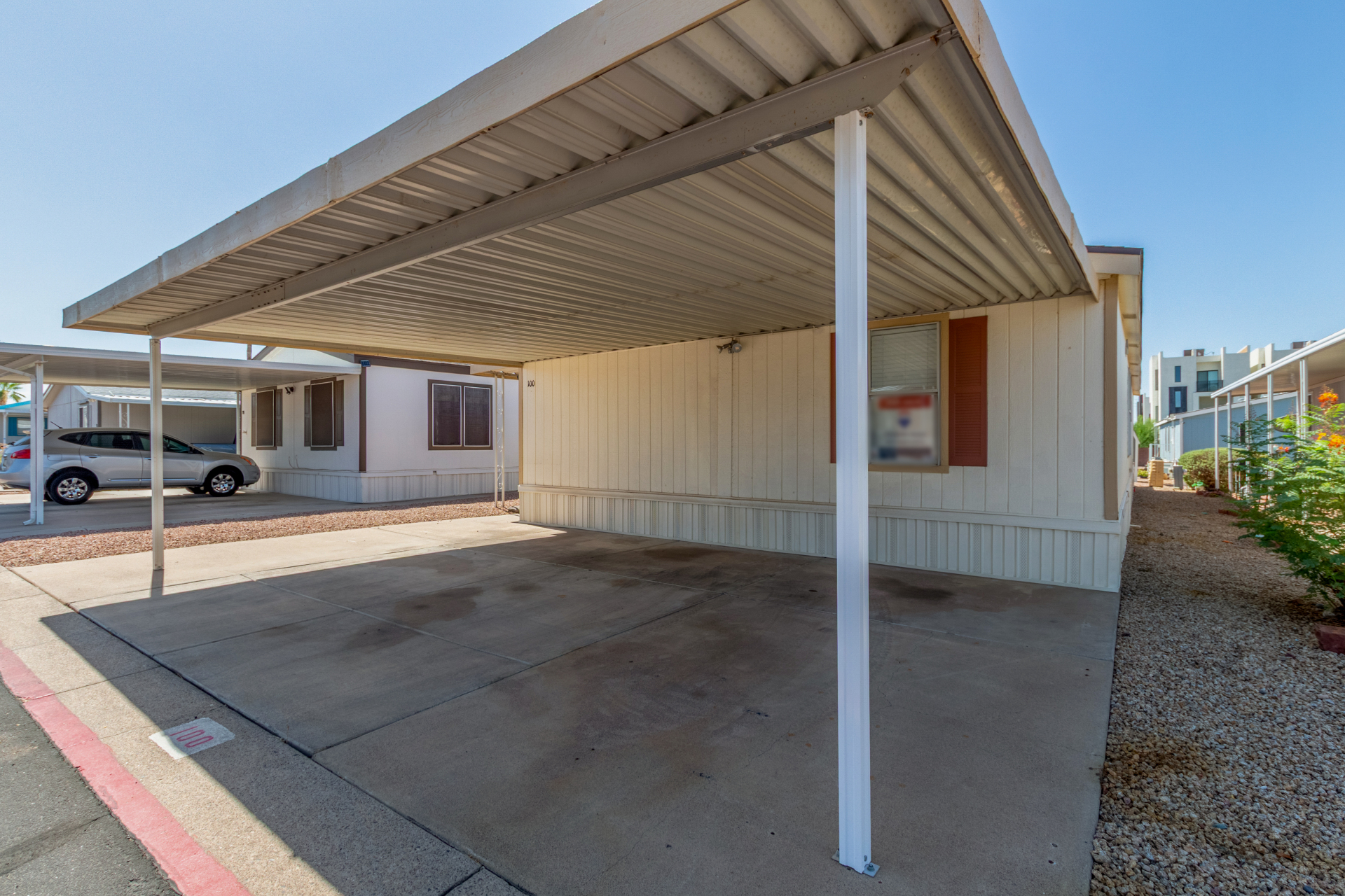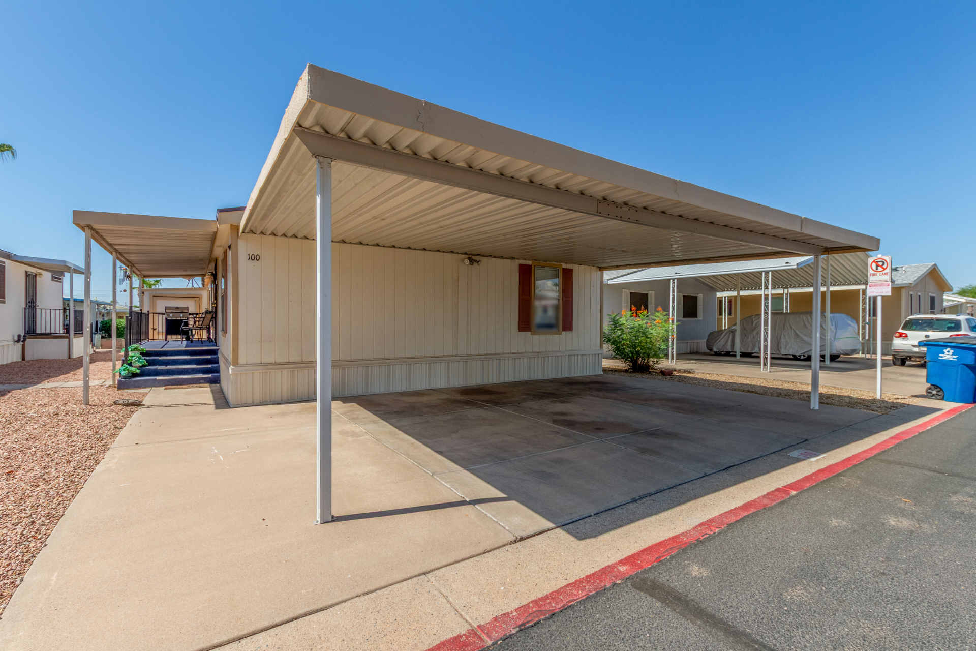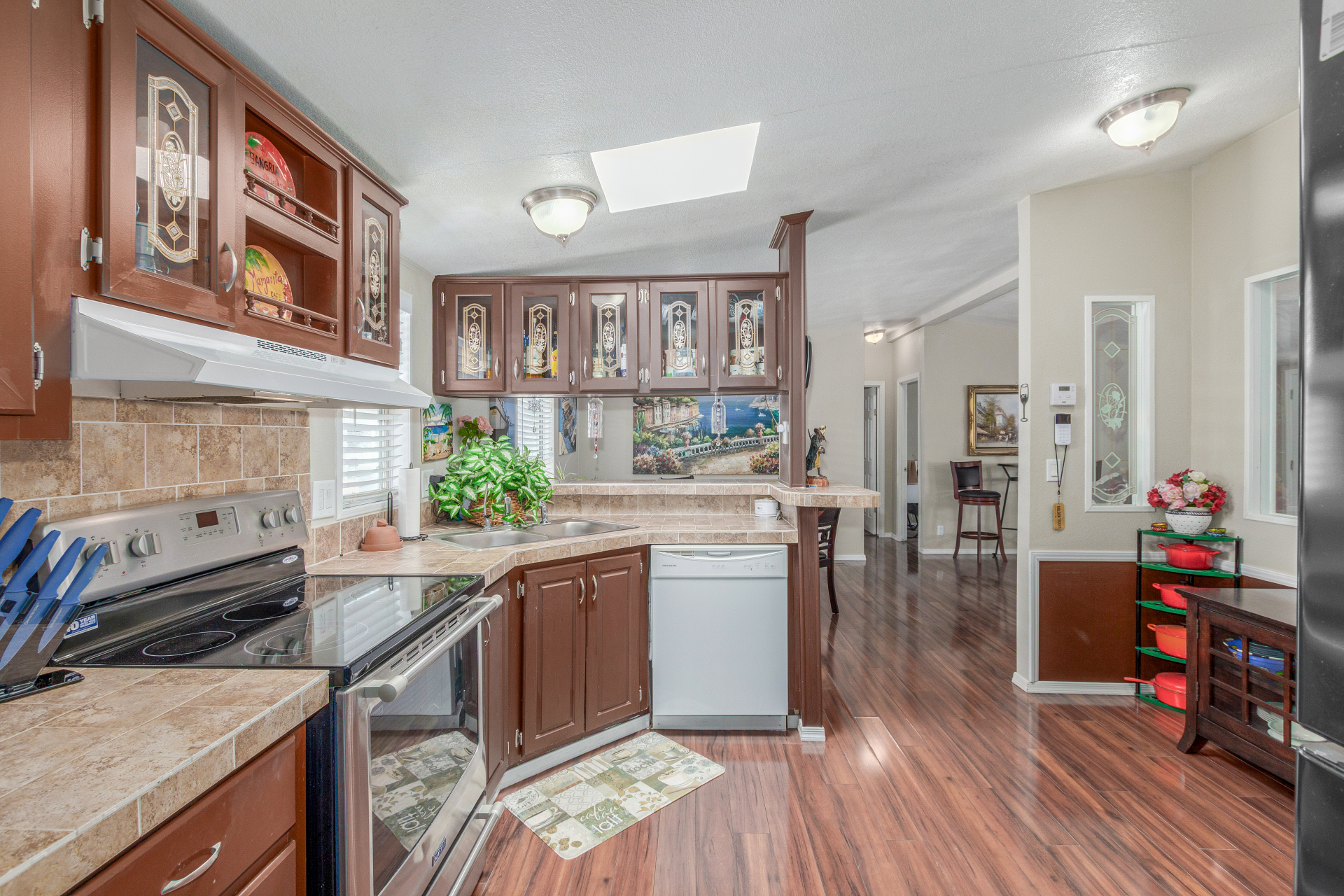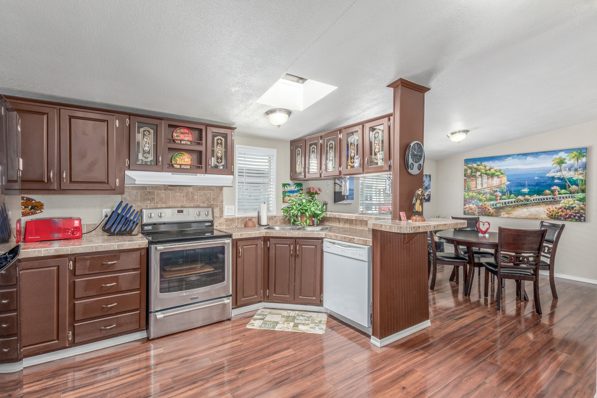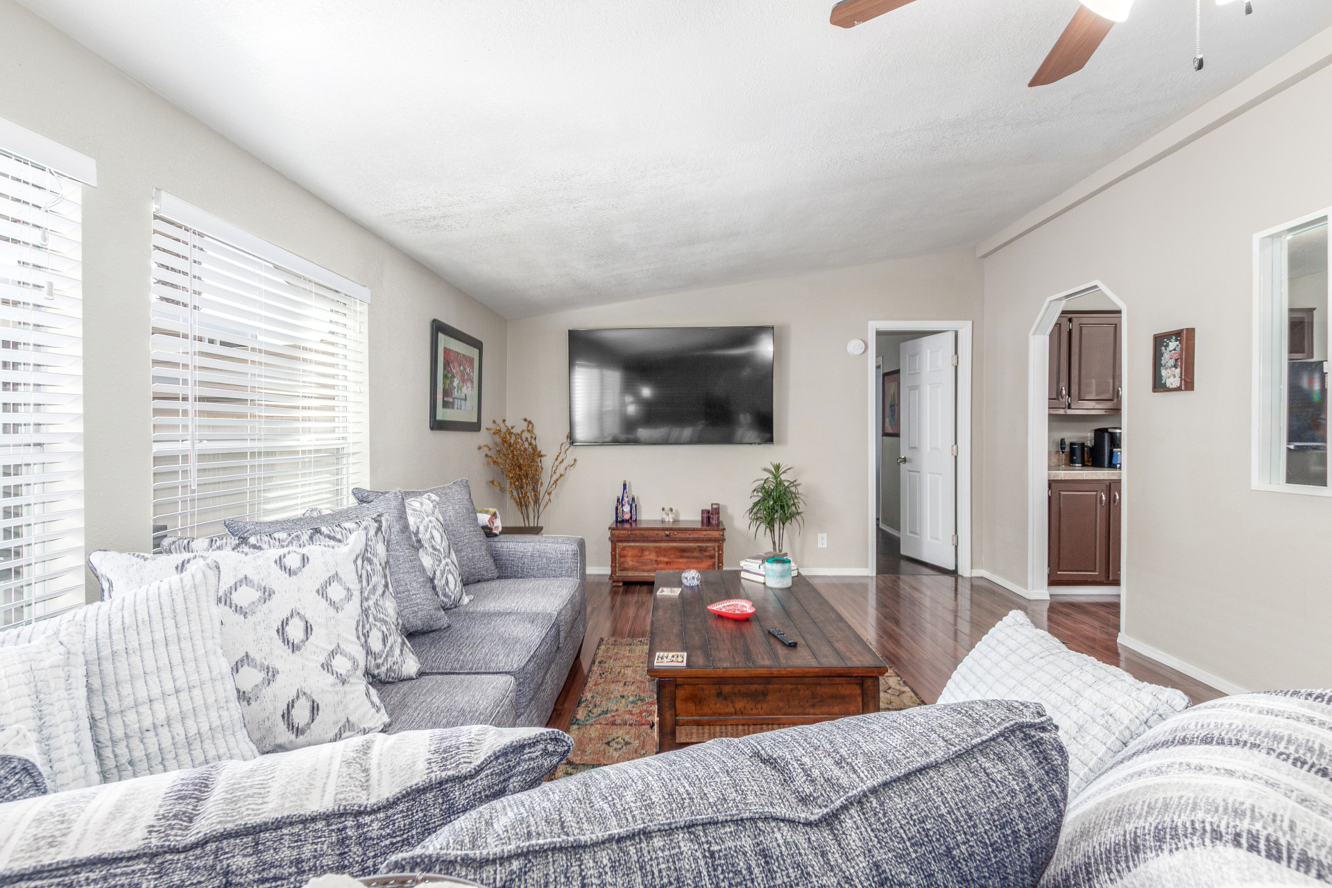 You don't want to miss this lovely manufactured home! Offering a cozy covered patio and convenient carport parking! Inside, you'll find vaulted ceilings, wood-look flooring, neutral paint, and plenty of natural light. The homely kitchen boasts spacious cabinetry, ample counter space, and built-in appliances. The sizable main bedroom has a closet and a bathroom for privacy. All secondary bedrooms have carpeting underfoot for added comfort. Don't forget to visit the community's pool, playground, and more! Near tons of restaurants and shopping options! What's not to love? Make it yours!