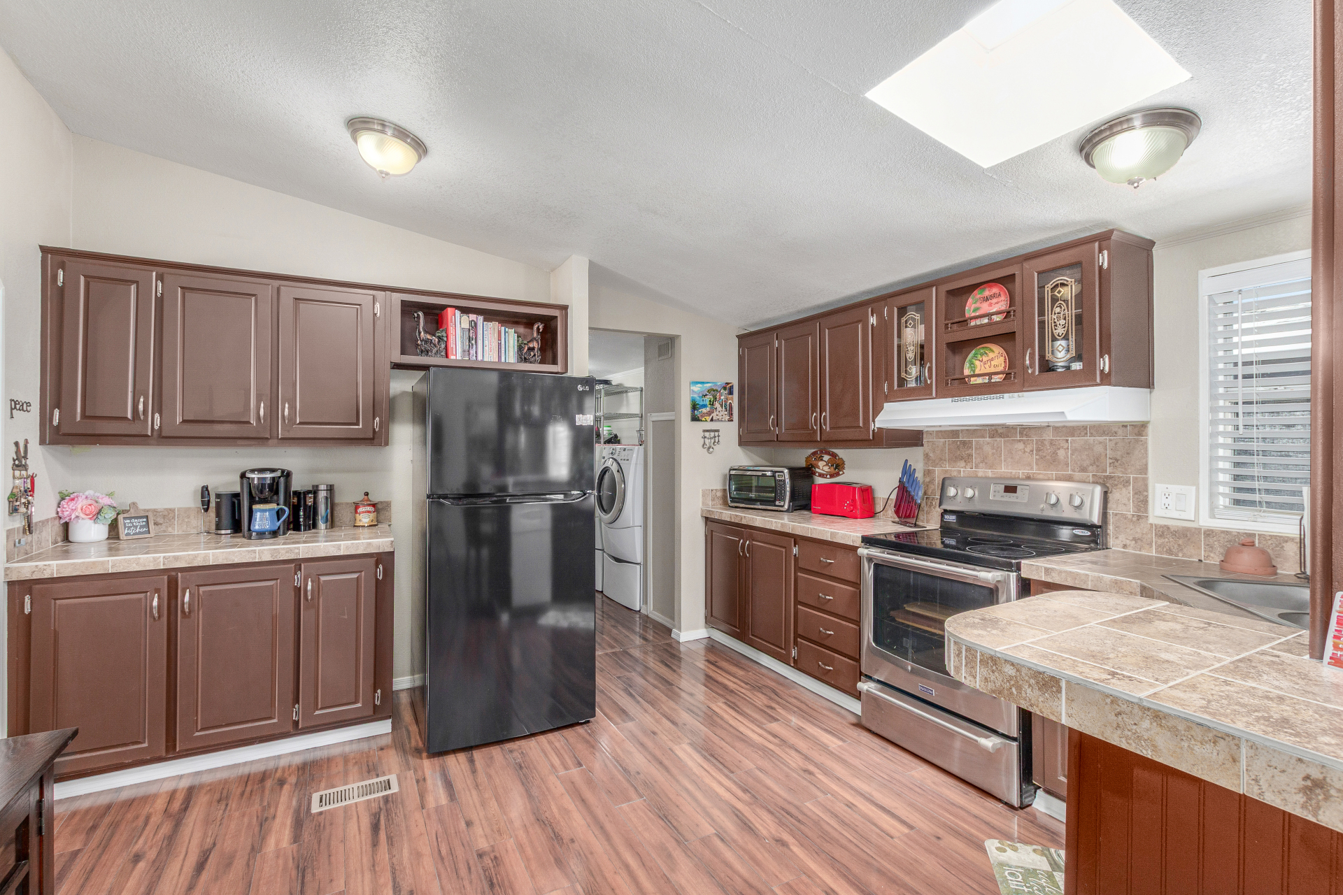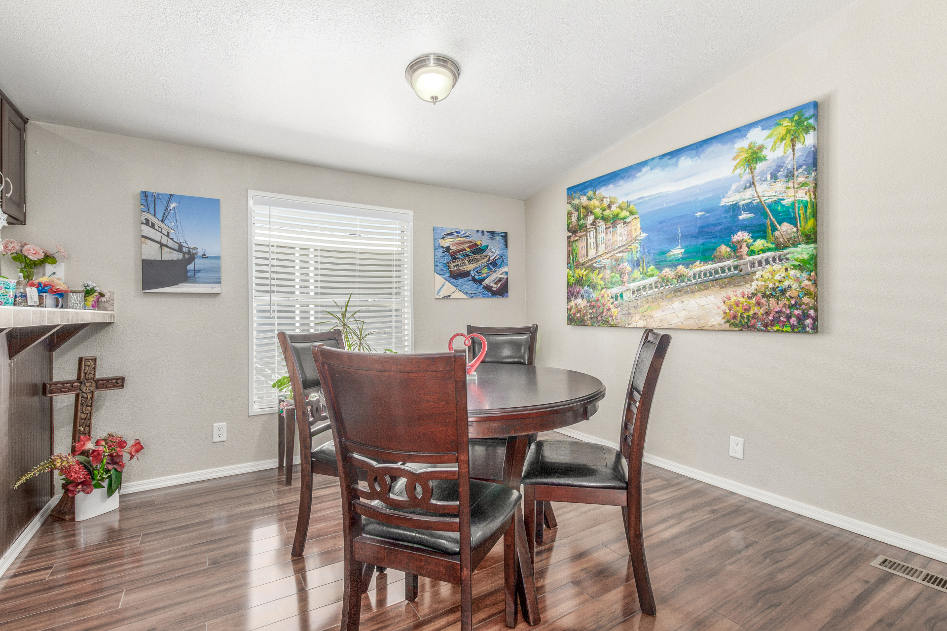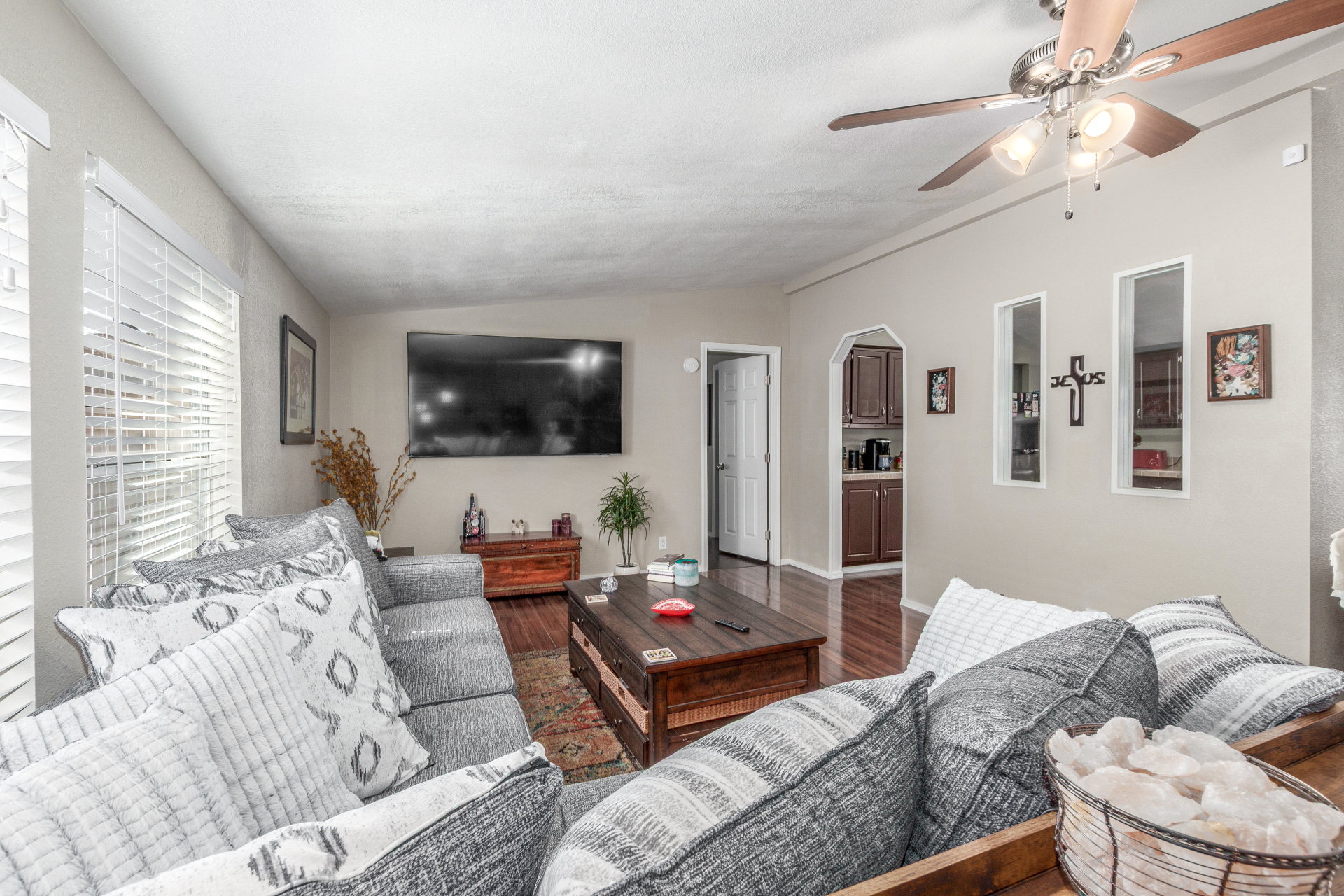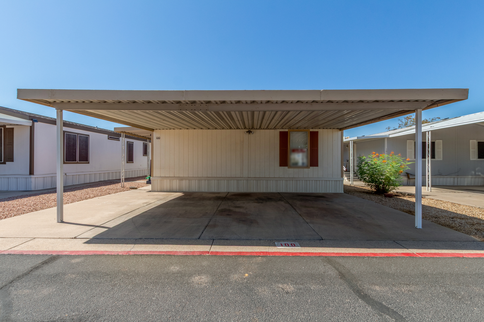 You don't want to miss this lovely manufactured home! Offering a cozy covered patio and convenient carport parking! Inside, you'll find vaulted ceilings, wood-look flooring, neutral paint, and plenty of natural light. The homely kitchen boasts spacious cabinetry, ample counter space, and built-in appliances. The sizable main bedroom has a closet and a bathroom for privacy. All secondary bedrooms have carpeting underfoot for added comfort. Don't forget to visit the community's pool, playground, and more! Near tons of restaurants and shopping options! What's not to love? Make it yours!