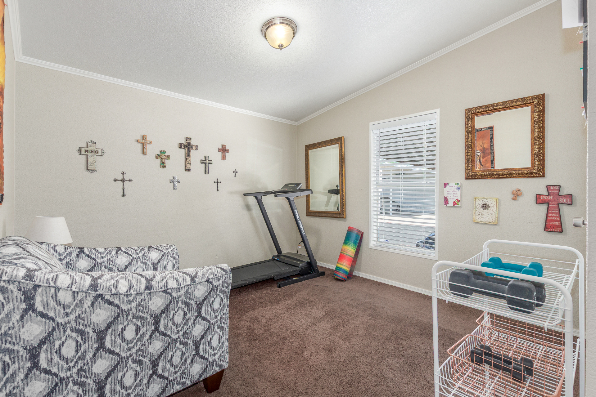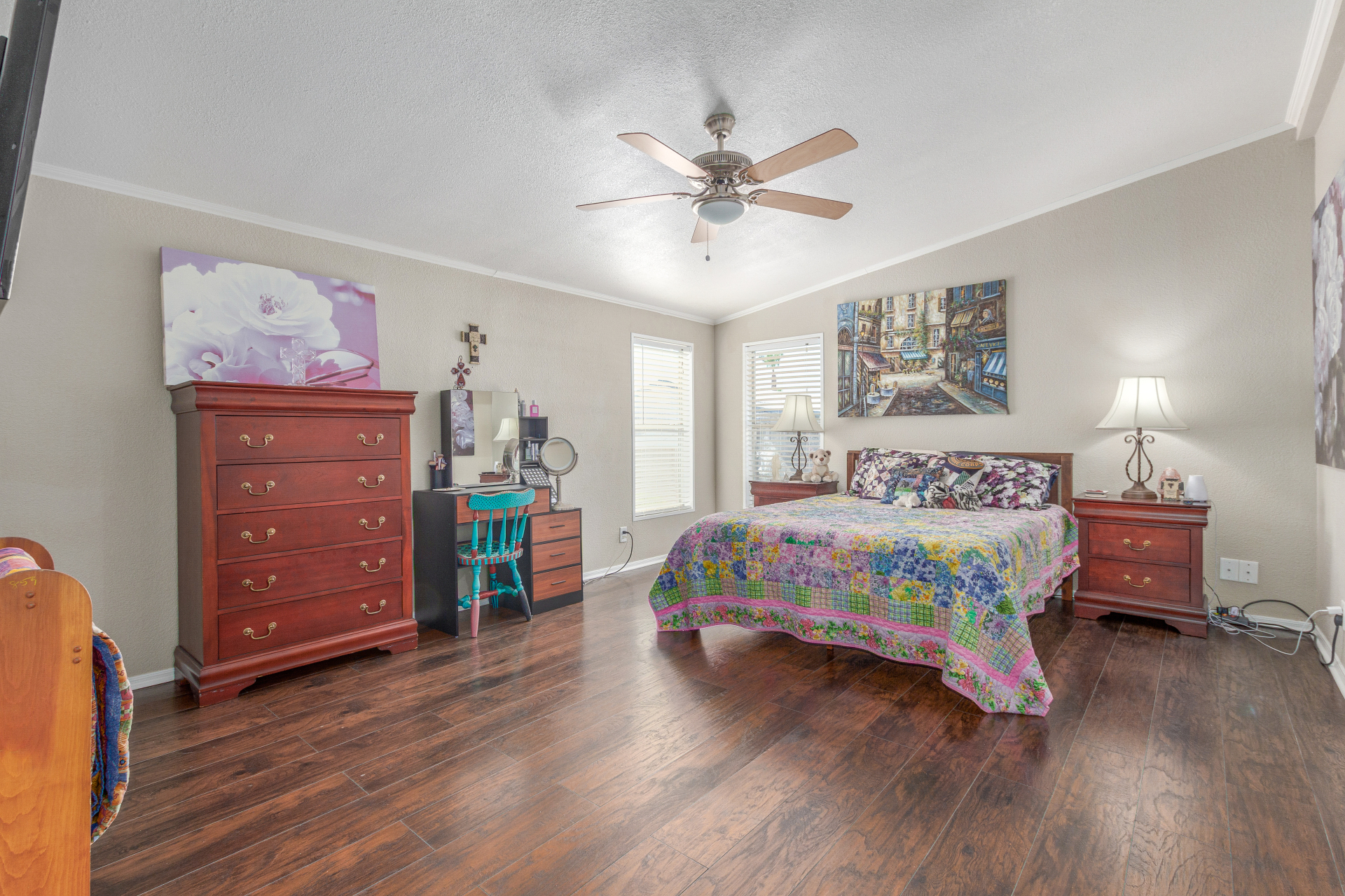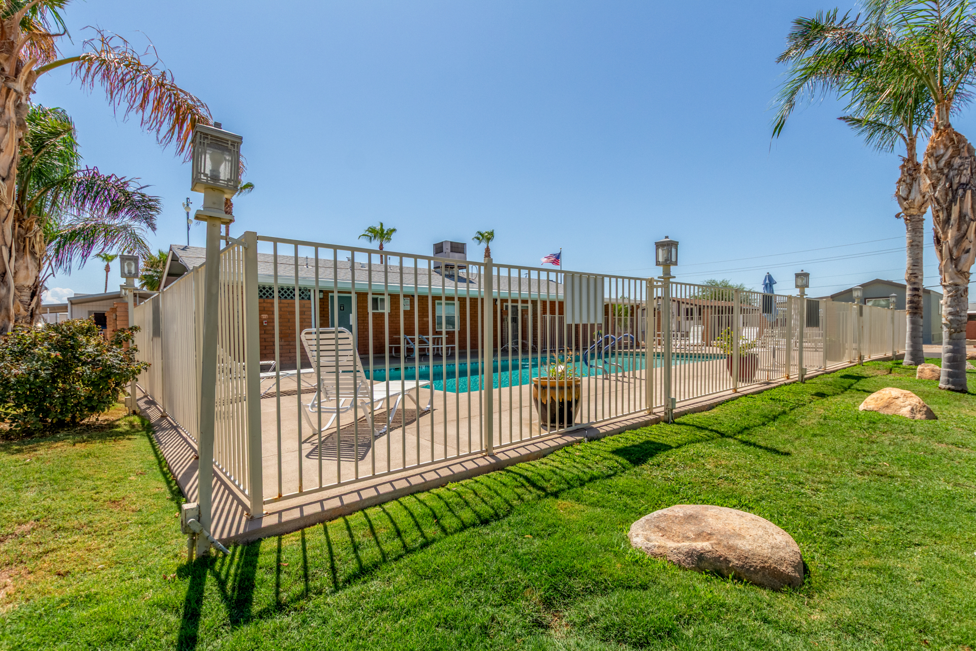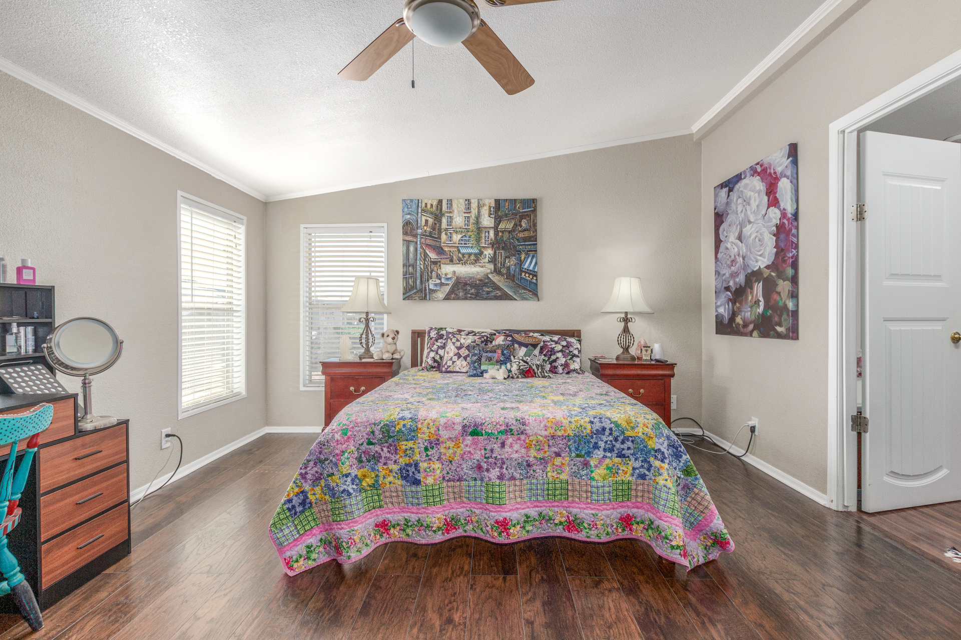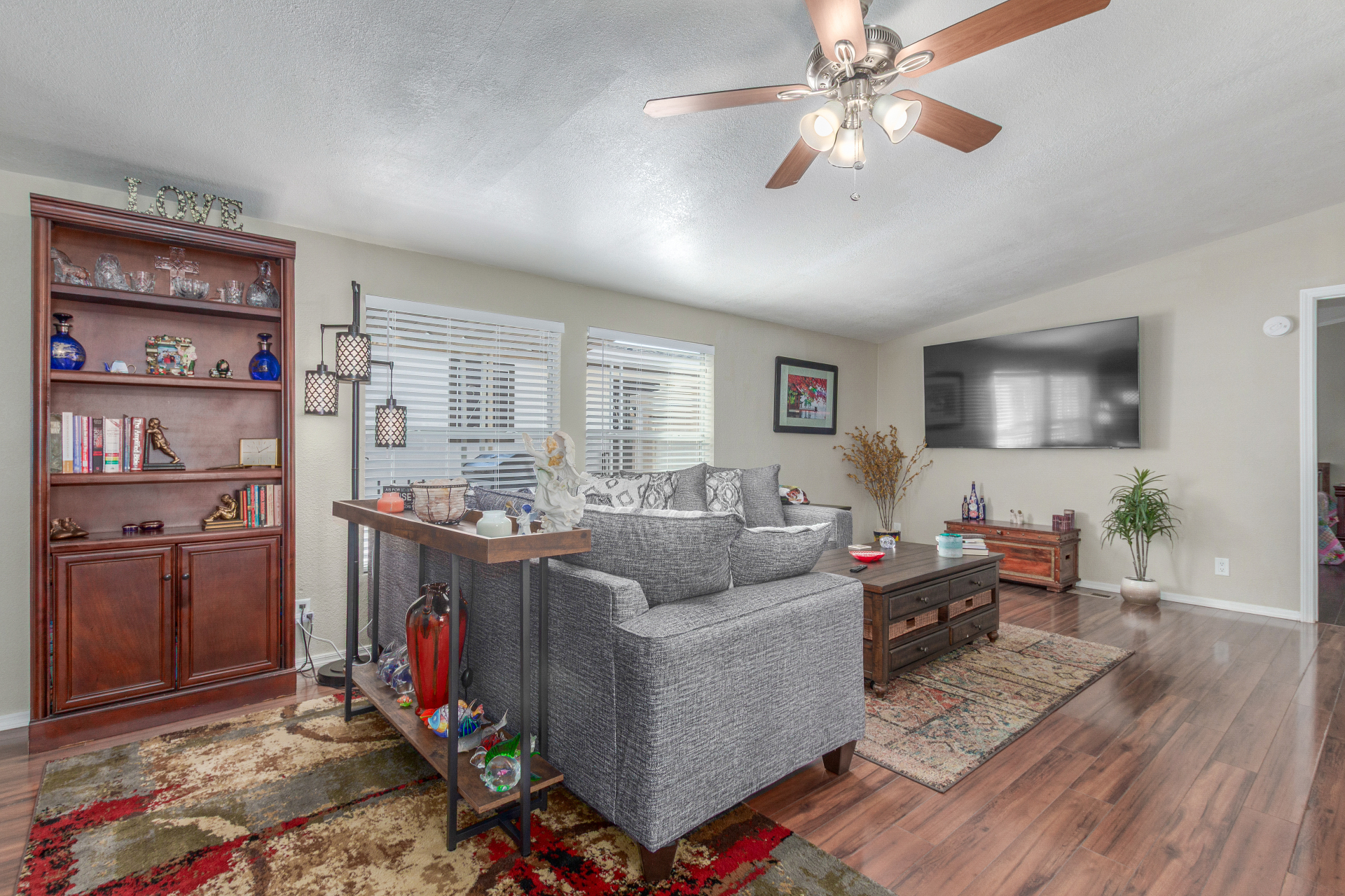You don't want to miss this lovely manufactured home! Offering a cozy covered patio and convenient carport parking! Inside, you'll find vaulted ceilings, wood-look flooring, neutral paint, and plenty of natural light. The homely kitchen boasts spacious cabinetry, ample counter space, and built-in appliances. The sizable main bedroom has a closet and a bathroom for privacy. All secondary bedrooms have carpeting underfoot for added comfort. Don't forget to visit the community's pool, playground, and more! Near tons of restaurants and shopping options! What's not to love? Make it yours!