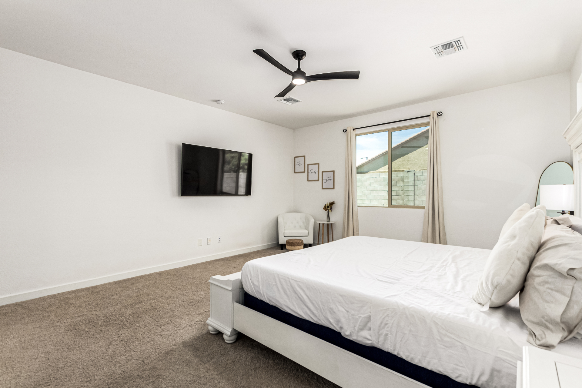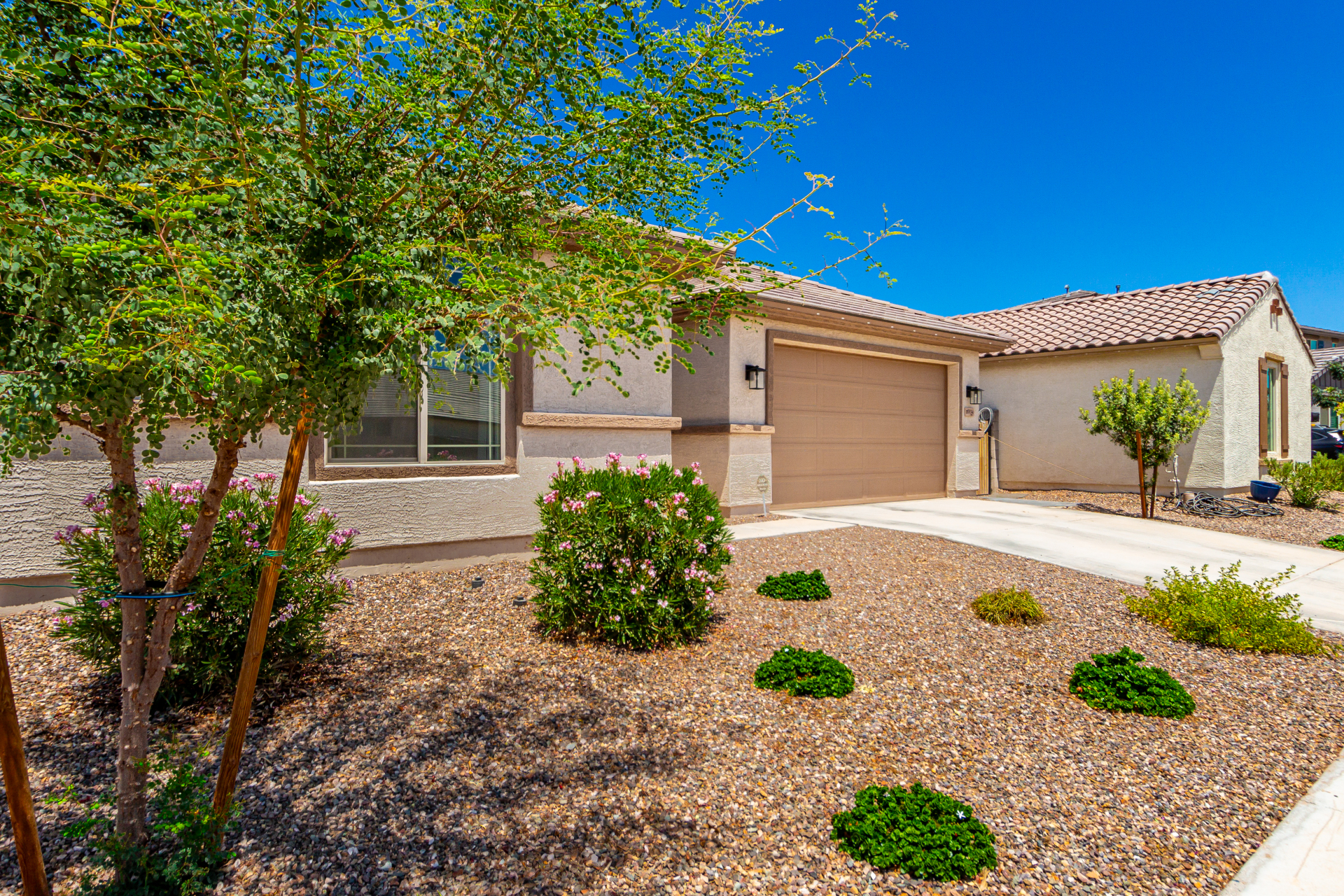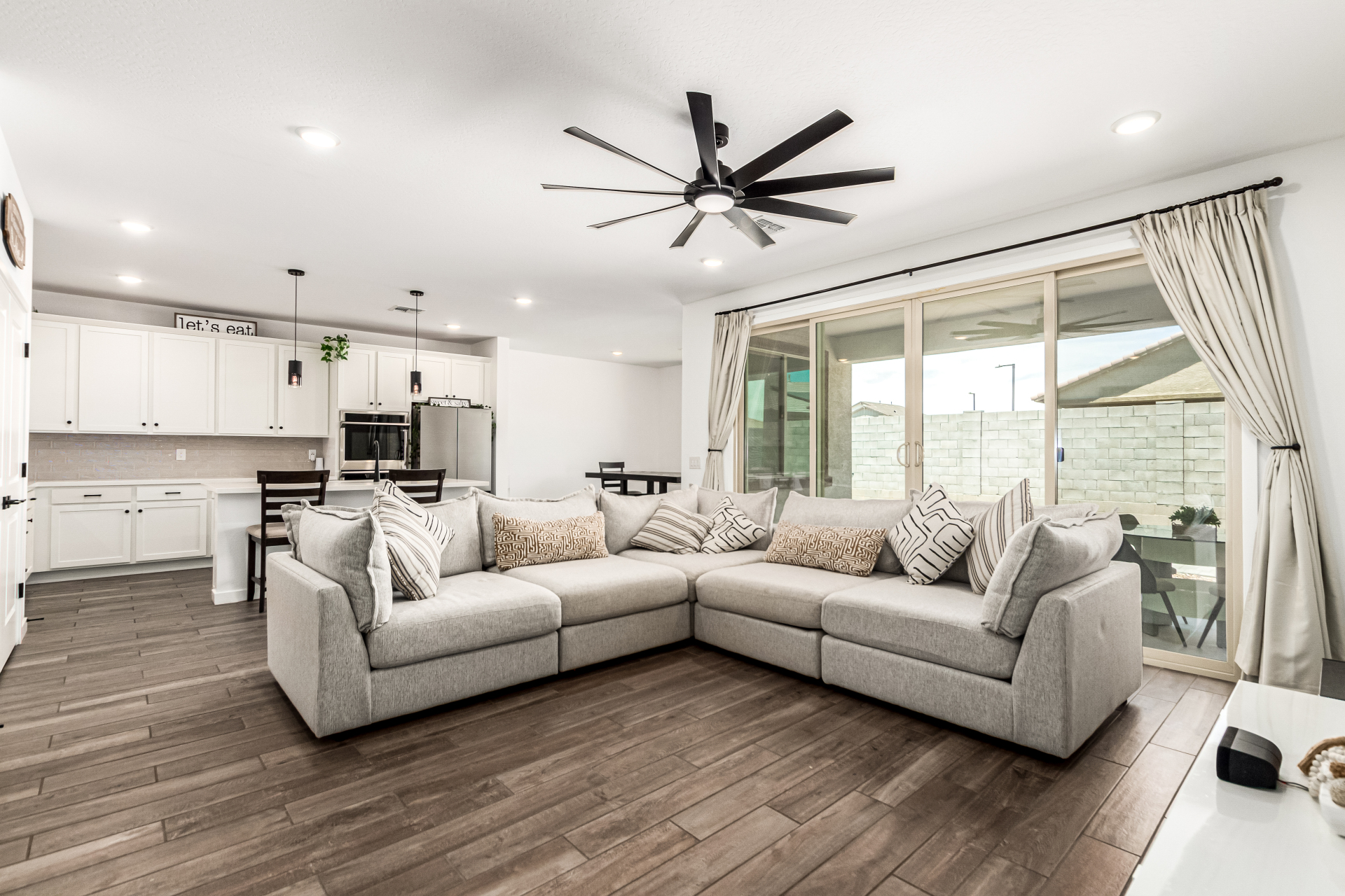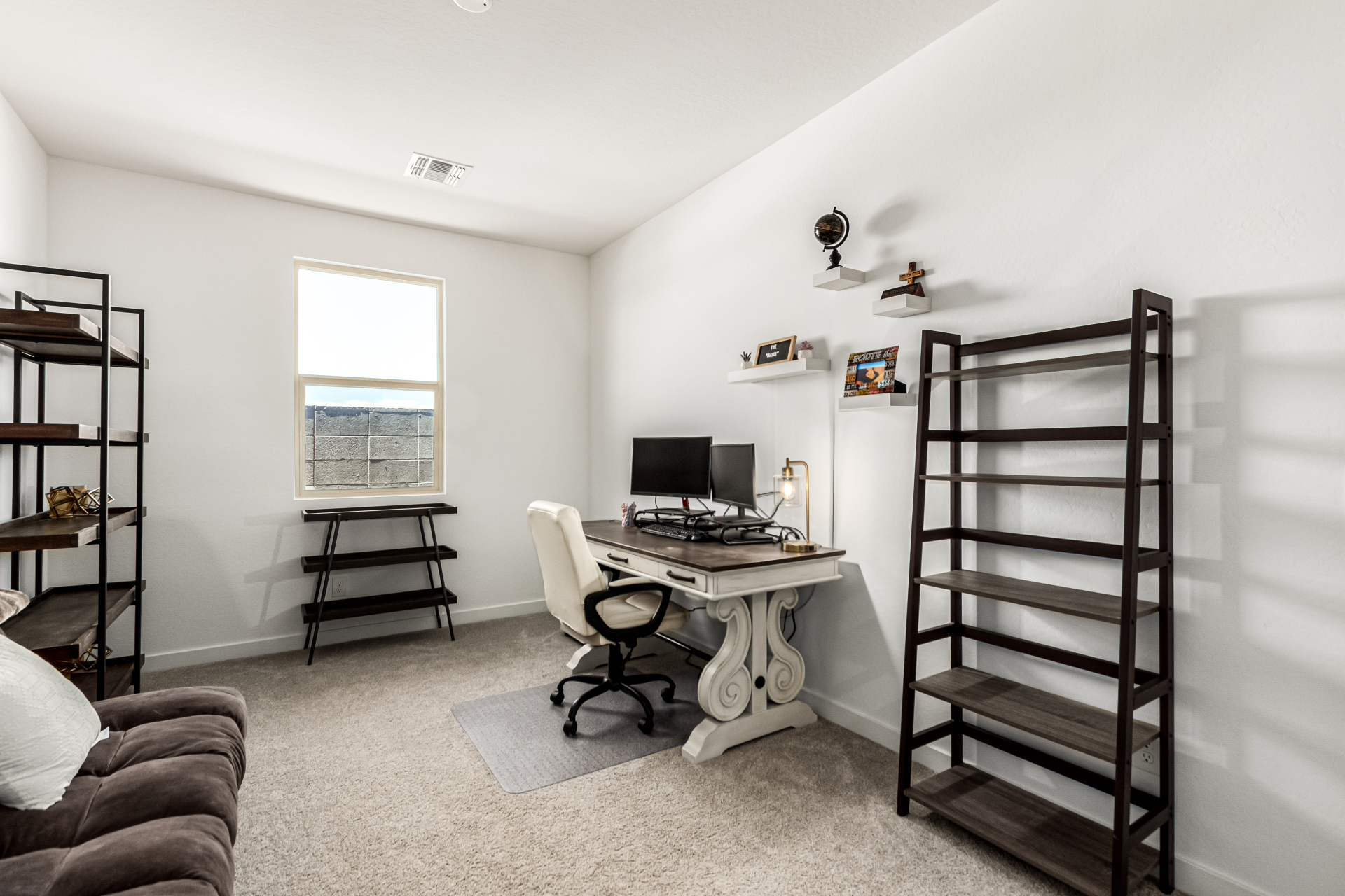 Your dream corner lot home is within reach! Fall in love with the stunning open layout showcasing high ceilings, recessed lighting, a soothing palette, and attractive wood-look flooring. The gorgeous kitchen comes with quartz counters, white shaker cabinets with crown moulding, chic pendant lighting, stainless steel appliances, a pantry, and an island with a breakfast bar for casual meals. The serene primary bedroom boasts plush carpeting, an ensuite with double sinks, and a large walk-in closet. You'll also find a cozy den and a versatile bonus room, offering flexible living spaces to fit your lifestyle. Venture out onto the charming backyard, which includes a covered patio for dining al fresco and stylish pavers. Make this gem yours today!