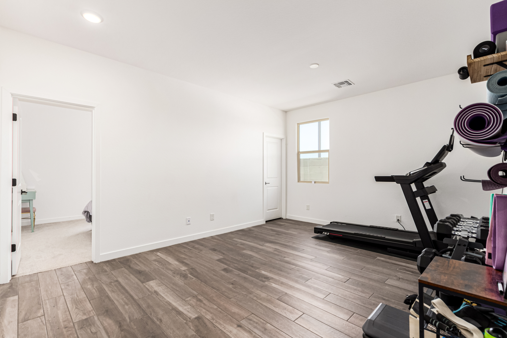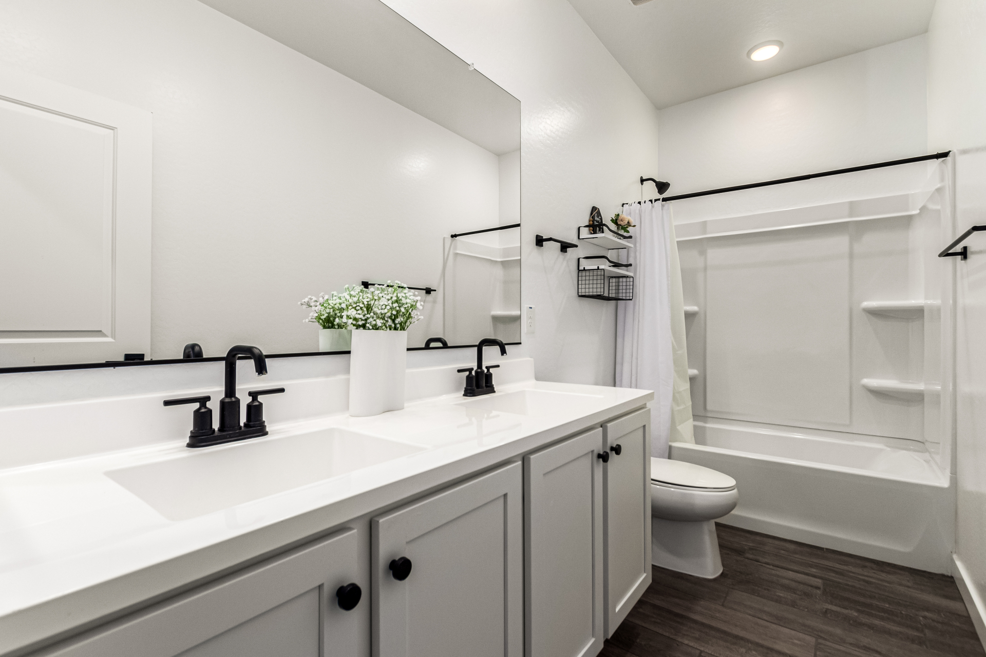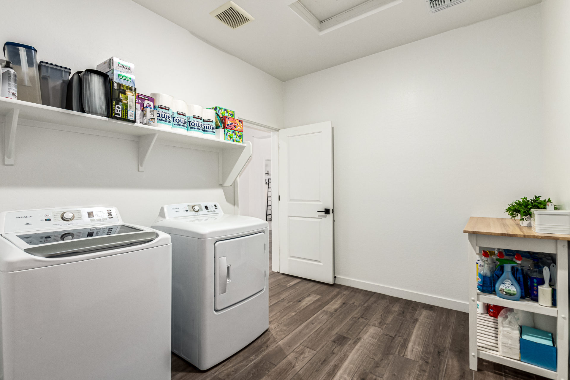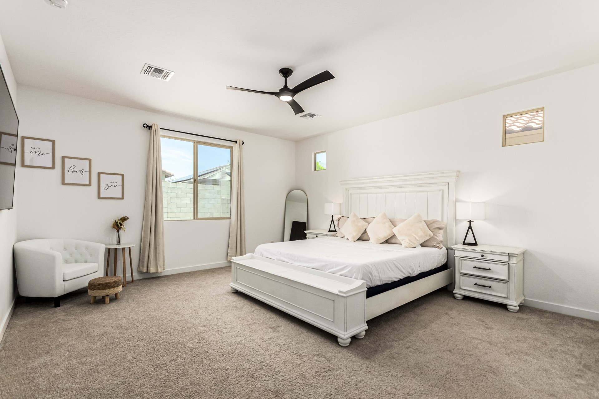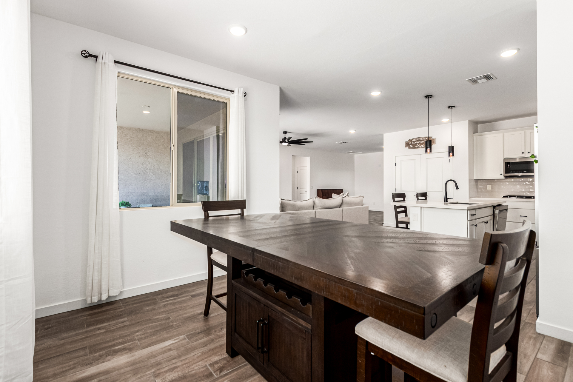 Your dream corner lot home is within reach! Fall in love with the stunning open layout showcasing high ceilings, recessed lighting, a soothing palette, and attractive wood-look flooring. The gorgeous kitchen comes with quartz counters, white shaker cabinets with crown moulding, chic pendant lighting, stainless steel appliances, a pantry, and an island with a breakfast bar for casual meals. The serene primary bedroom boasts plush carpeting, an ensuite with double sinks, and a large walk-in closet. You'll also find a cozy den and a versatile bonus room, offering flexible living spaces to fit your lifestyle. Venture out onto the charming backyard, which includes a covered patio for dining al fresco and stylish pavers. Make this gem yours today!