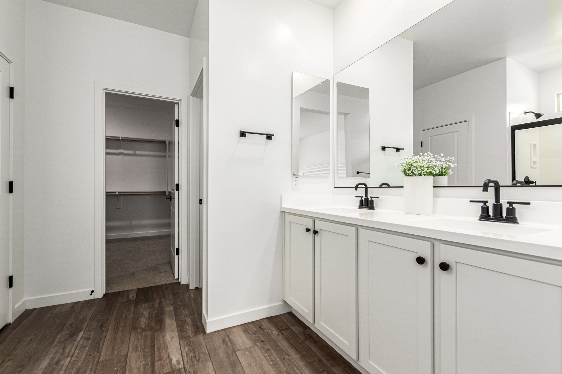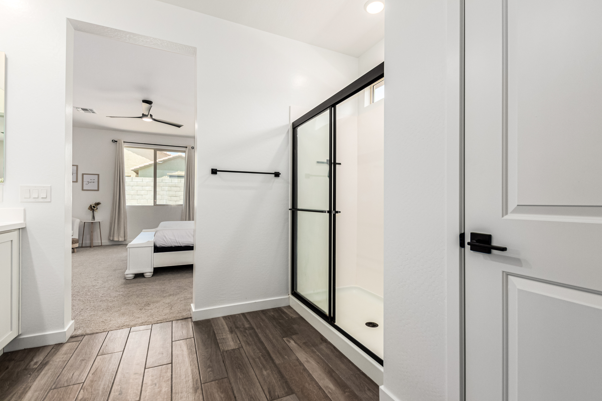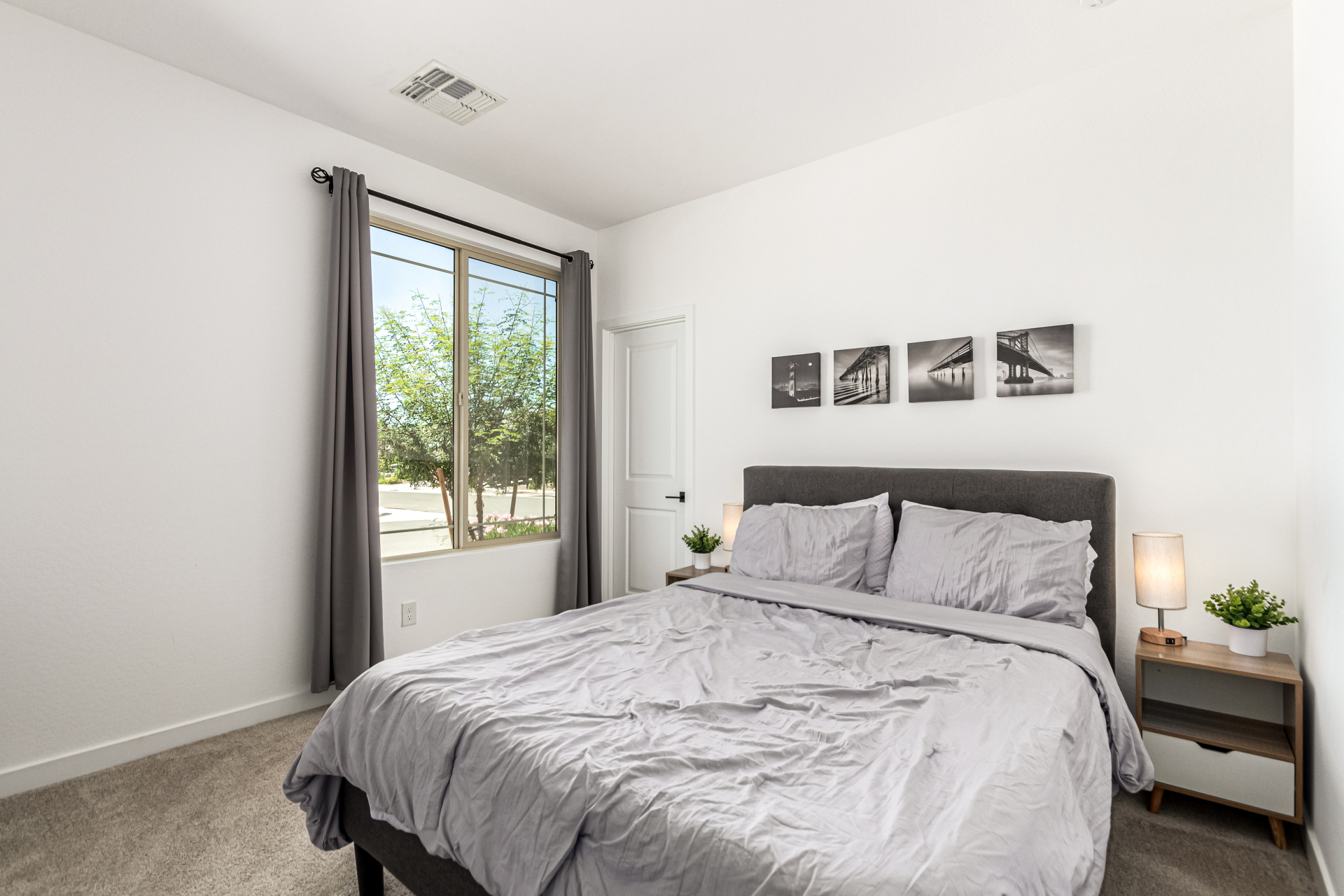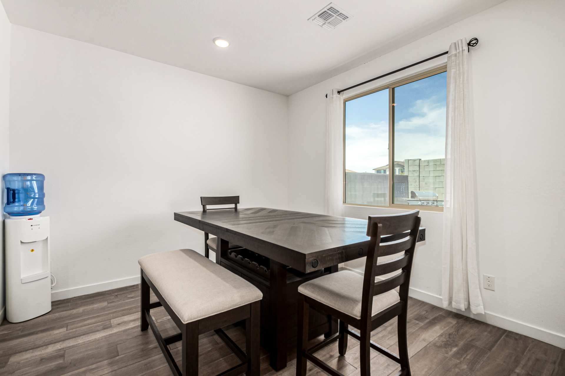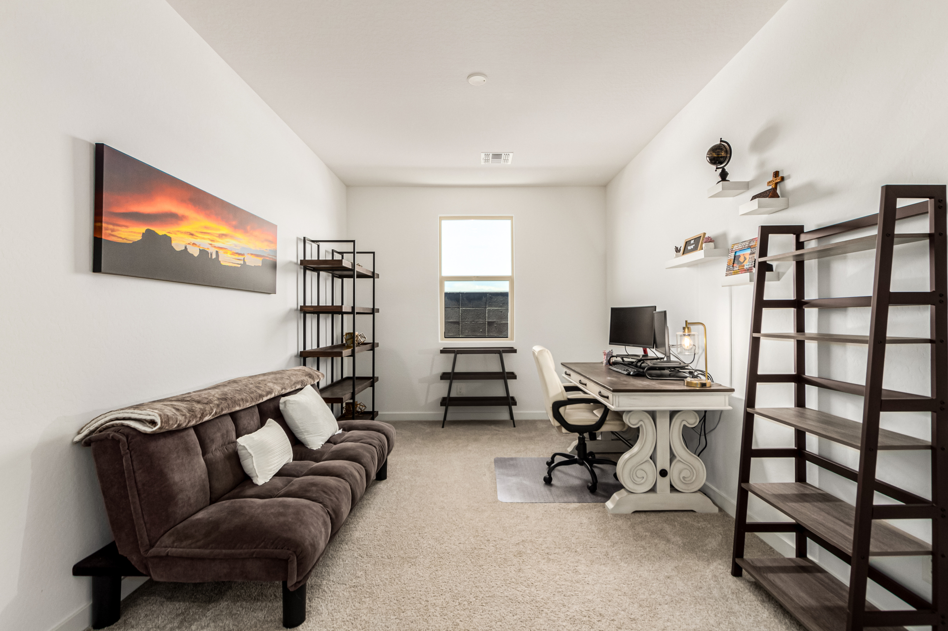 Your dream corner lot home is within reach! Fall in love with the stunning open layout showcasing high ceilings, recessed lighting, a soothing palette, and attractive wood-look flooring. The gorgeous kitchen comes with quartz counters, white shaker cabinets with crown moulding, chic pendant lighting, stainless steel appliances, a pantry, and an island with a breakfast bar for casual meals. The serene primary bedroom boasts plush carpeting, an ensuite with double sinks, and a large walk-in closet. You'll also find a cozy den and a versatile bonus room, offering flexible living spaces to fit your lifestyle. Venture out onto the charming backyard, which includes a covered patio for dining al fresco and stylish pavers. Make this gem yours today!