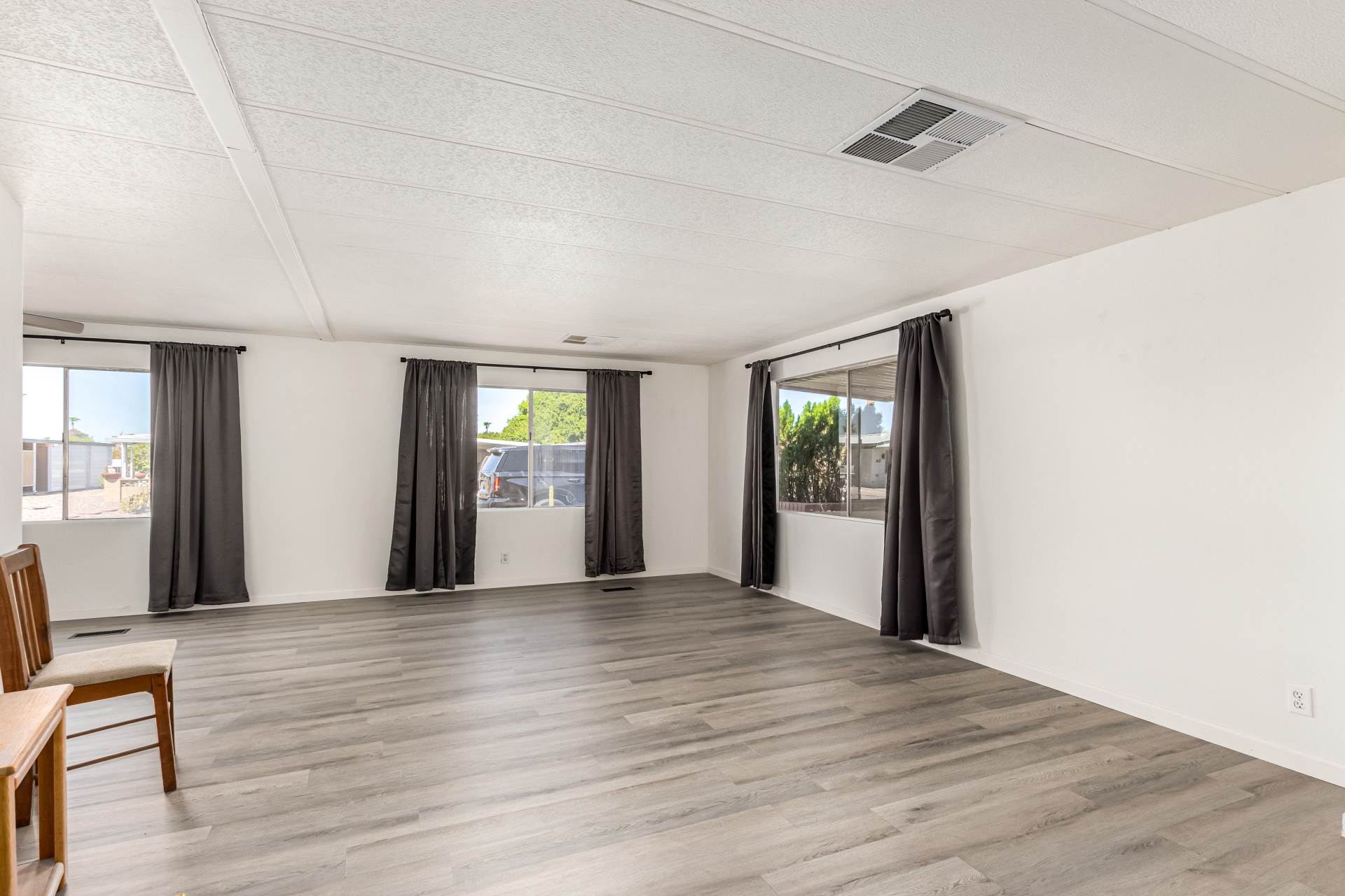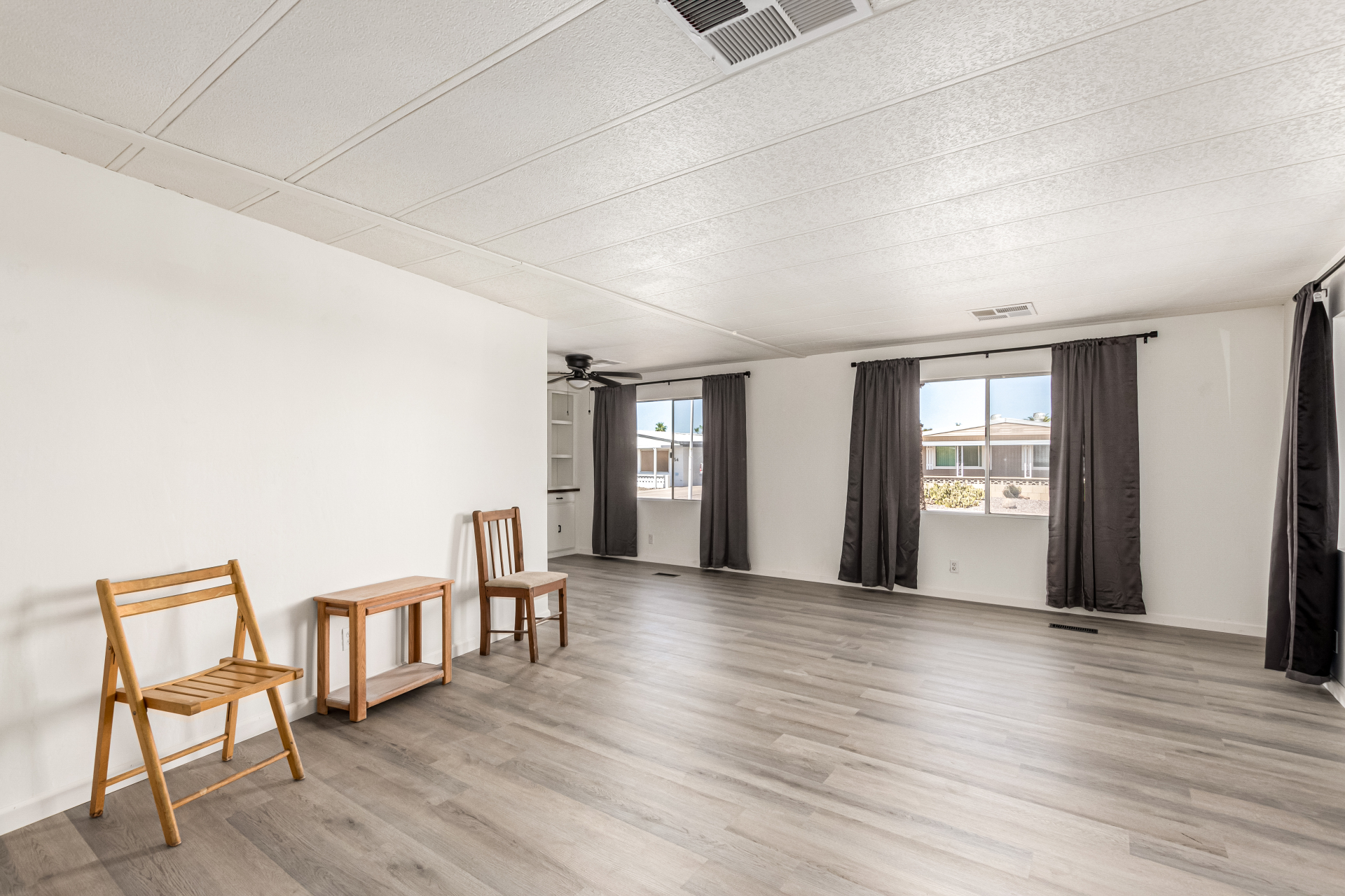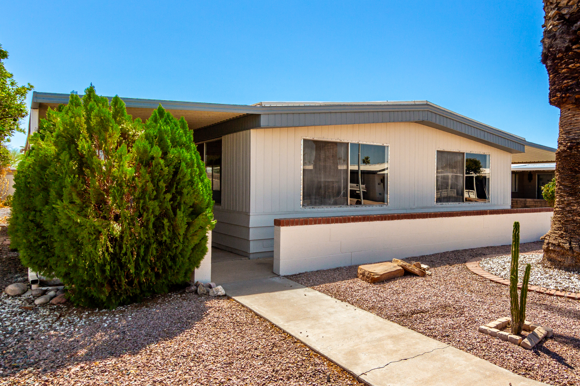 Welcome to this charming 2-bedroom mobile home in the adult Community of Village Grove! Inside, you'll find a serene living room with a soothing palette and attractive wood-look flooring for a timeless appeal. The well-appointed kitchen comes with flat-panel cabinetry, a tile backsplash, a pantry, and essential built-in appliances for an enjoyable cooking experience. The main bedroom offers a private bathroom for added comfort. Outside, discover a backyard with a covered patio and a shed for additional storage. Conveniently located close to bus stops and shopping options. Don't miss out on this one!