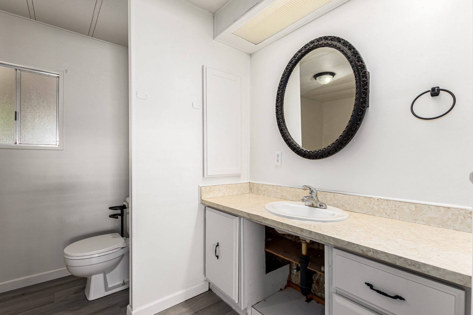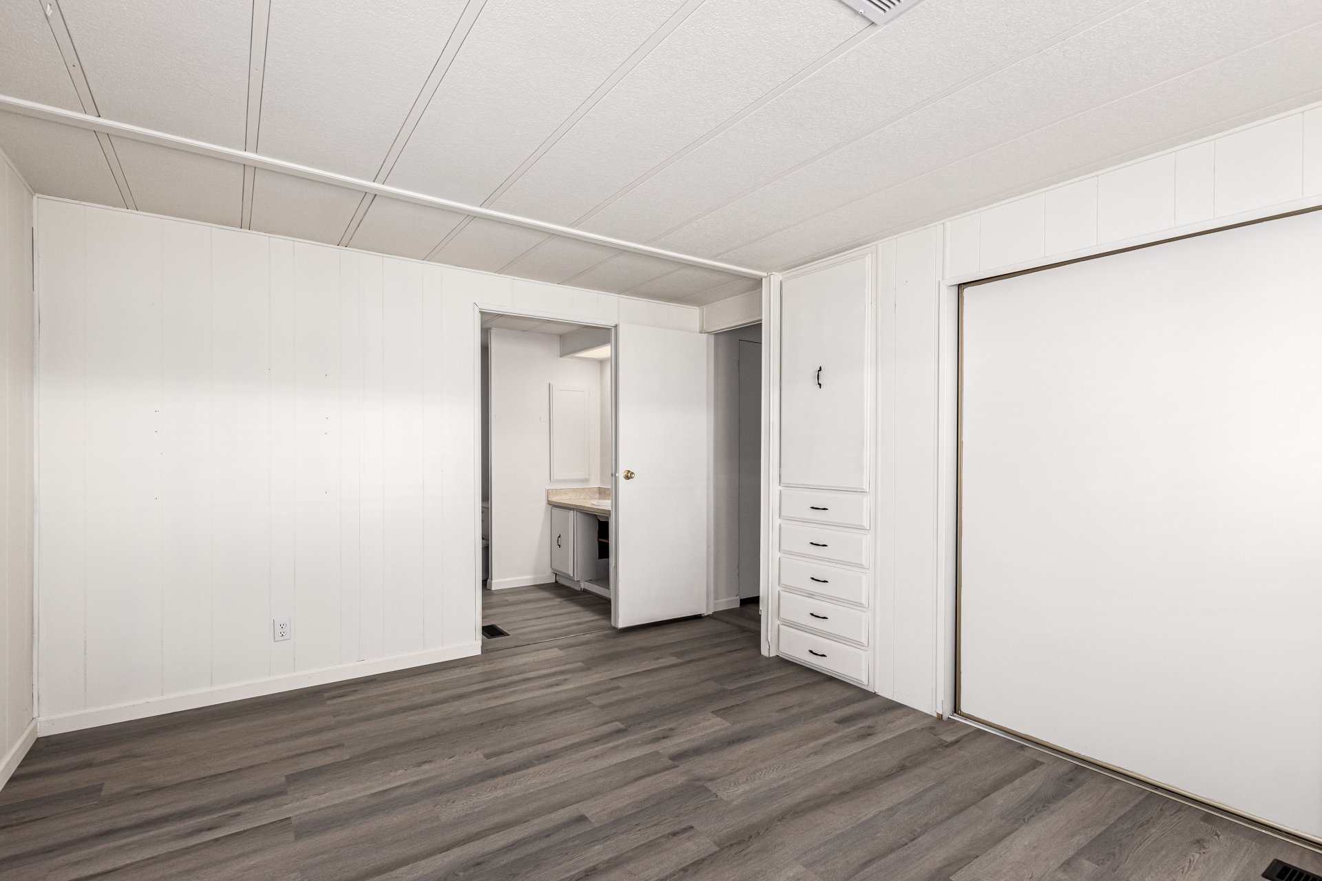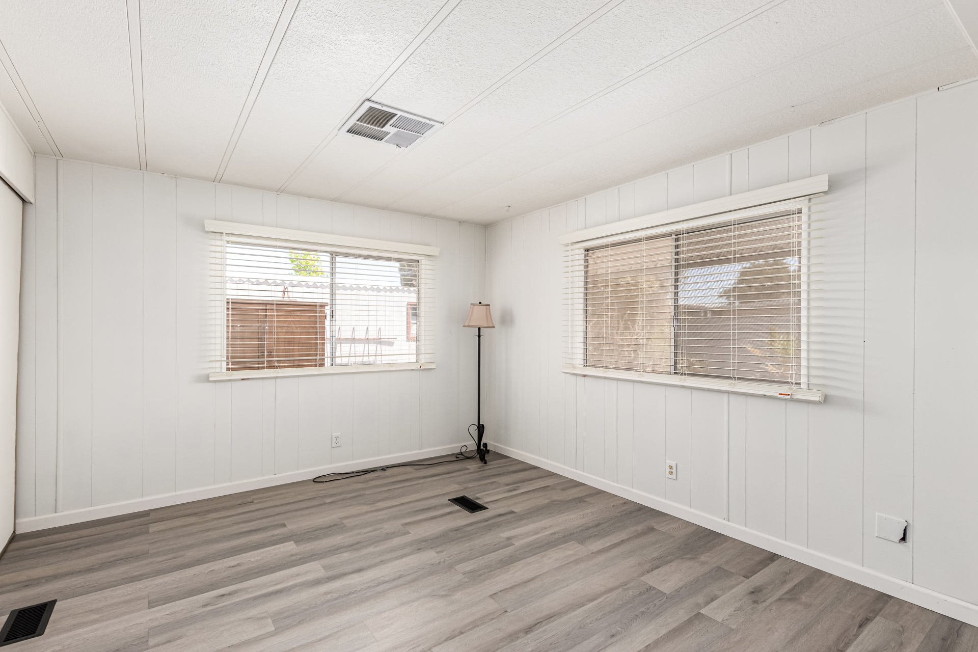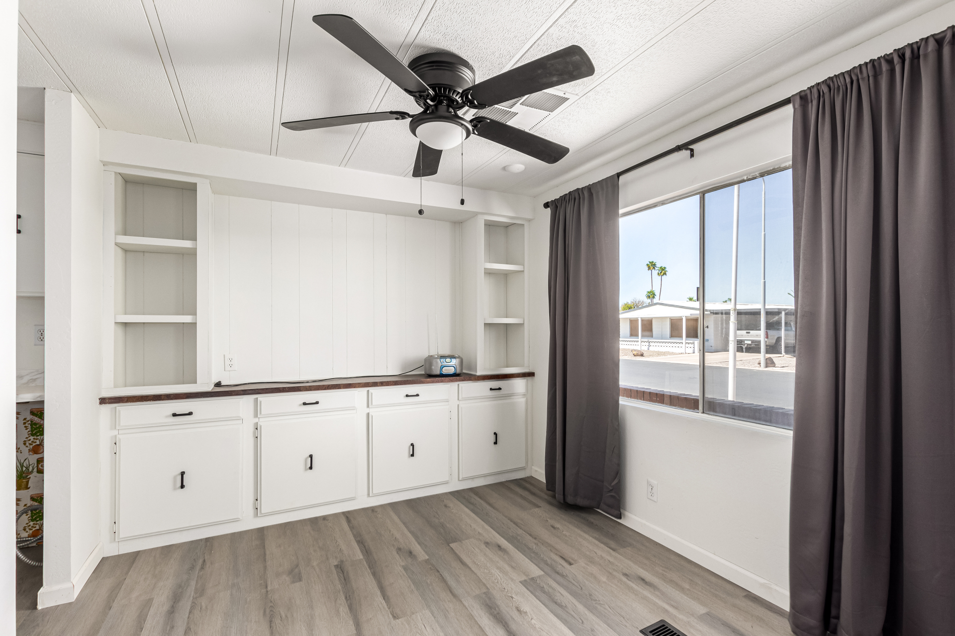 Welcome to this charming 2-bedroom mobile home in the adult Community of Village Grove! Inside, you'll find a serene living room with a soothing palette and attractive wood-look flooring for a timeless appeal. The well-appointed kitchen comes with flat-panel cabinetry, a tile backsplash, a pantry, and essential built-in appliances for an enjoyable cooking experience. The main bedroom offers a private bathroom for added comfort. Outside, discover a backyard with a covered patio and a shed for additional storage. Conveniently located close to bus stops and shopping options. Don't miss out on this one!