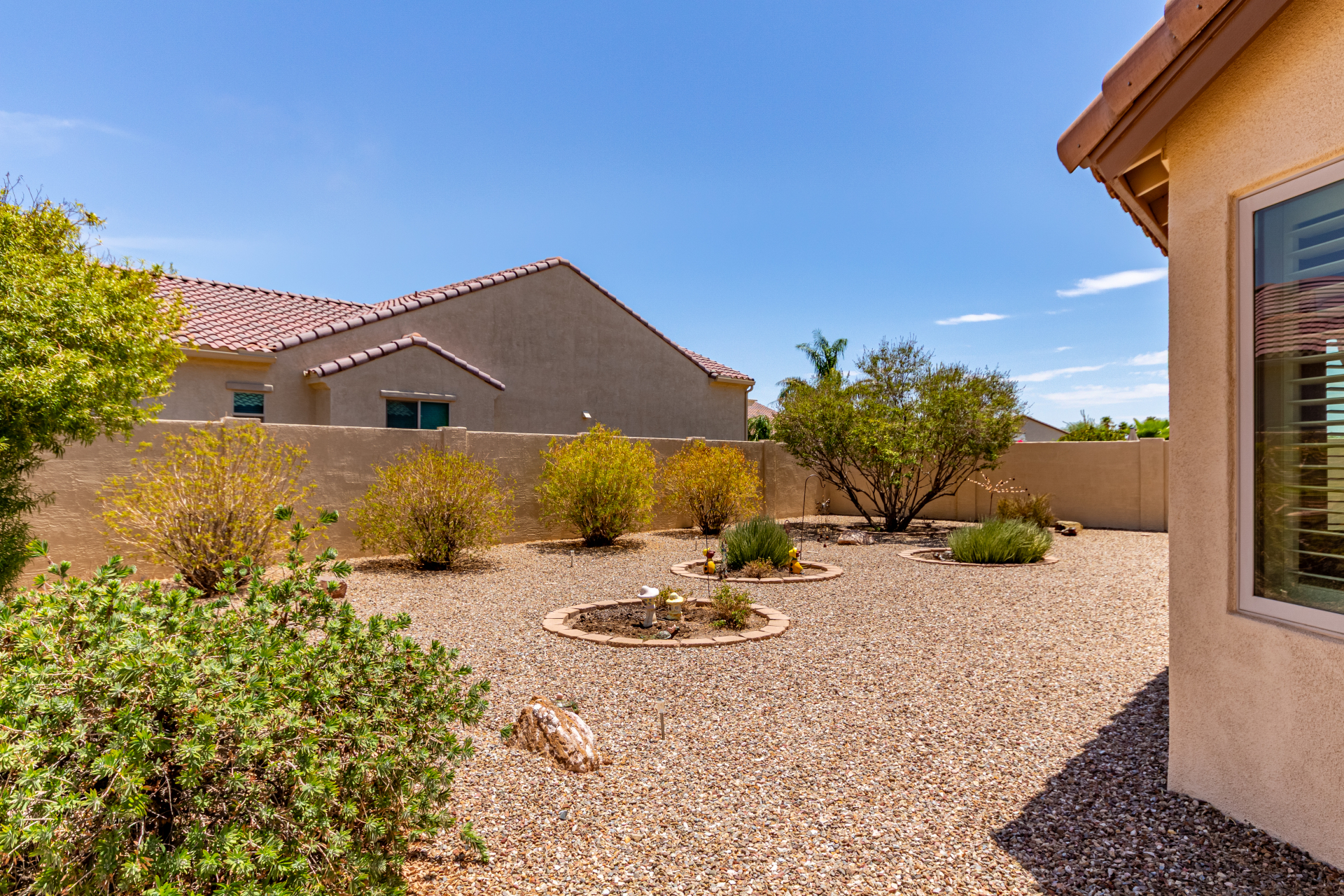 Exceptional Value in Robson Ranch! This sought-after Talavera Model with integra block construction, and a CASITA showcases over $25,000in recent upgrades - including a brand-new Trane AC& furnace, PVC irrigation system, plantation shutters throughout, fresh exterior paint, new heat pump in the casita, new water heater and more! Inside, enjoy 12X12 tile flooring, a true entertainers dream kitchen with granite countertops, stainless-steel appliances, and reverse osmosis water filtration. The extended garage features a 4-foot extension, epoxy flooring, and ample built-in storage. The low maintenance landscaping means you'll have more time to enjoy all the resort-style amenities Robson Ranch has to offer. Don't miss this incredible opportunity!