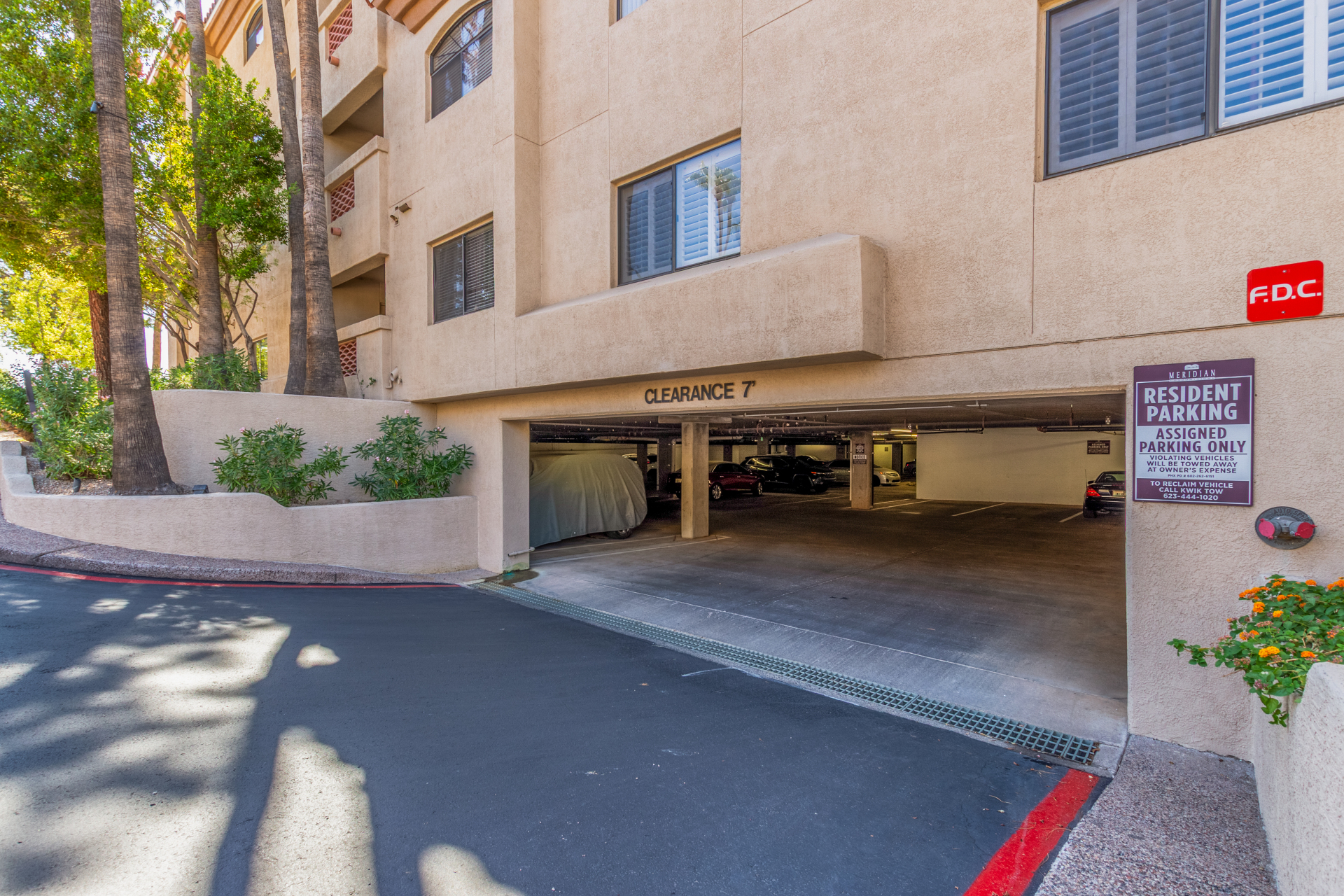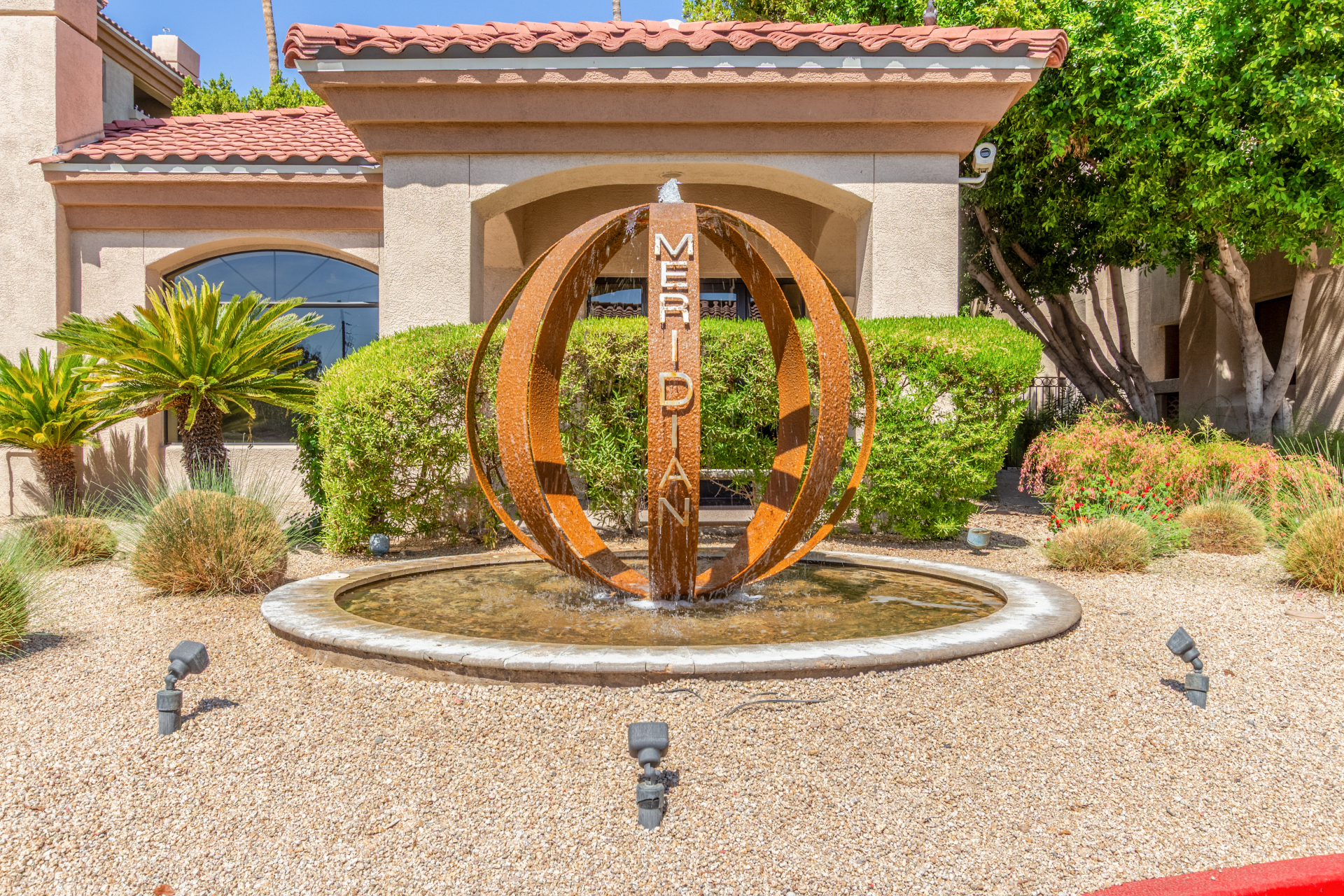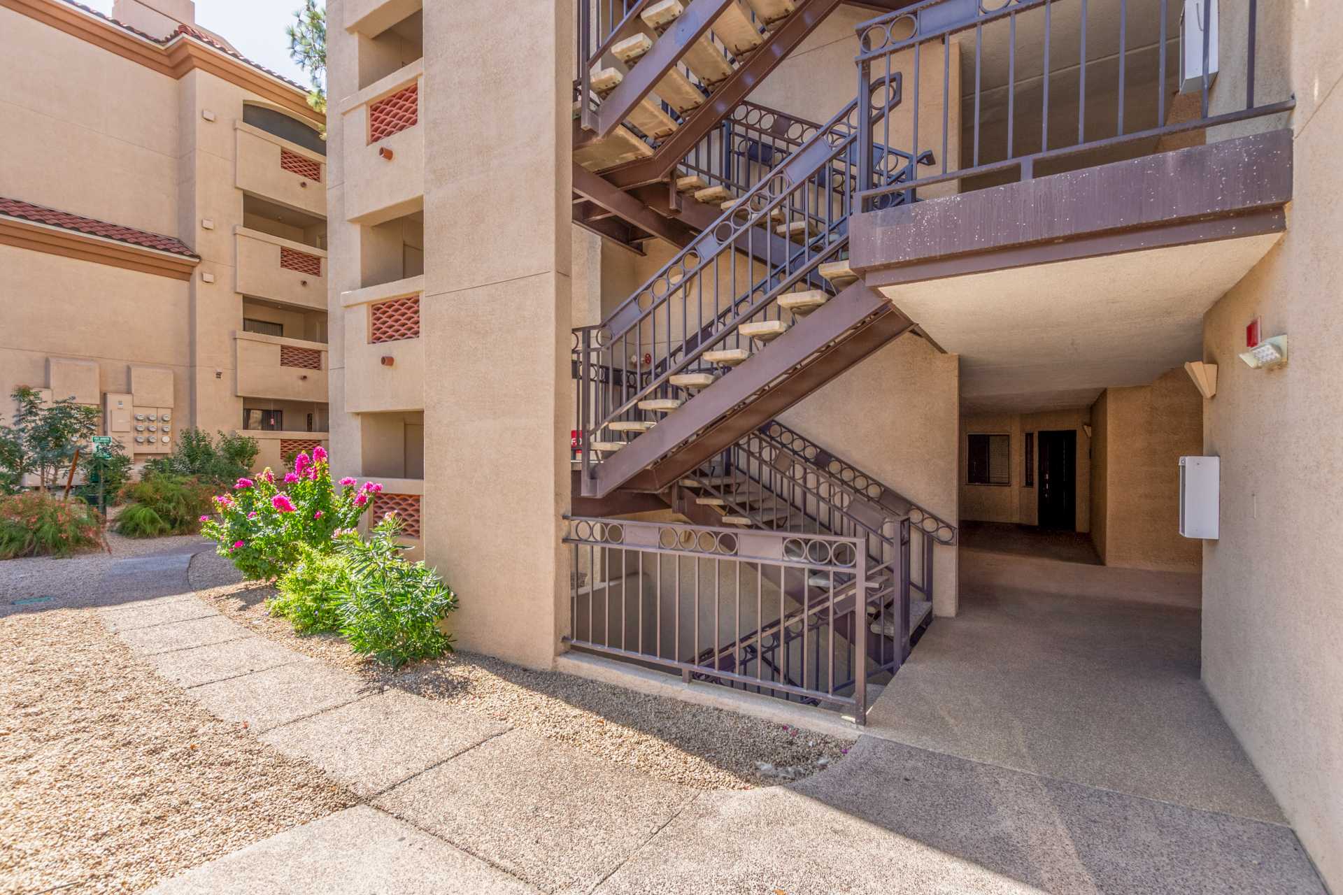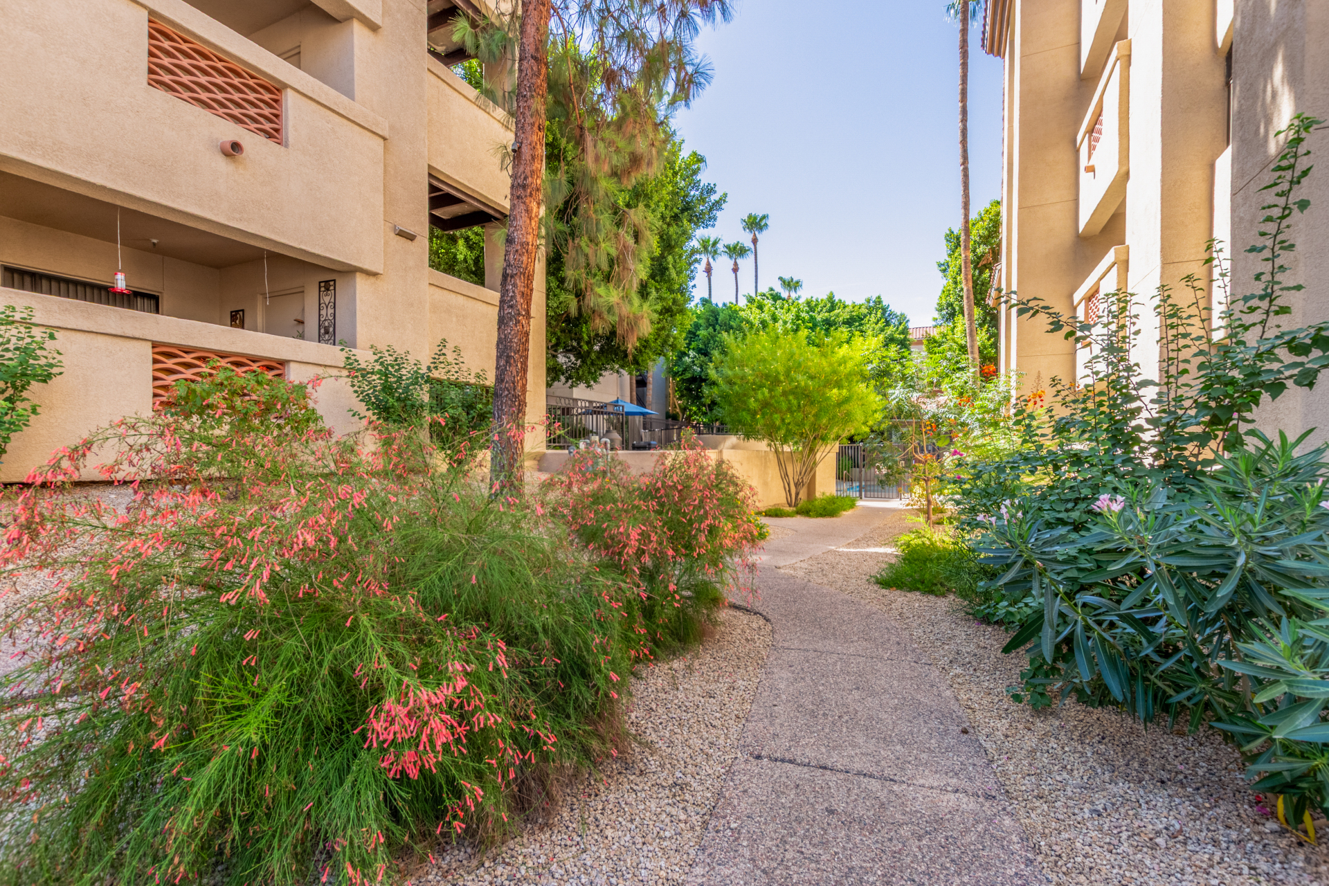 Ready to live in the great Biltmore area? This ground-level apartment in the Gated Meridian Community allows you to do it! Light and bright floor plan features a spacious living room for entertaining and a formal dining room for having a feast. Wood-style and tile floors, fire sprinklers, neutral paint, tray ceilings, and modern light fixtures can't be left unsaid. The kitchen has tile counters, beautiful cabinets, stainless steel appliances, subway backsplash, and a peninsula with a breakfast bar for quick meals. The bedroom offers a mirrored door in the walk-in closet, while the bathroom includes a tub/shower combo. Outside, you can relax in the lovely, covered patio with a convenient storage room. Enjoy the community pool, spa, clubhouse, and more. Owner is a licensed Agent in AZ