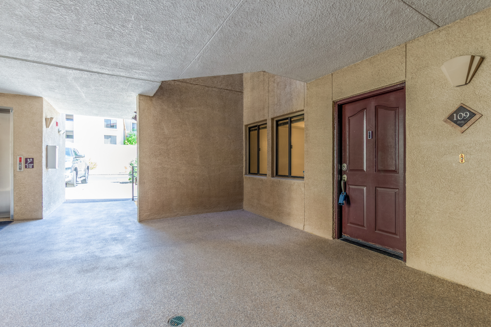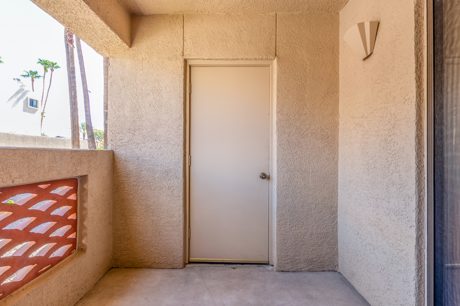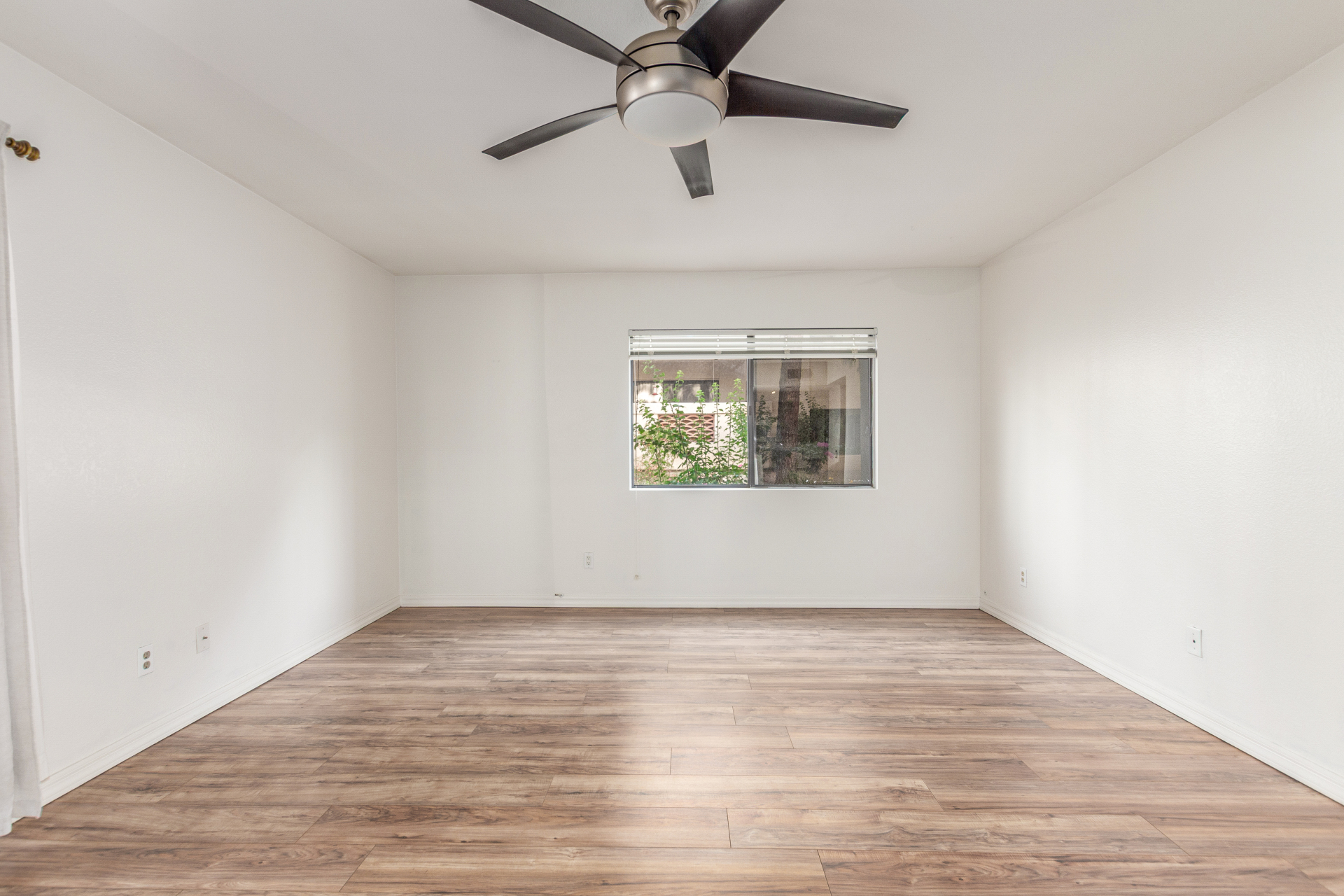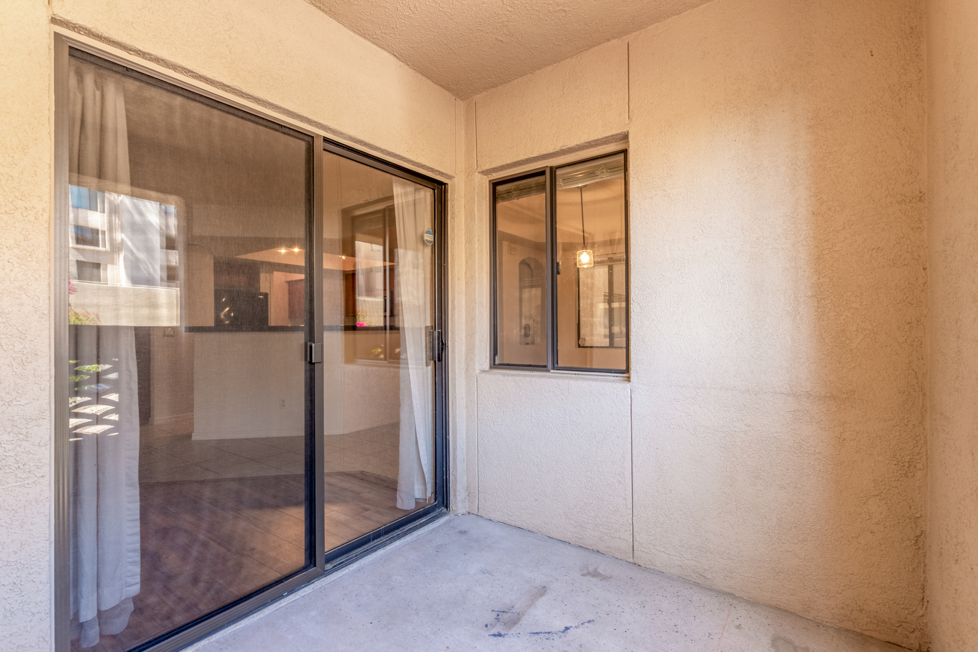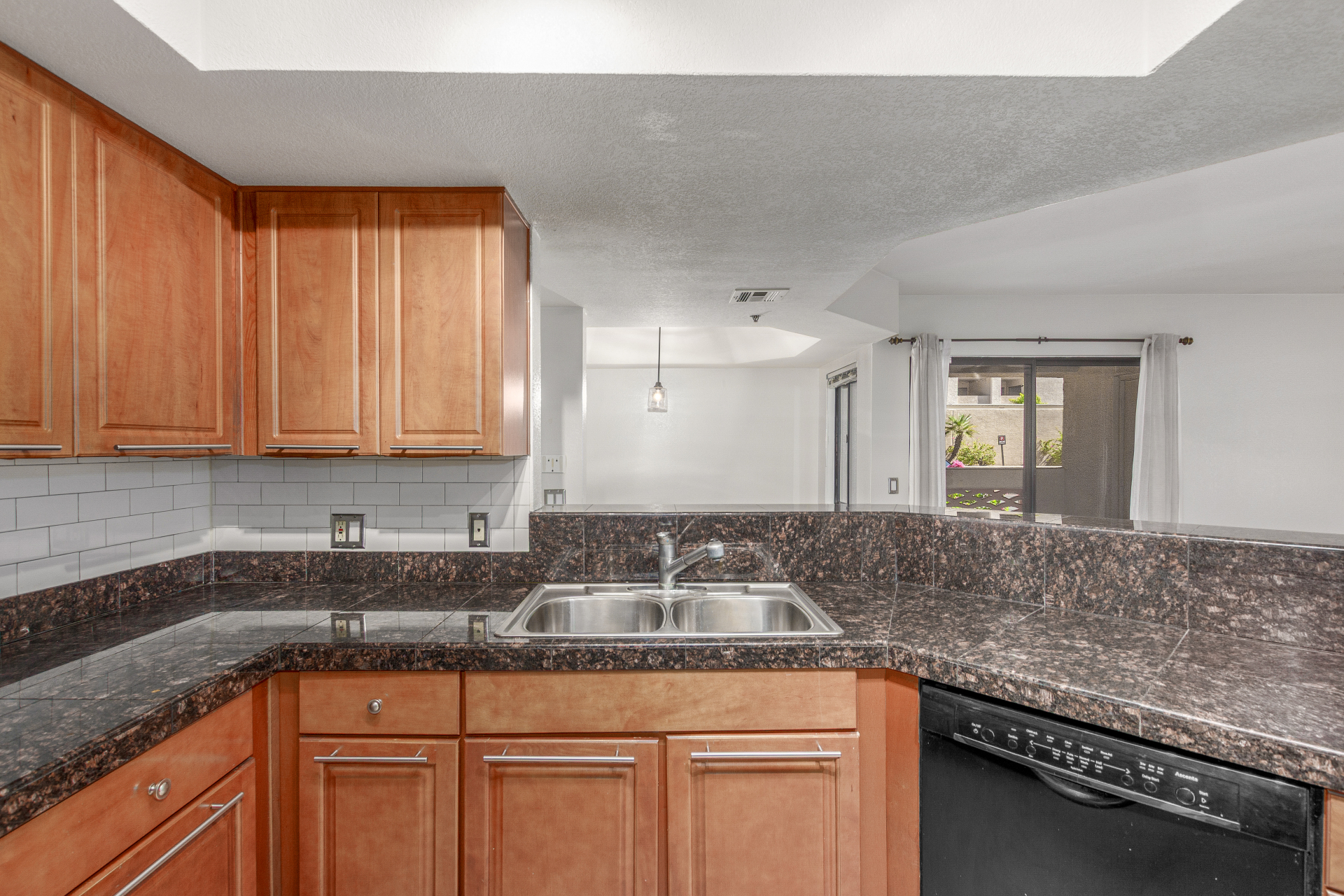 Ready to live in the great Biltmore area? This ground-level apartment in the Gated Meridian Community allows you to do it! Light and bright floor plan features a spacious living room for entertaining and a formal dining room for having a feast. Wood-style and tile floors, fire sprinklers, neutral paint, tray ceilings, and modern light fixtures can't be left unsaid. The kitchen has tile counters, beautiful cabinets, stainless steel appliances, subway backsplash, and a peninsula with a breakfast bar for quick meals. The bedroom offers a mirrored door in the walk-in closet, while the bathroom includes a tub/shower combo. Outside, you can relax in the lovely, covered patio with a convenient storage room. Enjoy the community pool, spa, clubhouse, and more. Owner is a licensed Agent in AZ