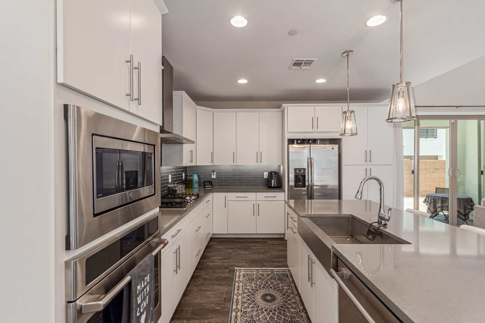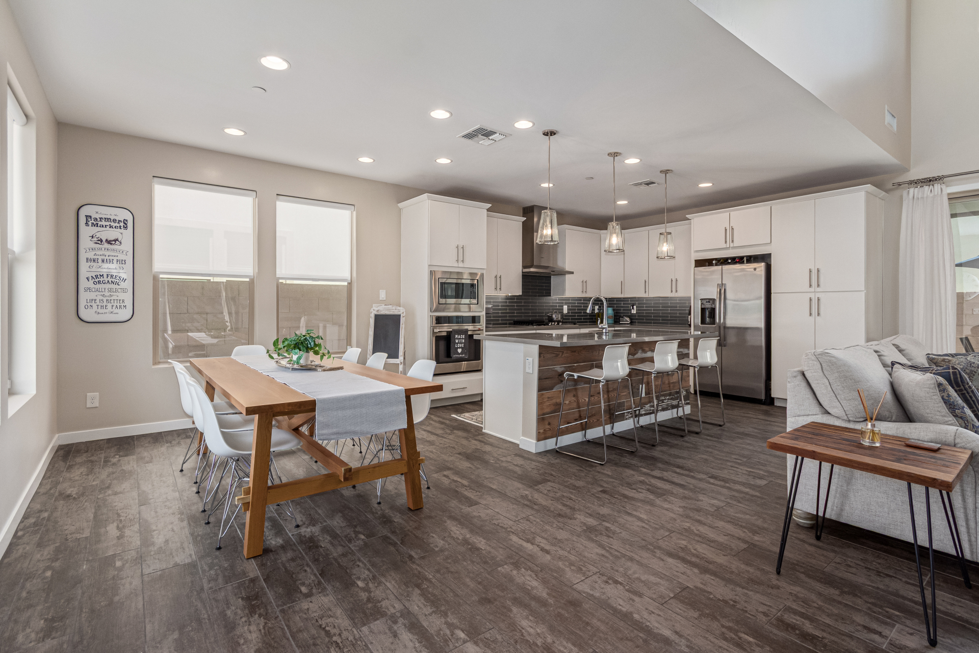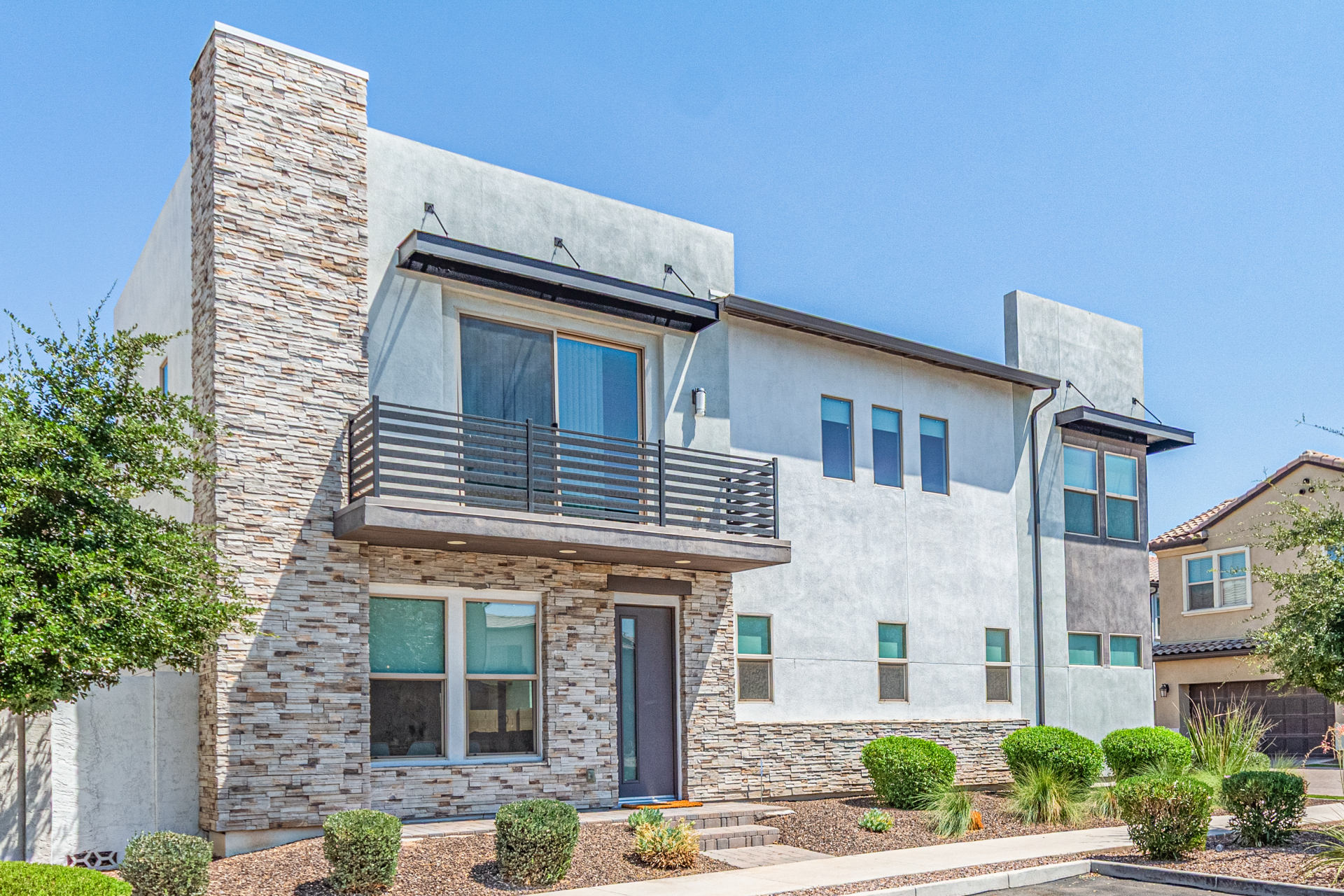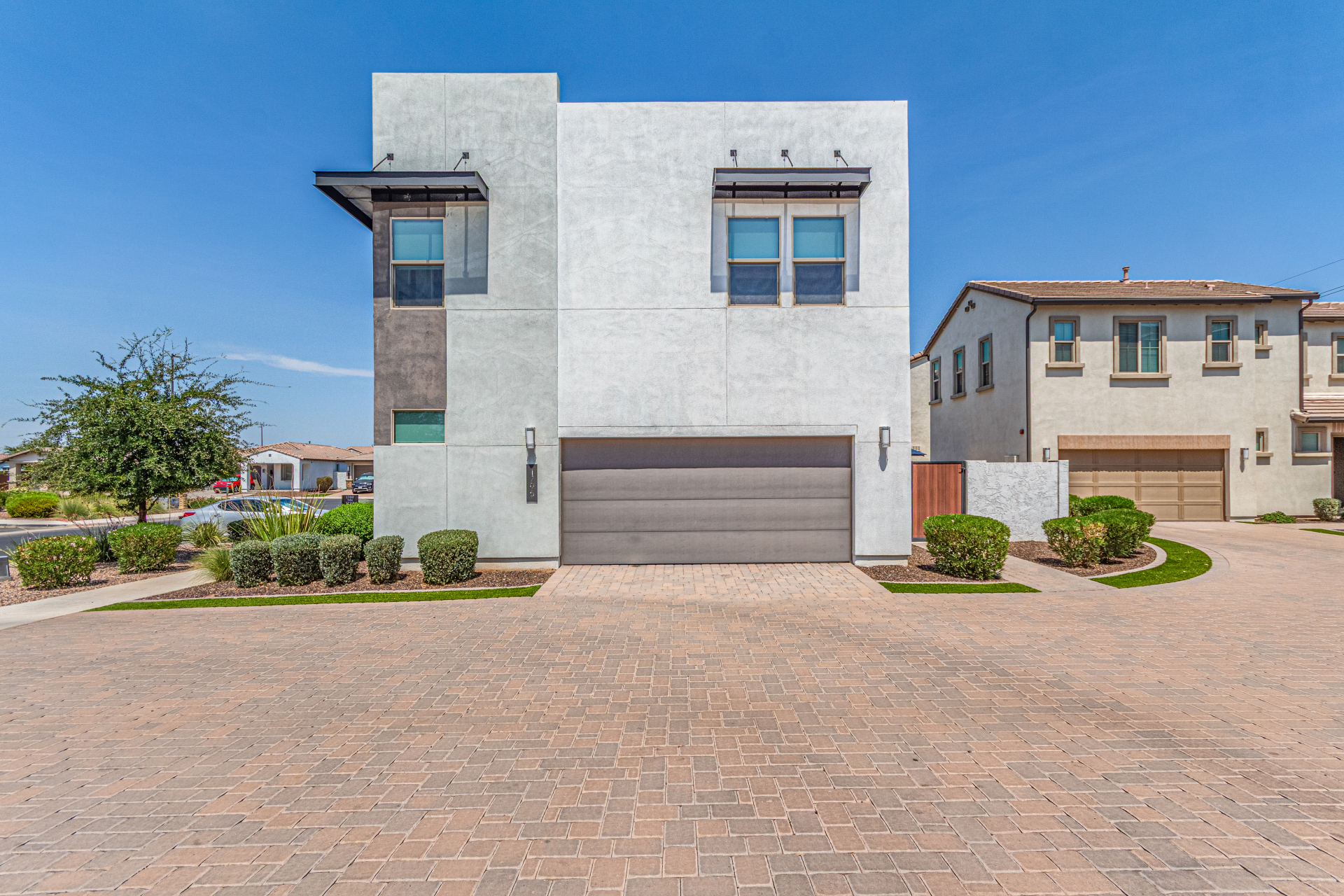 Stunning contemporary home. Open concept floor plan. Soaring ceiling. Gourmet kitchen, large island, quartz countertops, stainless steel appliances, gas cooktop, high profile vent-hood. Wood-plank-tile flooring at entire main level. Private primary suite with gorgeous shower, balcony.