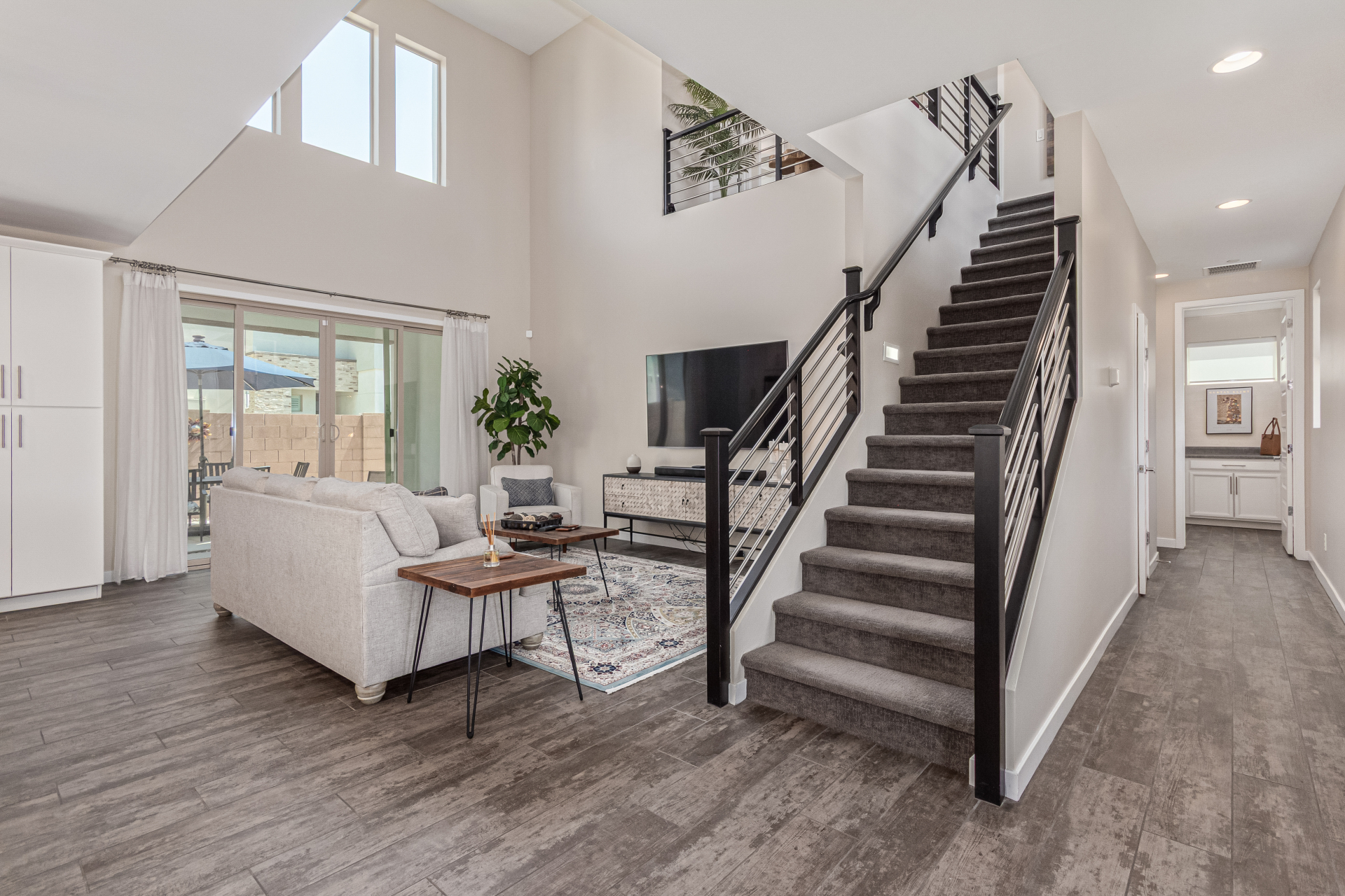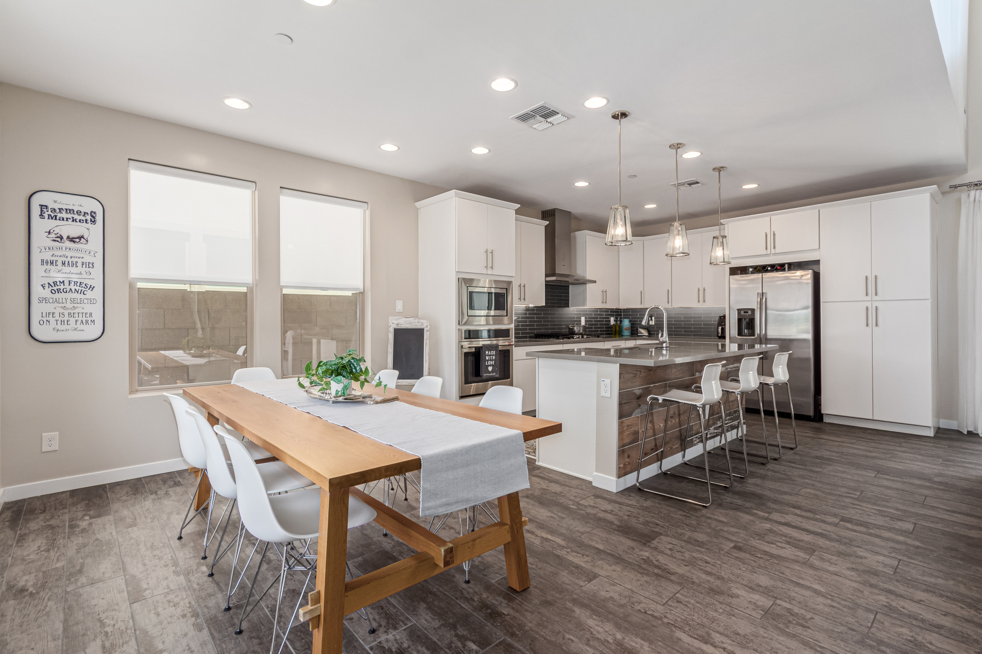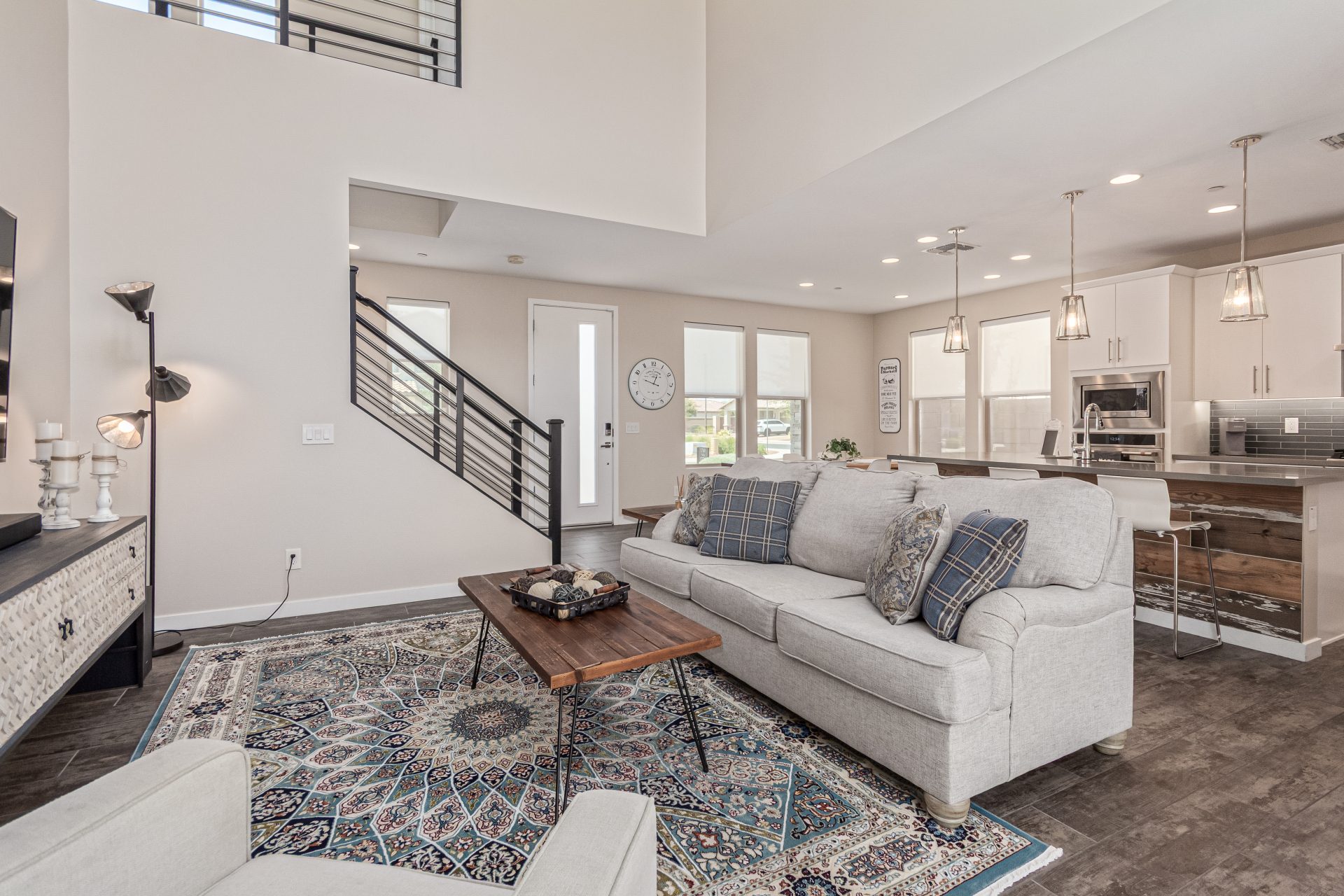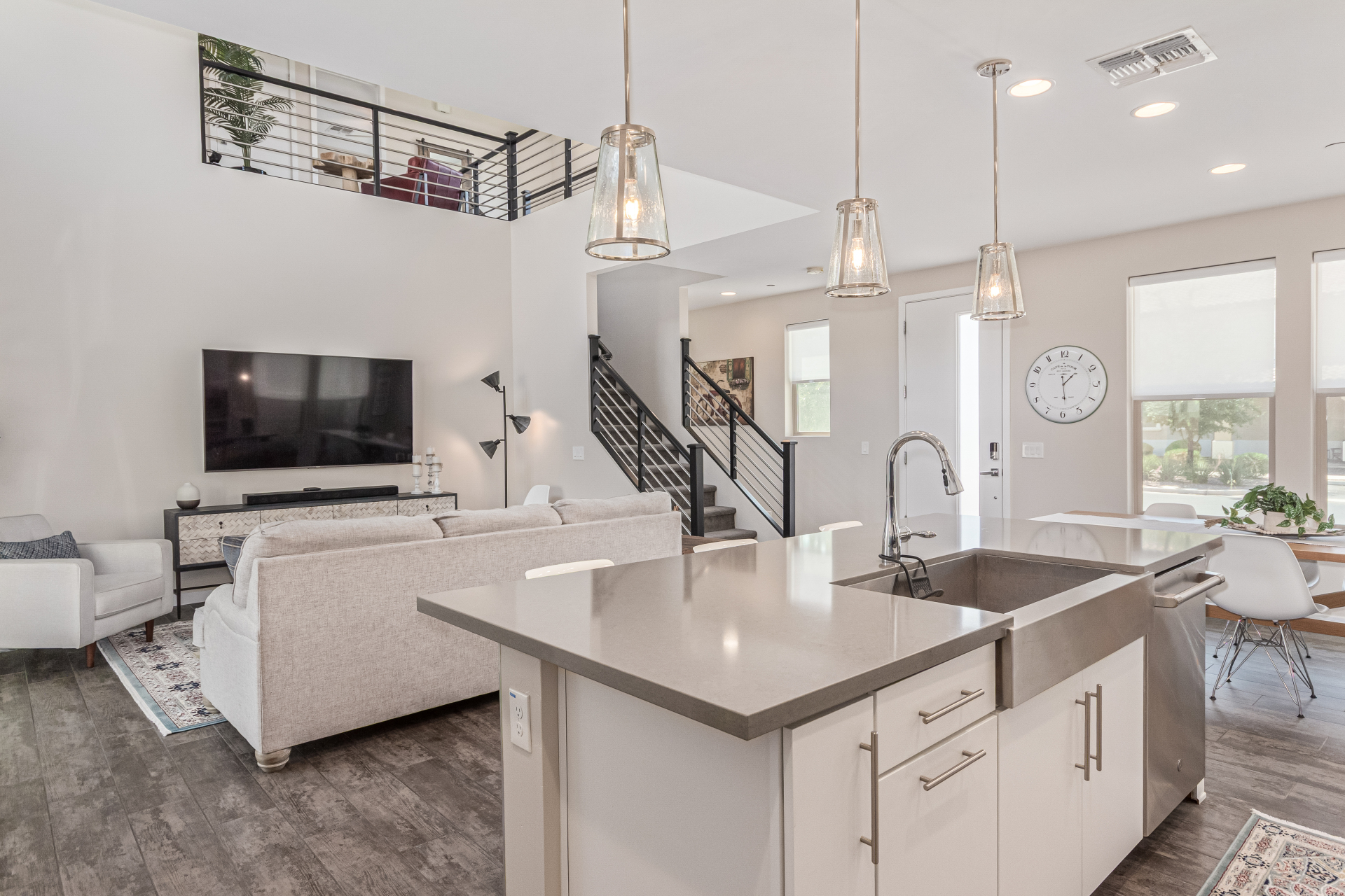 Stunning contemporary home. Open concept floor plan. Soaring ceiling. Gourmet kitchen, large island, quartz countertops, stainless steel appliances, gas cooktop, high profile vent-hood. Wood-plank-tile flooring at entire main level. Private primary suite with gorgeous shower, balcony.