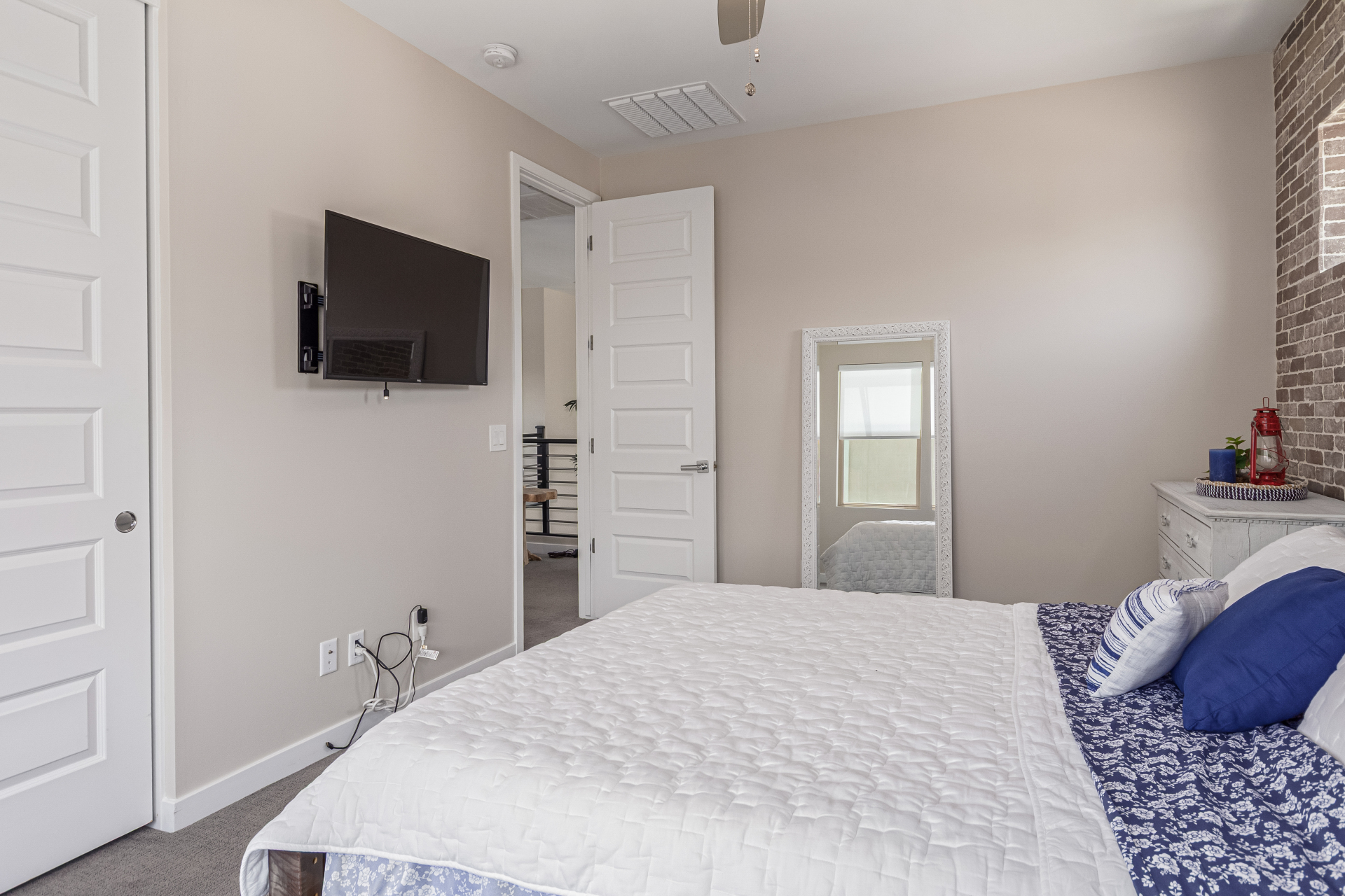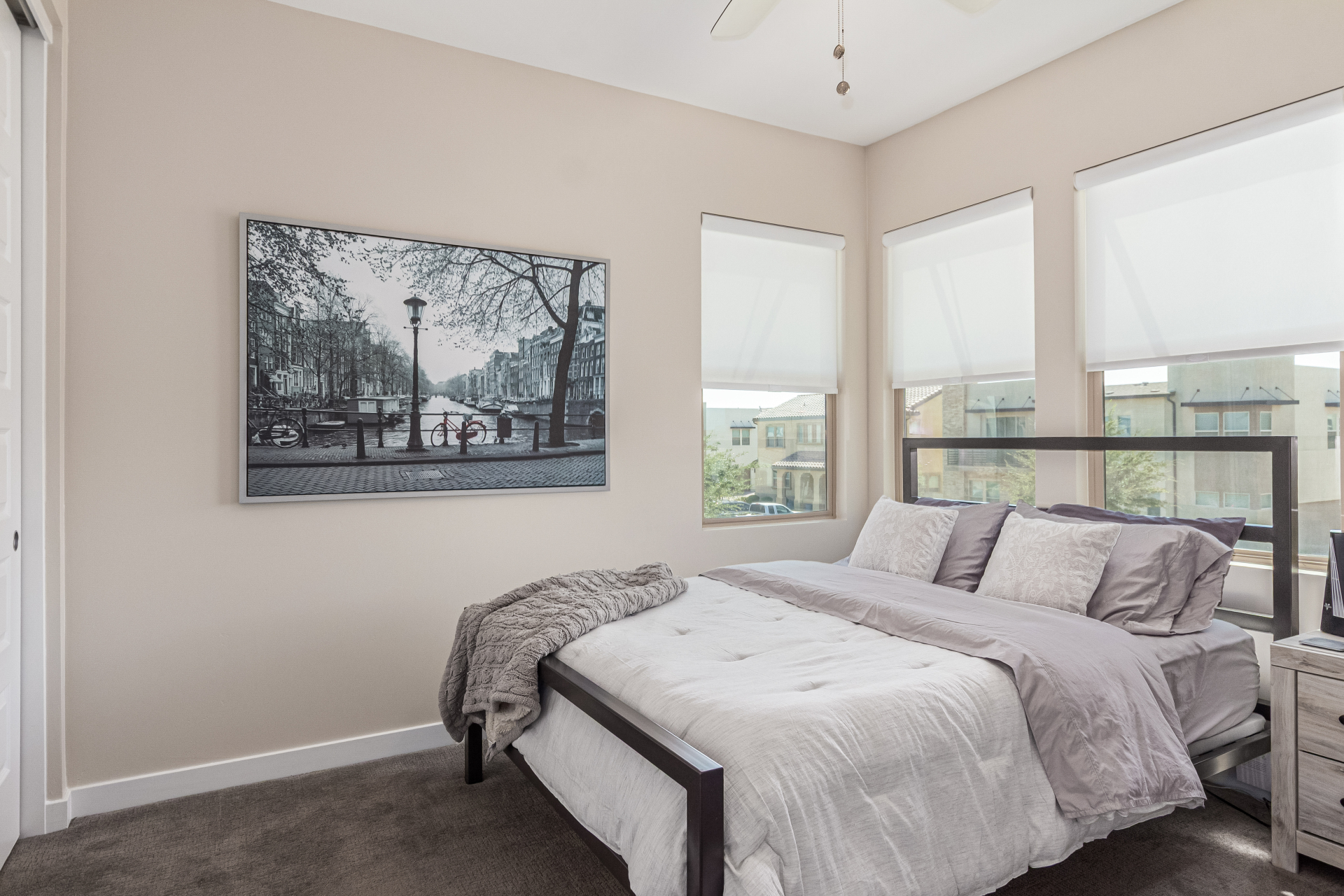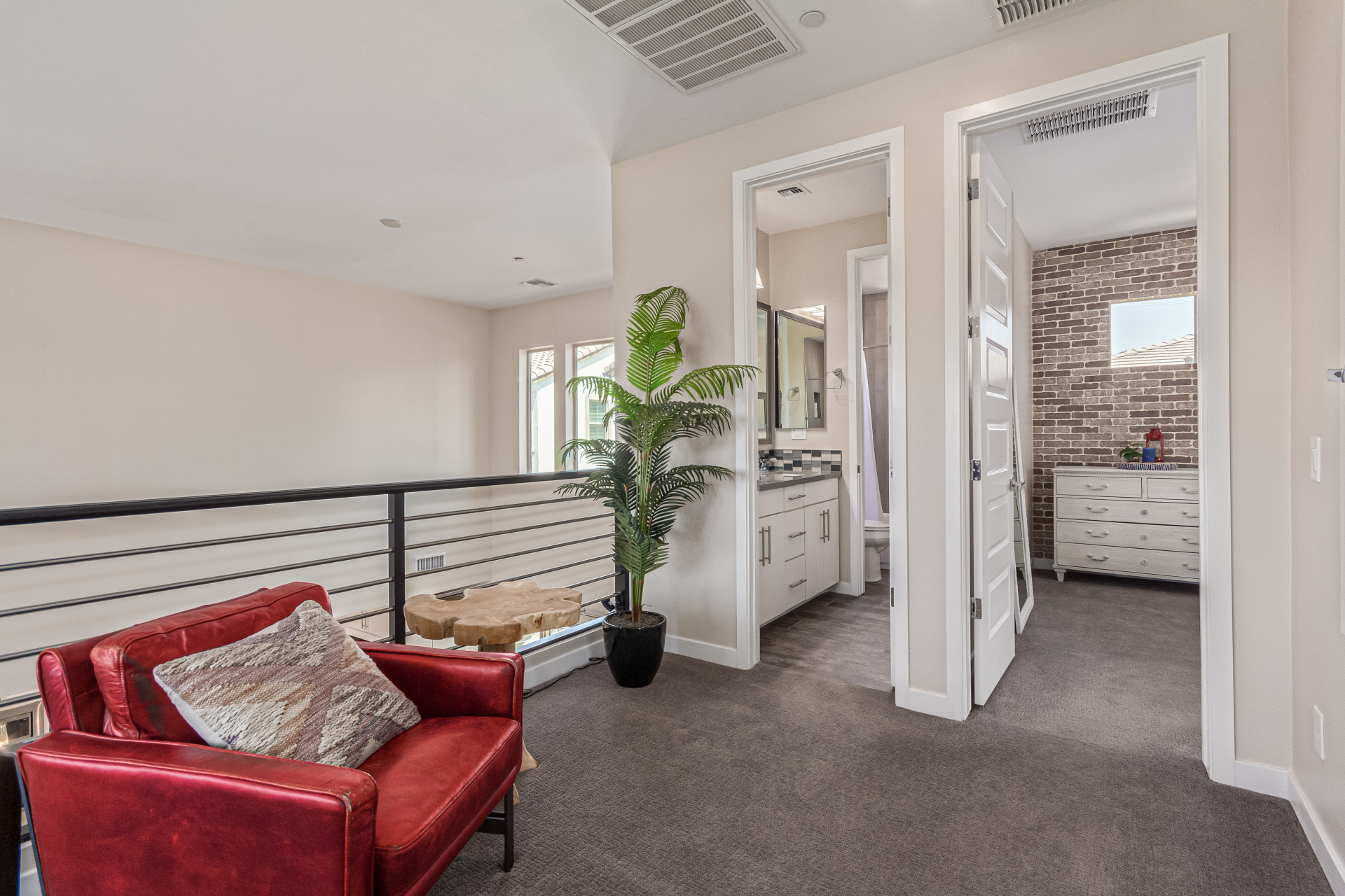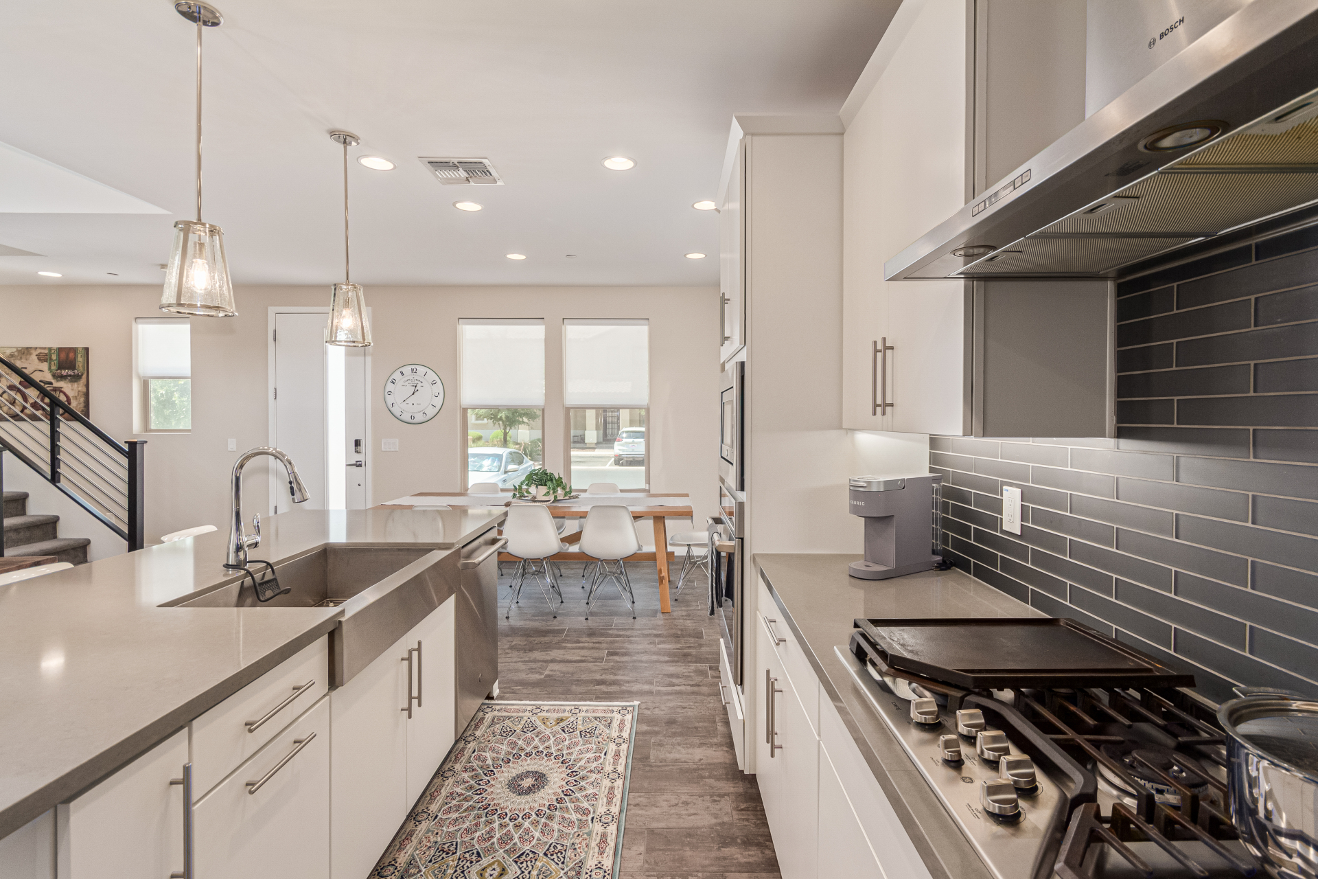 Stunning contemporary home. Open concept floor plan. Soaring ceiling. Gourmet kitchen, large island, quartz countertops, stainless steel appliances, gas cooktop, high profile vent-hood. Wood-plank-tile flooring at entire main level. Private primary suite with gorgeous shower, balcony.