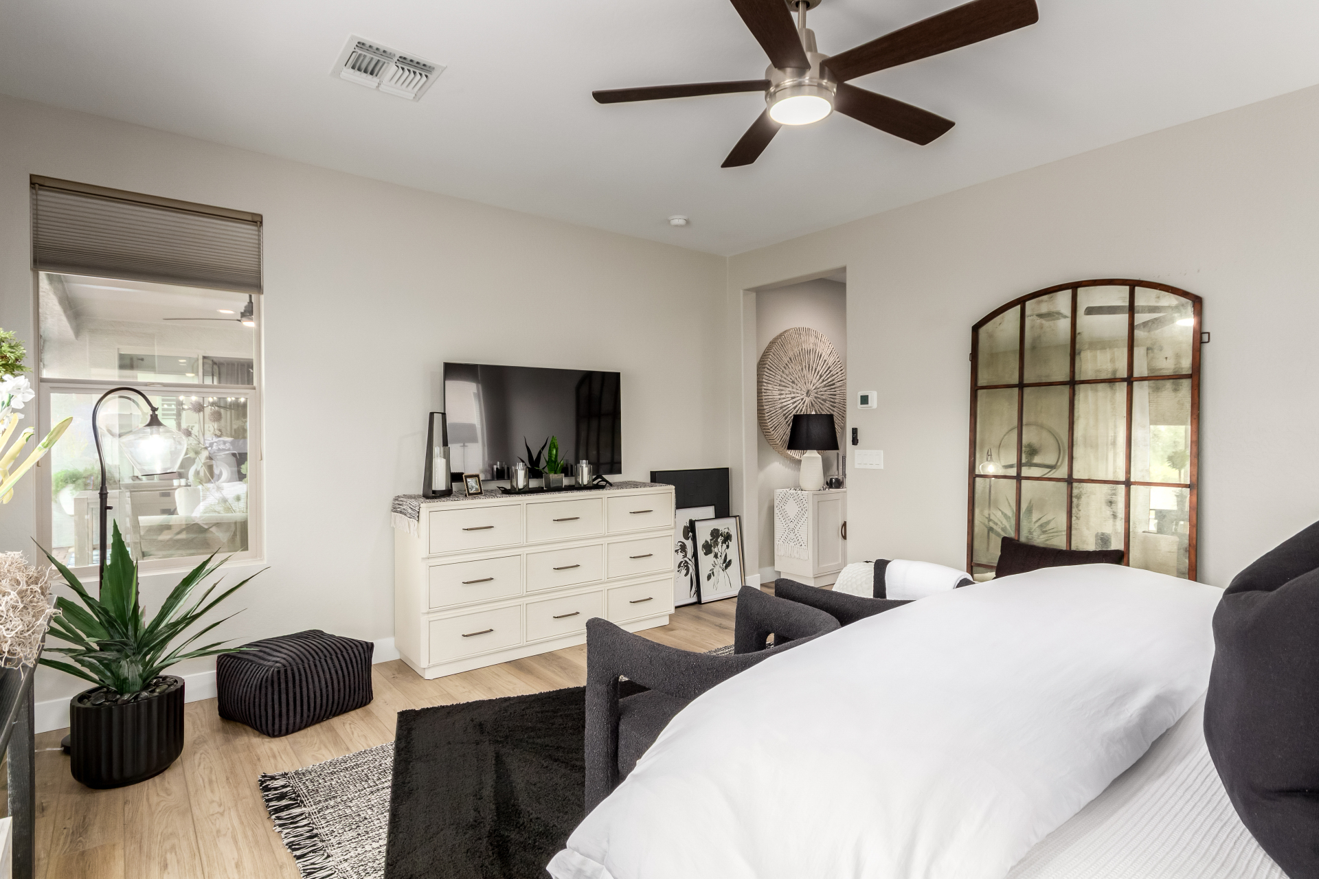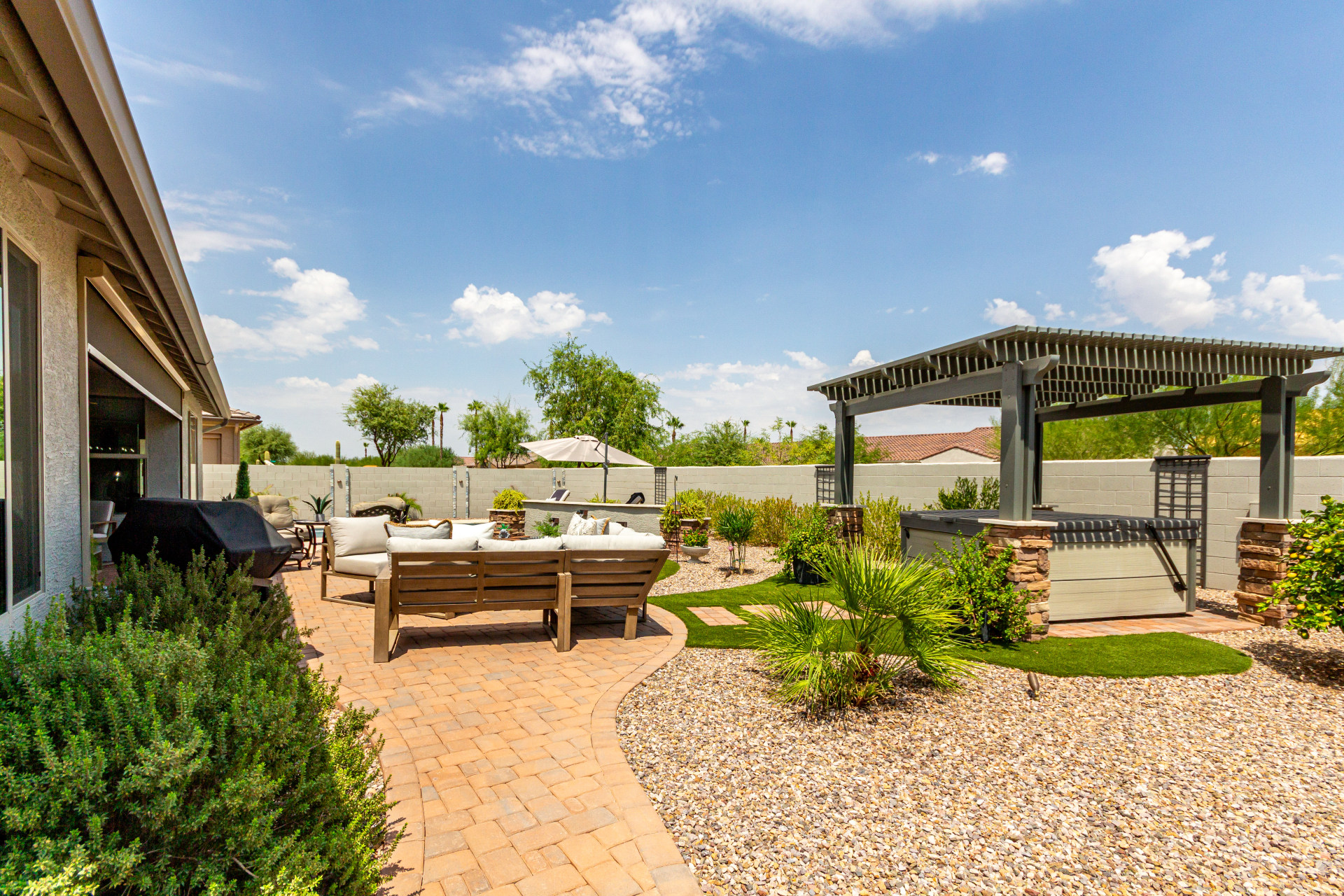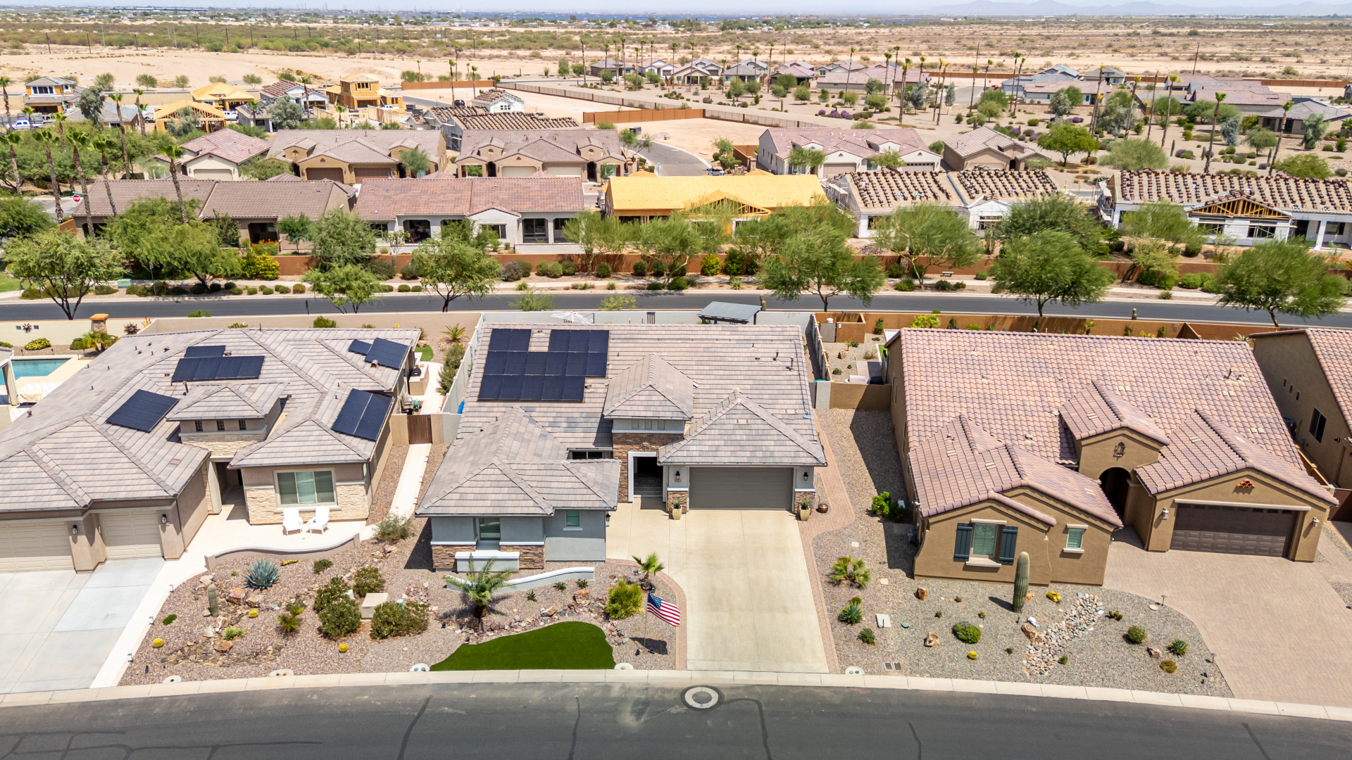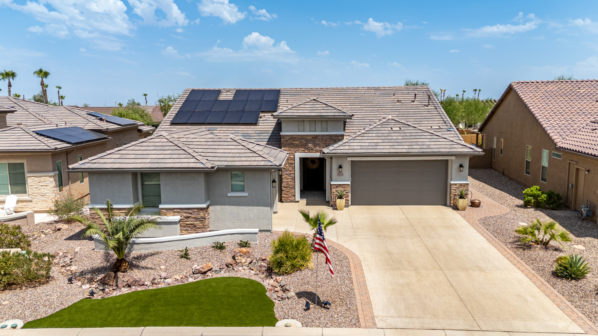 STUNNING furnished and solar-owned Miramonte model that impresses from the moment you arrive! This 2 bed, 2.5 bath home is loaded with upgrades, featuring a custom front door, luxury plank tile flooring, and an open floor plan with designer finishes, plantation shutters, and elegant furnishings. The chef's kitchen boasts high-end stainless appliances, granite counters, and a full-height backsplash. Step outside to your private oasis with extended pavers, pergola, pool & spa with heating/cooling, and a tranquil waterfall feature. The full 3-car garage offers epoxy floors, storage, and a mini-split AC. Added comfort with ADA-compliant features. This spectacular home is truly a MUST SEE!
