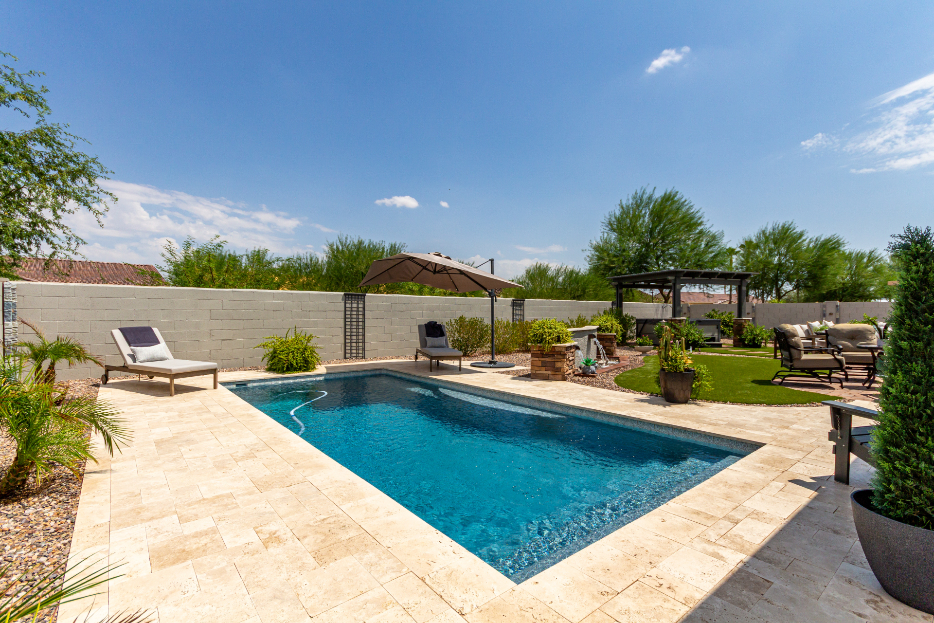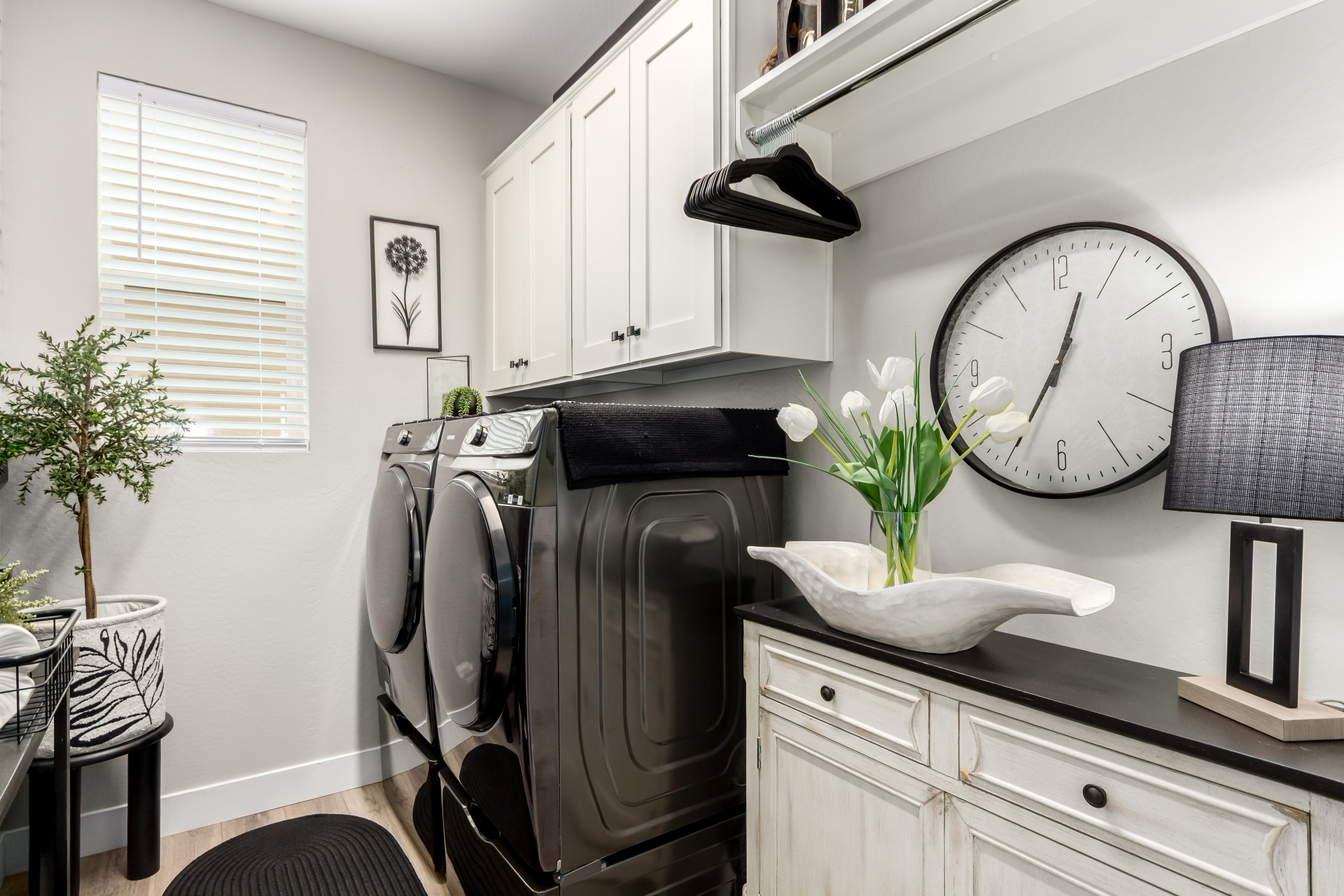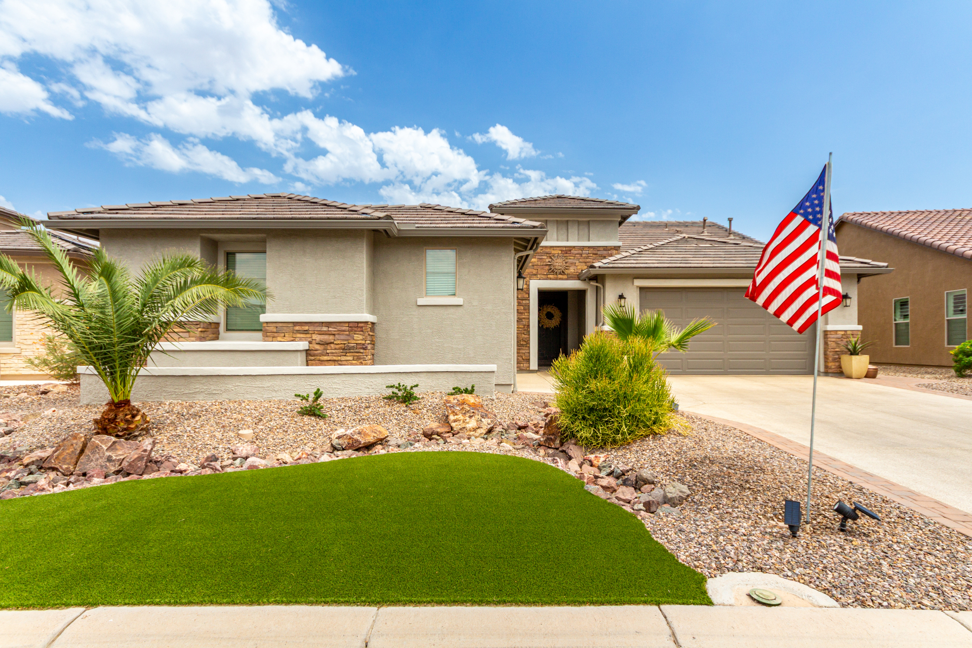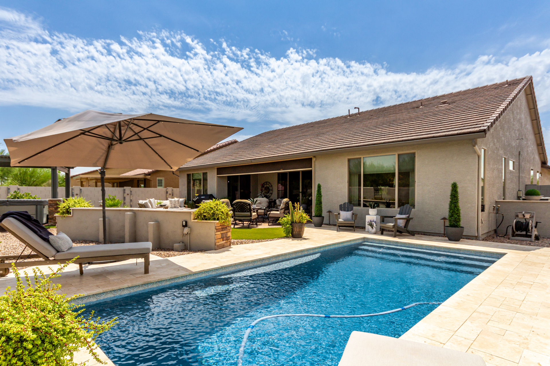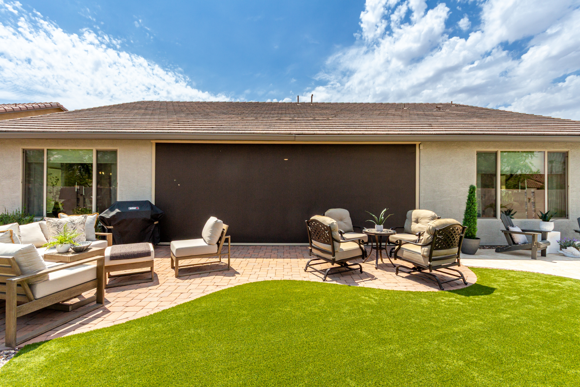 STUNNING furnished and solar-owned Miramonte model that impresses from the moment you arrive! This 2 bed, 2.5 bath home is loaded with upgrades, featuring a custom front door, luxury plank tile flooring, and an open floor plan with designer finishes, plantation shutters, and elegant furnishings. The chef's kitchen boasts high-end stainless appliances, granite counters, and a full-height backsplash. Step outside to your private oasis with extended pavers, pergola, pool & spa with heating/cooling, and a tranquil waterfall feature. The full 3-car garage offers epoxy floors, storage, and a mini-split AC. Added comfort with ADA-compliant features. This spectacular home is truly a MUST SEE!