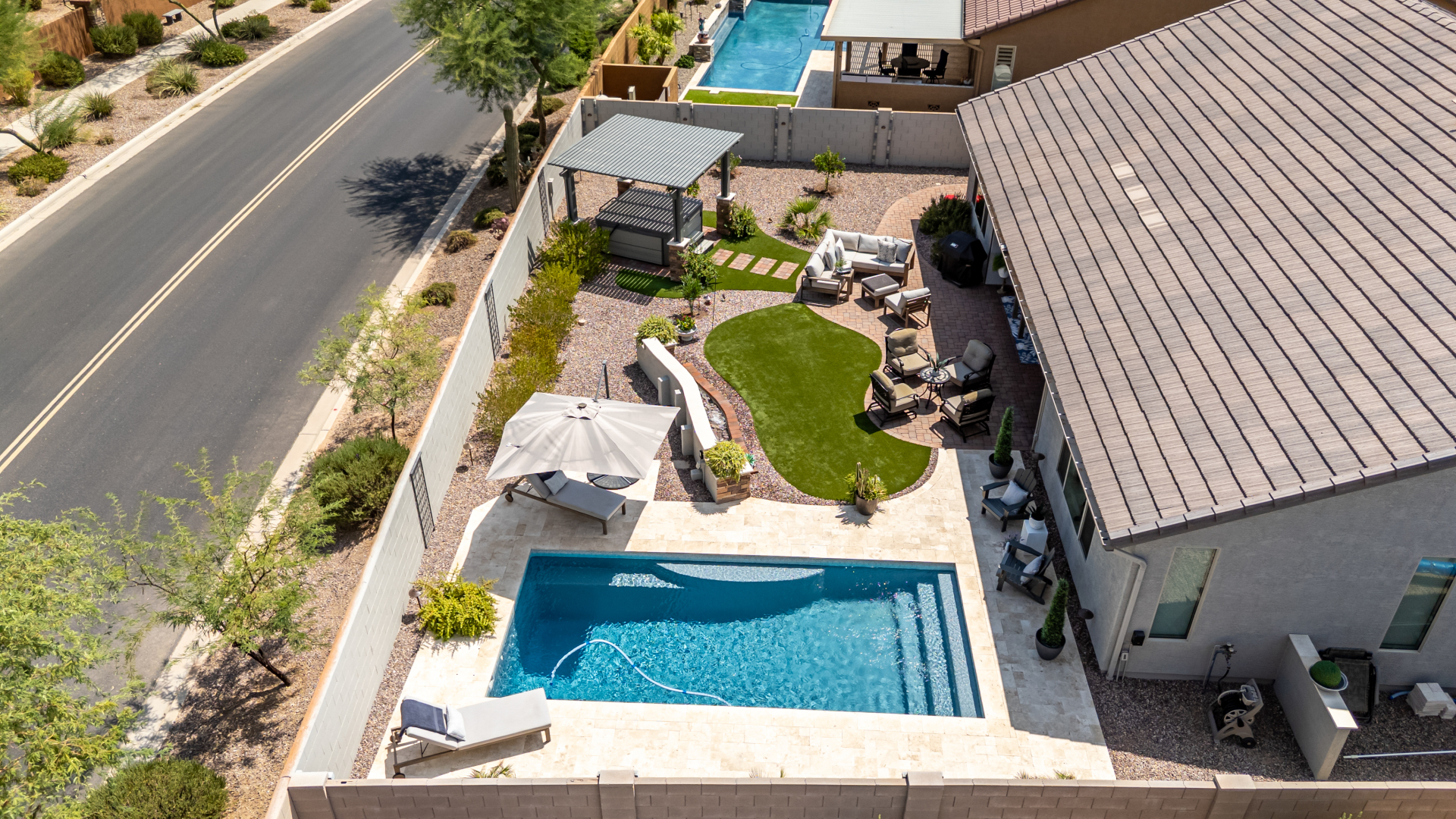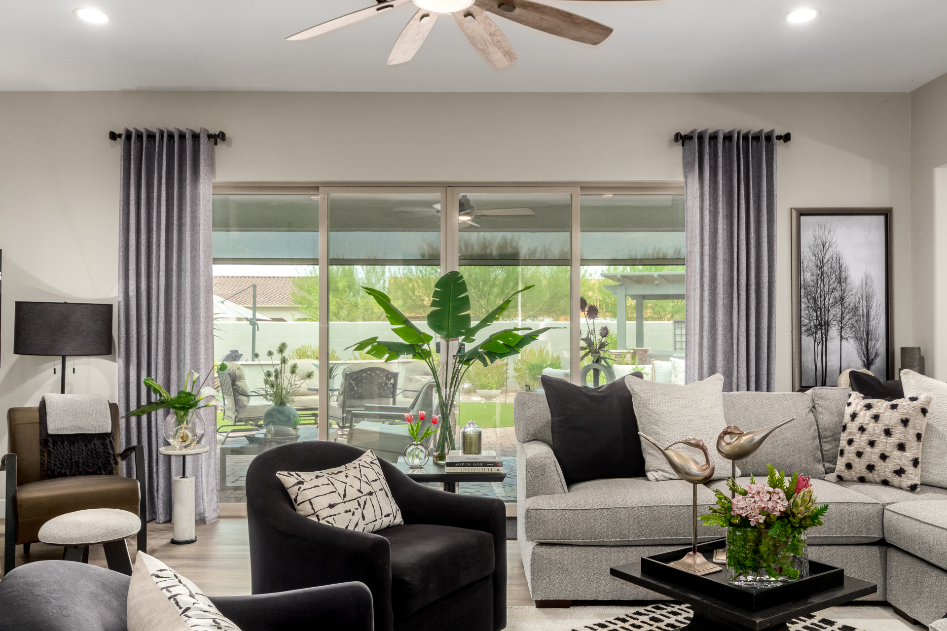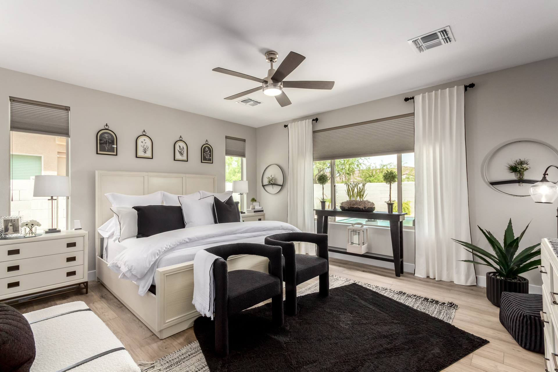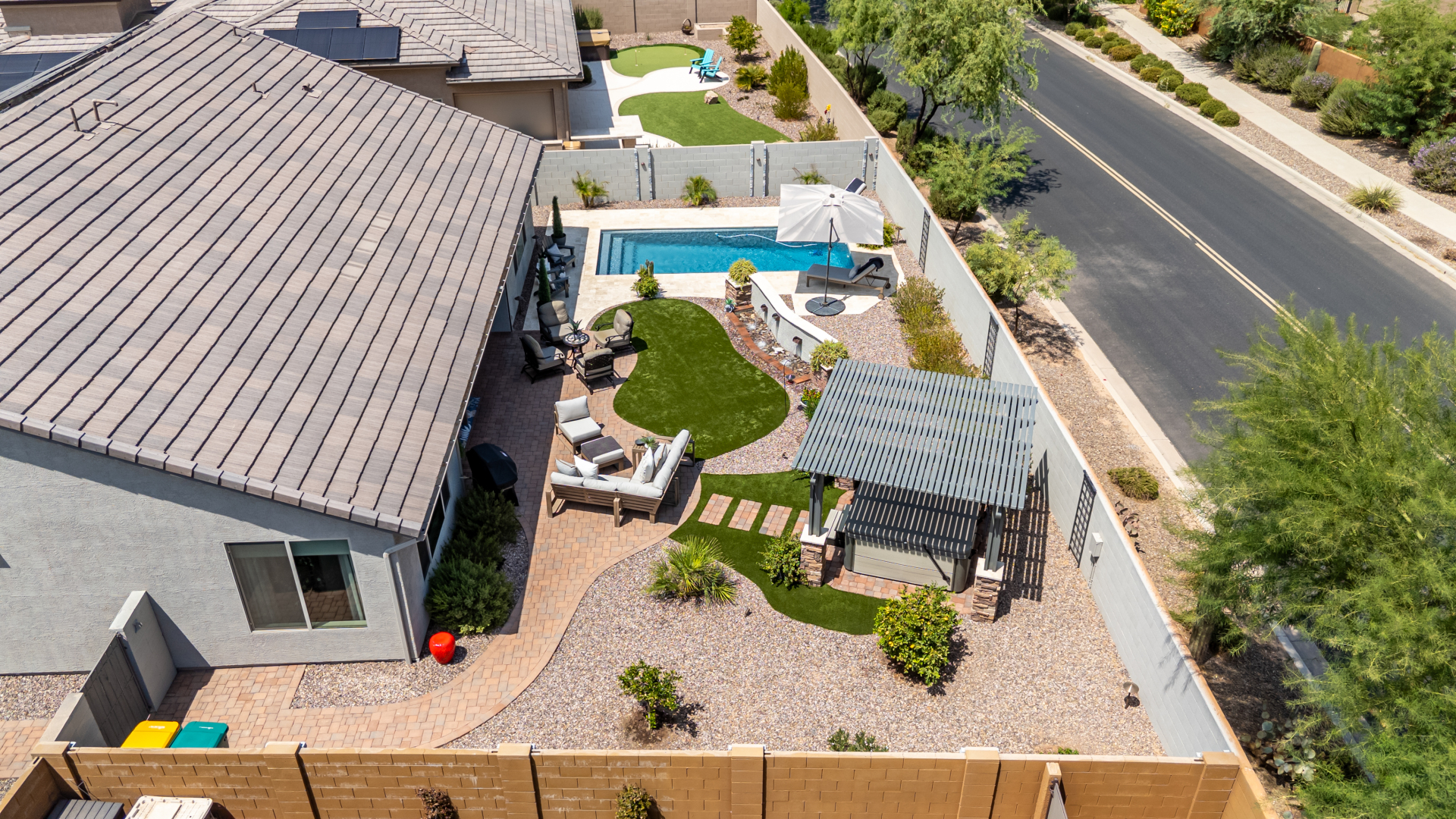 STUNNING furnished and solar-owned Miramonte model that impresses from the moment you arrive! This 2 bed, 2.5 bath home is loaded with upgrades, featuring a custom front door, luxury plank tile flooring, and an open floor plan with designer finishes, plantation shutters, and elegant furnishings. The chef's kitchen boasts high-end stainless appliances, granite counters, and a full-height backsplash. Step outside to your private oasis with extended pavers, pergola, pool & spa with heating/cooling, and a tranquil waterfall feature. The full 3-car garage offers epoxy floors, storage, and a mini-split AC. Added comfort with ADA-compliant features. This spectacular home is truly a MUST SEE!