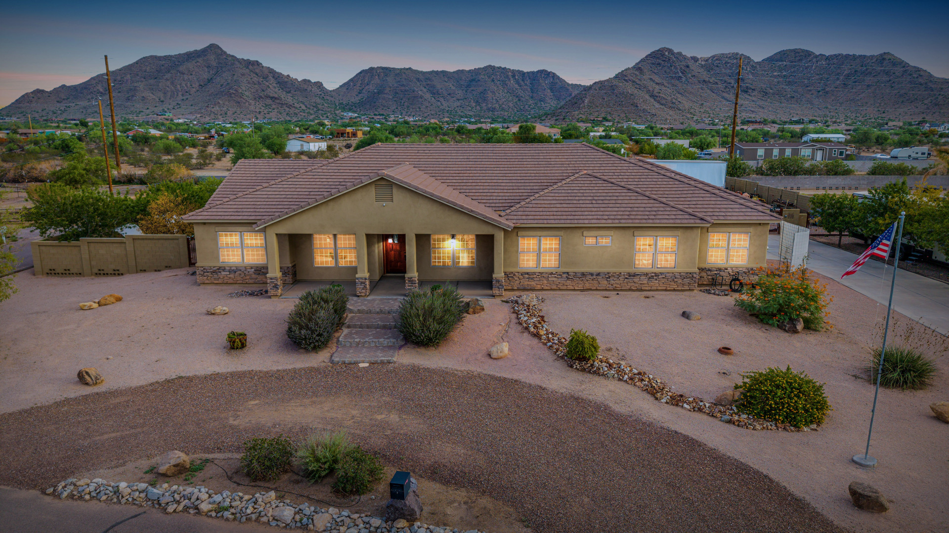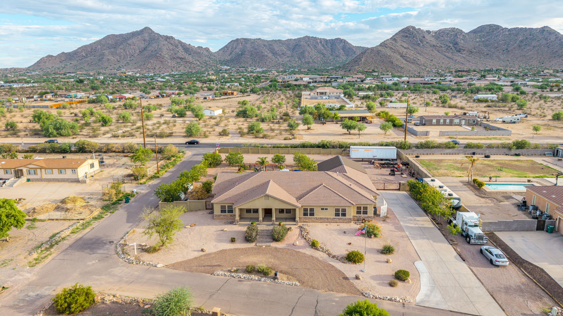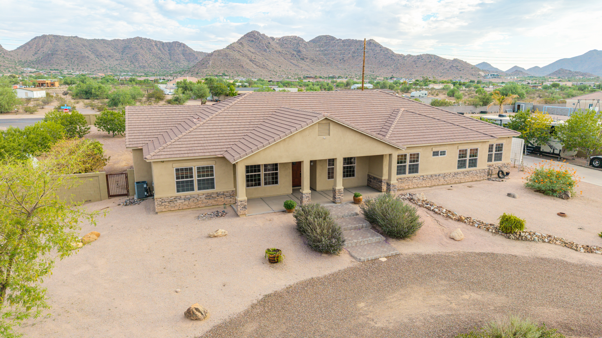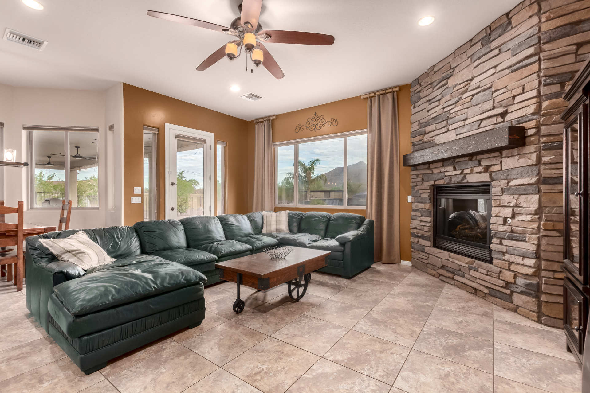 Beautiful 5-bedroom home with POOL in a desirable CORNER LOT is now on the market! Discover all the charm of this horse property, featuring a comfortable and generous layout with a blend of tile and wood-look flooring, abundant natural light, a floor-to-ceiling stone fireplace to add warmth to the family room, and a soothing, earthy palette throughout, making every space perfect for relaxation and entertaining. The impeccable culinary space showcases ample cabinetry, granite counters, a walk-in pantry, an island with a breakfast bar, and built-in appliances for a seamless cooking experience. Double doors lead to the main bedroom, offering a walk-in closet and a spa-like bathroom with double vanities. The sizable den is perfect for an office or hobby area. The expansive backyard hosts a