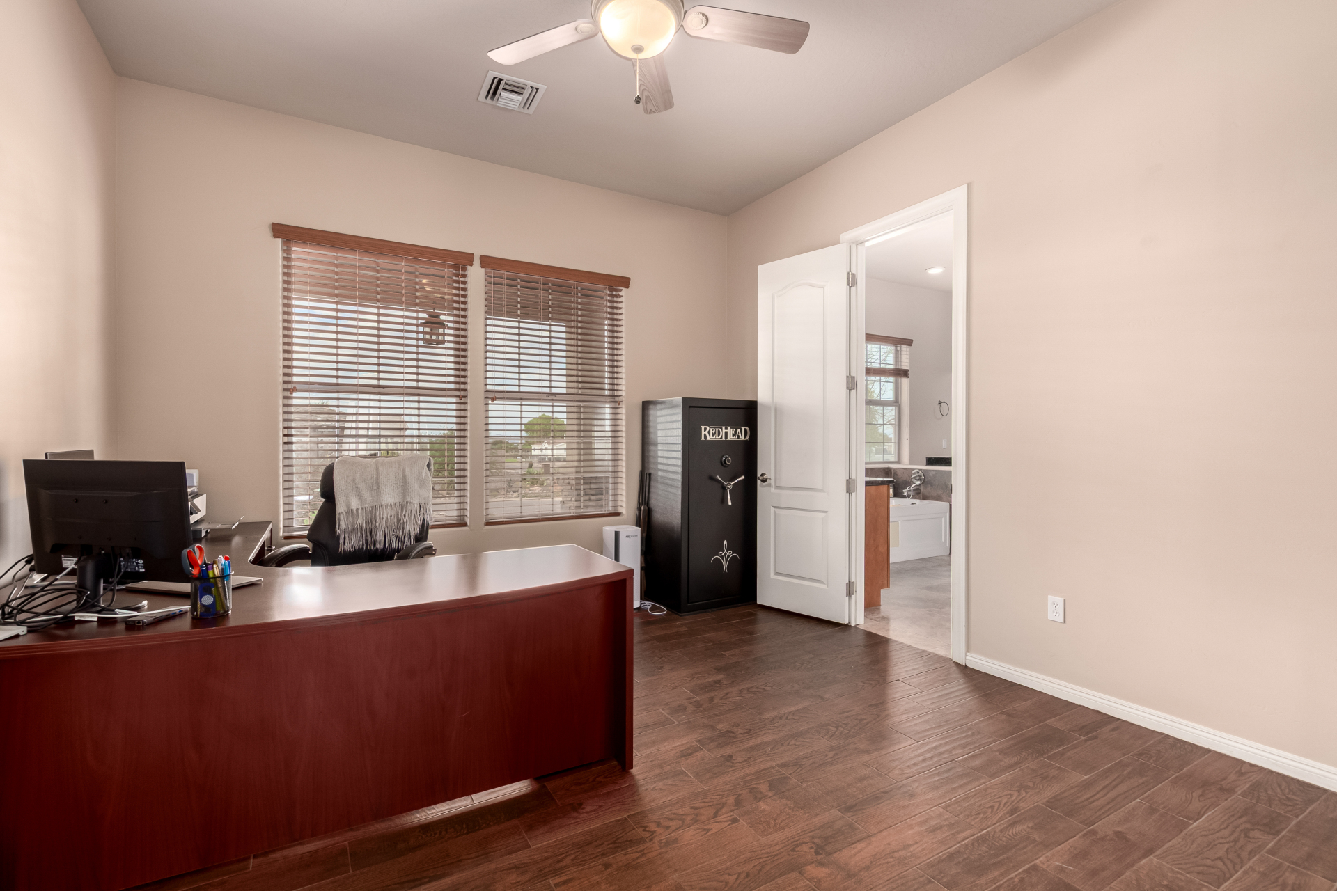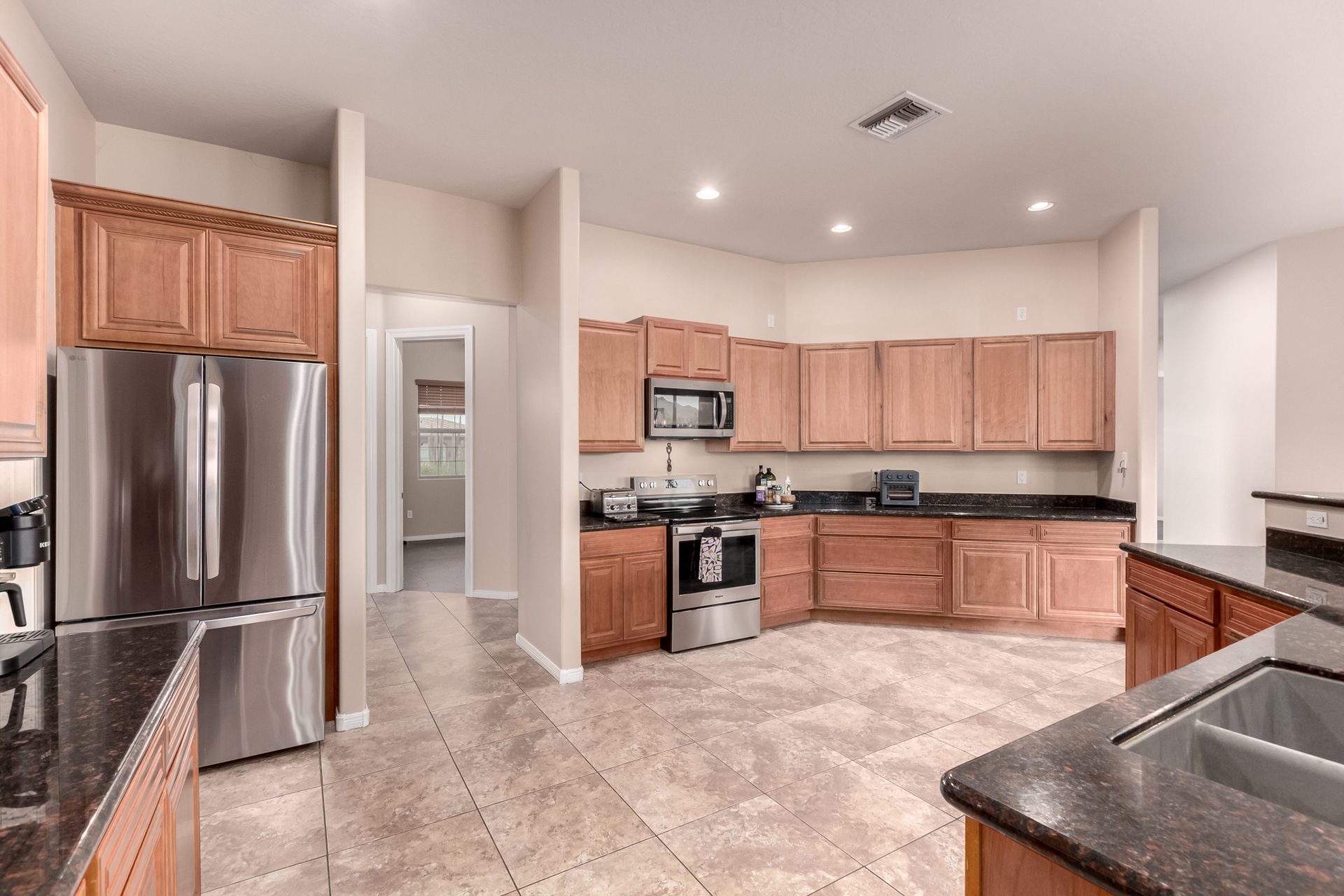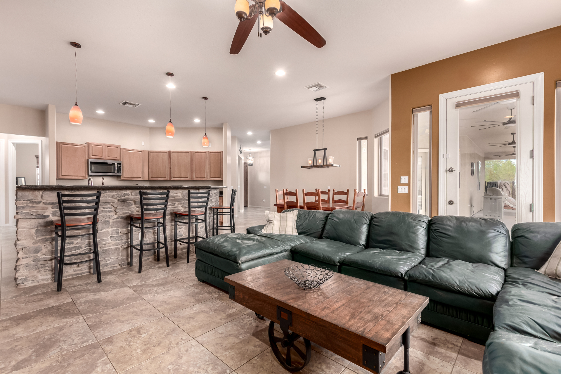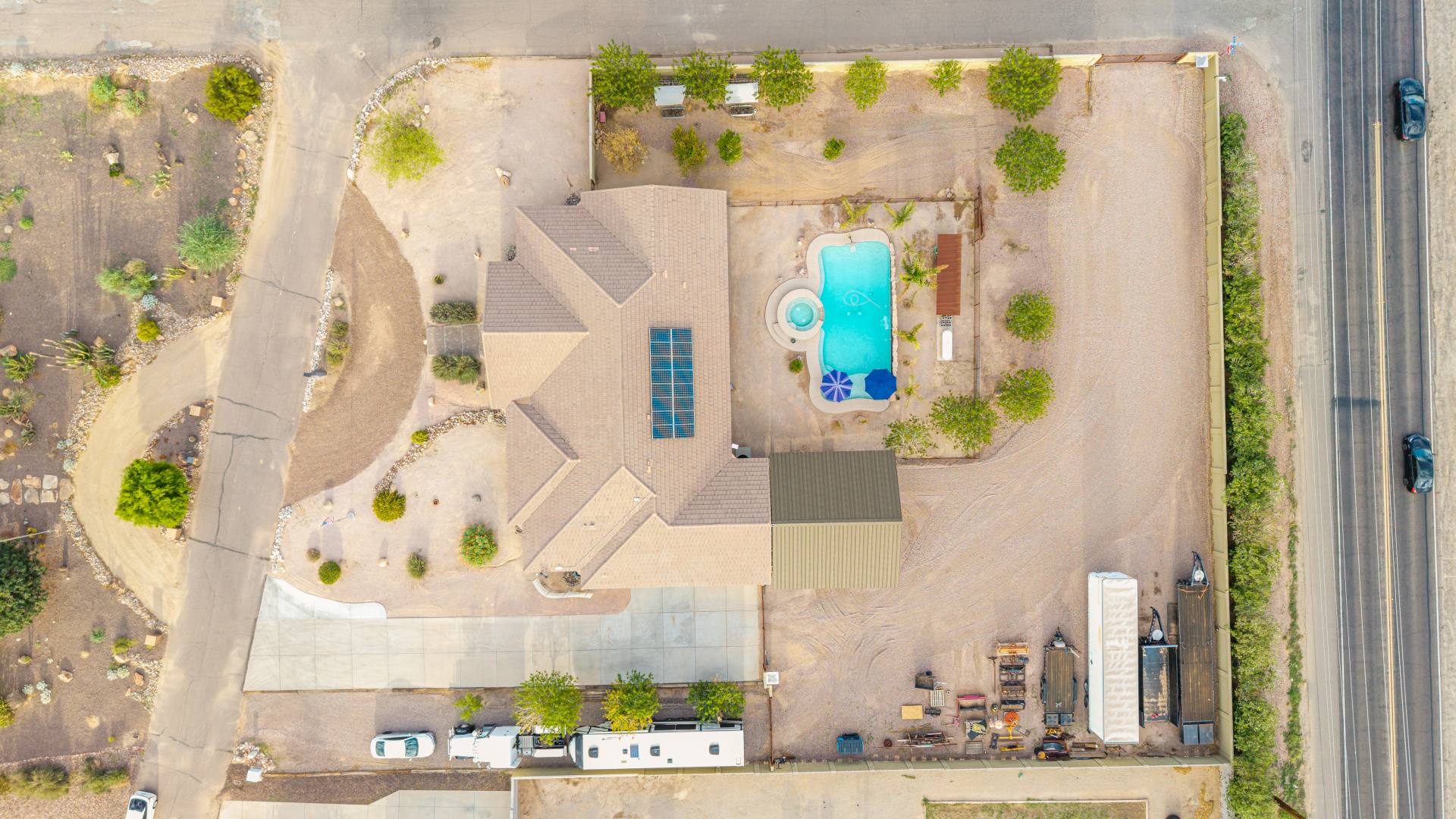 Beautiful 5-bedroom home with POOL in a desirable CORNER LOT is now on the market! Discover all the charm of this horse property, featuring a comfortable and generous layout with a blend of tile and wood-look flooring, abundant natural light, a floor-to-ceiling stone fireplace to add warmth to the family room, and a soothing, earthy palette throughout, making every space perfect for relaxation and entertaining. The impeccable culinary space showcases ample cabinetry, granite counters, a walk-in pantry, an island with a breakfast bar, and built-in appliances for a seamless cooking experience. Double doors lead to the main bedroom, offering a walk-in closet and a spa-like bathroom with double vanities. The sizable den is perfect for an office or hobby area. The expansive backyard hosts a