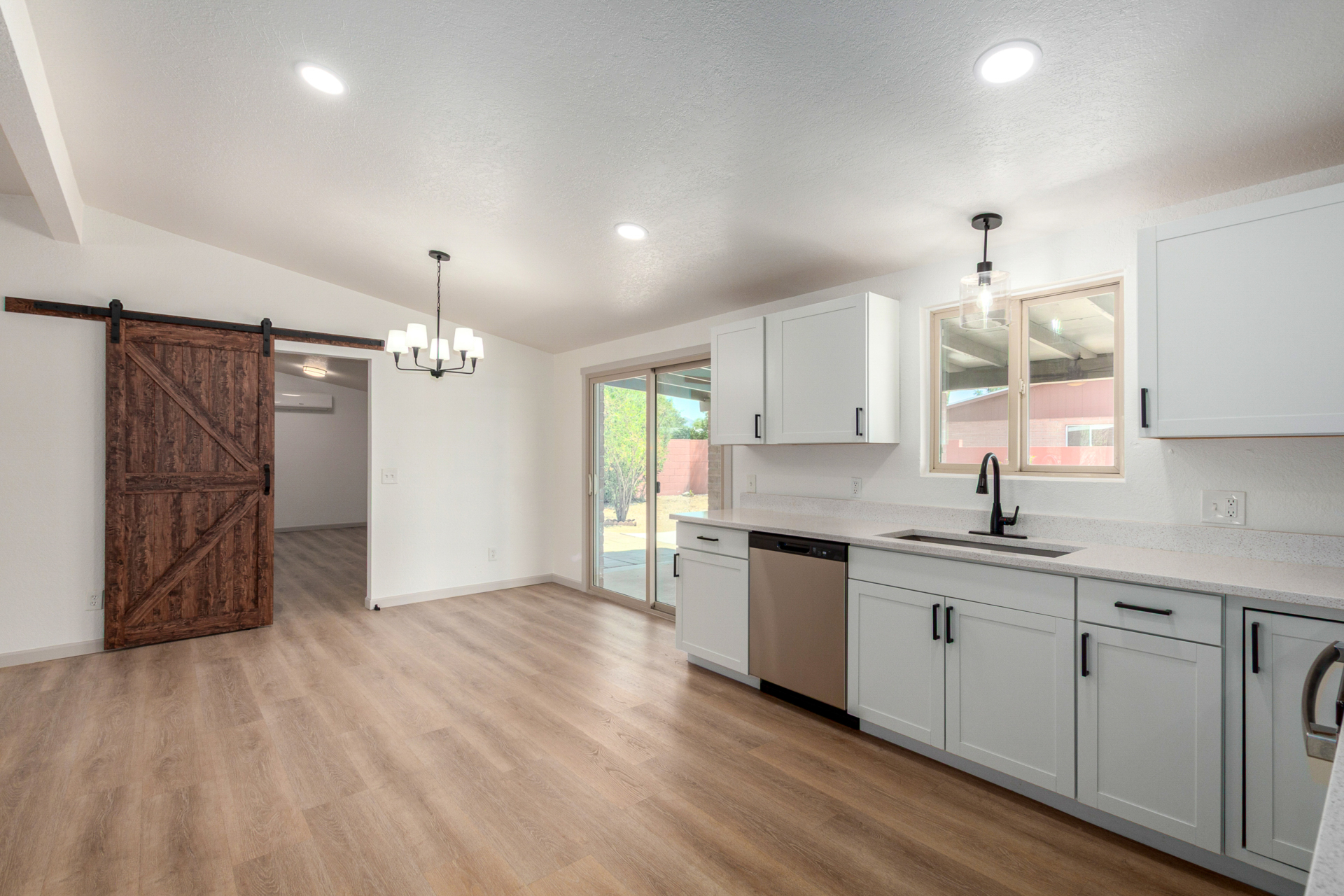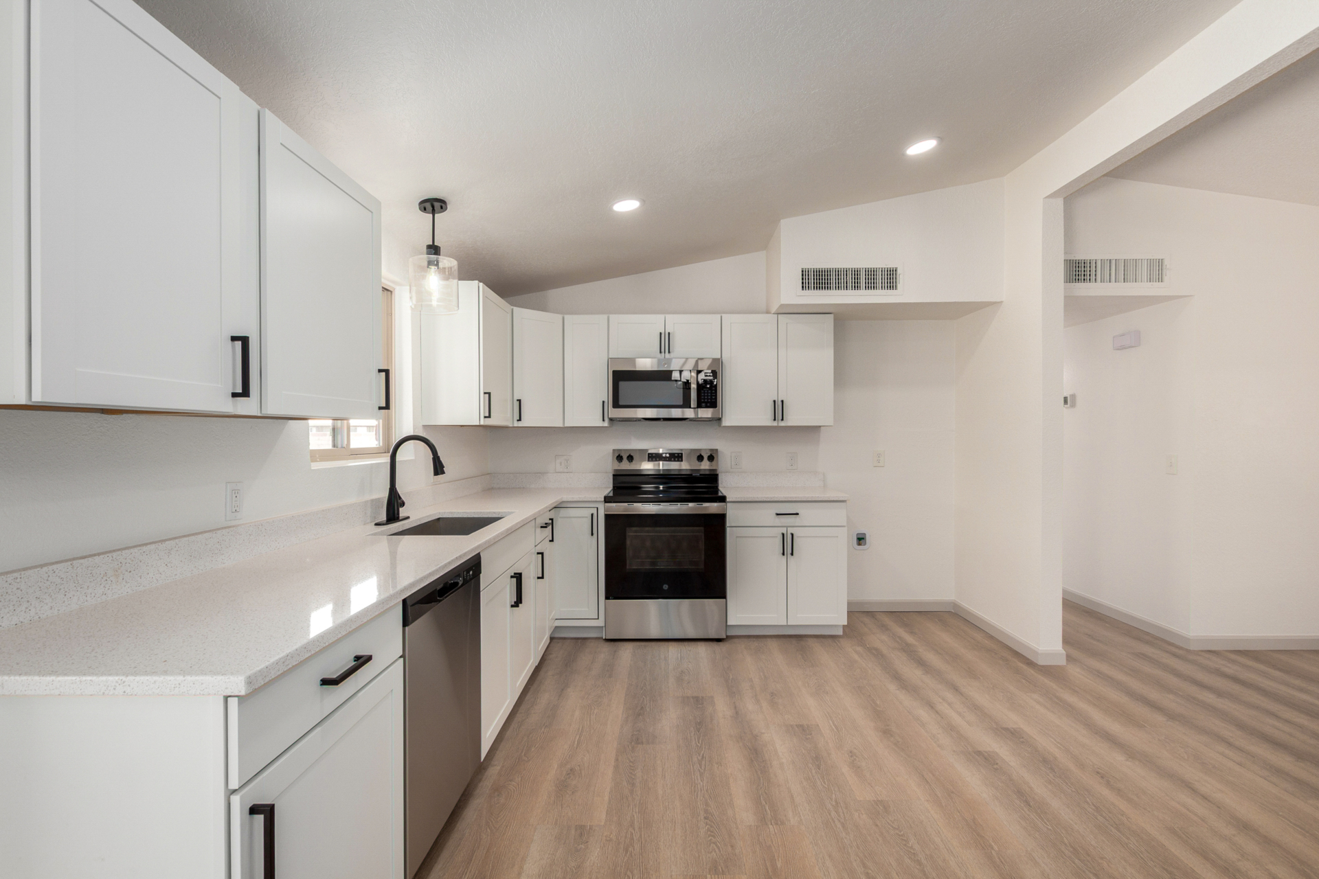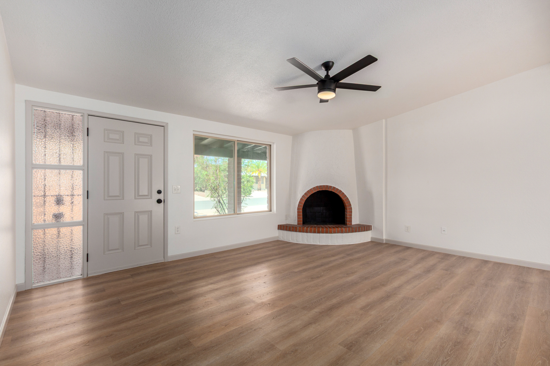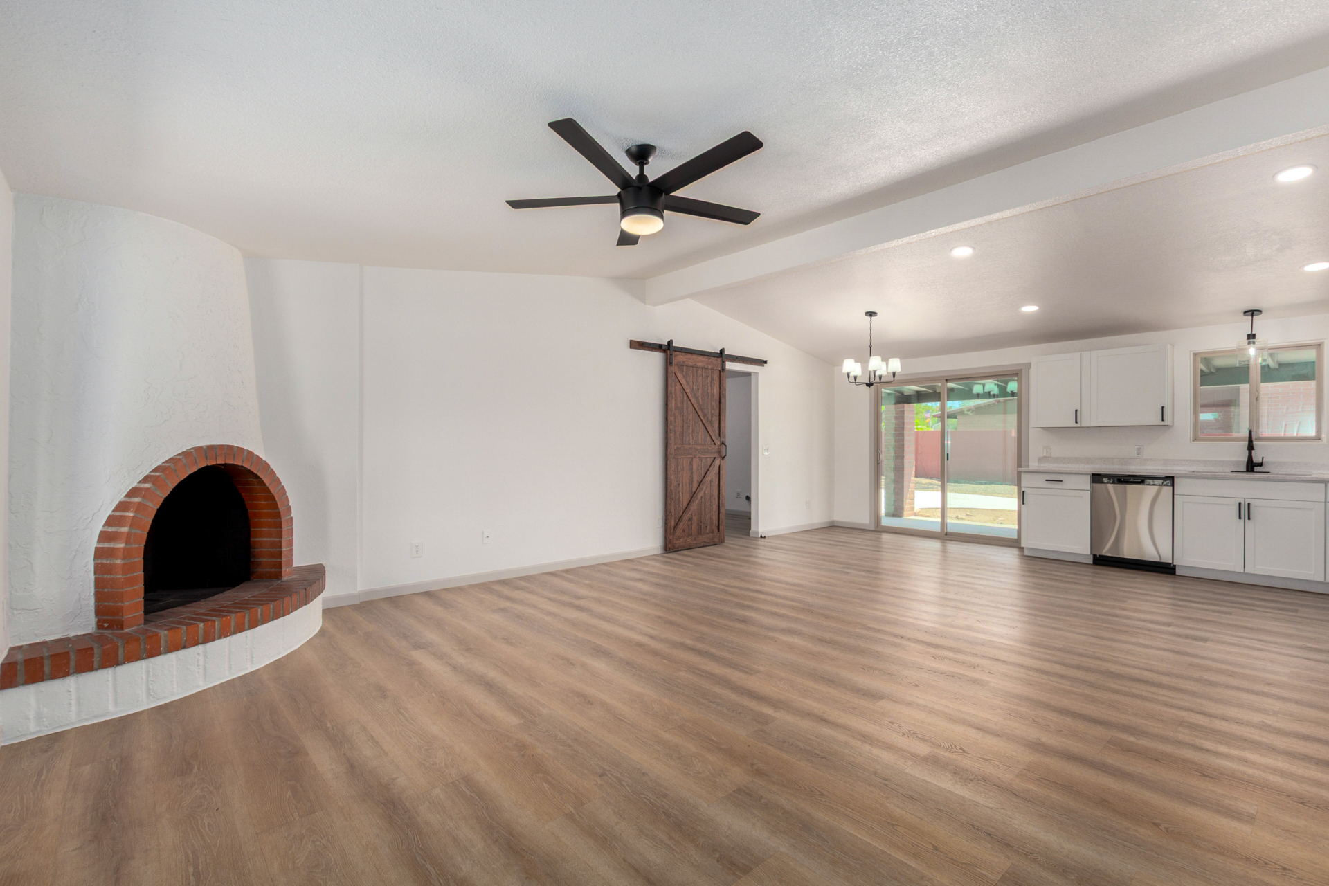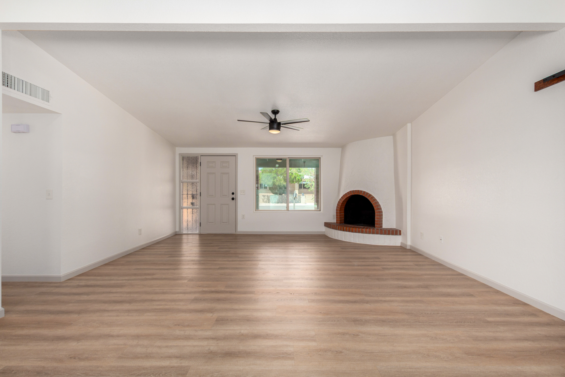 Looking for a new home? You've found it! This energy efficient 3 bed, 2 bath residence sits on a premium corner lot & features a charming brick facade, low-care desert landscape, and a 2 car garage. Inside you will find a spacious open floor plan w/vaulted ceilings, wood-look flooring, a beehive fireplace, and neutral palette throughout. The kitchen is equipped w/everything you'll need for home cooking, shaker cabinetry, and granite counters. Brand new appliances featuring smooth top electric range, OTR microwave, and dishwasher (all installed). End your busy day in the primary bedroom, showcasing a private bath for added comfort. Lastly, the sizeable backyard includes a covered patio, extended seating area, and a side RV gate! Your new home is waiting for you, don't miss out! Agent/Owner