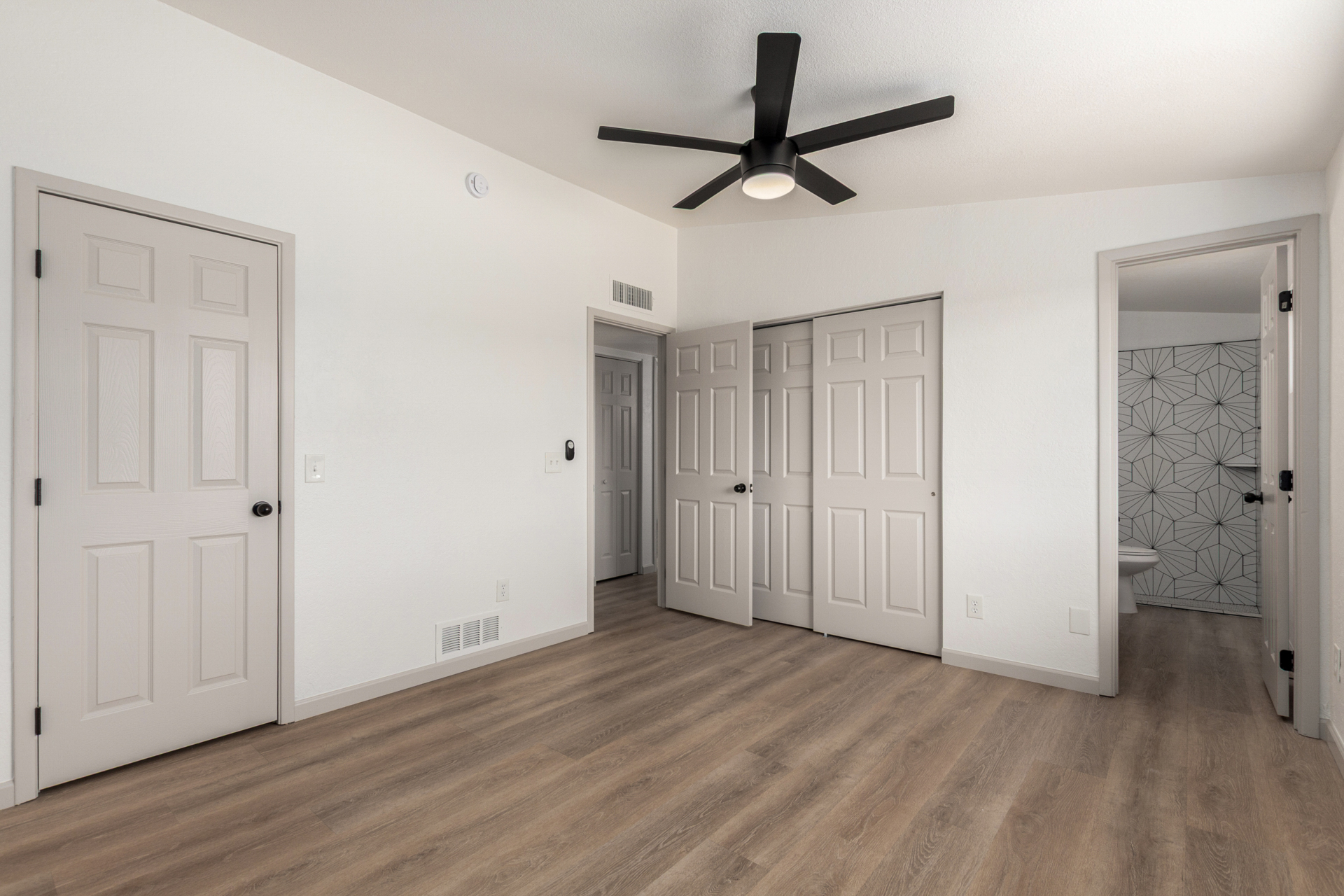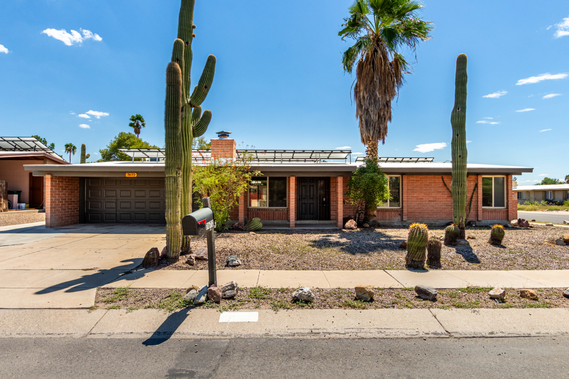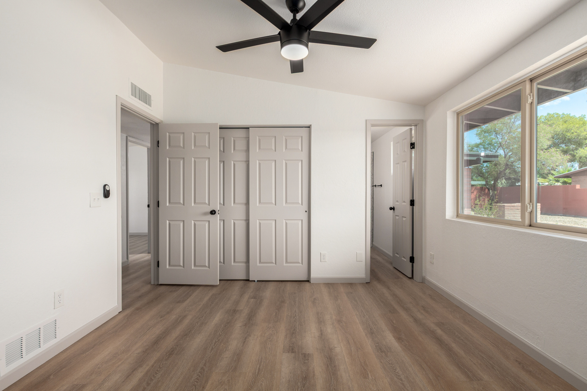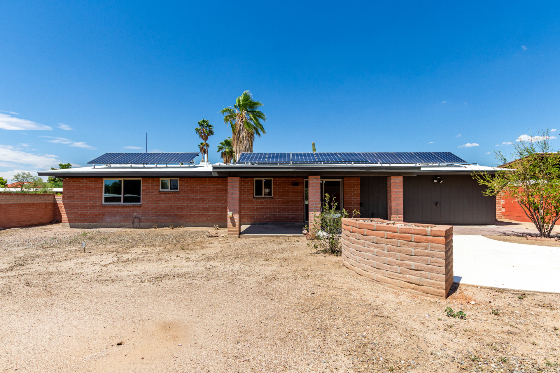Looking for a new home? You've found it! This energy efficient 3 bed, 2 bath residence sits on a premium corner lot & features a charming brick facade, low-care desert landscape, and a 2 car garage. Inside you will find a spacious open floor plan w/vaulted ceilings, wood-look flooring, a beehive fireplace, and neutral palette throughout. The kitchen is equipped w/everything you'll need for home cooking, shaker cabinetry, and granite counters. Brand new appliances featuring smooth top electric range, OTR microwave, and dishwasher (all installed). End your busy day in the primary bedroom, showcasing a private bath for added comfort. Lastly, the sizeable backyard includes a covered patio, extended seating area, and a side RV gate! Your new home is waiting for you, don't miss out! Agent/Owner