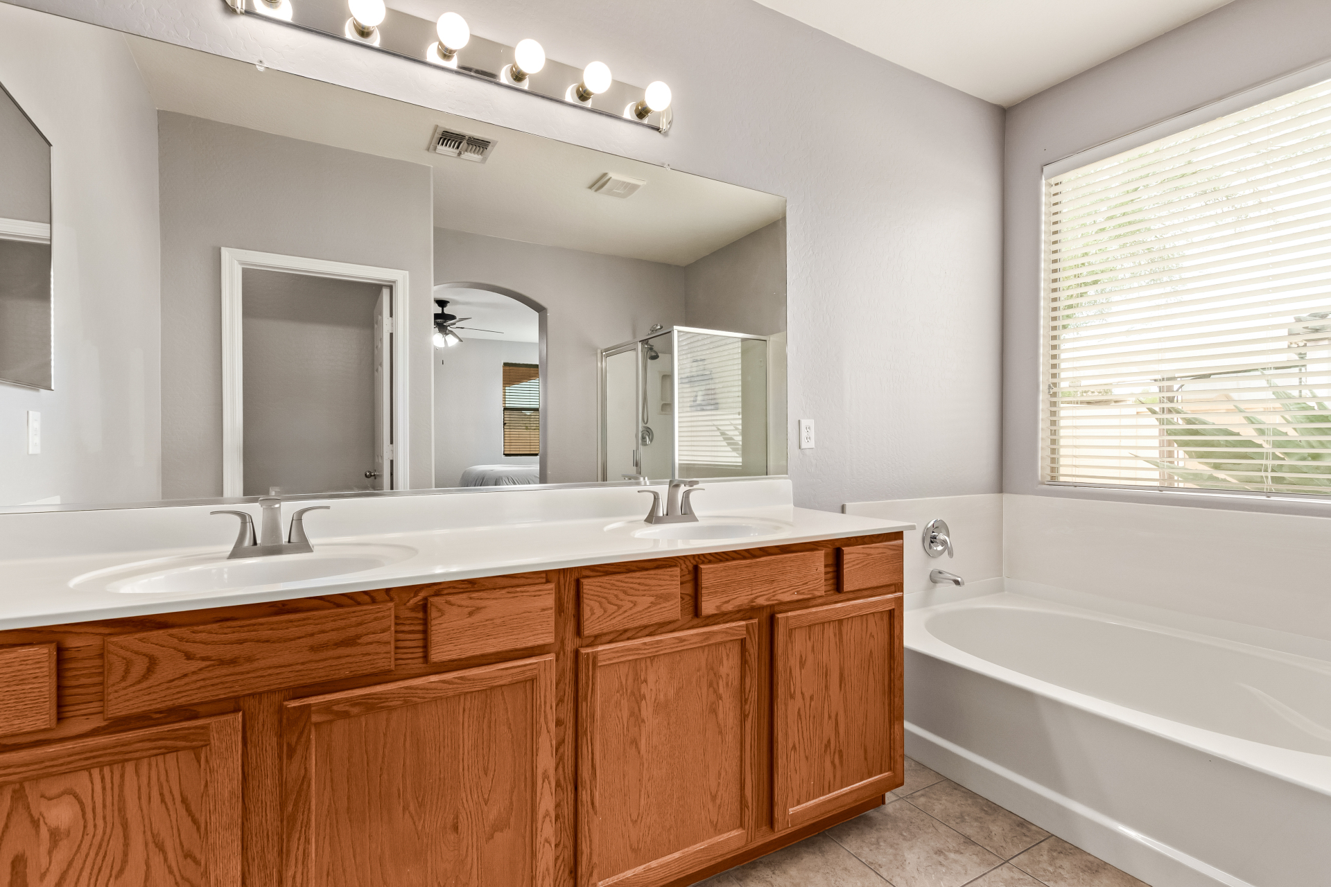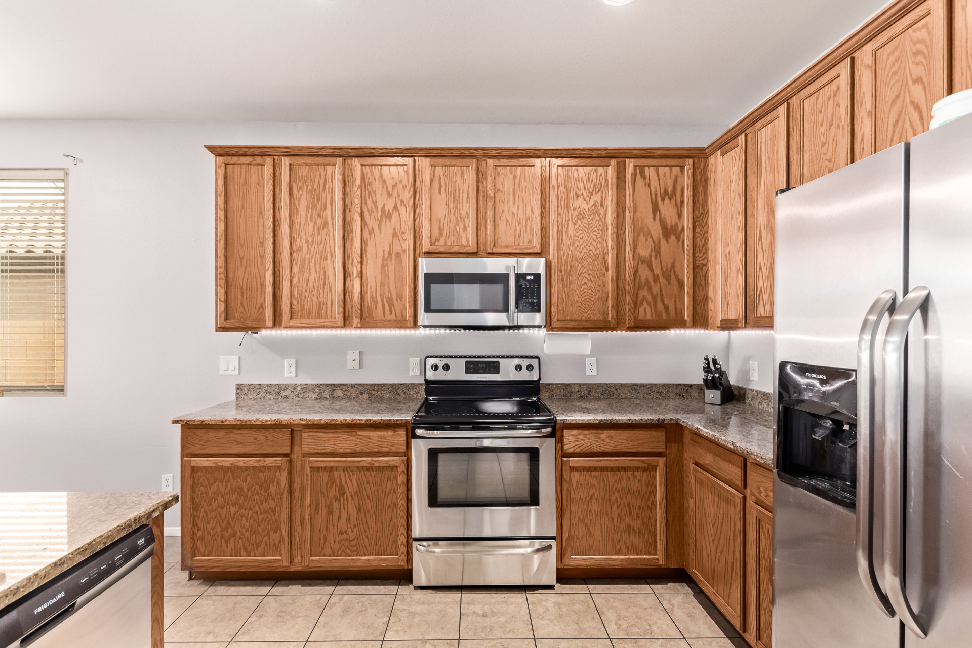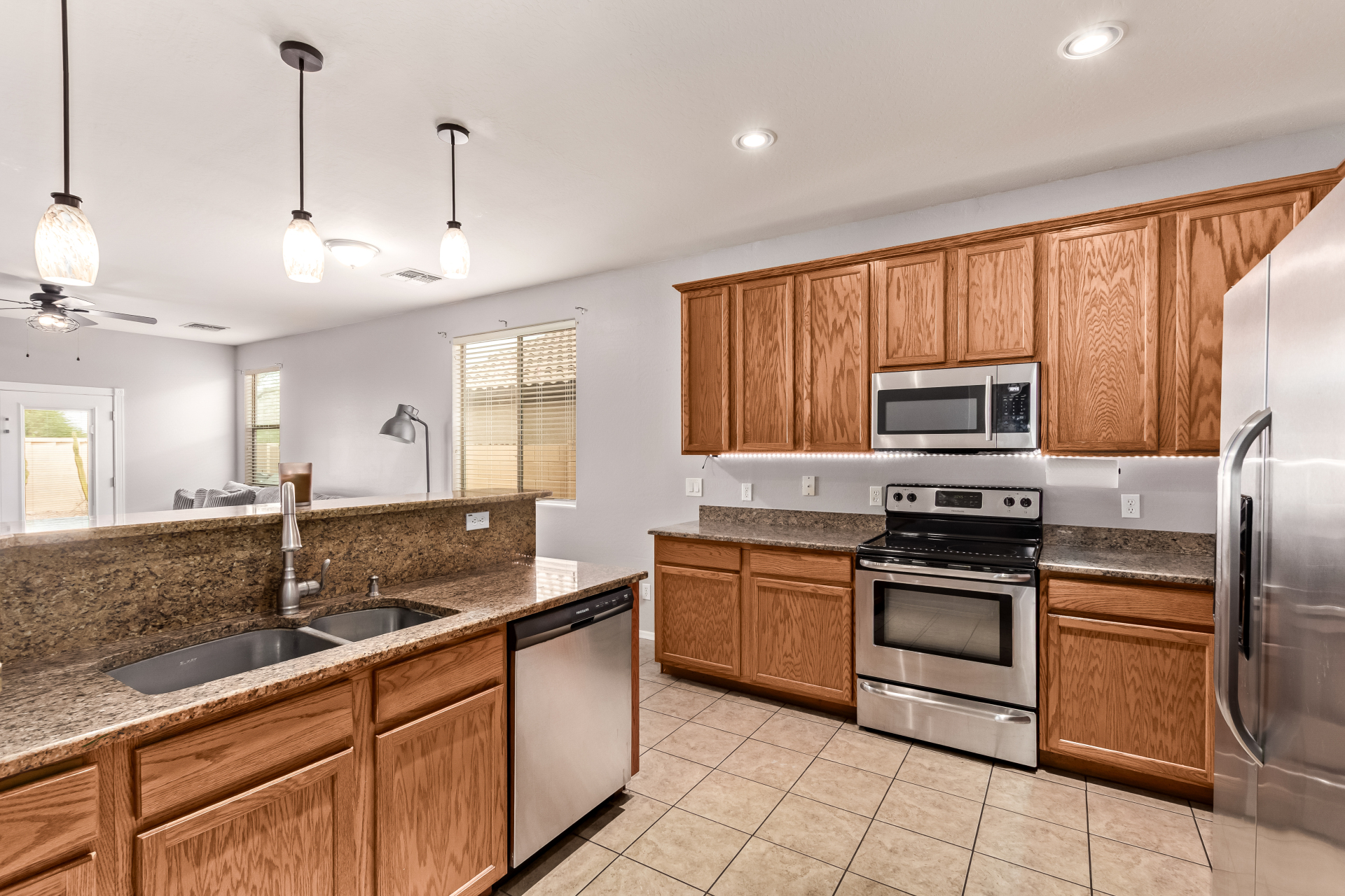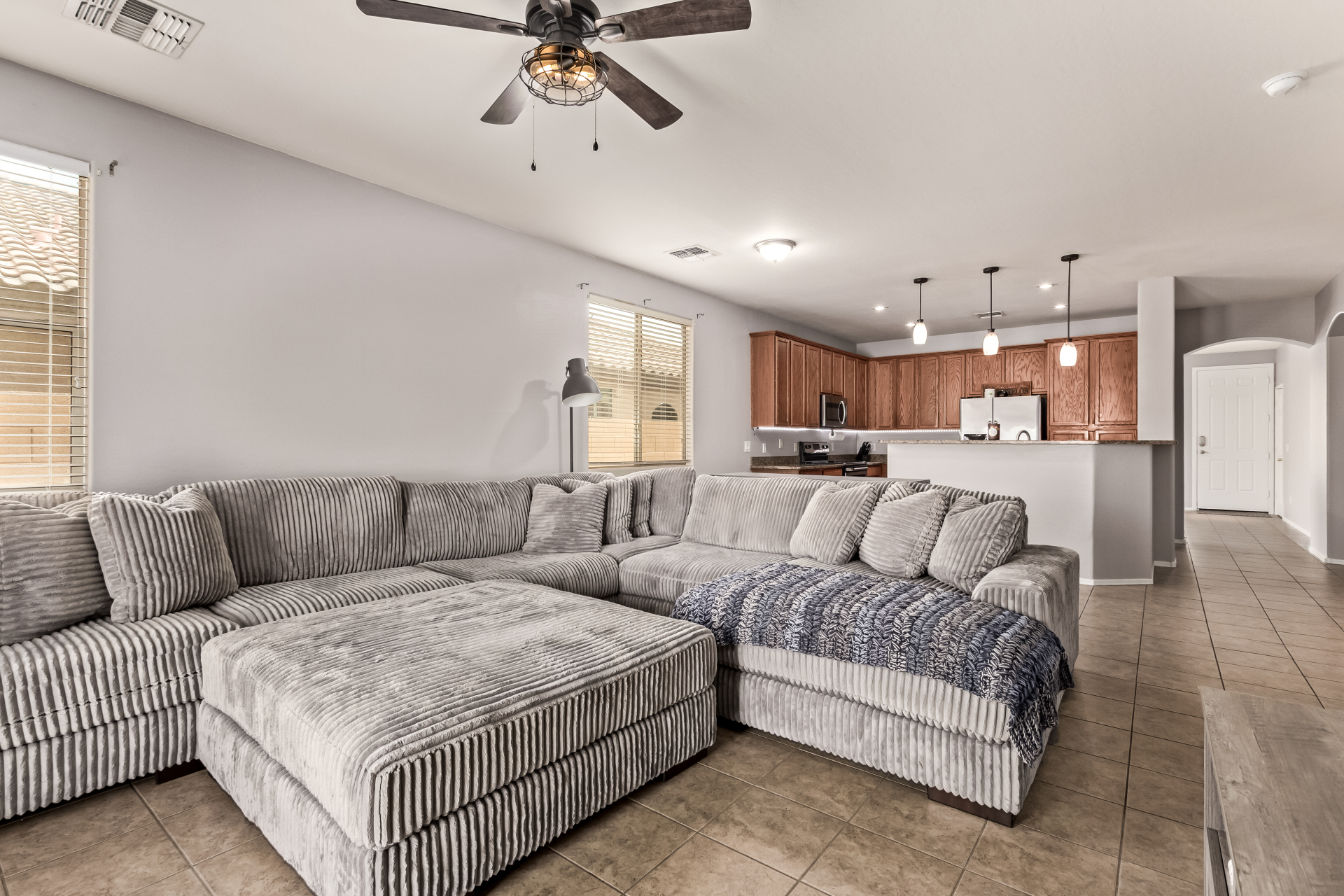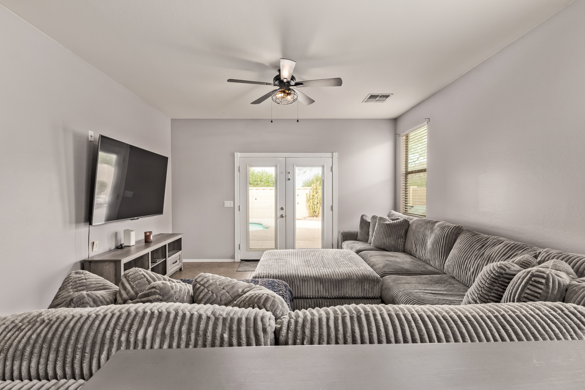 Welcome to this beautiful home with POOL & SOLAR PANELS in Westwing Mountain! Offering 4 beds, 2 baths, 2-car garage, & a low-care landscape. The inviting interior showcases tons of natural light, neutral paint, and tile & carpet t/out. You'll love the combined living & dining room, and a separate family room with French doors to the back! The impressive kitchen boasts SS appliances, granite counters, ample wood cabinets, recessed & pendant lights, and a 2-tier peninsula w/breakfast bar. Enter the large main bedroom to find a walk-in closet and an ensuite with dual sinks & a separate tub/shower. Designed for ultimate relaxation & entertainment, the backyard is sure to impress! Featuring a covered patio, Gazebo, multiple seating areas, & a sparkling pool for year-round enjoyment. Just WOW!